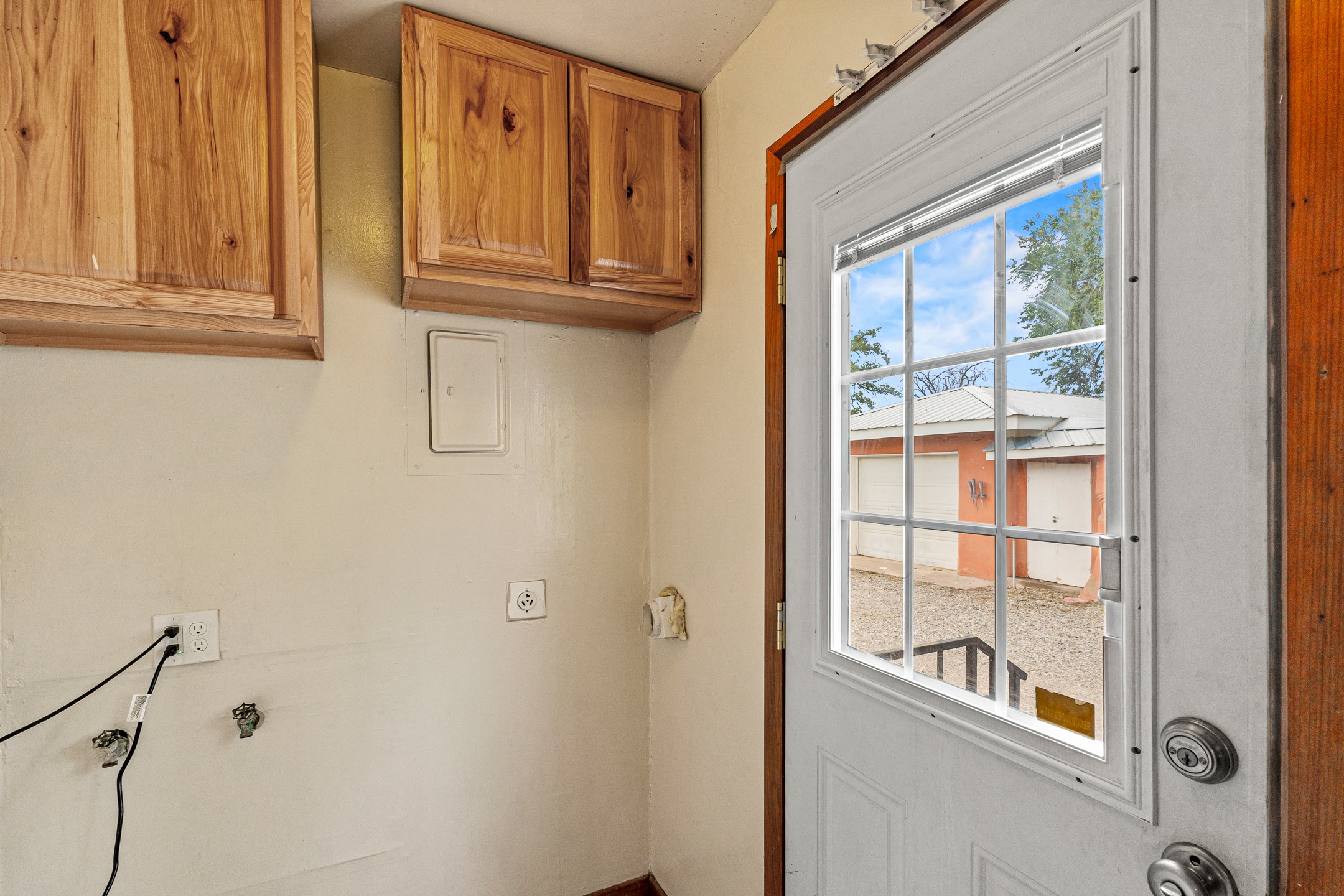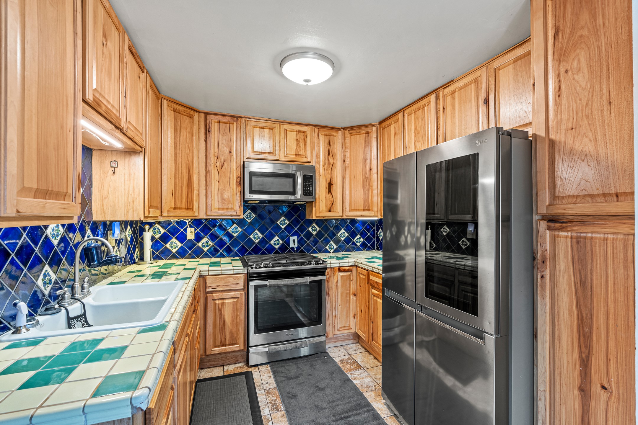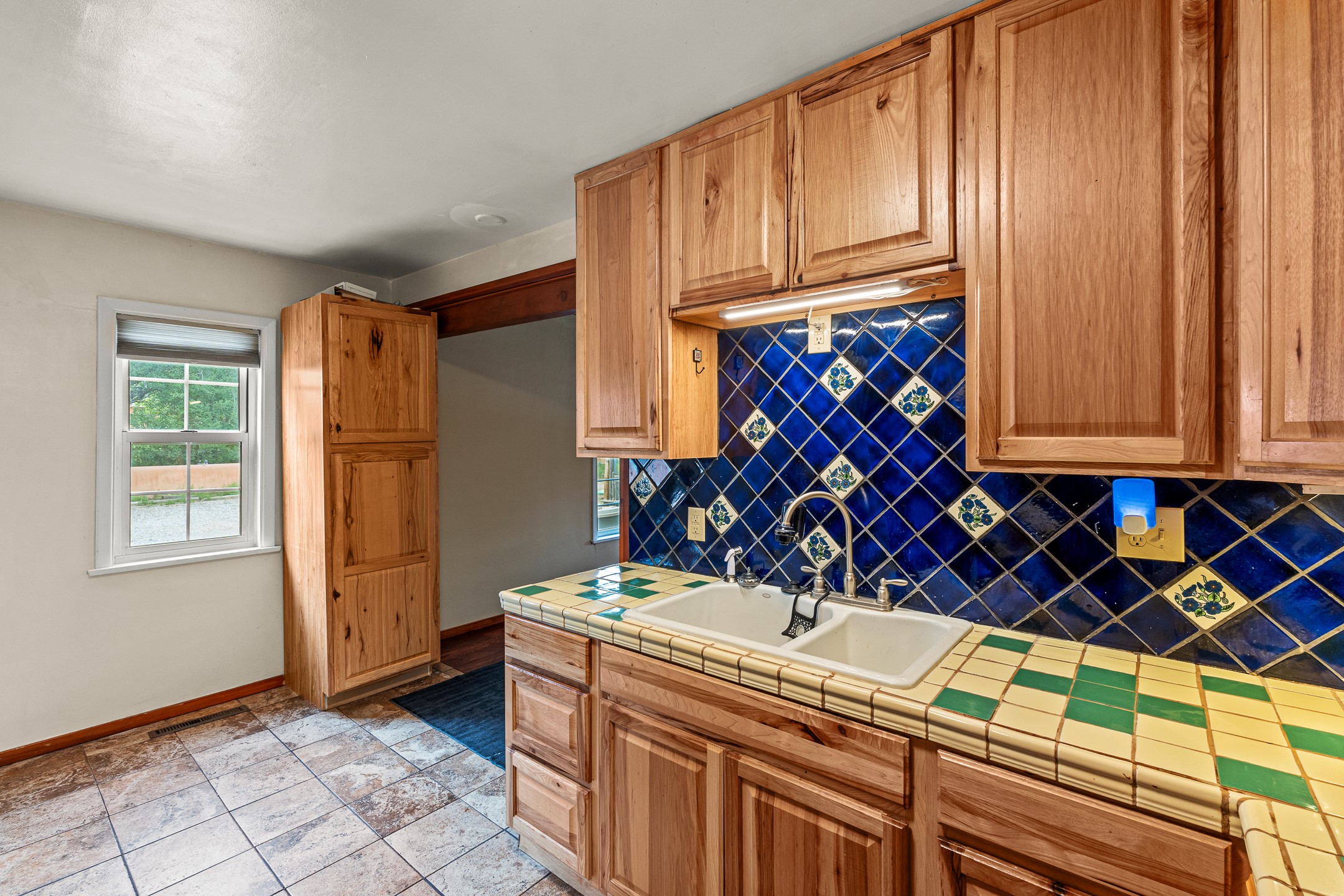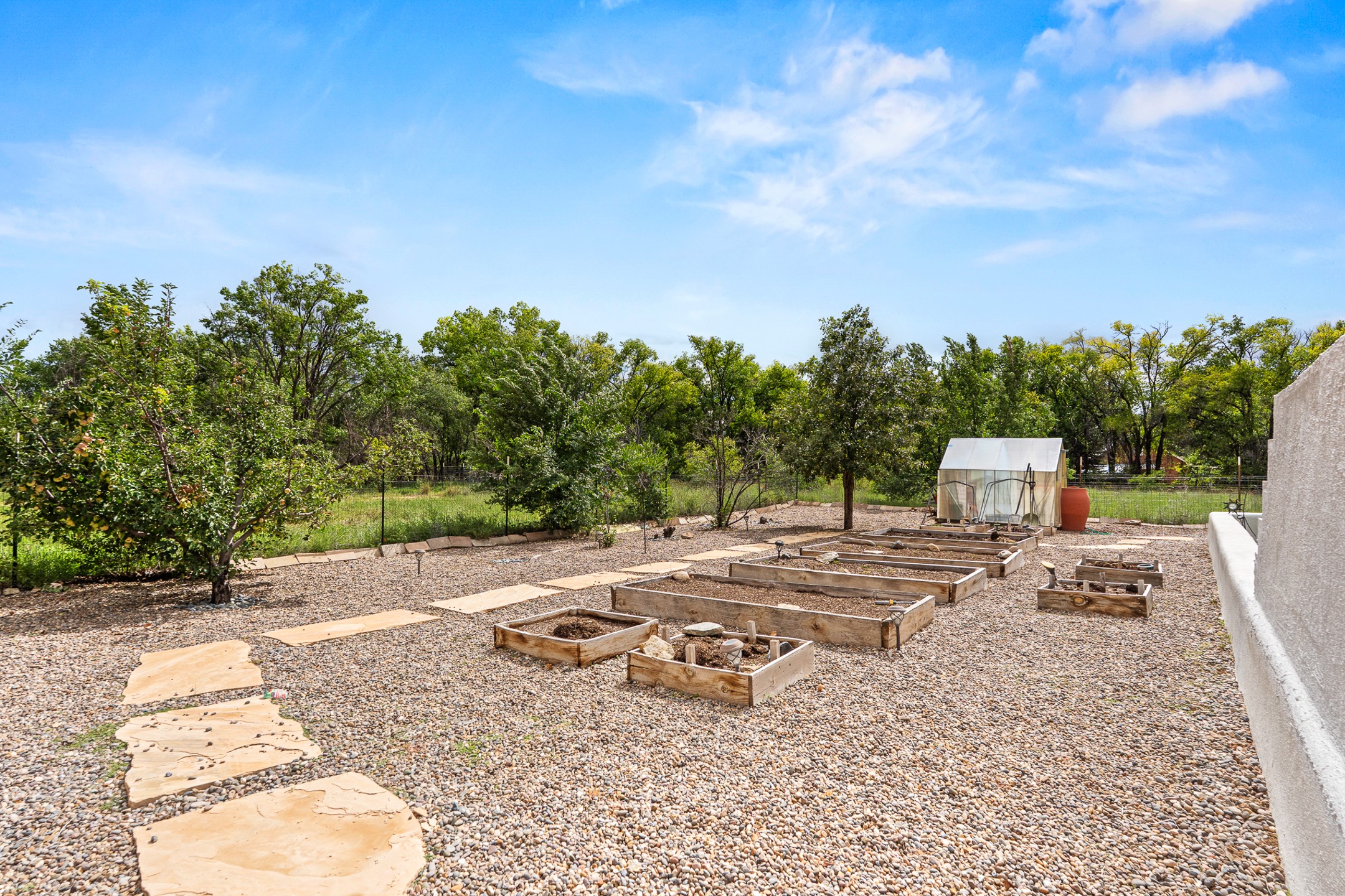 Unique Namb property featuring a 3-bed, 1 full & bath main home plus a private guest house. Owned solar conveys with sale, along with forced-air heating and central A/C for year-round comfort. Main house offers a cozy wood-burning stove and spacious layout. Guest house includes a room, kitchenette, full bath, and traditional kiva fireplace--perfect for guests, rental income, or multigenerational living. Enjoy Southwestern charm with modern efficiency in a serene setting.