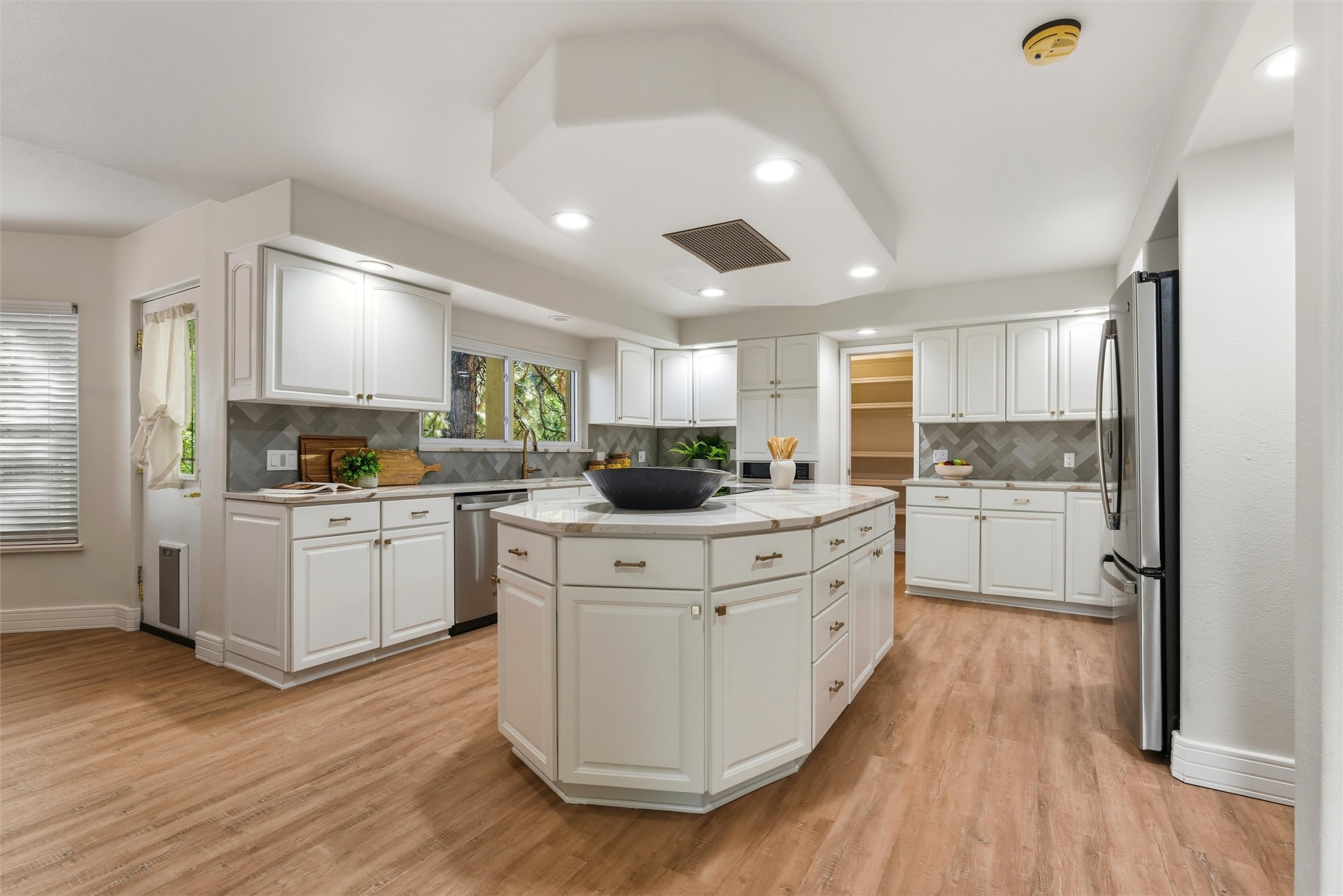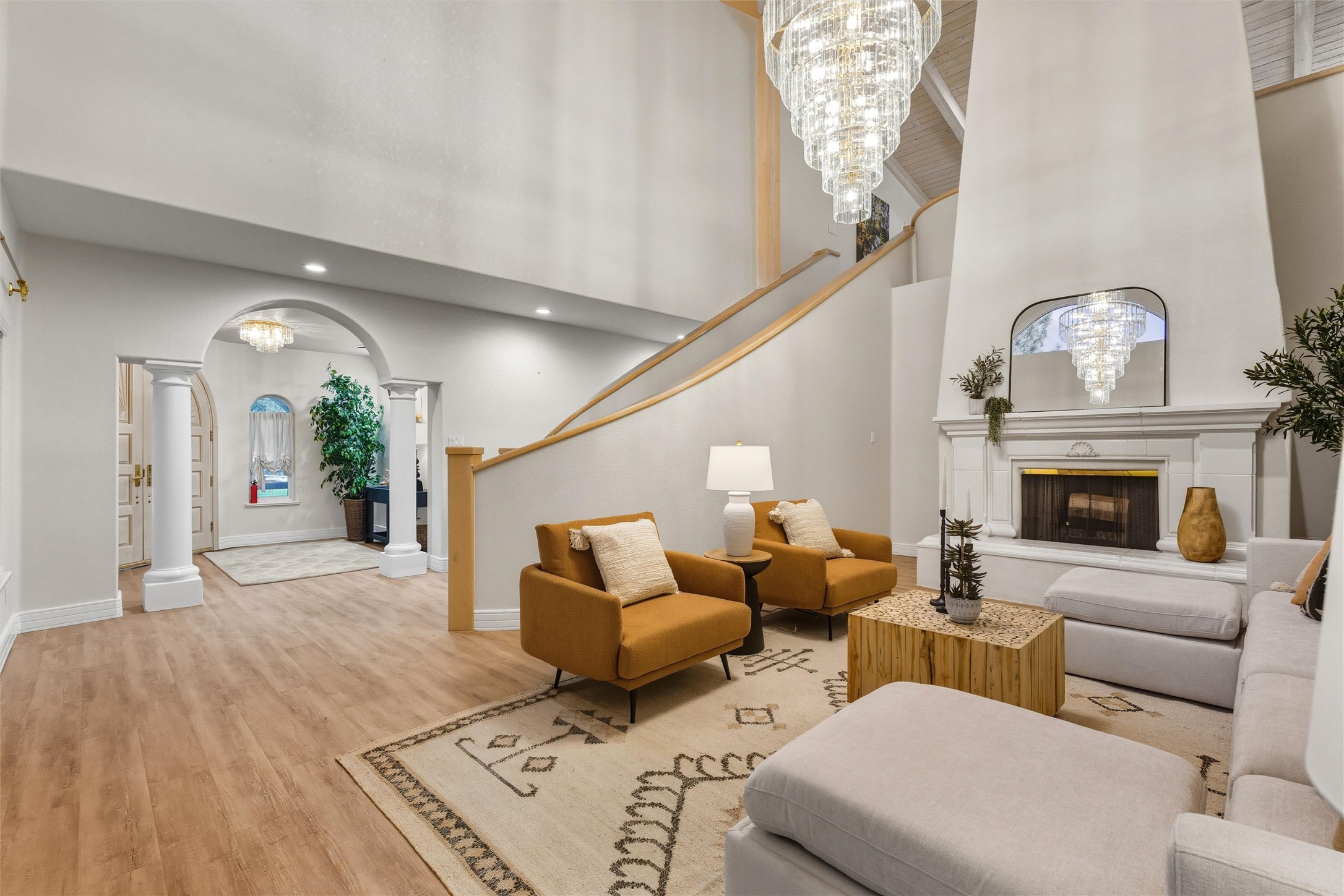 North Mesa Luxury Estate -- Over 5,000 Sq. Ft. on Two AcresThis remarkable North Mesa estate is more than a home -- it's a sanctuary. Nestled on two private acres and offering over 5,000 square feet of beautifully designed living space, every detail here has been crafted with comfort, style, and entertaining in mind.From the moment you step through the custom double doors, the soaring open staircase sets a dramatic tone, while the thoughtful layout flows gracefully throughout. With three generous living spaces, two anchored by striking fireplaces, there's room to gather, relax, and enjoy life's moments in style. The updated eat-in kitchen is both elegant and practical, featuring a built-in buffet for added storage and seamless access to the courtyard -- perfect for al fresco dining and summer evenings under the stars. The formal dining room is the ideal blend of intimate and sophisticated, inviting long conversations over dinner.The home offers four bedrooms plus a bonus wellness room with sauna, creating a true retreat. A main-level en-suite bedroom provides convenience for guests or multi-generational living. Upstairs, you'll find an additional living space with French doors leading to a private deck, plus a dedicated media room paired with a wet bar -- ideal for movie nights, game-day gatherings, or quiet evenings with friends.The primary suite is a haven of its own -- expansive, light-filled with beautiful bay windows, and opening to a private deck. With dual closets and a spa-inspired bath featuring two vanities, an oversized soaking tub, and a separate shower, it's a space designed for relaxation and rejuvenation.Outdoors, the property shines just as brightly: A paved loop driveway leading to two detached garages, including one outfitted for RV storage. A pull-through garage accommodating up to six vehicles. A flourishing orchard with irrigation, plus direct access to county land and scenic trails. A private fenced courtyard with artificial turf, an entertainer's patio, and a hot tub tucked into a quiet corner -- the perfect place to unwind.This estate offers a rare combination of scale, sophistication, and serenity -- a home where every day feels like a getaway.