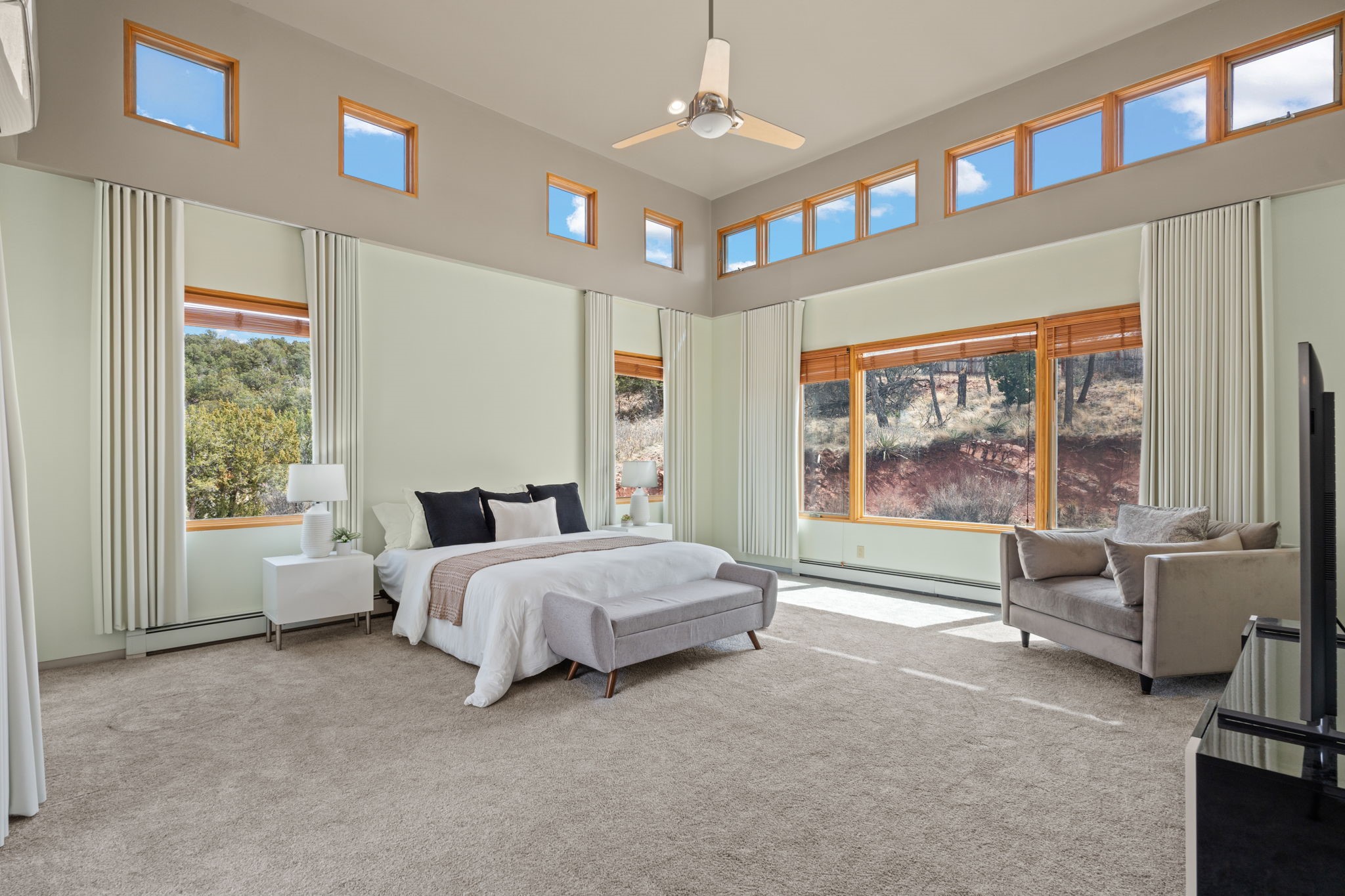 SELLERS ARE READY TO SELL! Modern luxury mountain living, Easy drive to Albuquerque and SF. Perfect for entertaining or as a quiet retreat. Private, gated neighborhood: 5-acre + lots, custom homes. Drenched in natural light. Sweeping views of the entire east slope of the Sandias. Expansive views from the many picture windows. Energy efficient FIRE RESISTANT ICF construction. Private decks off of every bedroom. Mini-splits throughout. 6-burner gas range with pot filler. Wine fridge. Giant walk-in laundry room. Over-sized, finished 3-car garage. Lots of extra storage. Easily accessed crawl space with even MORE storage! Solid hardwood/carpet/and ceramic tile flooring. Custom solid wood cabinetry throughout. 2 wood-burning fireplaces. Horses allowed. See supplement and docs for more. BRING US AN OFFER!