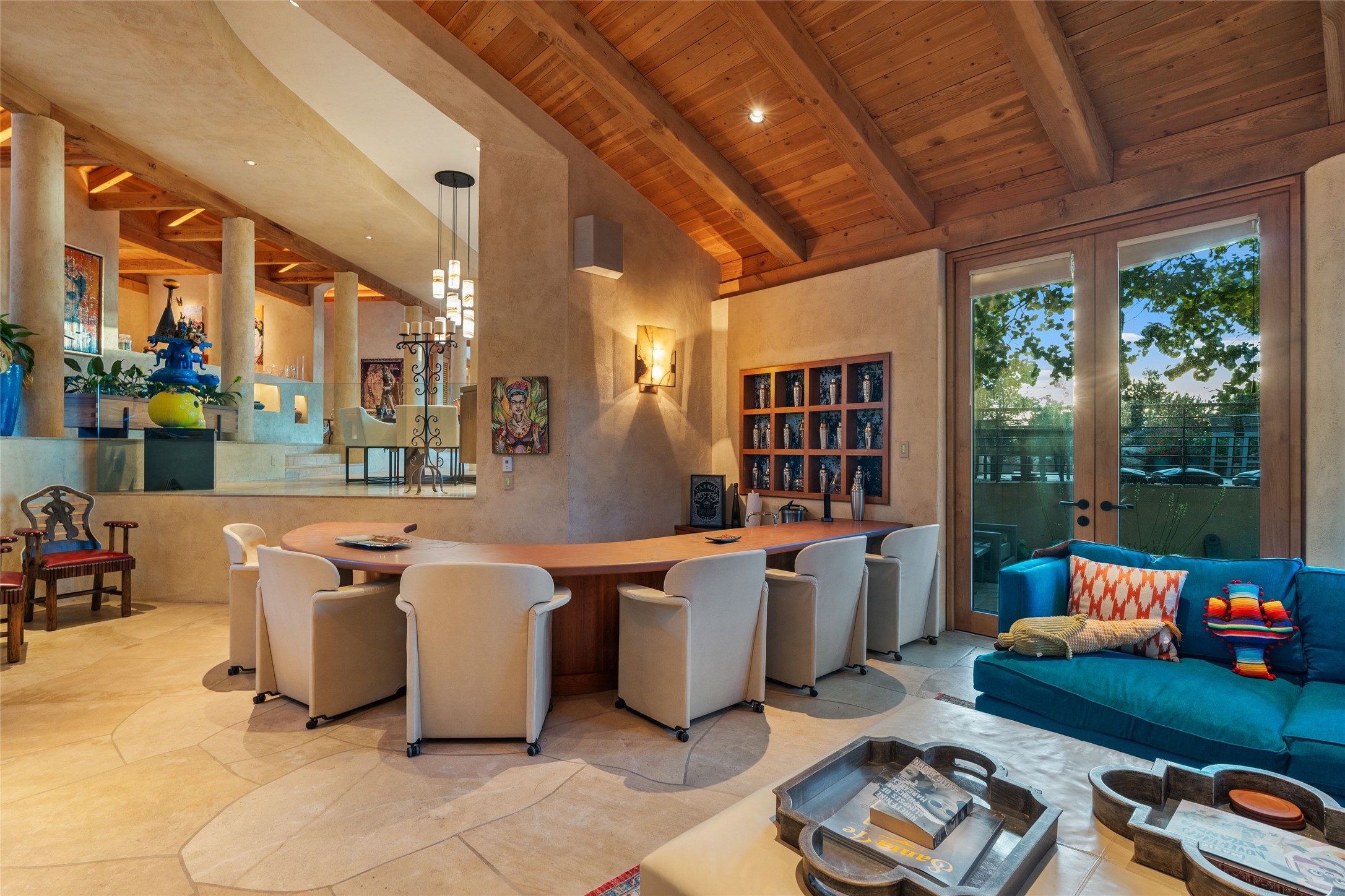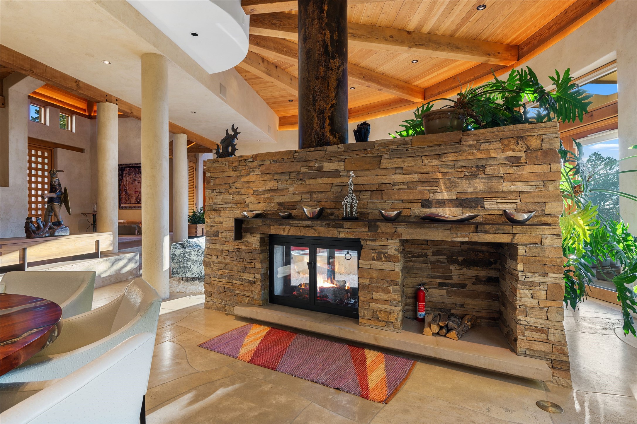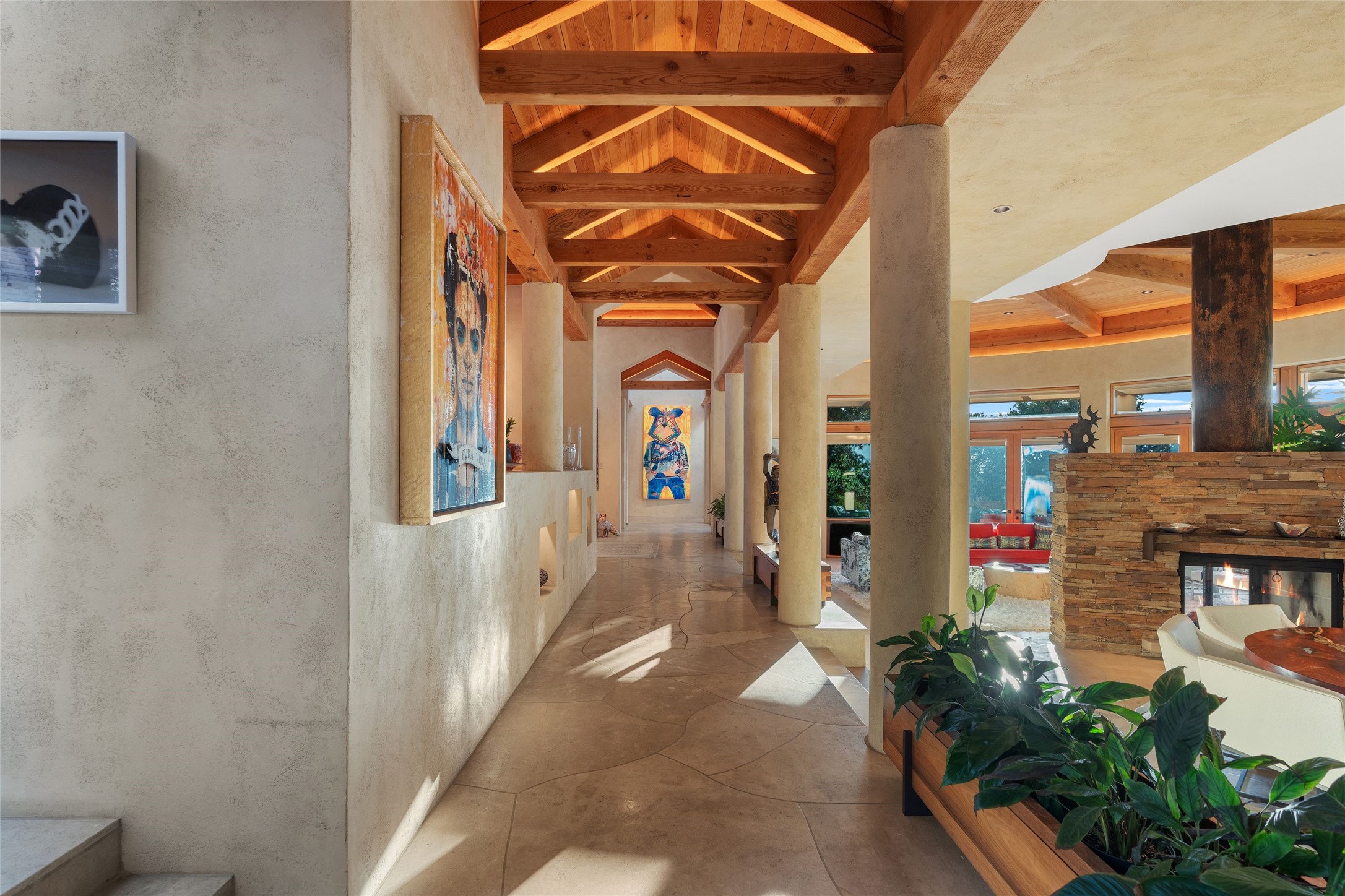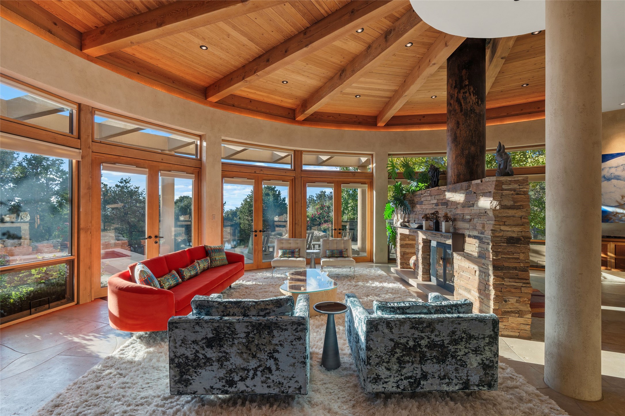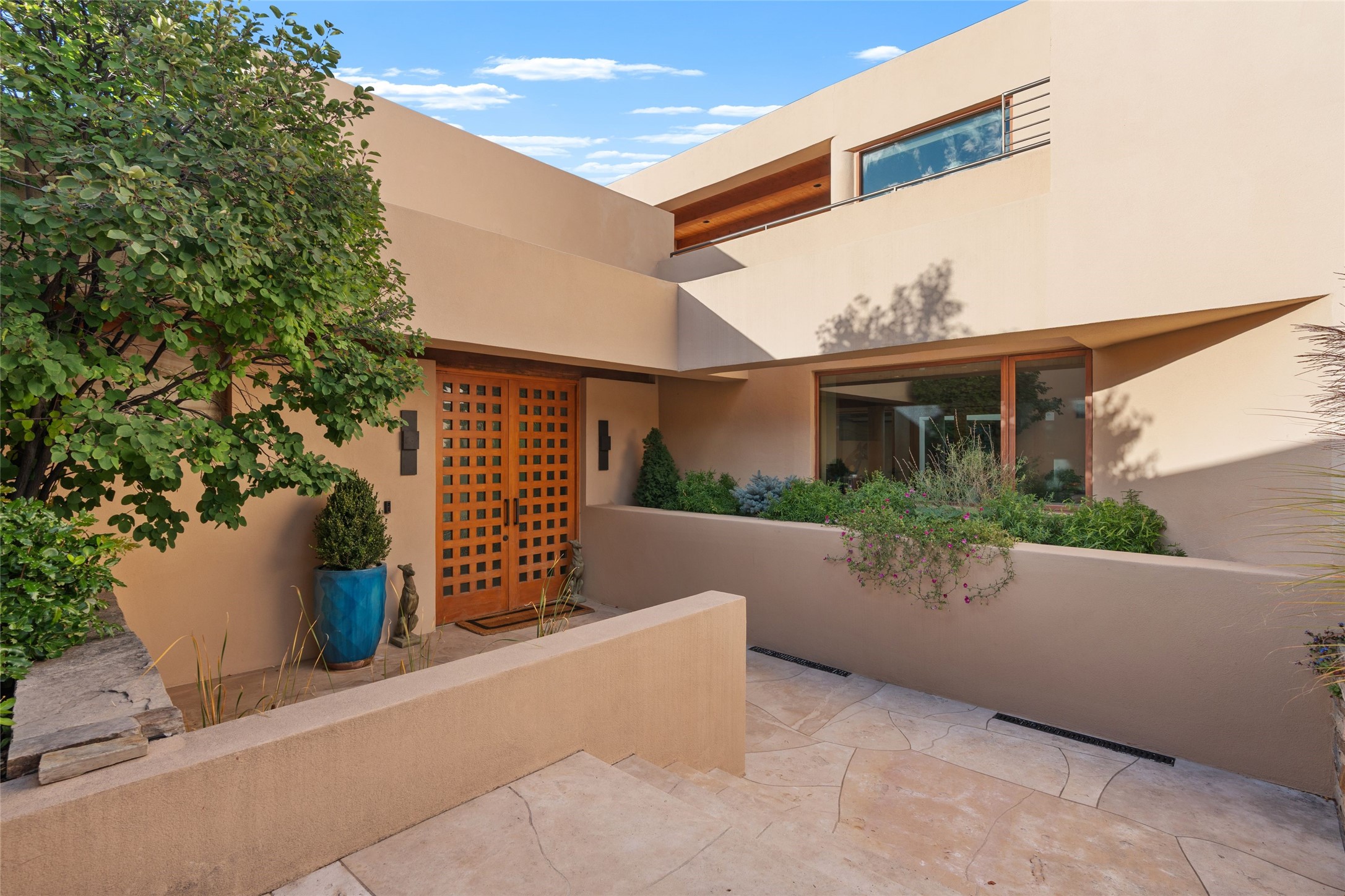 A Rare Masterpiece in Sierra del Norte! Welcome to 1056 Sierra del Norte--an architectural triumph and one of Santa Fe's most extraordinary residences! This estate offers breathtaking panoramic views and unmatched privacy from the moment you pass through the gated entrance. The heated driveway, stacked stone retaining walls, full-capacity generator, and an oversized four-car garage set the tone for the exceptional quality of this one-of-a-kind residence. Inside, grand entertaining spaces flow effortlessly around a world-class chef's kitchen, where top-tier appliances and exquisite finishes inspire culinary creativity. The design and craftsmanship throughout the home are truly unparalleled, with amazing custom details and impressive execution of unique design elements throughout. The expansive living room and formal dining area are anchored by a stunning natural stacked-stone gas fireplace, creating warmth and elegance. Enjoy evenings in the spacious media room, unwind at the custom bar, or challenge friends to Pool or Darts in the dedicated game room. Upstairs, a versatile studio space--perfect as a fifth bedroom--features a sitting room, bath, and access to a private viewing deck. Step outside to discover a sanctuary of lush, mature landscaping, multiple covered portals and patios, and a high-end outdoor kitchen ideal for alfresco dining. The infinity-edge pool and hot tub, complemented by a newly-built pool bath house, offer resort quality relaxation at your own property. The primary suite is a retreat unto itself, with a cozy library, a grand sleeping room, two fireplaces, a spa-inspired bath, and a magnificent walk-in closet. Each guest bedroom is a private suite, thoughtfully separated for lavish comfort and complete tranquility. This is more than a home--it's a lifestyle! With room to grow and views that inspire, 1056 Sierra del Norte is a rare opportunity to own a piece of Santa Fe paradise! Included with the home is a vacant, unimproved adjacent lot, offering rare potential for future expansion or permanent open space.