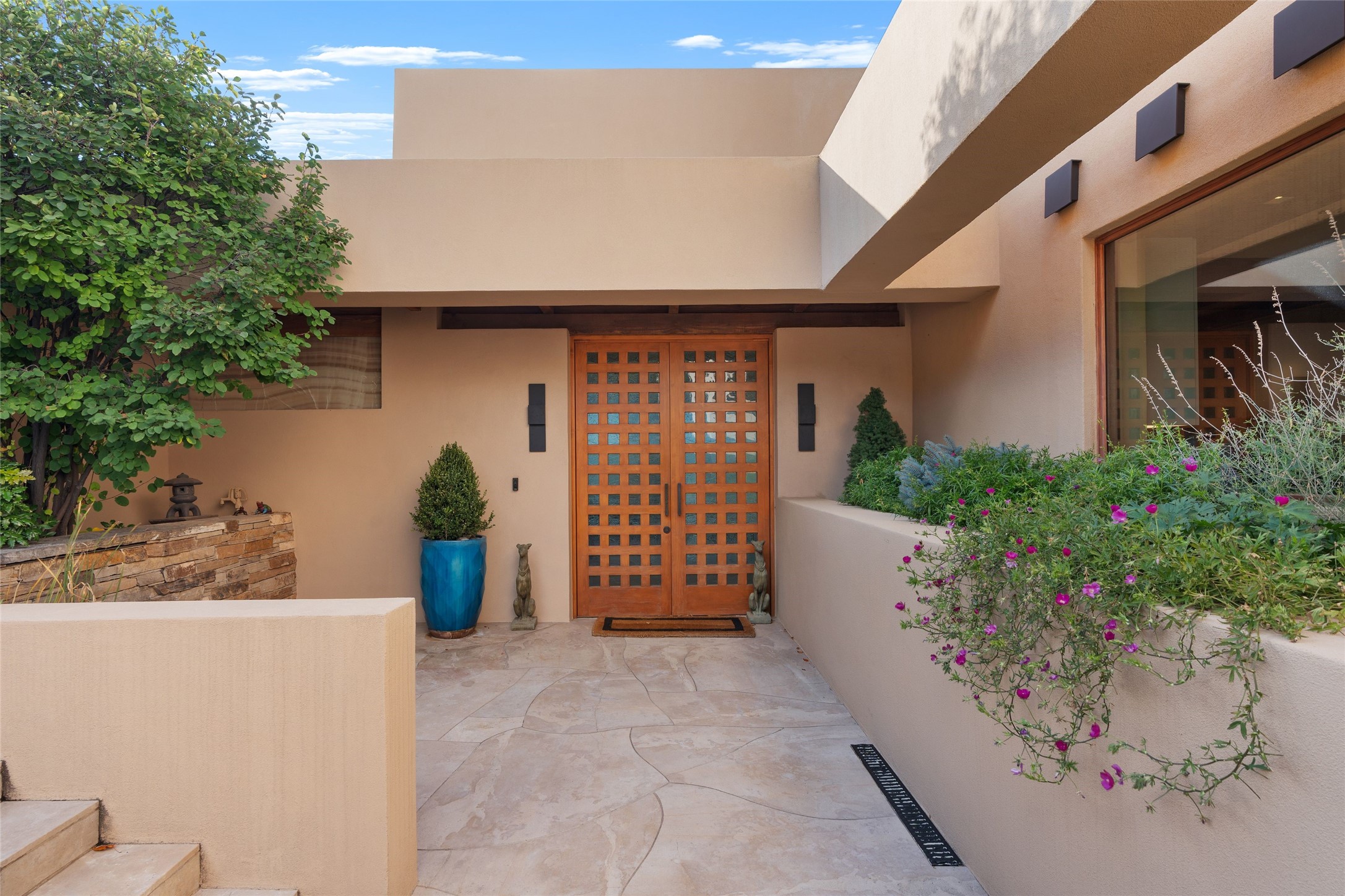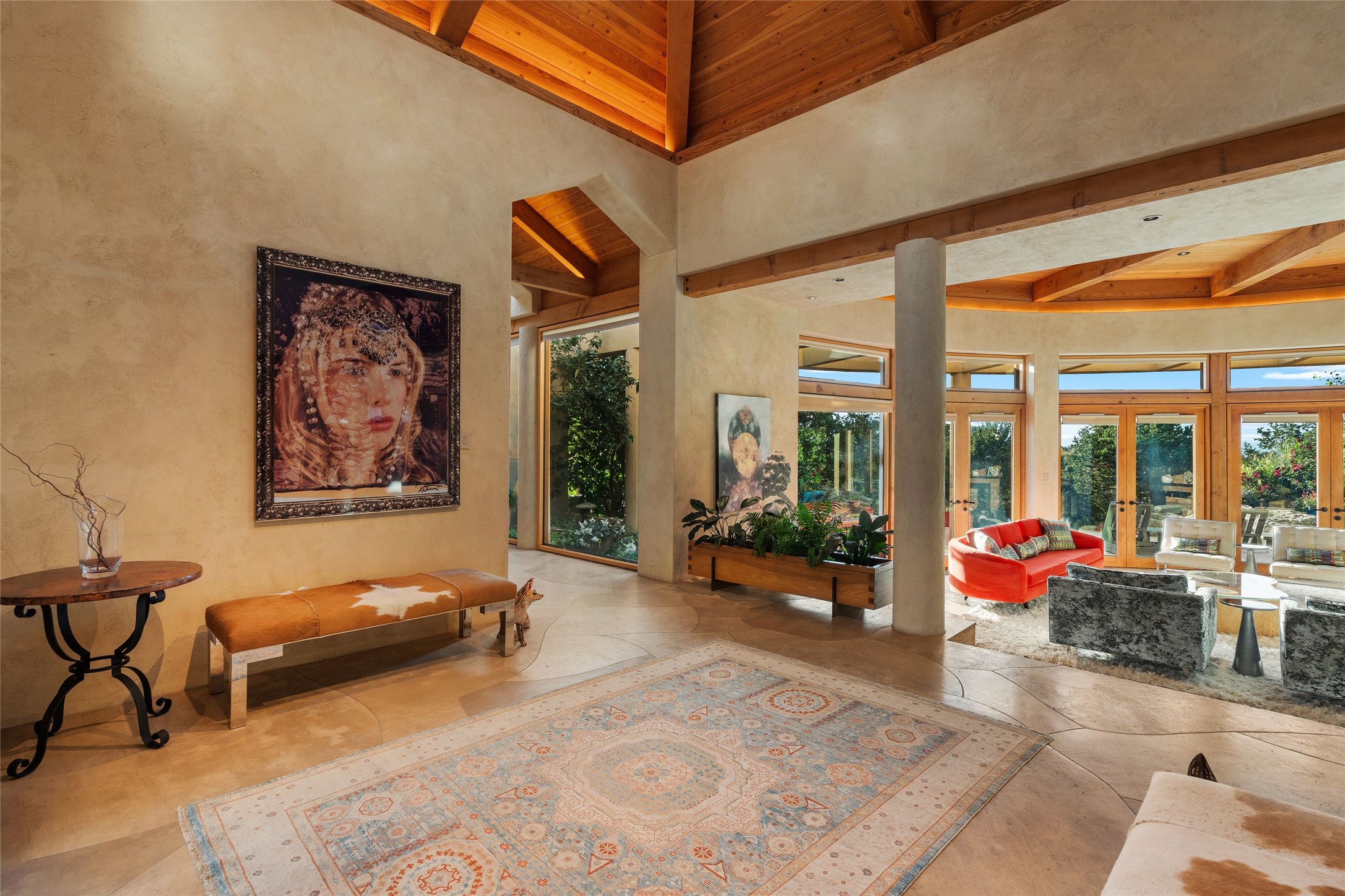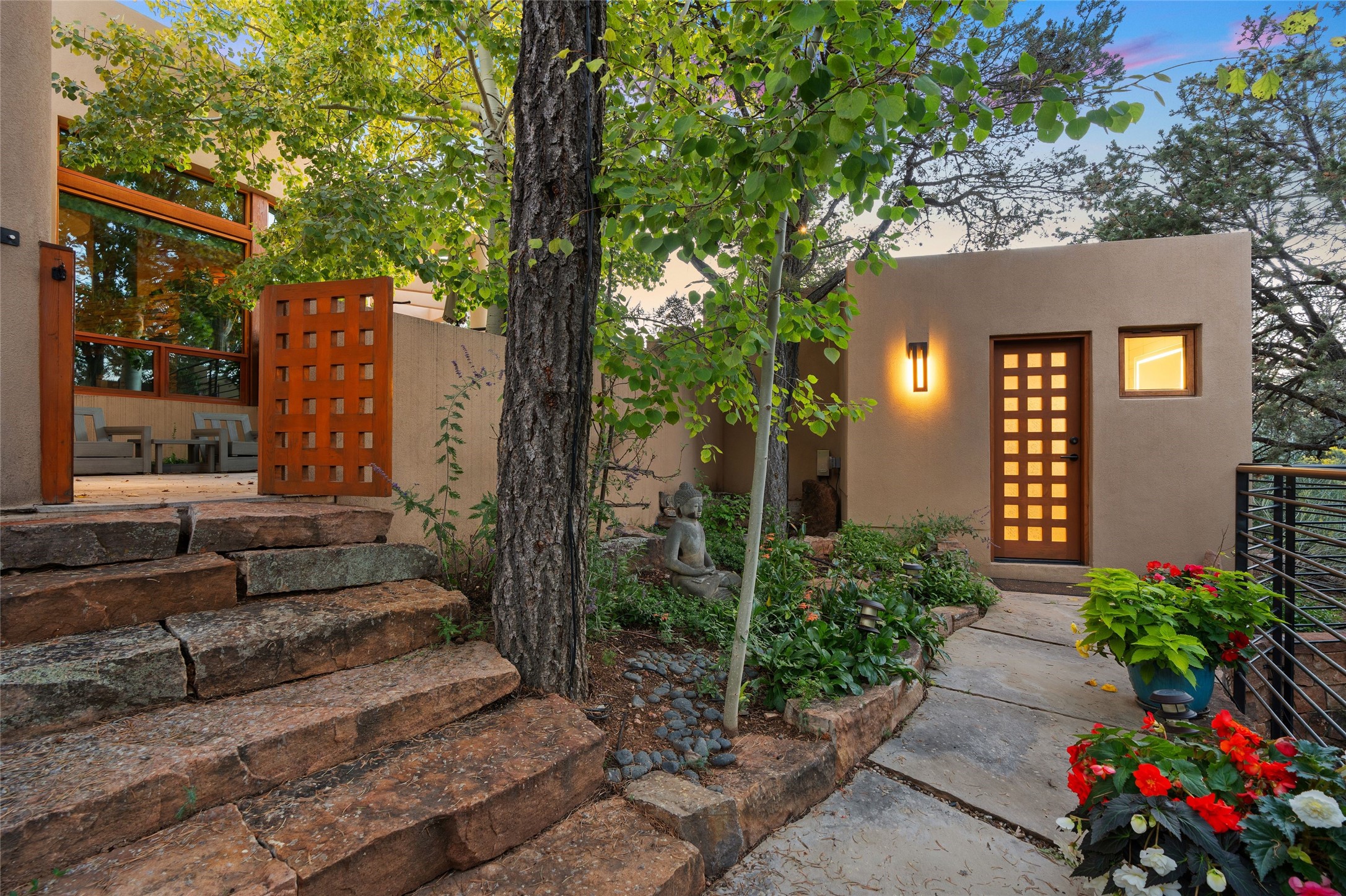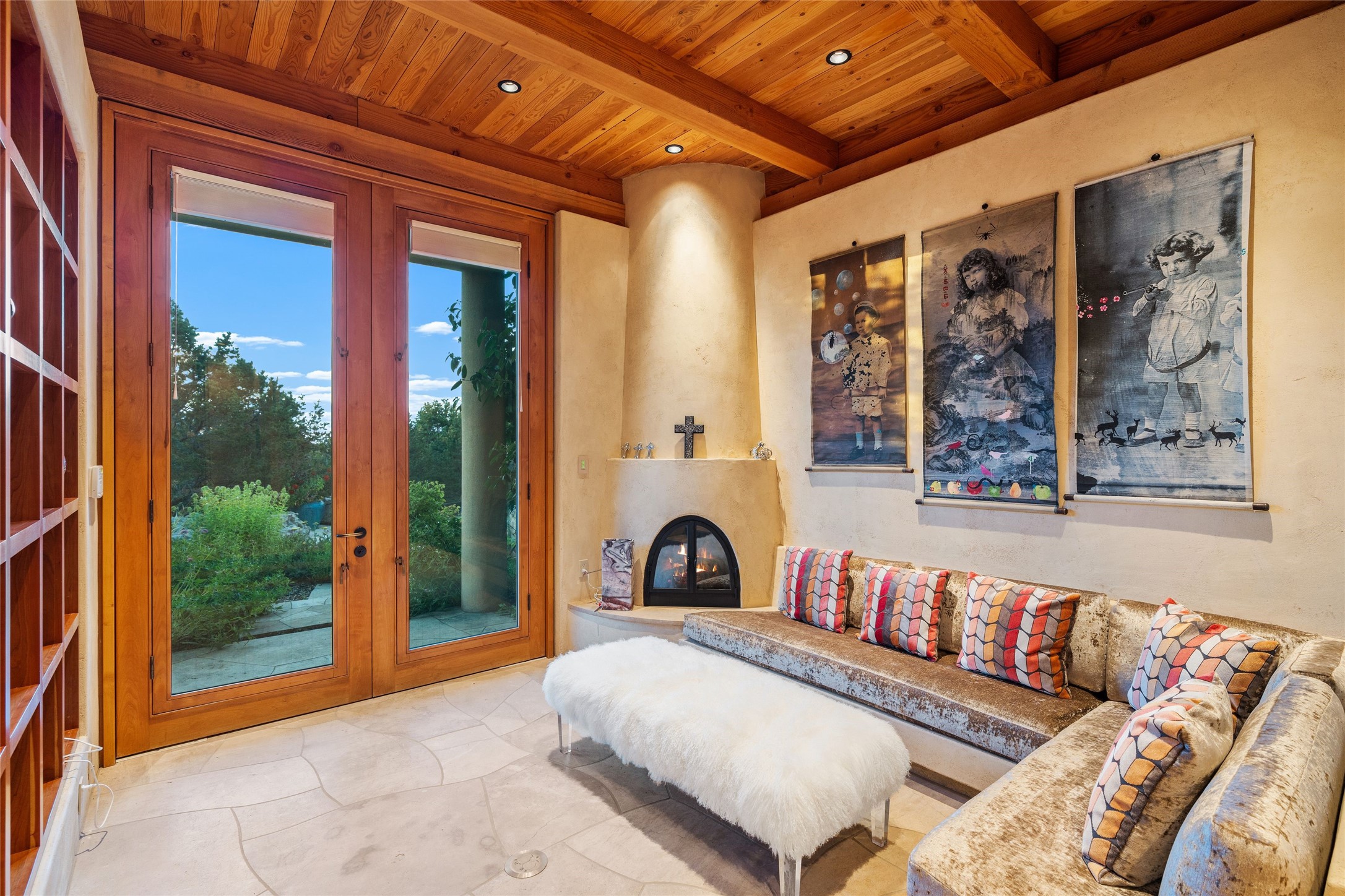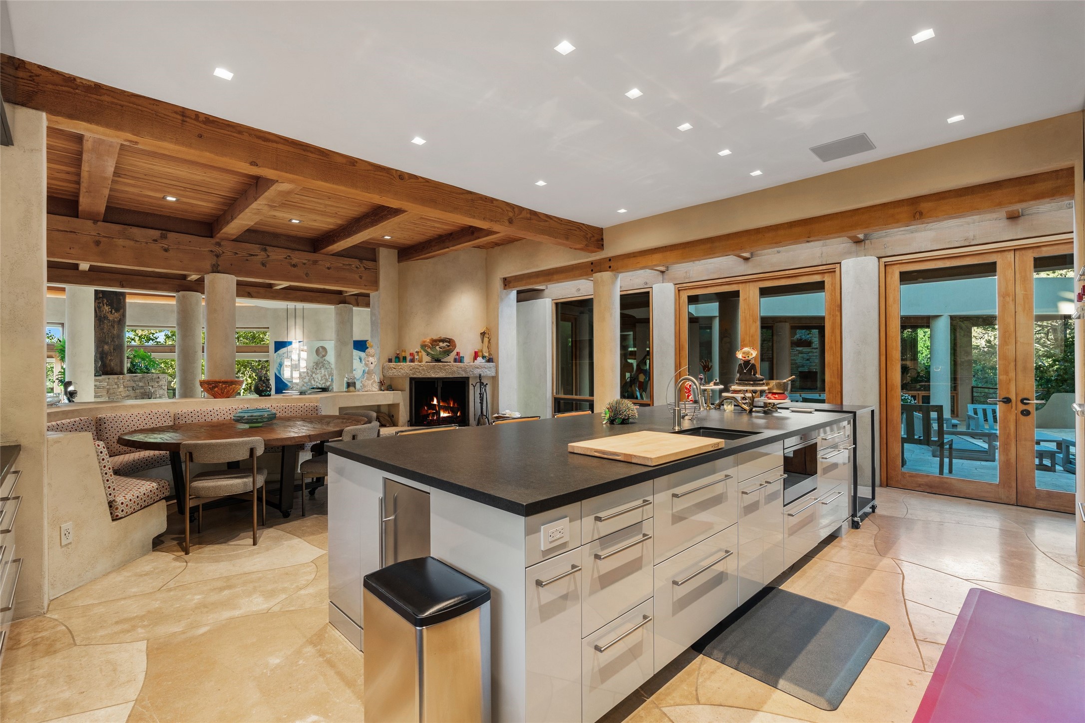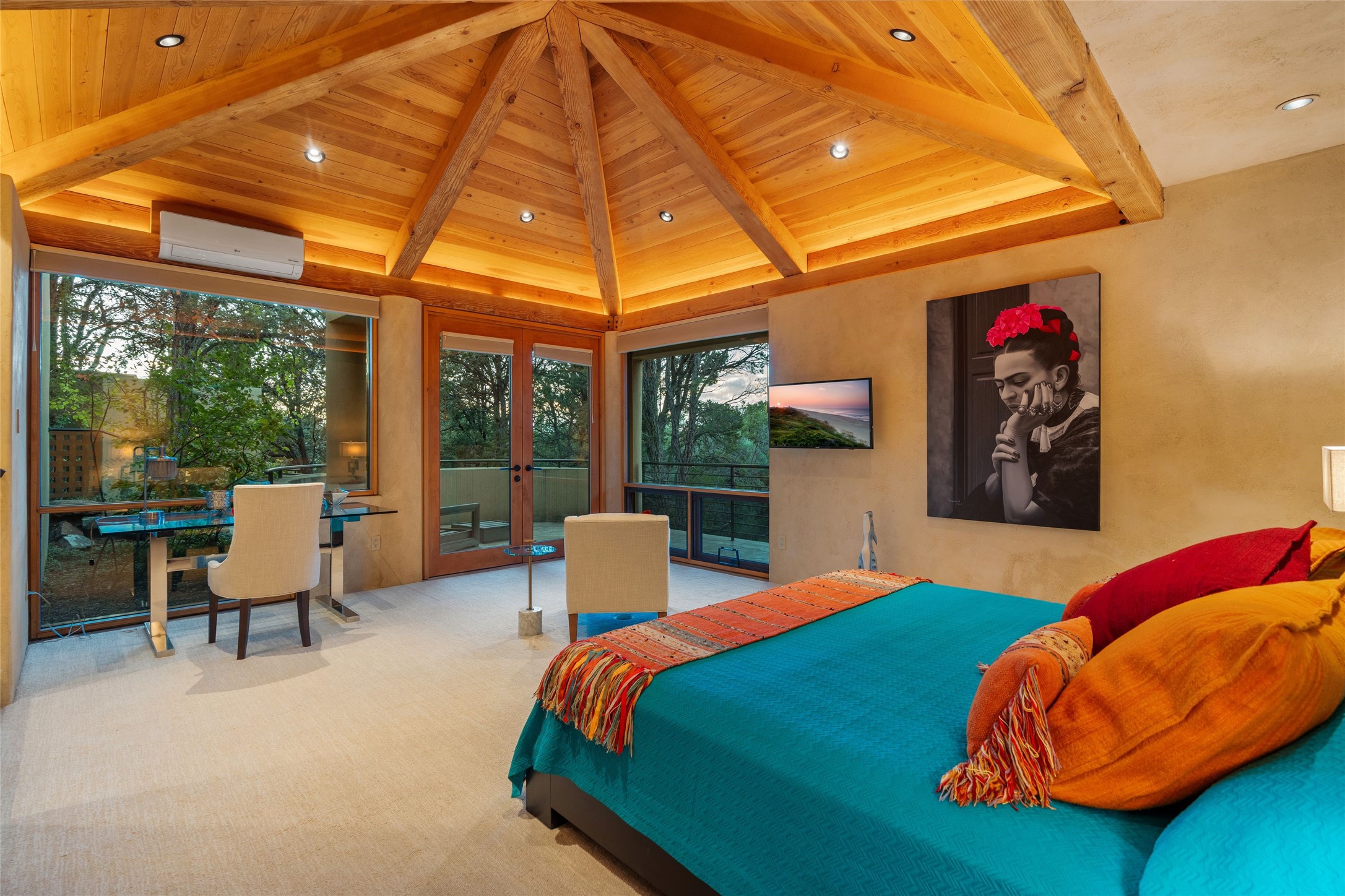 A Rare Masterpiece in Sierra del Norte! Welcome to 1056 Sierra del Norte--an architectural triumph and one of Santa Fe's most extraordinary residences! This estate offers breathtaking panoramic views and unmatched privacy from the moment you pass through the gated entrance. The heated driveway, stacked stone retaining walls, full-capacity generator, and an oversized four-car garage set the tone for the exceptional quality of this one-of-a-kind residence. Inside, grand entertaining spaces flow effortlessly around a world-class chef's kitchen, where top-tier appliances and exquisite finishes inspire culinary creativity. The design and craftsmanship throughout the home are truly unparalleled, with amazing custom details and impressive execution of unique design elements throughout. The expansive living room and formal dining area are anchored by a stunning natural stacked-stone gas fireplace, creating warmth and elegance. Enjoy evenings in the spacious media room, unwind at the custom bar, or challenge friends to Pool or Darts in the dedicated game room. Upstairs, a versatile studio space--perfect as a fifth bedroom--features a sitting room, bath, and access to a private viewing deck. Step outside to discover a sanctuary of lush, mature landscaping, multiple covered portals and patios, and a high-end outdoor kitchen ideal for alfresco dining. The infinity-edge pool and hot tub, complemented by a newly-built pool bath house, offer resort quality relaxation at your own property. The primary suite is a retreat unto itself, with a cozy library, a grand sleeping room, two fireplaces, a spa-inspired bath, and a magnificent walk-in closet. Each guest bedroom is a private suite, thoughtfully separated for lavish comfort and complete tranquility. This is more than a home--it's a lifestyle! With room to grow and views that inspire, 1056 Sierra del Norte is a rare opportunity to own a piece of Santa Fe paradise! Included with the home is a vacant, unimproved adjacent lot, offering rare potential for future expansion or permanent open space.