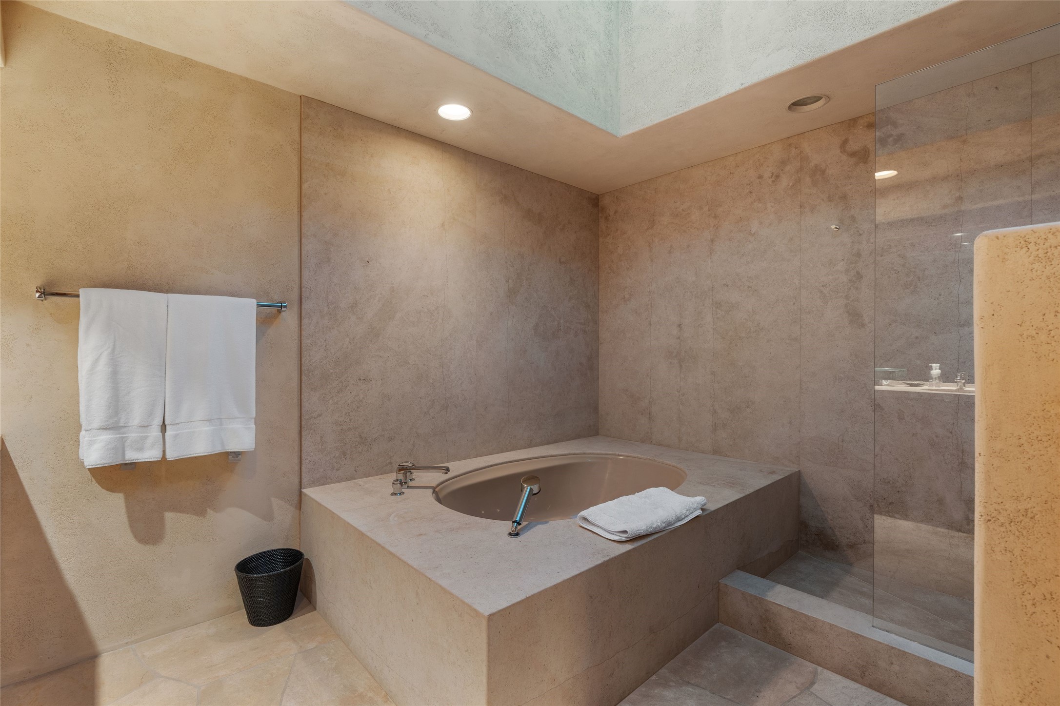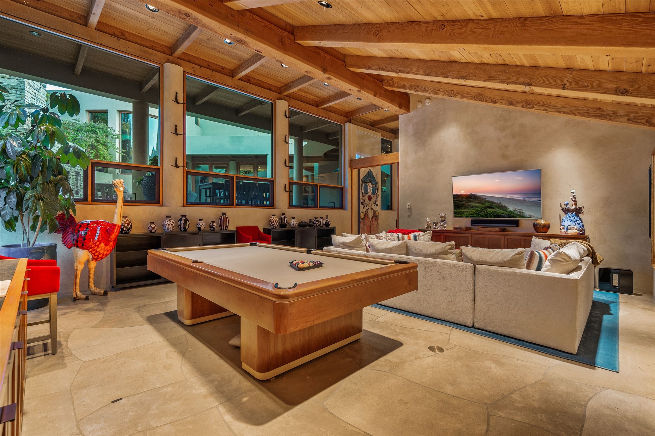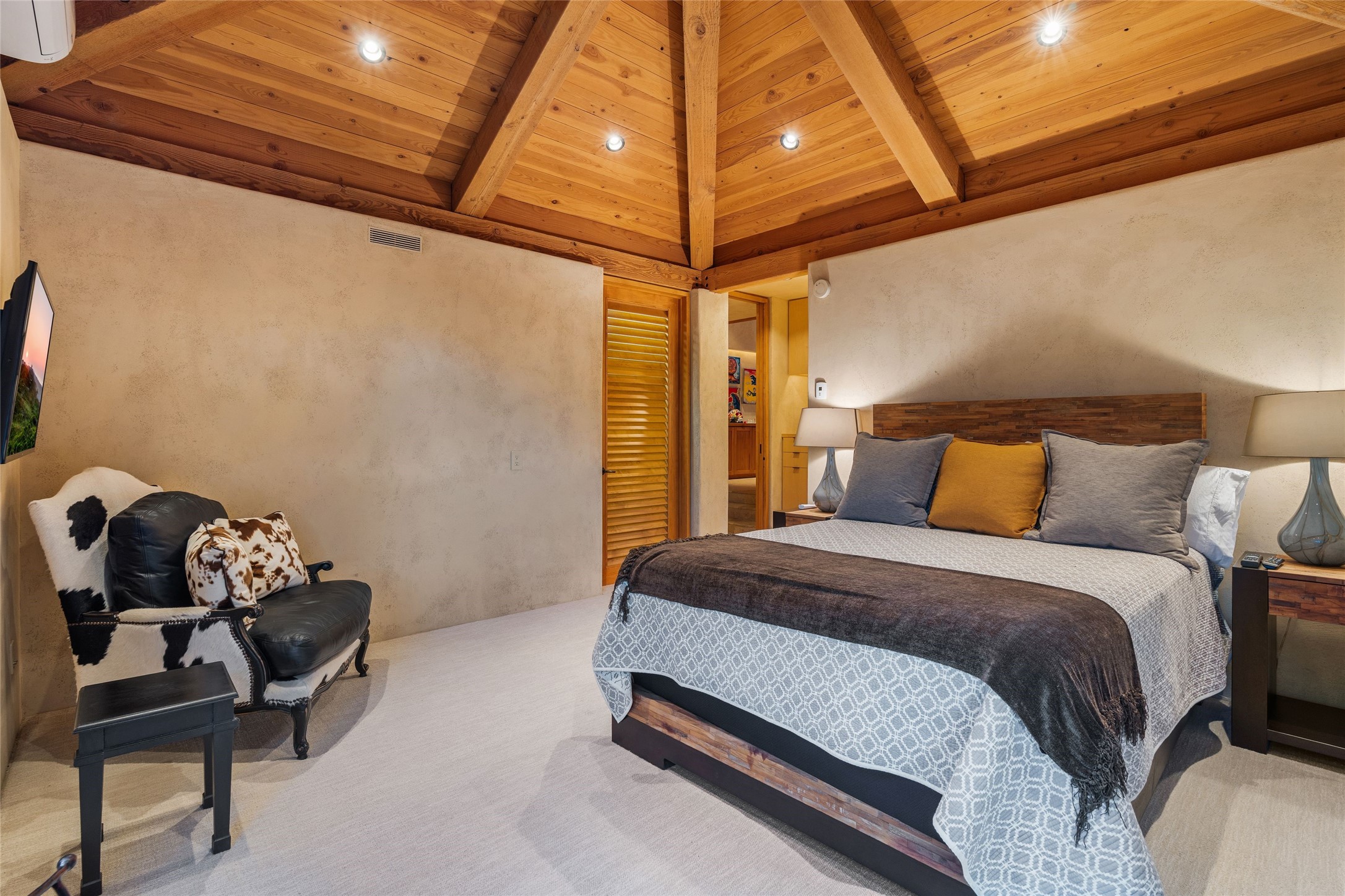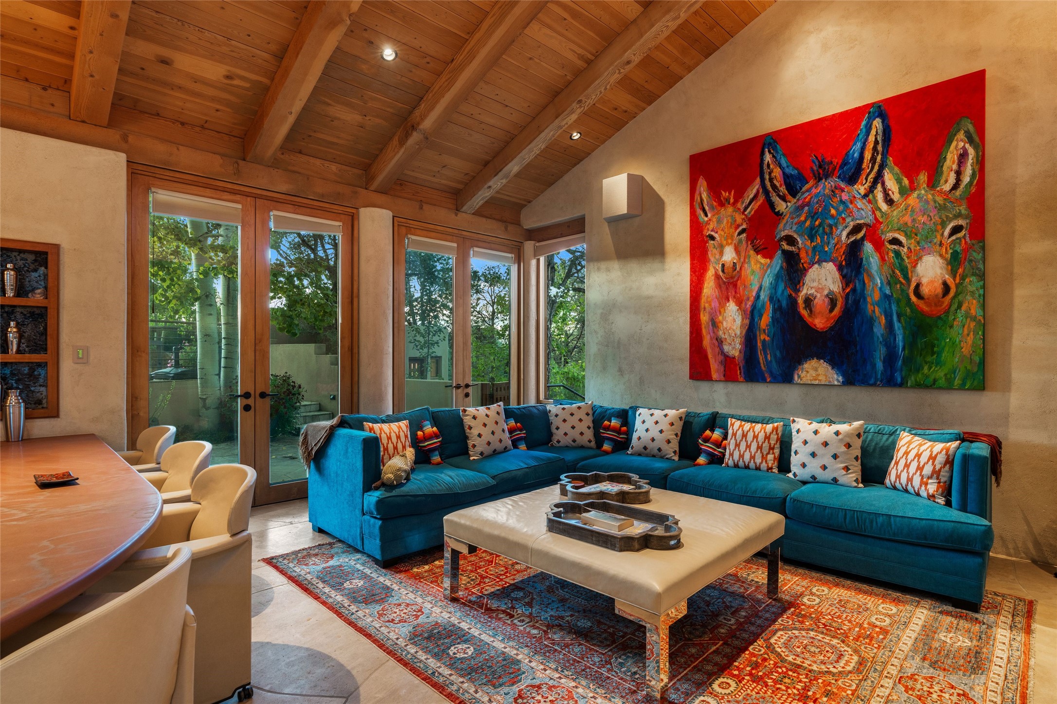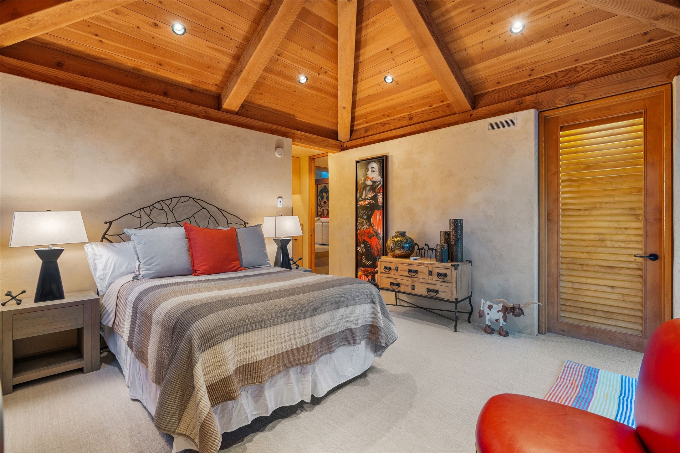 A Rare Masterpiece in Sierra del Norte! Welcome to 1056 Sierra del Norte--an architectural triumph and one of Santa Fe's most extraordinary residences! This estate offers breathtaking panoramic views and unmatched privacy from the moment you pass through the gated entrance. The heated driveway, stacked stone retaining walls, full-capacity generator, and an oversized four-car garage set the tone for the exceptional quality of this one-of-a-kind residence. Inside, grand entertaining spaces flow effortlessly around a world-class chef's kitchen, where top-tier appliances and exquisite finishes inspire culinary creativity. The design and craftsmanship throughout the home are truly unparalleled, with amazing custom details and impressive execution of unique design elements throughout. The expansive living room and formal dining area are anchored by a stunning natural stacked-stone gas fireplace, creating warmth and elegance. Enjoy evenings in the spacious media room, unwind at the custom bar, or challenge friends to Pool or Darts in the dedicated game room. Upstairs, a versatile studio space--perfect as a fifth bedroom--features a sitting room, bath, and access to a private viewing deck. Step outside to discover a sanctuary of lush, mature landscaping, multiple covered portals and patios, and a high-end outdoor kitchen ideal for alfresco dining. The infinity-edge pool and hot tub, complemented by a newly-built pool bath house, offer resort quality relaxation at your own property. The primary suite is a retreat unto itself, with a cozy library, a grand sleeping room, two fireplaces, a spa-inspired bath, and a magnificent walk-in closet. Each guest bedroom is a private suite, thoughtfully separated for lavish comfort and complete tranquility. This is more than a home--it's a lifestyle! With room to grow and views that inspire, 1056 Sierra del Norte is a rare opportunity to own a piece of Santa Fe paradise! Included with the home is a vacant, unimproved adjacent lot, offering rare potential for future expansion or permanent open space.