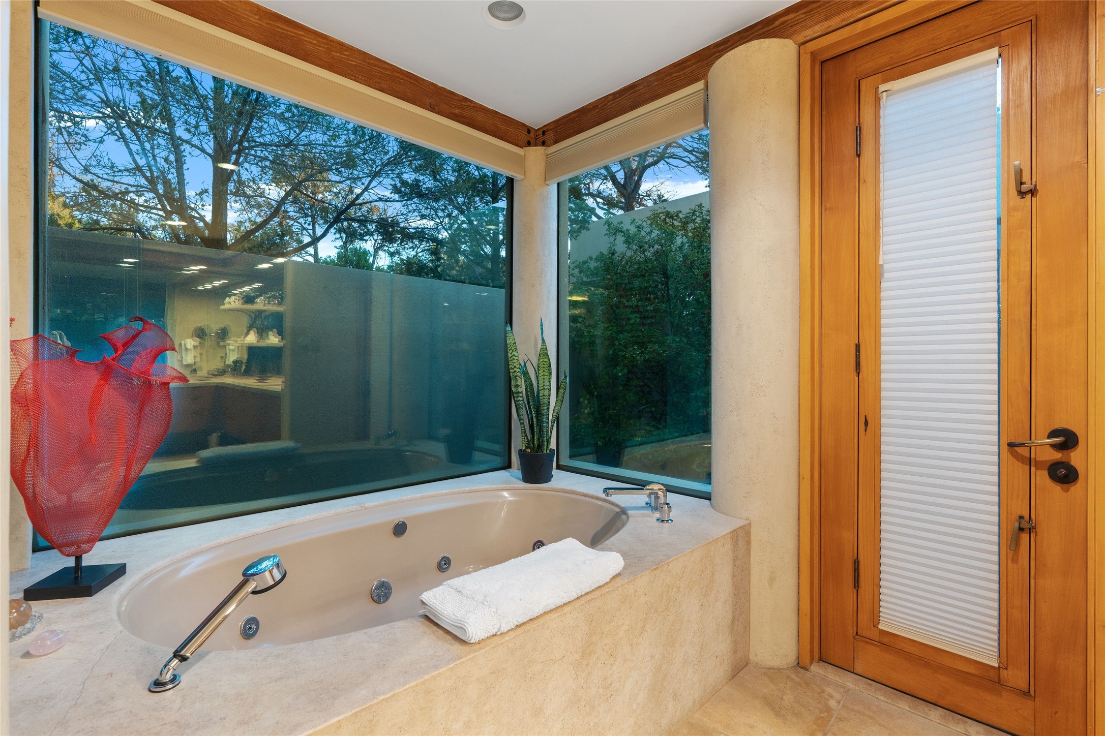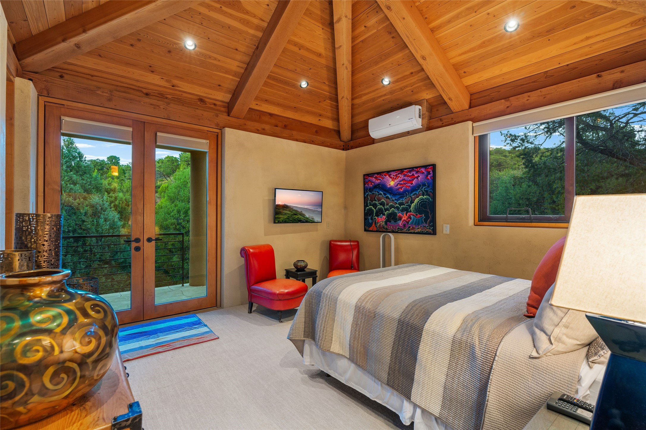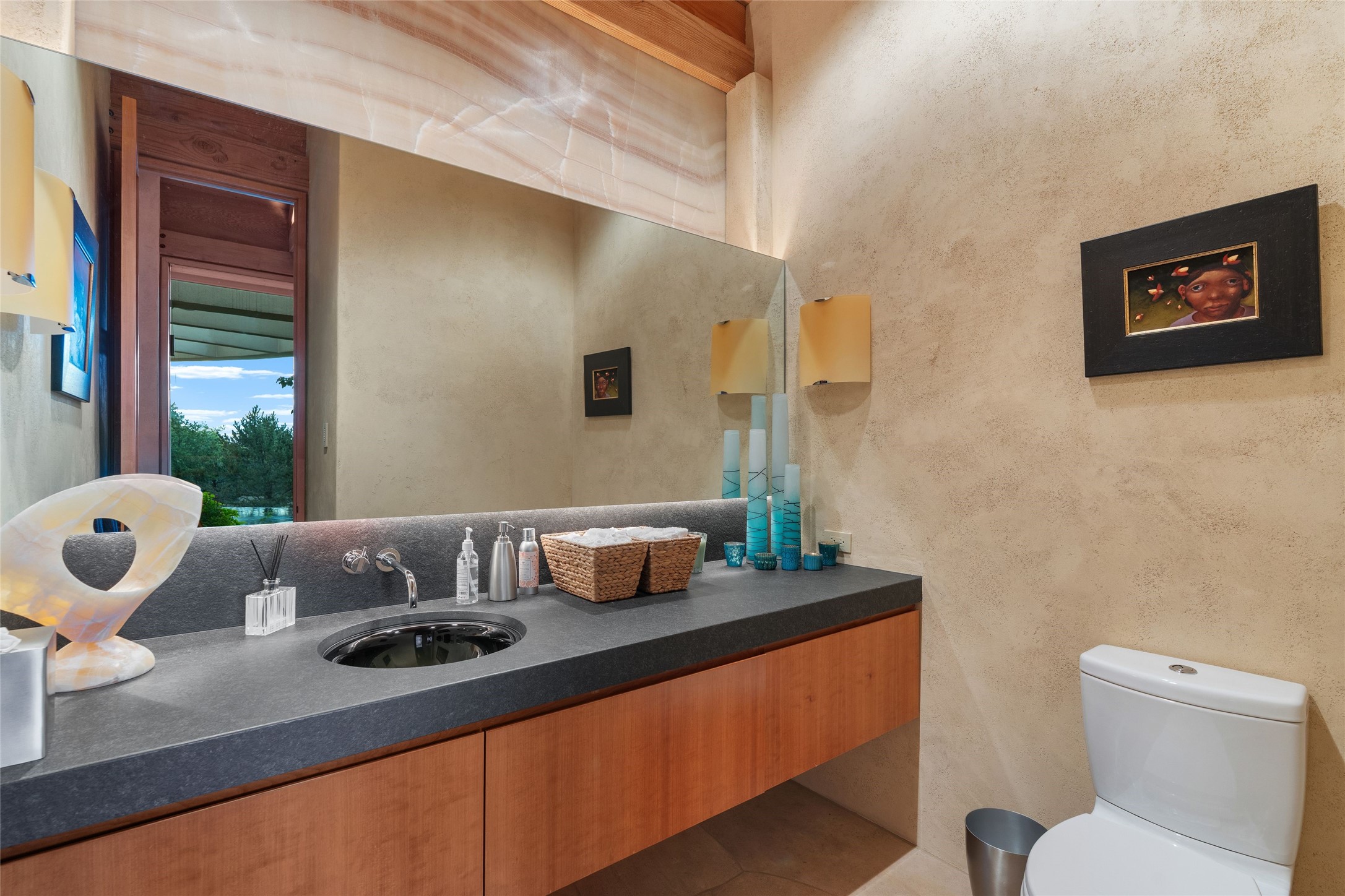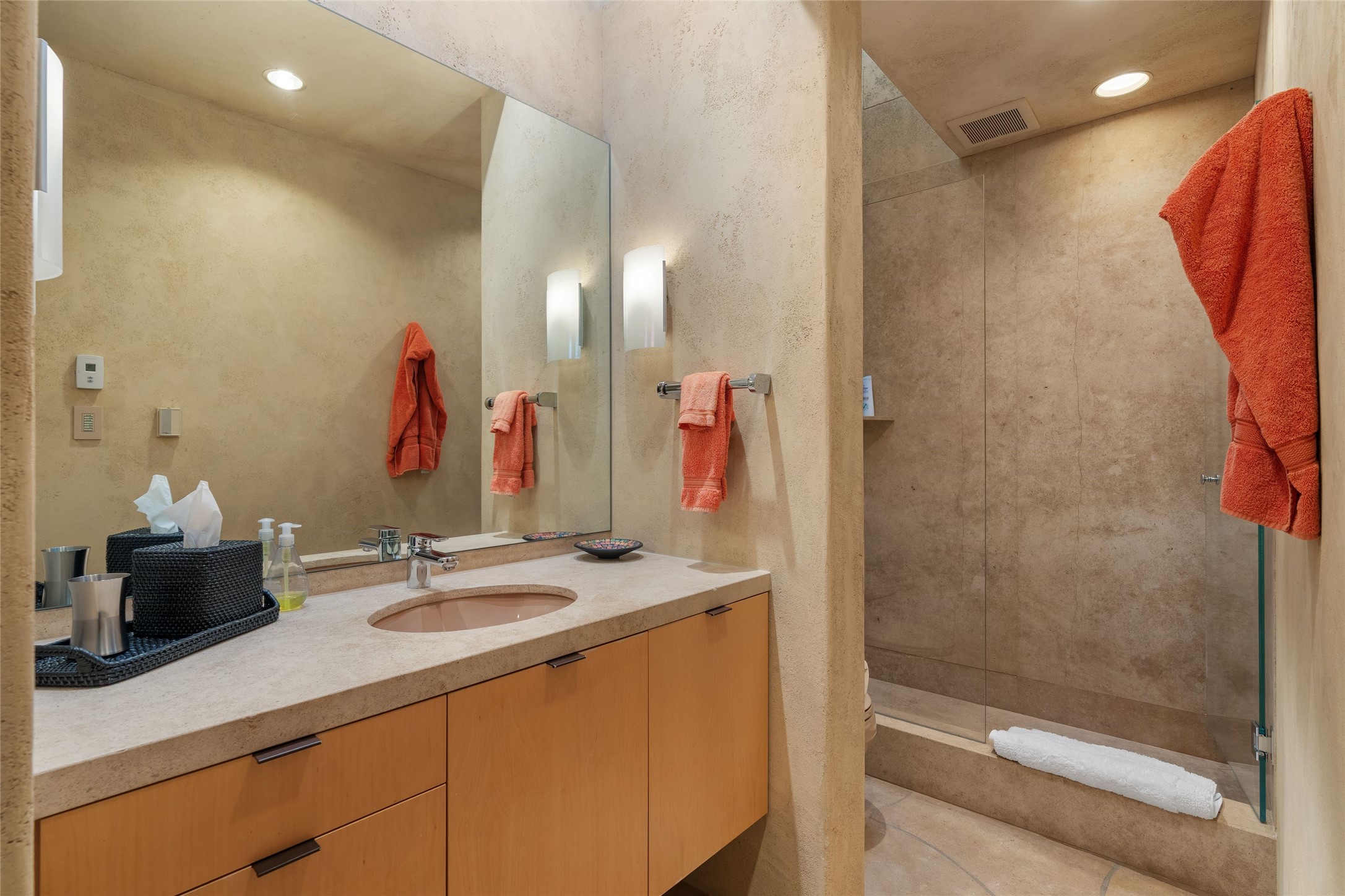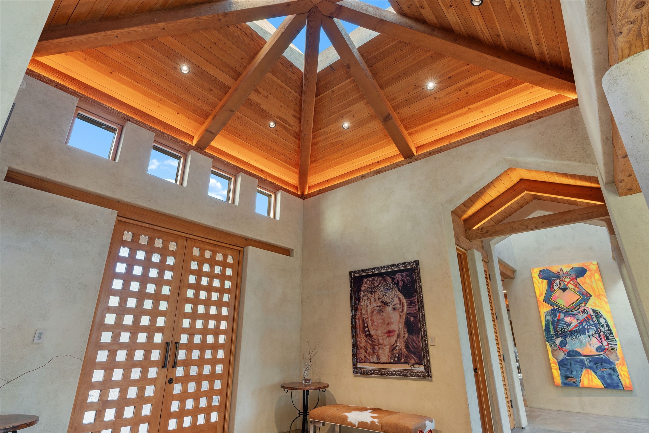 A Rare Masterpiece in Sierra del Norte! Welcome to 1056 Sierra del Norte--an architectural triumph and one of Santa Fe's most extraordinary residences! This estate offers breathtaking panoramic views and unmatched privacy from the moment you pass through the gated entrance. The heated driveway, stacked stone retaining walls, full-capacity generator, and an oversized four-car garage set the tone for the exceptional quality of this one-of-a-kind residence. Inside, grand entertaining spaces flow effortlessly around a world-class chef's kitchen, where top-tier appliances and exquisite finishes inspire culinary creativity. The design and craftsmanship throughout the home are truly unparalleled, with amazing custom details and impressive execution of unique design elements throughout. The expansive living room and formal dining area are anchored by a stunning natural stacked-stone gas fireplace, creating warmth and elegance. Enjoy evenings in the spacious media room, unwind at the custom bar, or challenge friends to Pool or Darts in the dedicated game room. Upstairs, a versatile studio space--perfect as a fifth bedroom--features a sitting room, bath, and access to a private viewing deck. Step outside to discover a sanctuary of lush, mature landscaping, multiple covered portals and patios, and a high-end outdoor kitchen ideal for alfresco dining. The infinity-edge pool and hot tub, complemented by a newly-built pool bath house, offer resort quality relaxation at your own property. The primary suite is a retreat unto itself, with a cozy library, a grand sleeping room, two fireplaces, a spa-inspired bath, and a magnificent walk-in closet. Each guest bedroom is a private suite, thoughtfully separated for lavish comfort and complete tranquility. This is more than a home--it's a lifestyle! With room to grow and views that inspire, 1056 Sierra del Norte is a rare opportunity to own a piece of Santa Fe paradise! Included with the home is a vacant, unimproved adjacent lot, offering rare potential for future expansion or permanent open space.