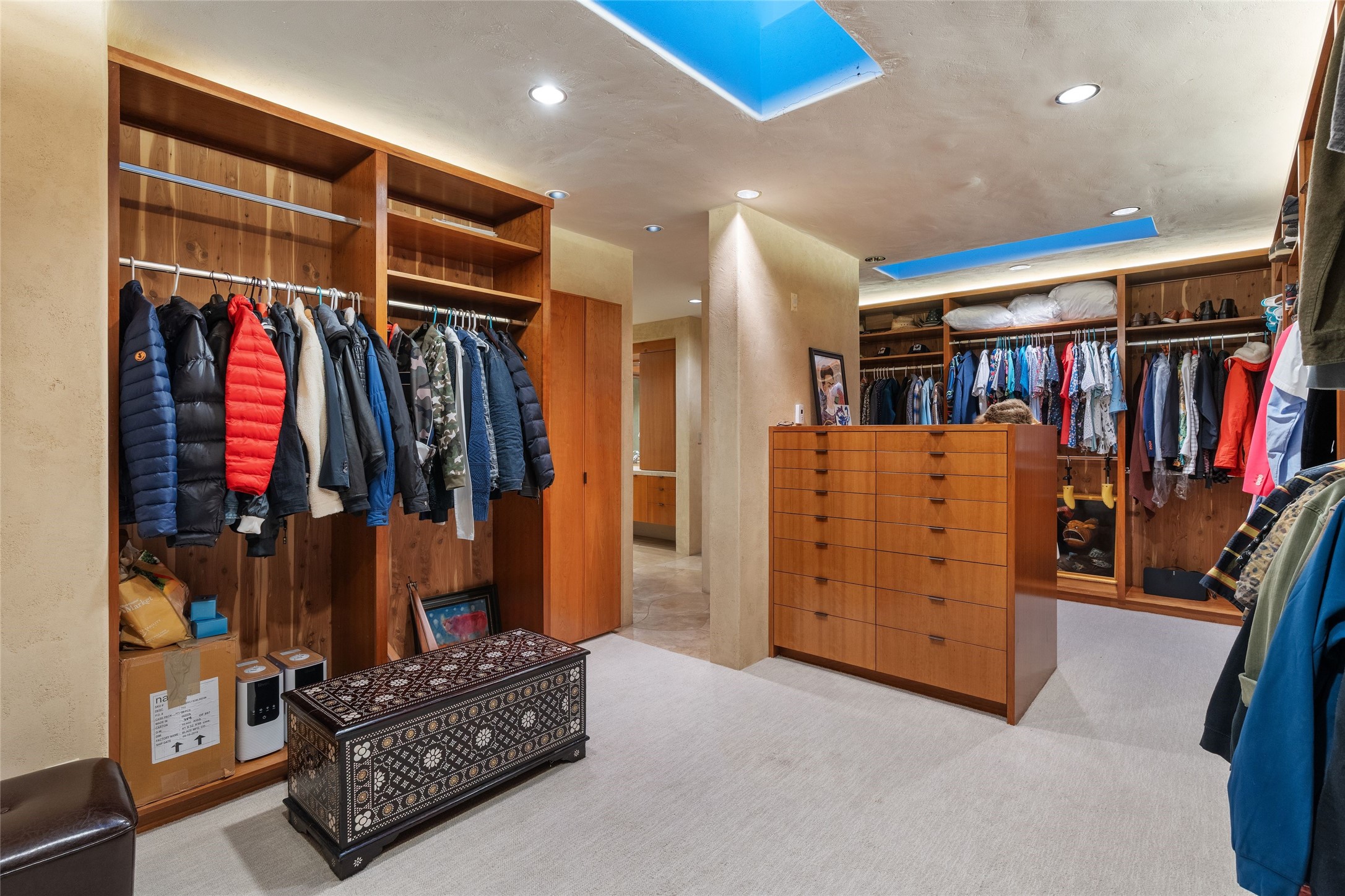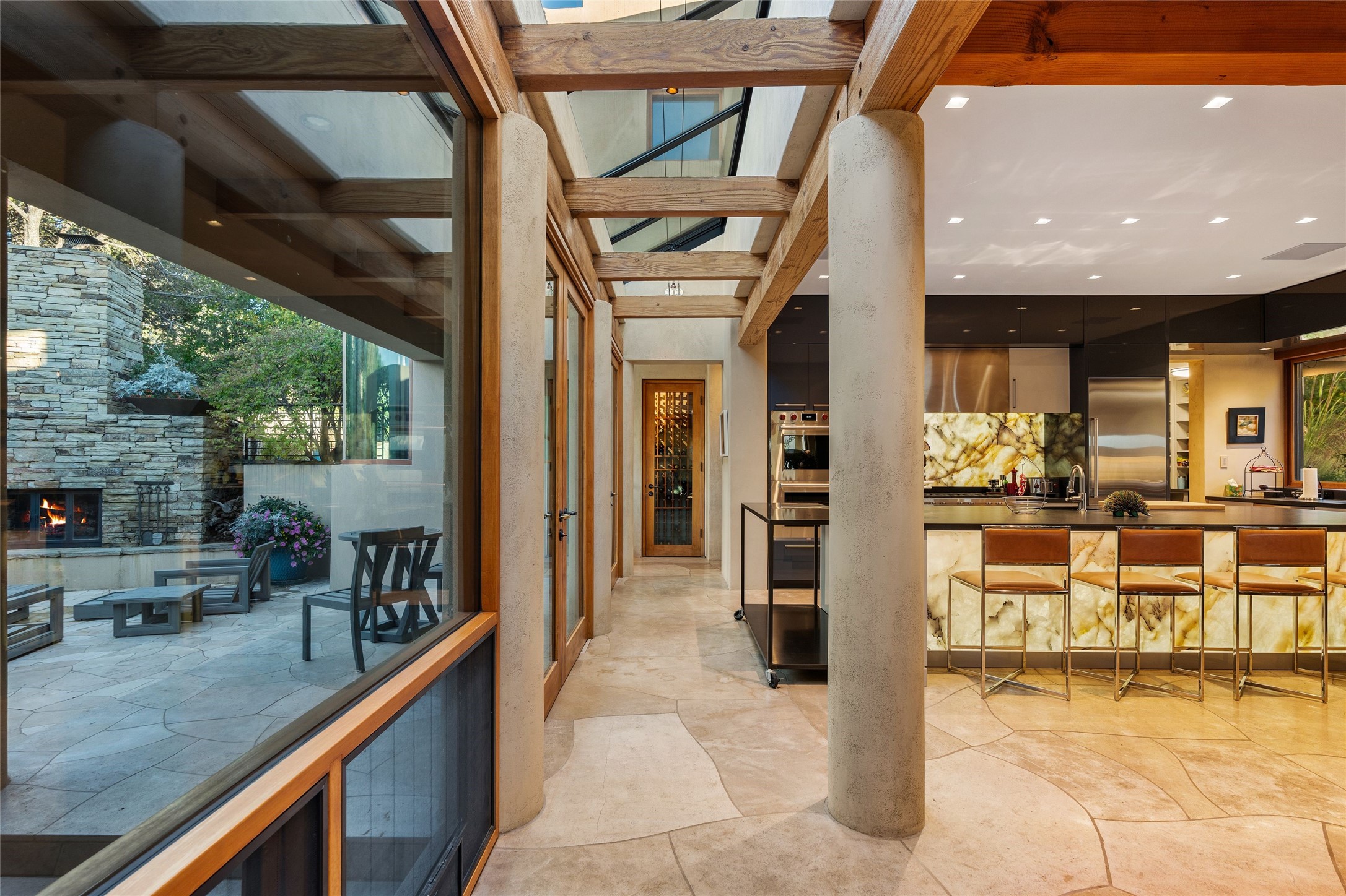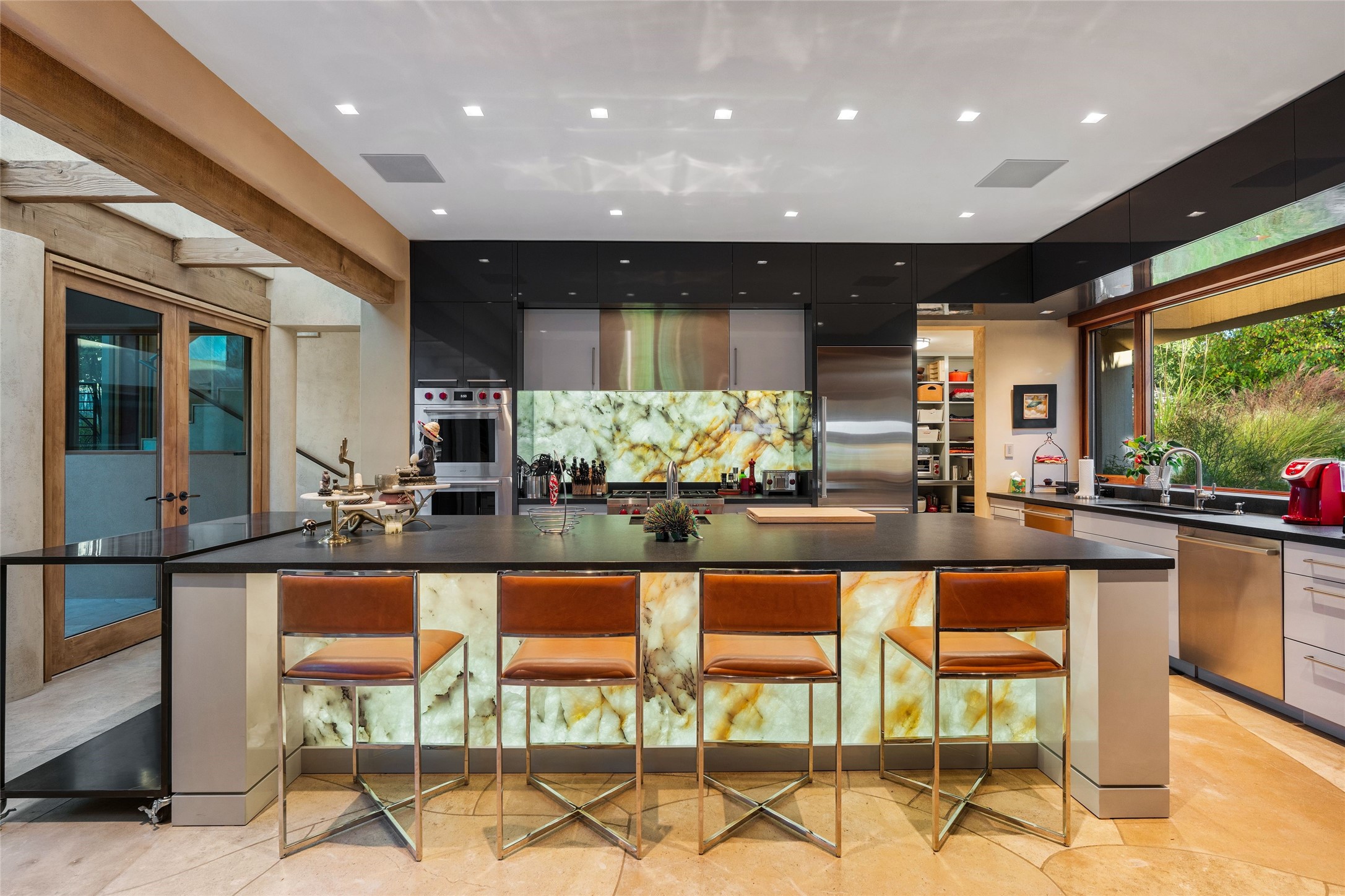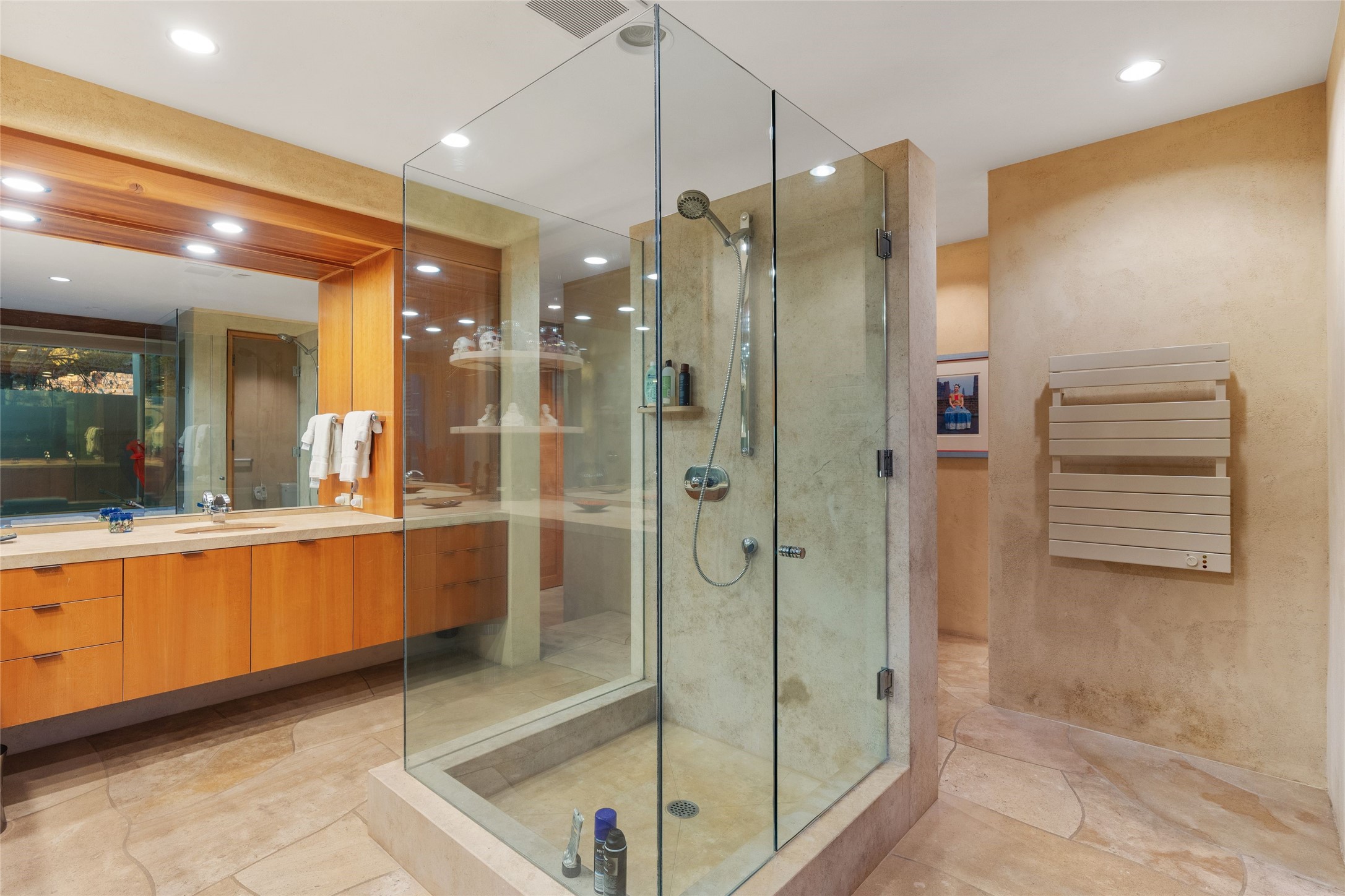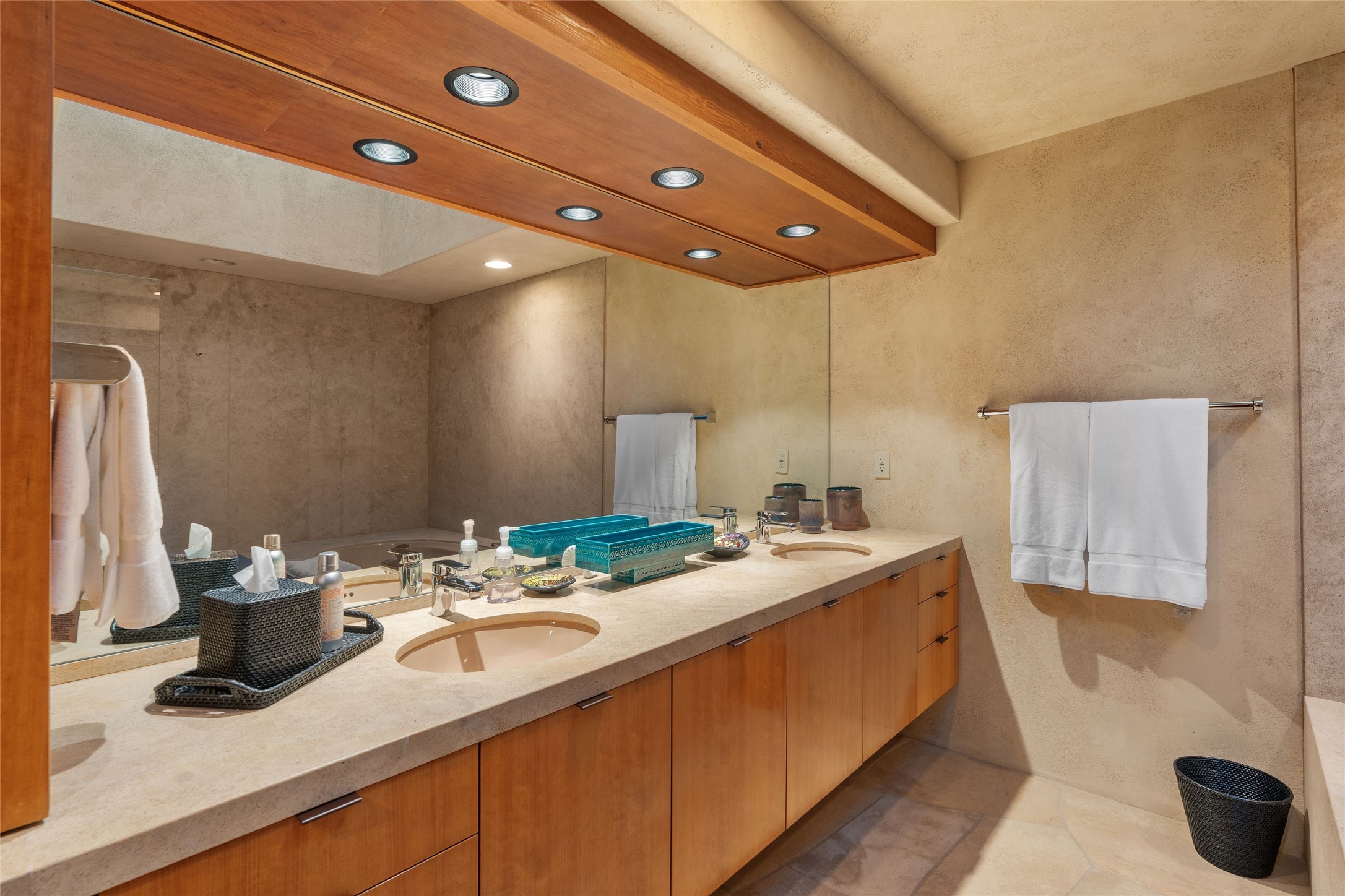 A Rare Masterpiece in Sierra del Norte! Welcome to 1056 Sierra del Norte--an architectural triumph and one of Santa Fe's most extraordinary residences! This estate offers breathtaking panoramic views and unmatched privacy from the moment you pass through the gated entrance. The heated driveway, stacked stone retaining walls, full-capacity generator, and an oversized four-car garage set the tone for the exceptional quality of this one-of-a-kind residence. Inside, grand entertaining spaces flow effortlessly around a world-class chef's kitchen, where top-tier appliances and exquisite finishes inspire culinary creativity. The design and craftsmanship throughout the home are truly unparalleled, with amazing custom details and impressive execution of unique design elements throughout. The expansive living room and formal dining area are anchored by a stunning natural stacked-stone gas fireplace, creating warmth and elegance. Enjoy evenings in the spacious media room, unwind at the custom bar, or challenge friends to Pool or Darts in the dedicated game room. Upstairs, a versatile studio space--perfect as a fifth bedroom--features a sitting room, bath, and access to a private viewing deck. Step outside to discover a sanctuary of lush, mature landscaping, multiple covered portals and patios, and a high-end outdoor kitchen ideal for alfresco dining. The infinity-edge pool and hot tub, complemented by a newly-built pool bath house, offer resort quality relaxation at your own property. The primary suite is a retreat unto itself, with a cozy library, a grand sleeping room, two fireplaces, a spa-inspired bath, and a magnificent walk-in closet. Each guest bedroom is a private suite, thoughtfully separated for lavish comfort and complete tranquility. This is more than a home--it's a lifestyle! With room to grow and views that inspire, 1056 Sierra del Norte is a rare opportunity to own a piece of Santa Fe paradise! Included with the home is a vacant, unimproved adjacent lot, offering rare potential for future expansion or permanent open space.