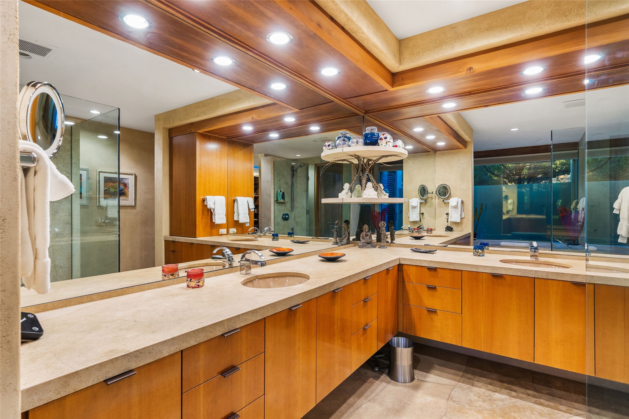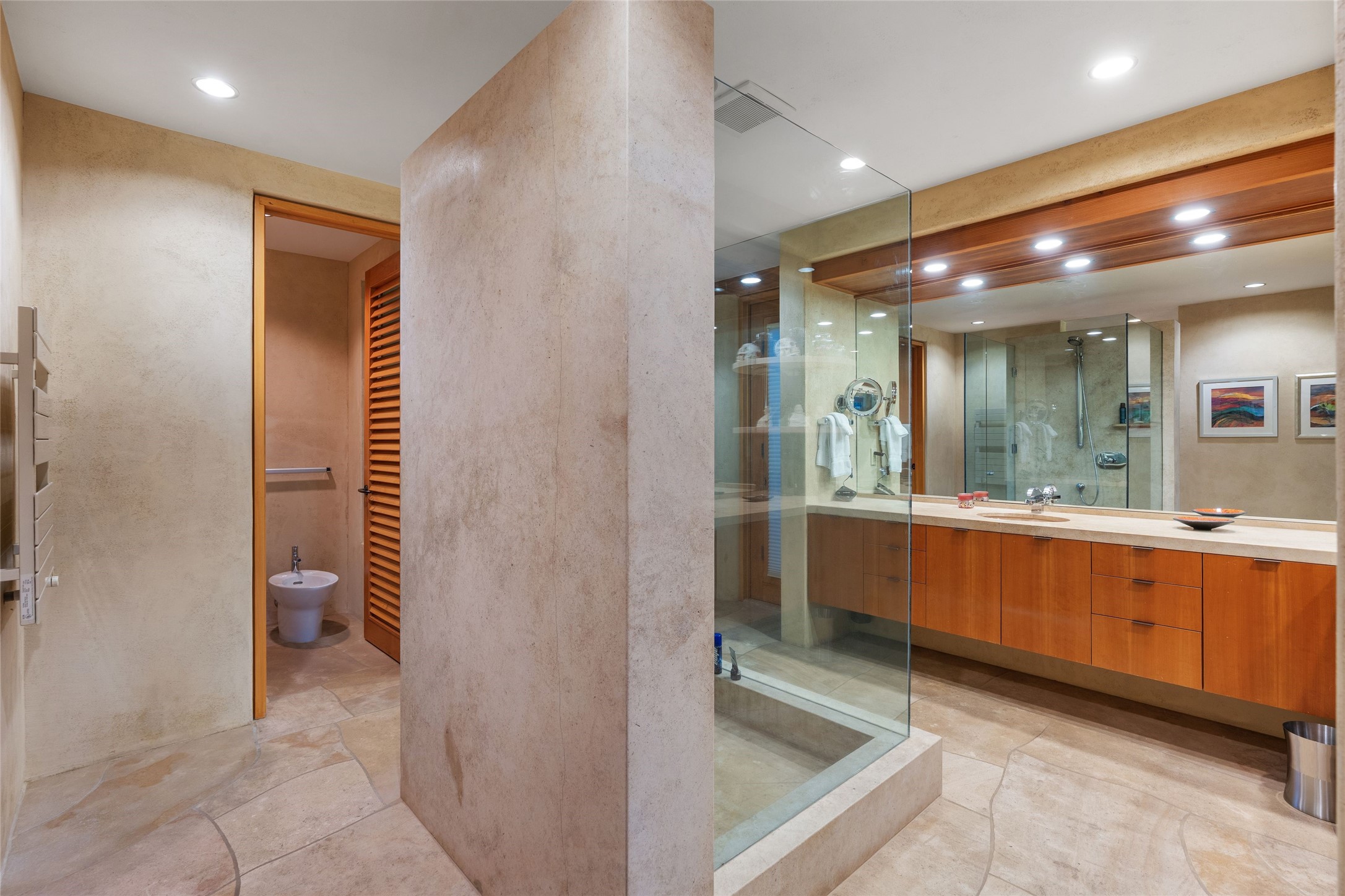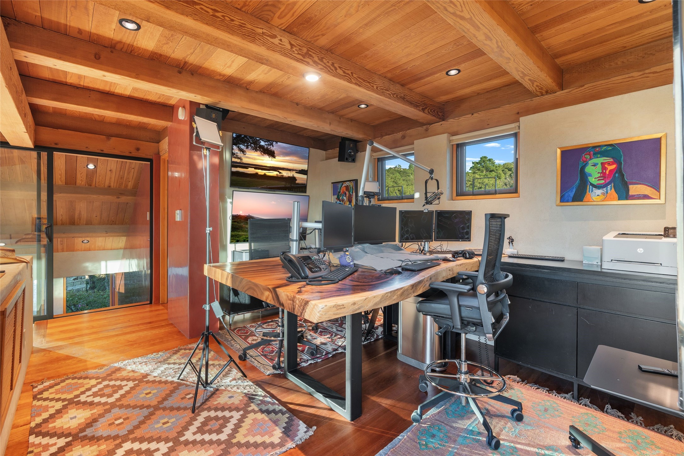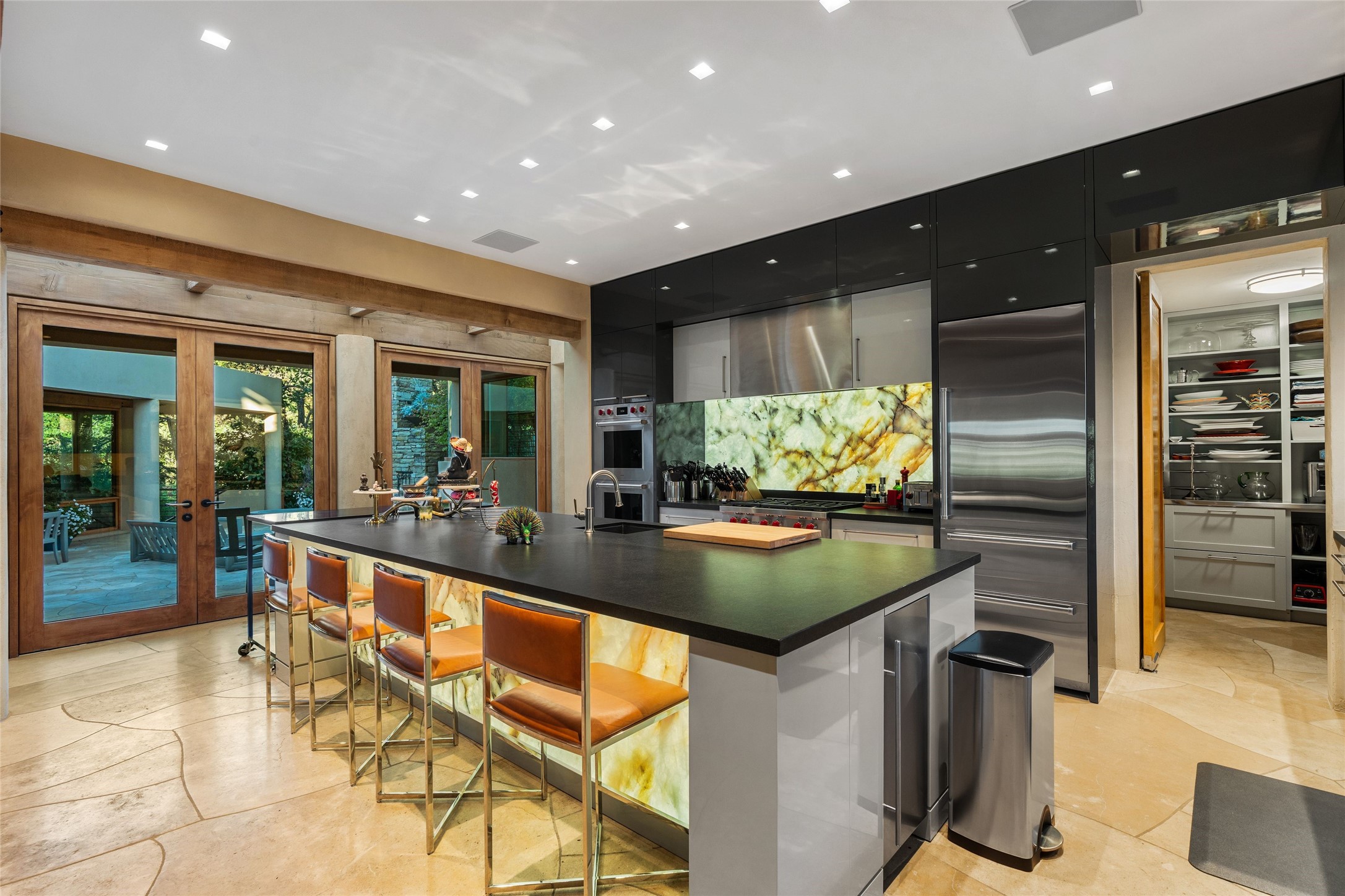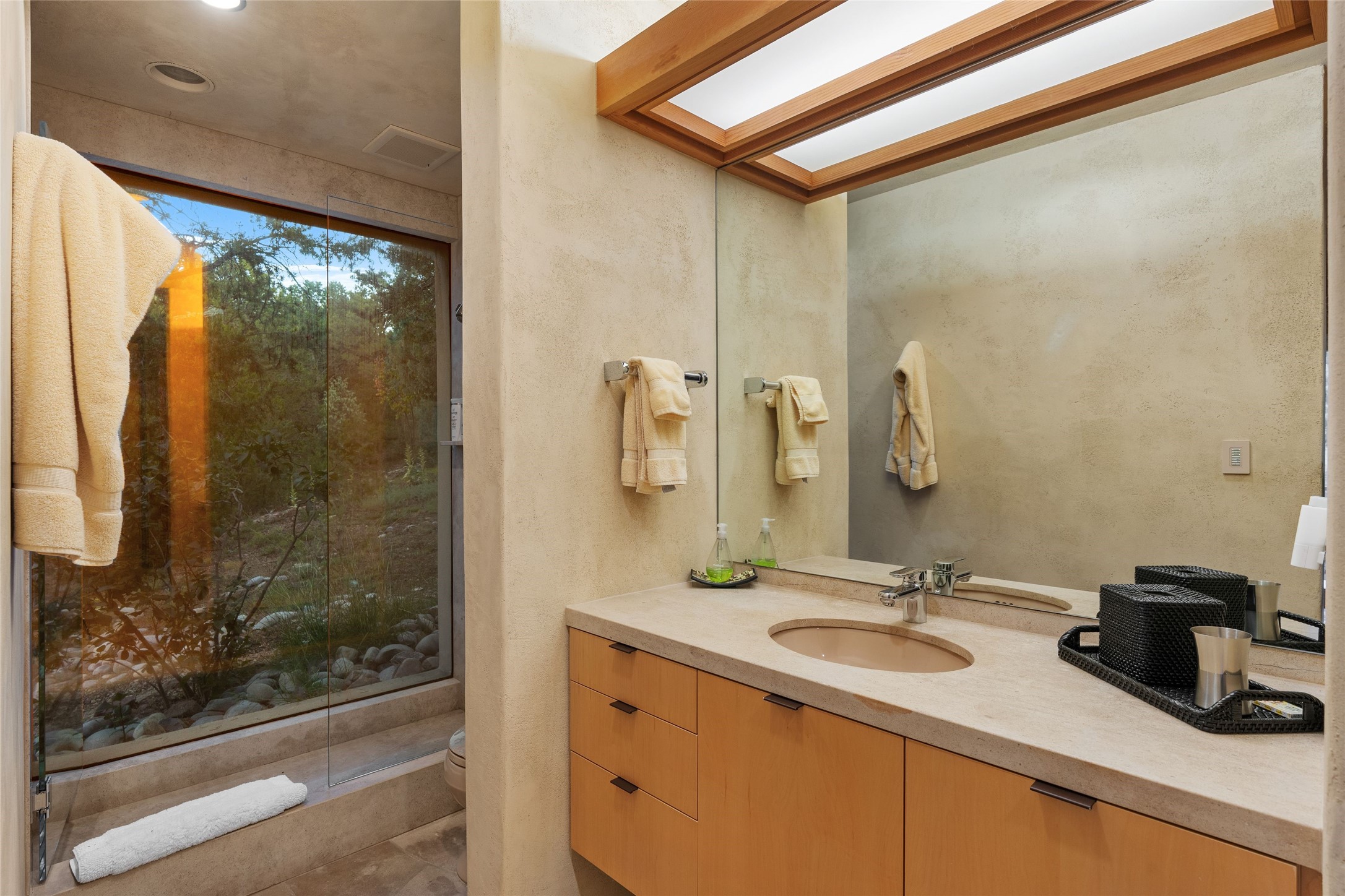 A Rare Masterpiece in Sierra del Norte! Welcome to 1056 Sierra del Norte--an architectural triumph and one of Santa Fe's most extraordinary residences! This estate offers breathtaking panoramic views and unmatched privacy from the moment you pass through the gated entrance. The heated driveway, stacked stone retaining walls, full-capacity generator, and an oversized four-car garage set the tone for the exceptional quality of this one-of-a-kind residence. Inside, grand entertaining spaces flow effortlessly around a world-class chef's kitchen, where top-tier appliances and exquisite finishes inspire culinary creativity. The design and craftsmanship throughout the home are truly unparalleled, with amazing custom details and impressive execution of unique design elements throughout. The expansive living room and formal dining area are anchored by a stunning natural stacked-stone gas fireplace, creating warmth and elegance. Enjoy evenings in the spacious media room, unwind at the custom bar, or challenge friends to Pool or Darts in the dedicated game room. Upstairs, a versatile studio space--perfect as a fifth bedroom--features a sitting room, bath, and access to a private viewing deck. Step outside to discover a sanctuary of lush, mature landscaping, multiple covered portals and patios, and a high-end outdoor kitchen ideal for alfresco dining. The infinity-edge pool and hot tub, complemented by a newly-built pool bath house, offer resort quality relaxation at your own property. The primary suite is a retreat unto itself, with a cozy library, a grand sleeping room, two fireplaces, a spa-inspired bath, and a magnificent walk-in closet. Each guest bedroom is a private suite, thoughtfully separated for lavish comfort and complete tranquility. This is more than a home--it's a lifestyle! With room to grow and views that inspire, 1056 Sierra del Norte is a rare opportunity to own a piece of Santa Fe paradise! Included with the home is a vacant, unimproved adjacent lot, offering rare potential for future expansion or permanent open space.