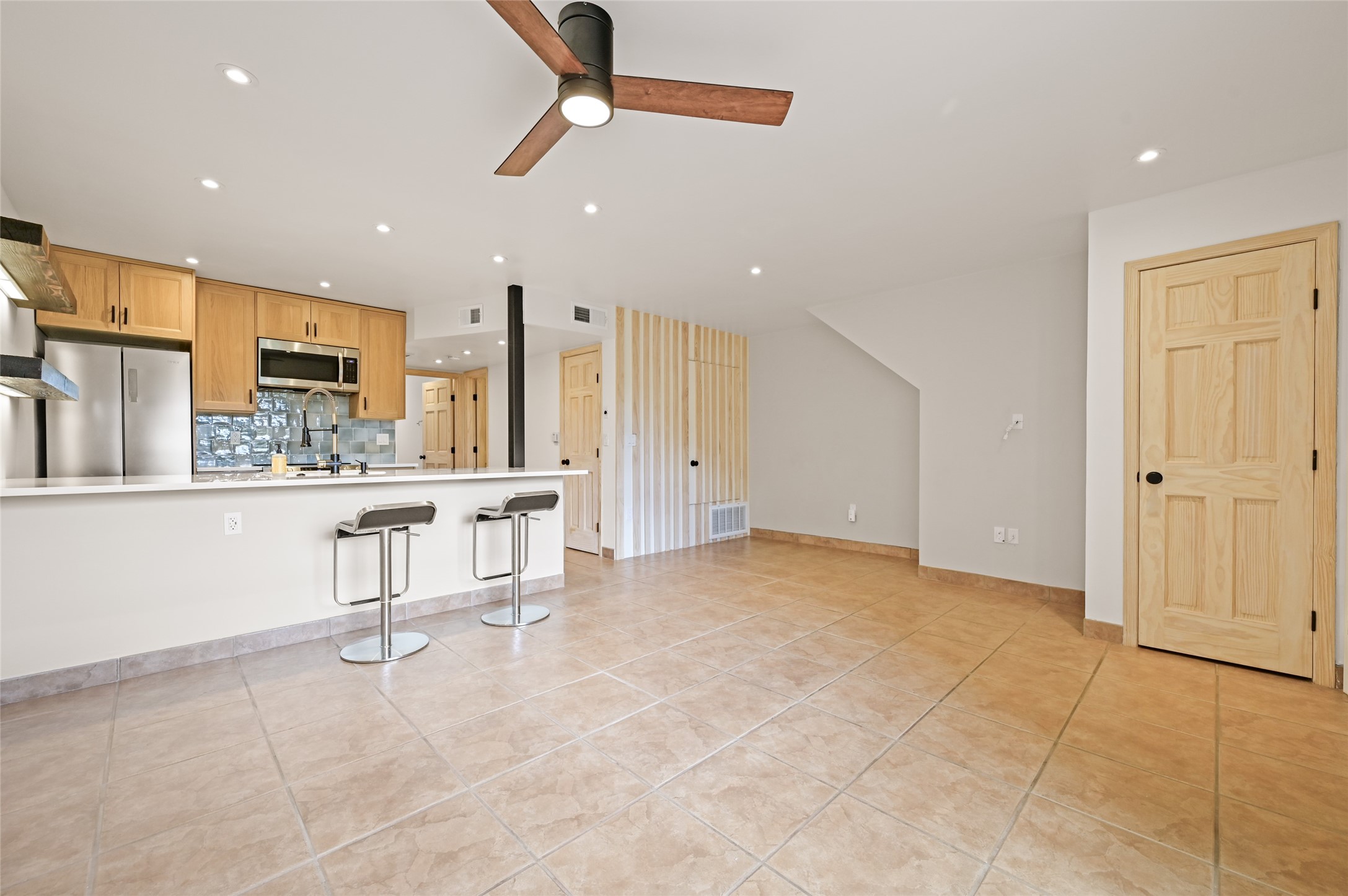 Prepare to be impressed! This beautifully remodeled Dos Santos condo stands out with modern, high-quality upgrades. Every detail has been thoughtfully selected, creating a sleek and contemporary space that's completely move-in ready. Step inside to find all new interior doors and a fully renovated kitchen, designed with style and function in mind. From the cast iron sink and updated appliances to the custom cabinetry, every feature reflects excellent taste. New plumbing fixtures, lighting, and ceiling fans enhance the fresh feel throughout. The bathroom features new cabinetry, a spacious walk-in shower, and marble tile surrounds. Practical improvements include a new furnace, tankless water heater, and added ceiling insulation with recessed lighting. Outside, a private fenced portal offers a welcoming spot to unwind. Living in Dos Santos means resort-style amenities: a saltwater outdoor pool, year-round hot tub, fitness center, clubhouse, BBQ area with picnic tables and mountain views--all within a secure, gated community. This is truly one of the finest condos in Dos Santos--beautifully finished, impeccably maintained, and ready for its next owner.
