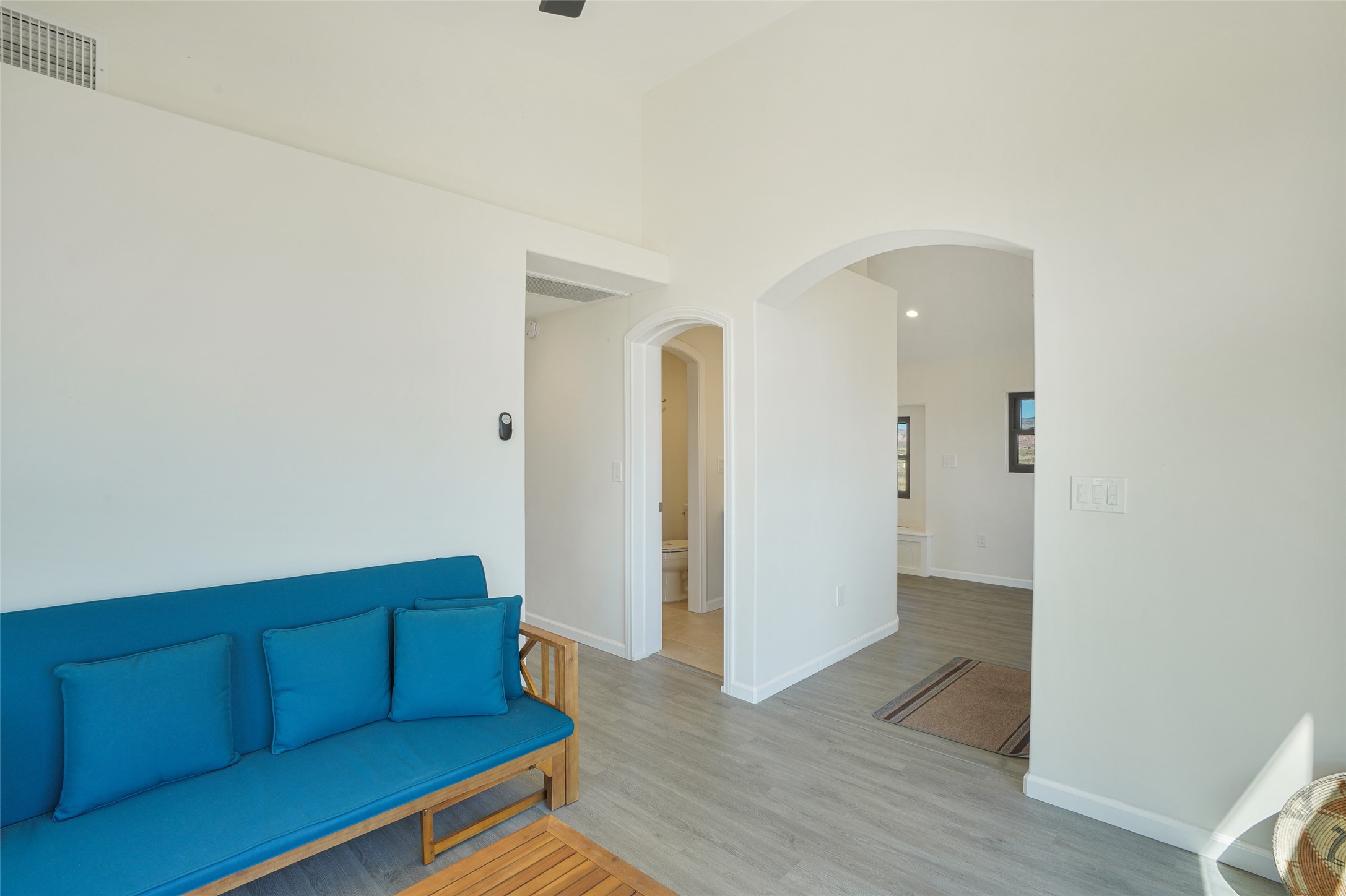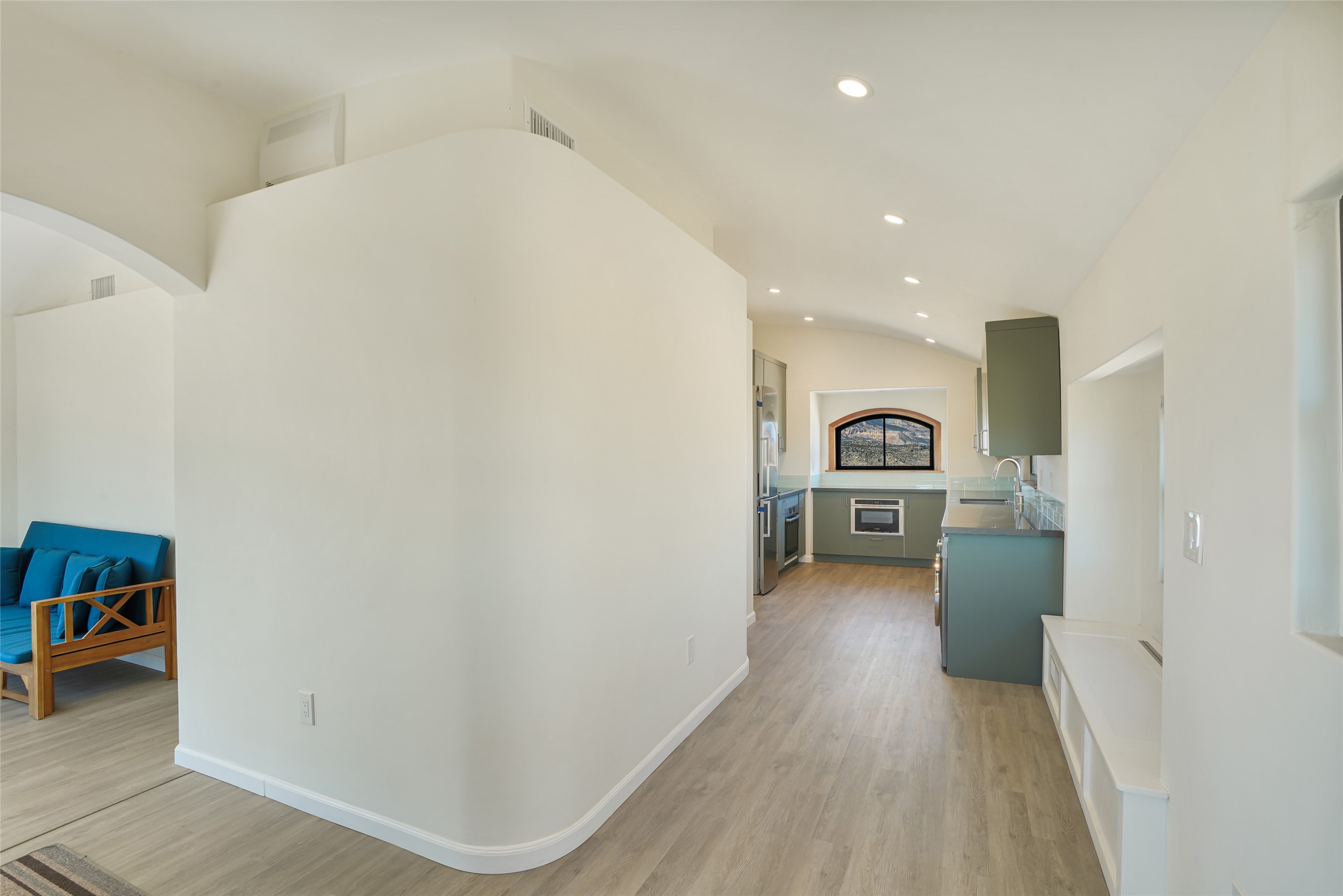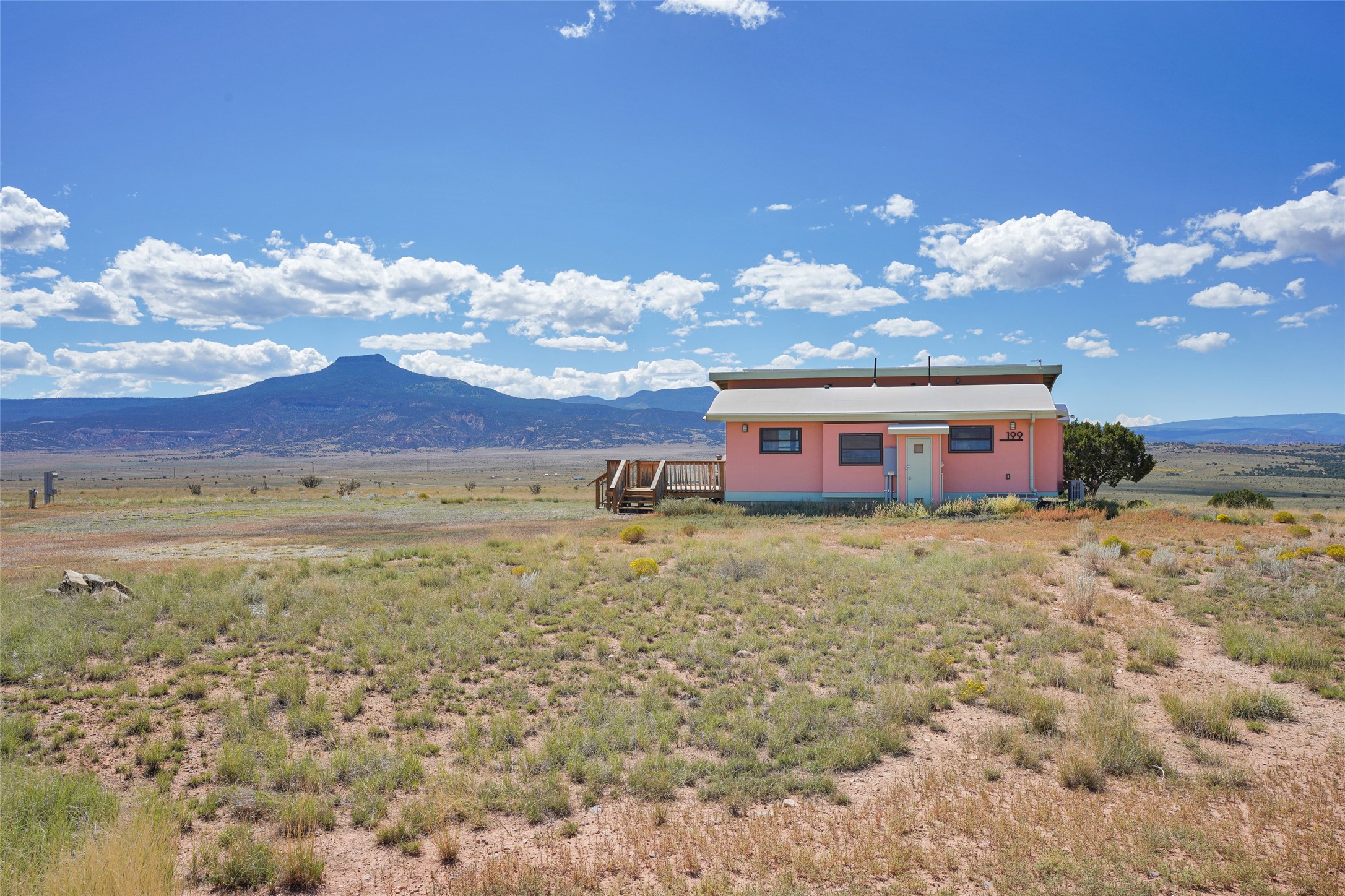 199 Private Drive 1728 in Youngsville sits on five acres with access to a private boat ramp and recreation area on Abiquiu Lake. Behind a motorized gate, the property offers both privacy and convenience. The 768-square-foot home, completed in 2020, was designed around the idea of efficient living. High ceilings, clerestory windows, and rounded corners create an easy flow through two bedrooms, a full kitchen, dining nook, living area, and three-quarter bath.Energy-efficient windows and appliances, mini-split heating and cooling, and smart-home features are already in place. The home is tied to the grid, and the solar array helps offset electric costs, with the option to add battery backup if desired. Low-flow fixtures, low or no-VOC finishes, and fire-resistant siding contribute to its durability and efficiency.The property is served by a shared well with a reverse osmosis system and a conventional septic system. From the house, the views reach across Ghost Ranch, Cerro Pedernal, and Mesa Prieta--landscapes that define northern New Mexico. With gated entry, lake access, and a home designed for efficiency, this property offers a comfortable balance between setting and design.