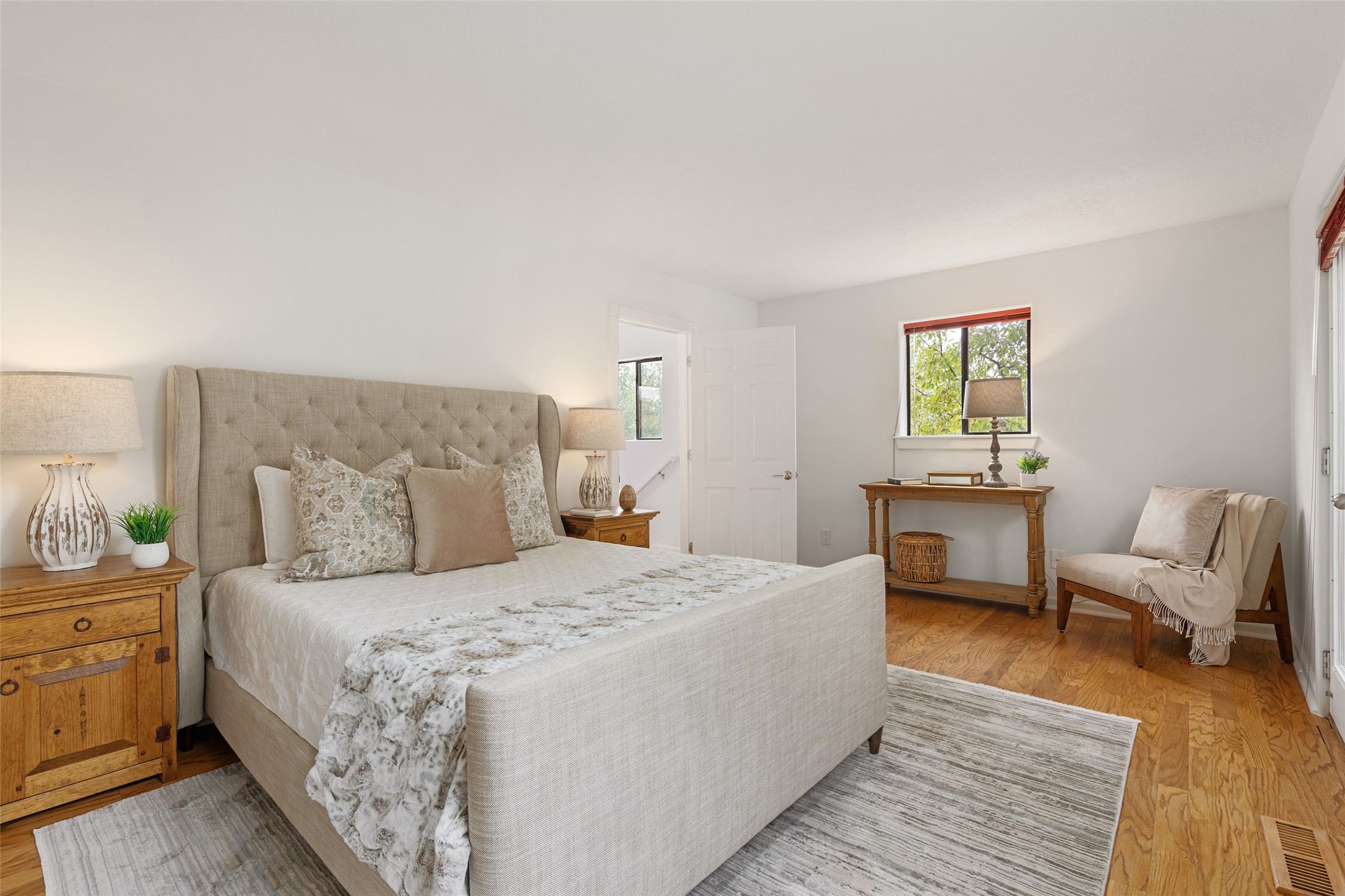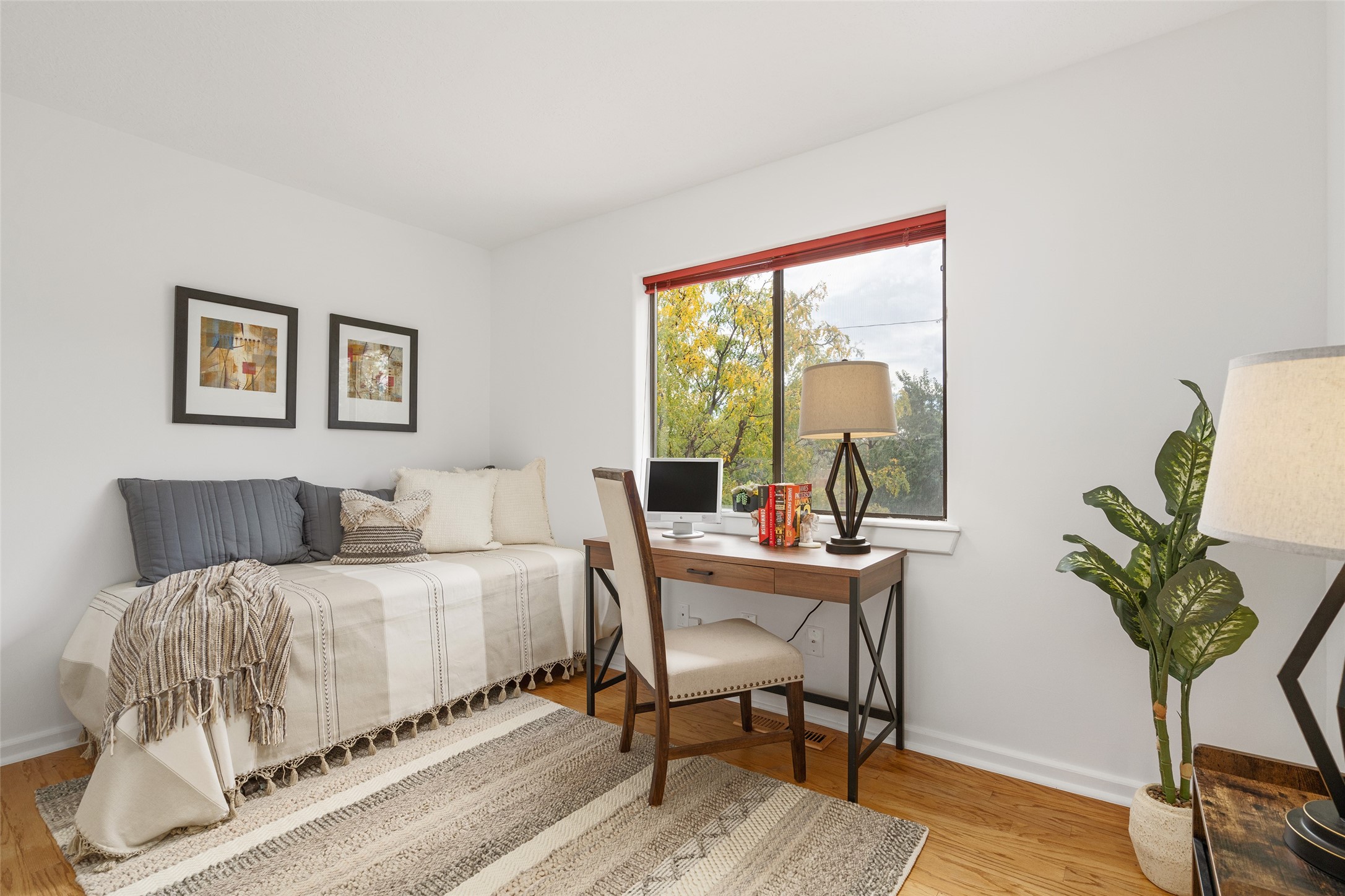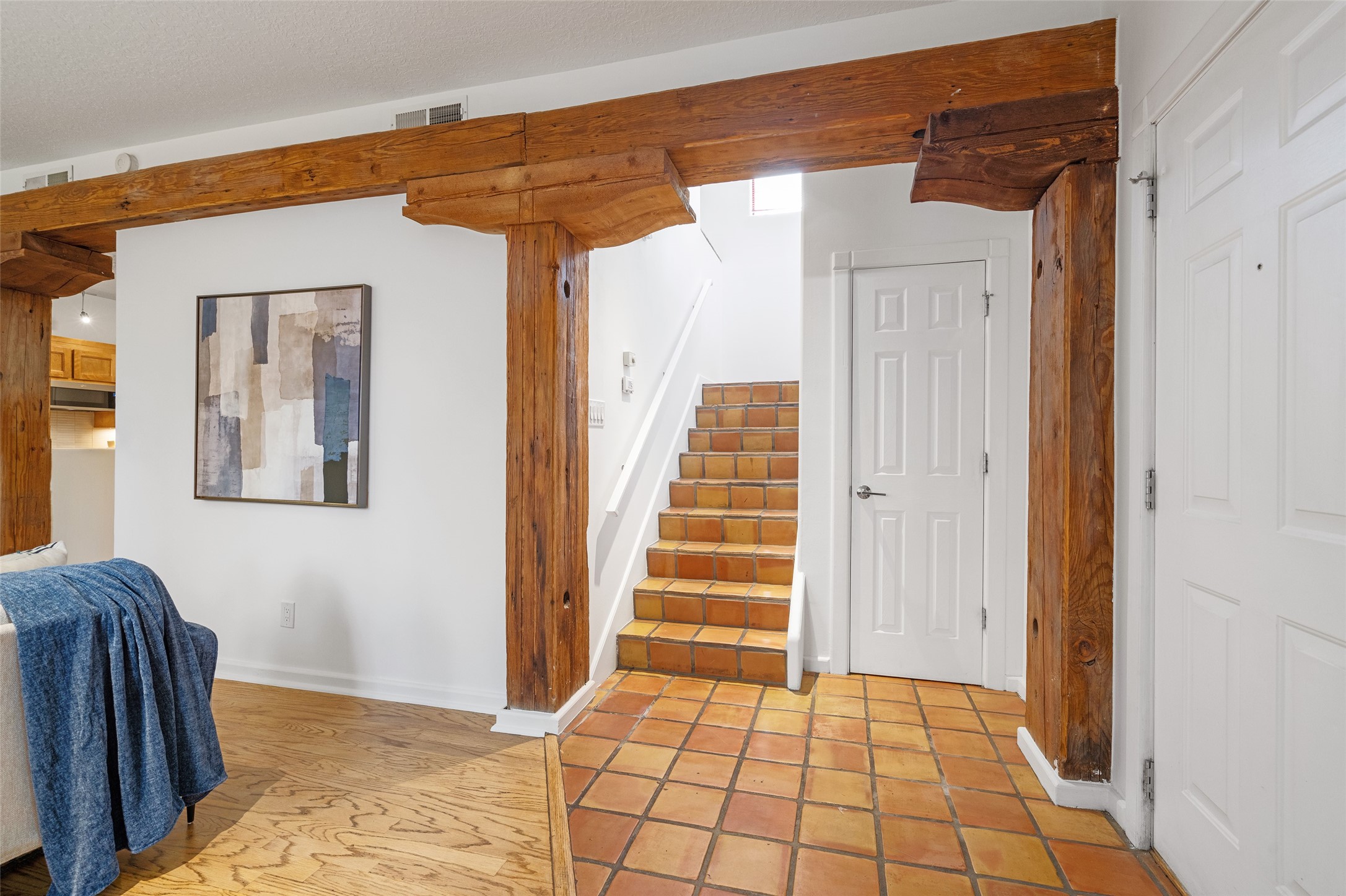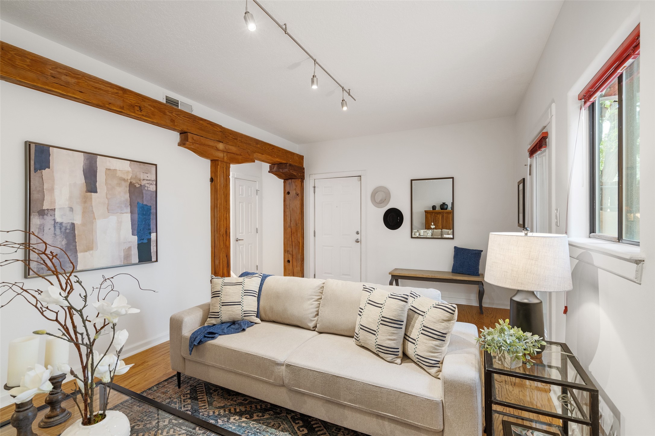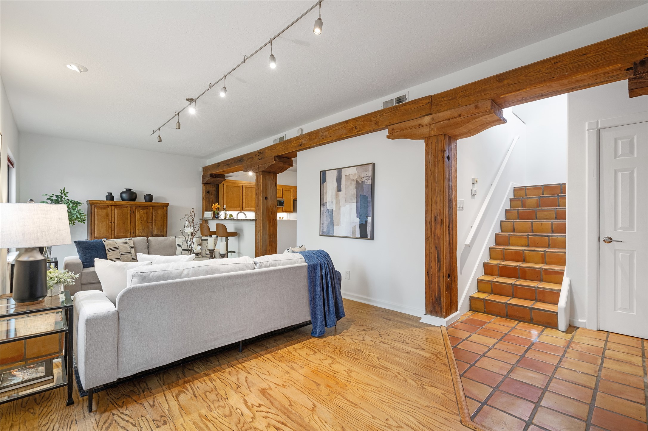 Tucked into the Westside/Guadalupe Historic District neighborhood, is a quiet, private condo compound just five minutes to the Railyard, Farmer's Market, Sky Cinemas, dining, and galleries--making every day feel like a Santa Fe adventure. This 2-bed, 3-bath home blends charm with thoughtful updates. The living area is highlighted by vigas and beams that evoke timeless Southwest charm. The kitchen features a Wolf gas stove, stainless steel appliances, stylish under-cabinet lighting, silestone countertops and ample storage with a backsplash and microwave installed in 2023. A cozy fireplace, central air, and newer Skuttle humidifier bring year-round comfort. Enjoy the flagstone patio off the living area enclosed by stucco, newer coyote fencing and a newer gate, plus a deck off the primary suite for relaxing sunsets. Additional perks include tub/tile/faucets installed 2023 in the guest bath, a one-car garage with high ceilings and storage shelves, a laundry area, and a prime location in the heart of the Railyard. Bring Santa Fe's best right to your doorstep.