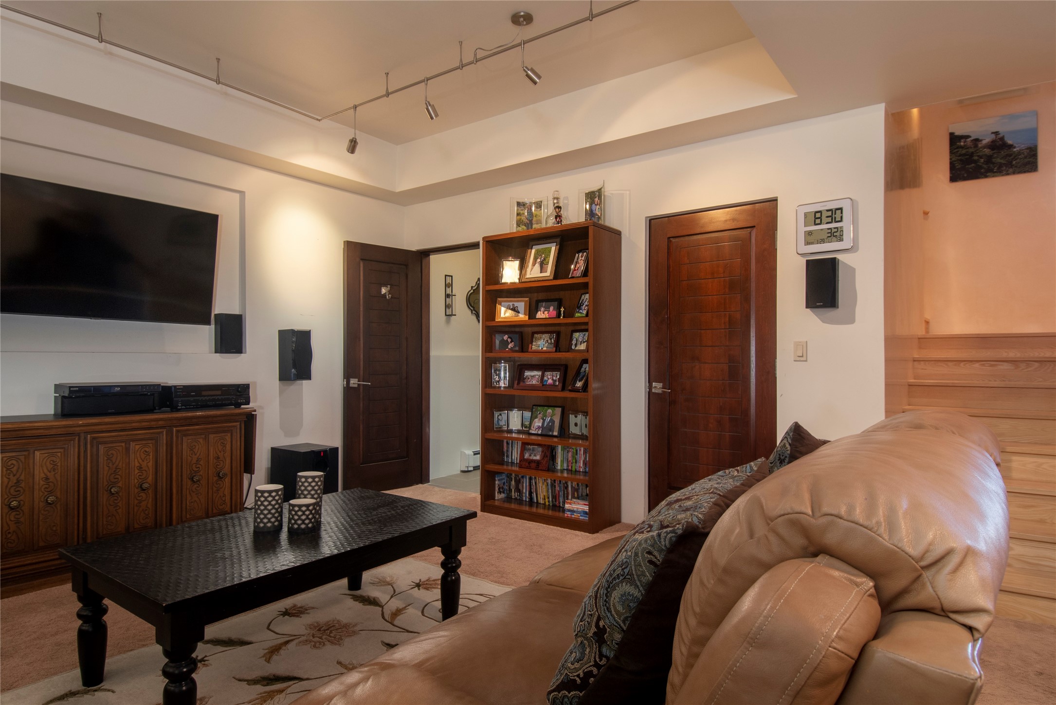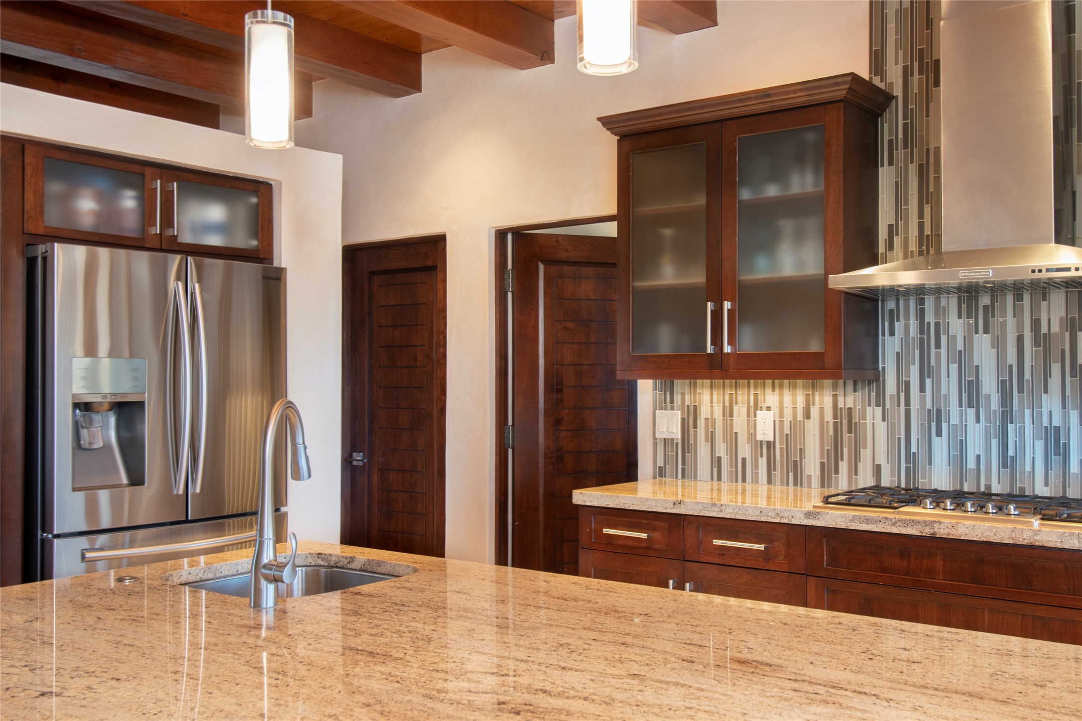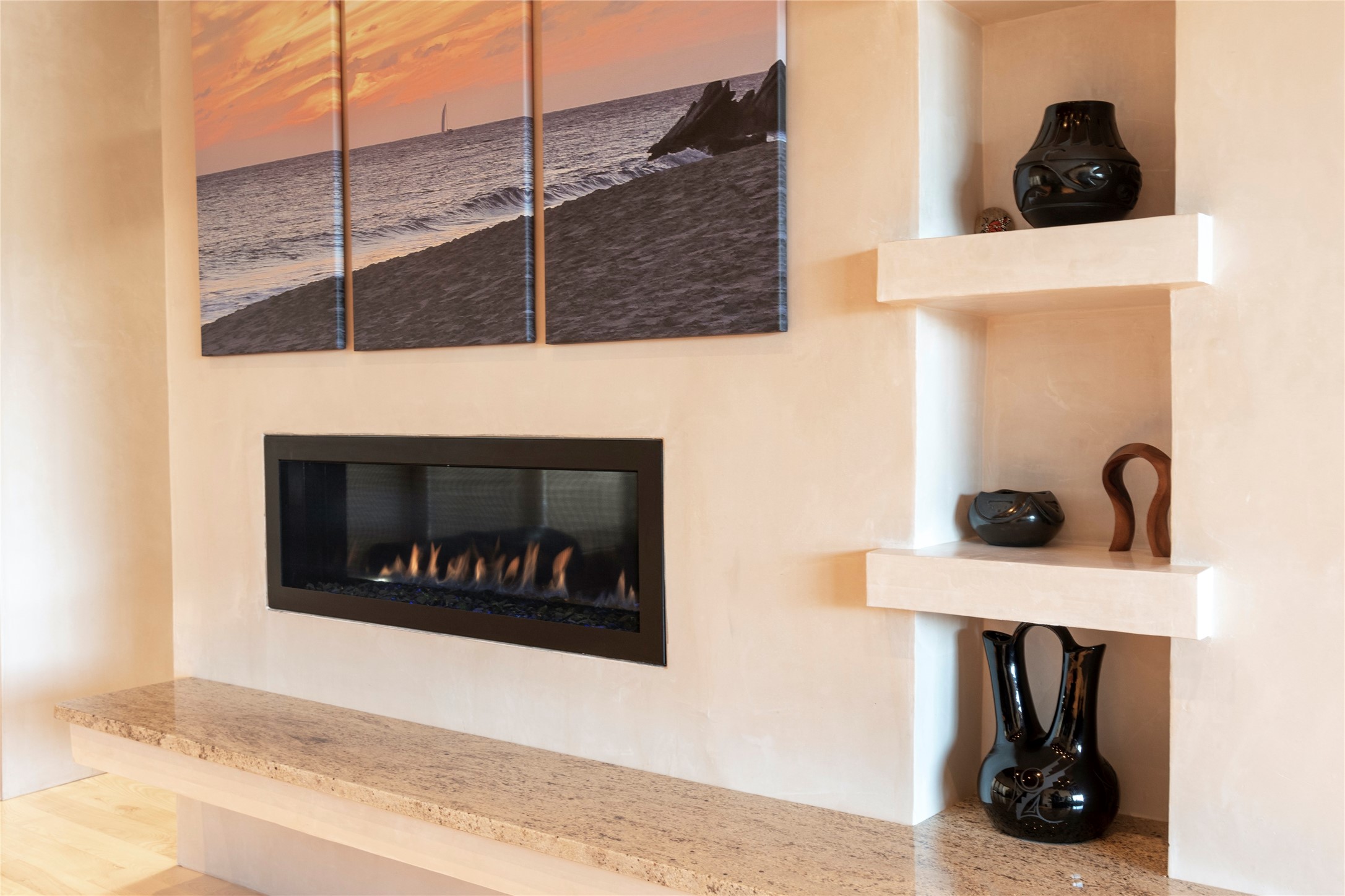This Michael Bauer custom designed, contemporary, two-story home was built by long time Santa Fe builder, Gary Lincoln, for himself. Known for quality construction and excellent designs, the best finishes and appliances were used in building this stunning home. The 3520 sq ft, open floor plan home is designed for comfortable, easy living and sited perfectly on 2+ acres to take in the breathtaking panoramic mountain views. Striking entry doors lead into the great room where a grand fireplace is a focal point, along with oversized windows that look onto a rooftop deck with fireplace and spectacular mountain views. The kitchen has wall-to-wall windows over the granite countertops on two sides so the chef will never be without a lovely view. A good-sized island with sink, and a walk-in pantry are conveniently located and offer plenty of storage. The appliances are top notch and include a double oven. The portal off the kitchen is the perfect for outdoor entertaining. Adjacent to the kitchen is an office and the master suite with its walk-in closet, beautiful bathroom and private portal with a fireplace. On the other side of the great room are two guest bedrooms each with outside entrances, and a laundry room. The lower level has a spacious den, bathroom, gym, huge storage room, and access to the 3-car garage. Just minutes to the Plaza in Santa Fe, and located in a small, highly desirable gated community, this home has easy access to walking and biking trails.