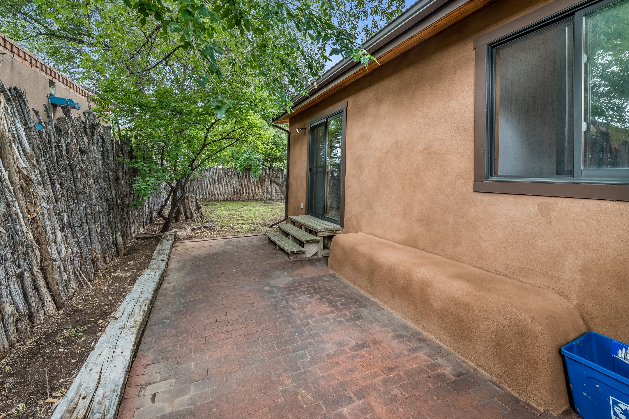 This quintessential Santa Fe style property offering Kiva fireplace, willow doors, Talavera and Saltillo tile, nichos, a walled courtyard, and off-street parking is tucked away in the much sought after Railyard Arts District. The setting is peaceful and quiet yet only a quick 5 minute jaunt to The Violet Crown, Farmer's Market, park, outdoor concerts, coffee shop, pubs, restaurants, and the vibrant vibe offered along Guadalupe Street! About a 15 minute walk to The Santa Fe Plaza where you will find shopping, world-class dining, and galleries along with stellar museums. Walking and cycling trails are minutes away making this the perfect urban home. One can even hop on the train for a ride to Albuquerque! Opportunities Abound for this property which features a home with attached guest house. You can live in one unit and rent the other or rent them both! There is even room to add a casita! Easy access to St. Francis Drive is a plus for those who commute to Los Alamos! Both units offer office space for those who work from home. A Must See!