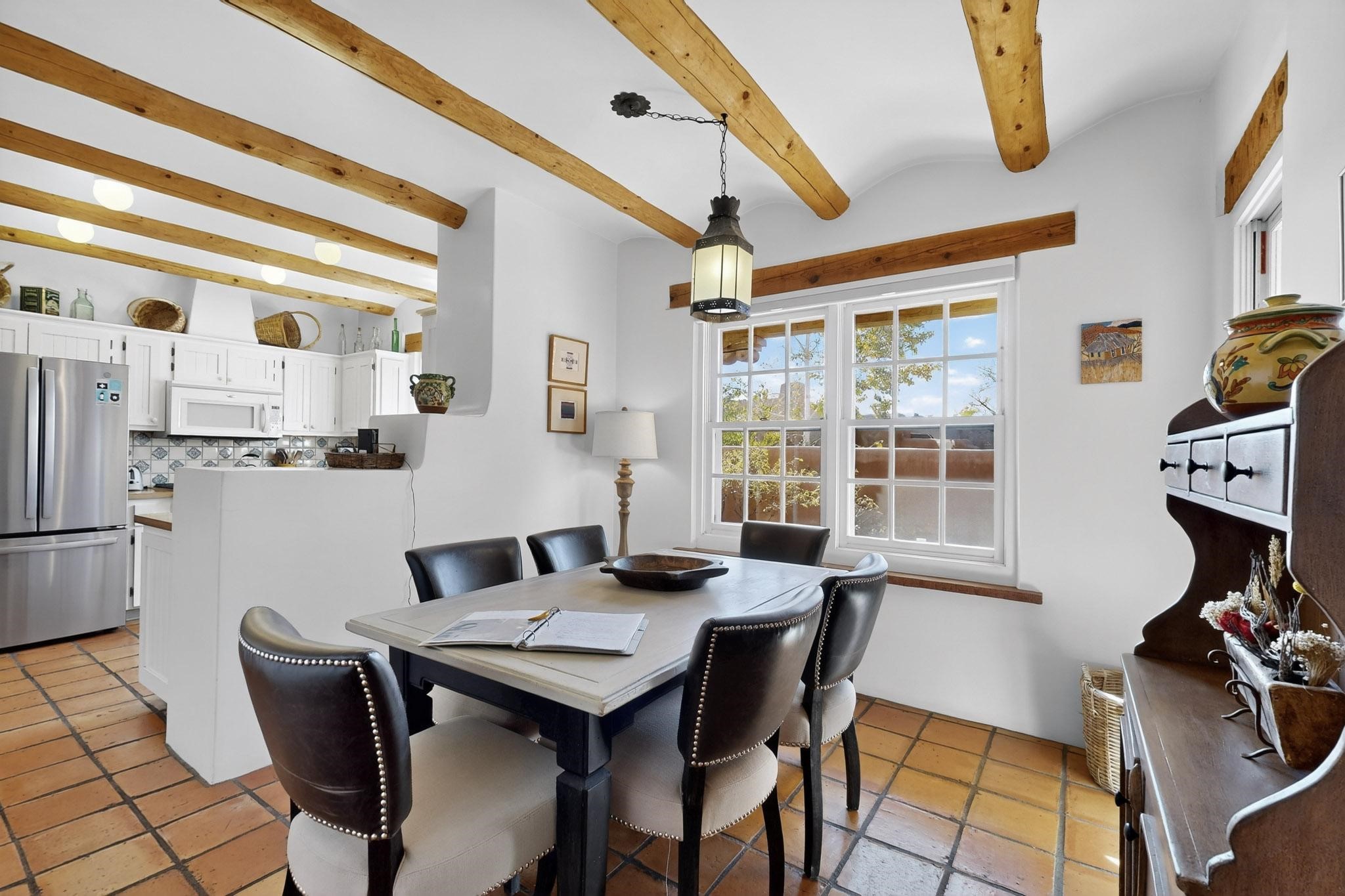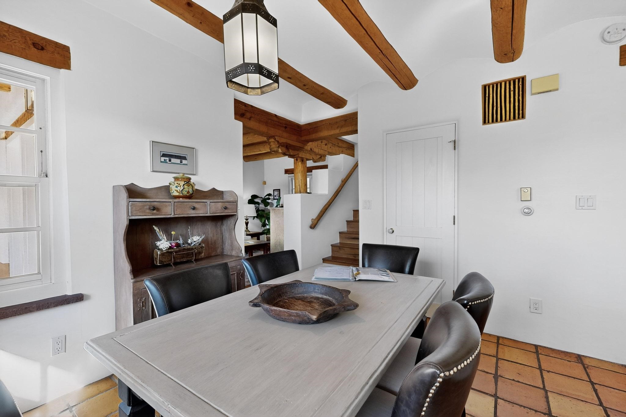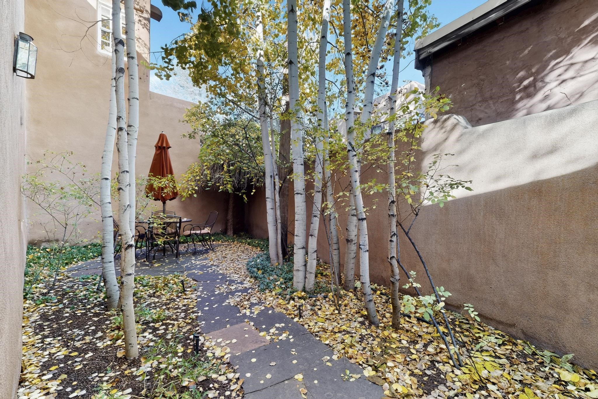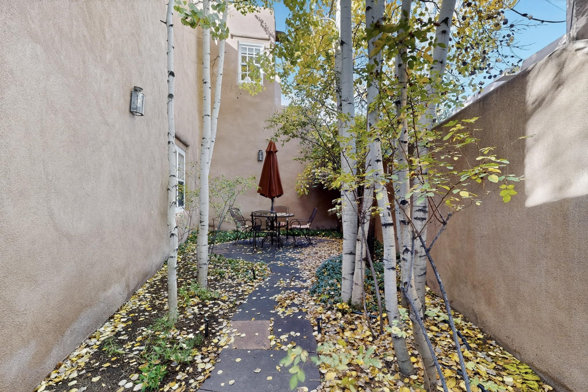 Outstanding opportunity to own a slice of Santa Fe with this quarter-share 2-bedroom, 2.5-bathroom condo in the heart of downtown's Campanilla Compound. Steps from the Plaza, Canyon Road, and Railyard, this two-story condo blends Santa Fe style--vigas, three kiva fireplaces, Saltillo and pine floors, Talavera-tiled kitchen and baths--with modern comfort, convenience and accessibility. Enjoy sunset views from the private upstairs deck or relax and dine al fresco in the landscaped courtyard. Fully furnished and managed by the HOA, including maintenance, cleaning, and a rental program, this sweet Southwest retreat is perfect for a turnkey vacation or investment property offering quarter ownership without the demands of full time ownership. Quiet and peaceful neighborhood with great views, this is a place to savor the best of Santa Fe in any season.