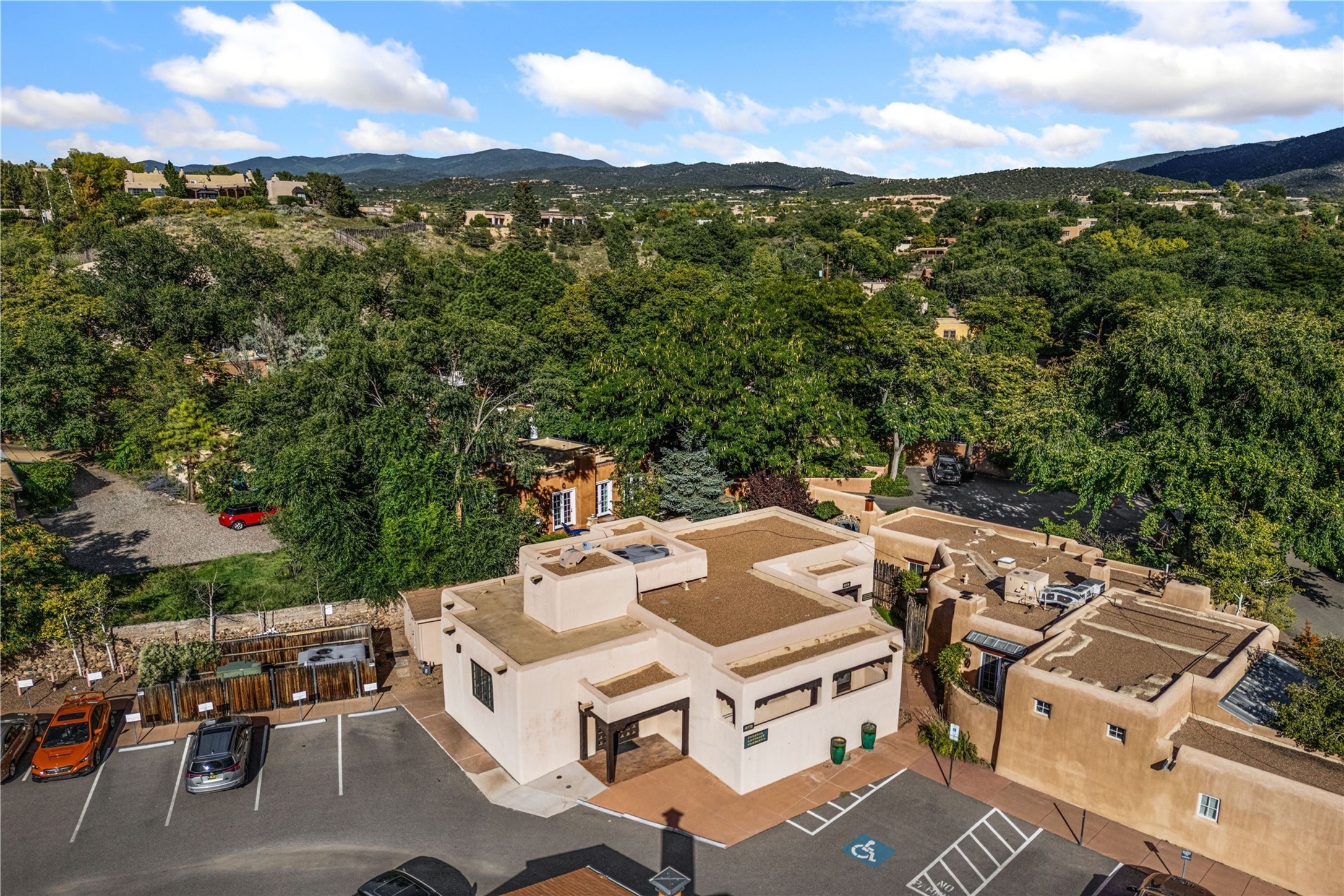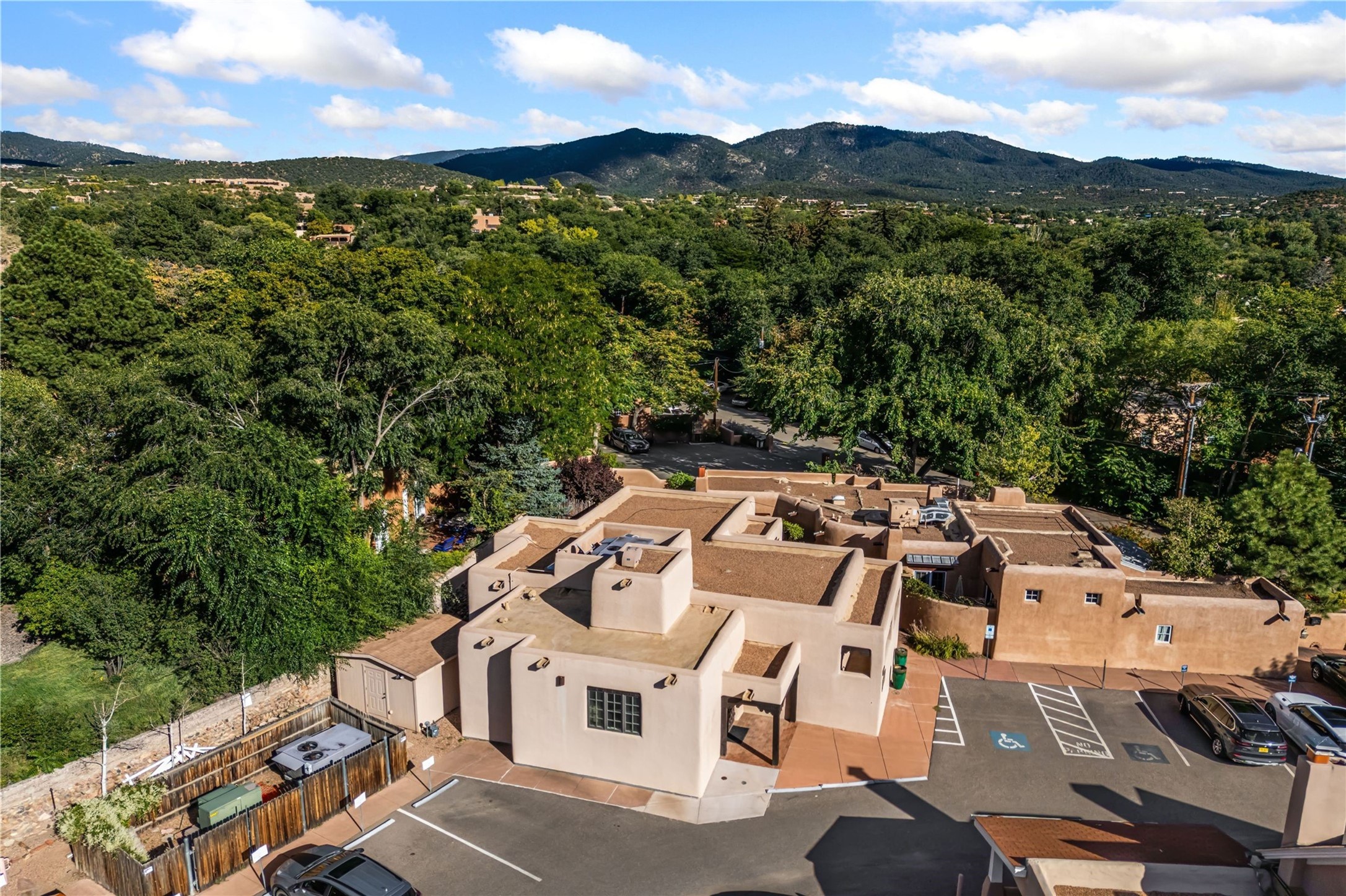 Excellent opportunity to own a mixed-use building on E. Palace Avenue in the heart of the Historic Eastside. Zoned BCD Zone 4 which includes residential and multiple commercial uses. Two-story building with elevator comprised of 3,523 sq. ft. Onsite parking. This is a one-of-a-kind property. Adobe (Primarily) and Frame construction; building is commercially wired and plumbed. Outside security lighting and security/fire alarm. 8 parking spaces and storage unit conveys with sale. Ideally located just minutes from the downtown historic plaza and Canyon Rd.