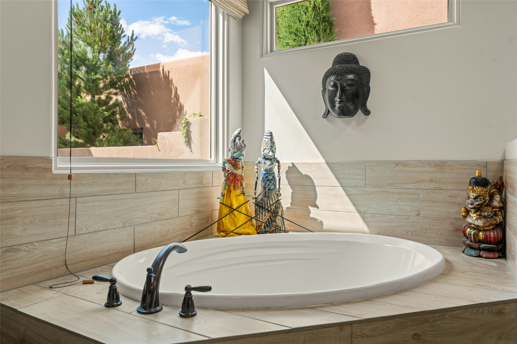 With a flawless new sewer line inspection report available, this home is move-in ready! Showcasing a functional design in one of the most desirable locations in Santa Fe, this stunning home is a rare opportunity to own a home UNDER 1 million dollars in Las Campanas. The home maintains a warm, welcoming feel, filled with natural light and surrounded by native landscaping, and walled backyard for privacy and pet safety. Just minutes from downtown Santa Fe, a quick trip to the airport and easy highway access, this property offers the best of Southwestern living - spacious, secluded, and perfectly situated. This home has been beautifully updated with new kitchen cabinets, a luxurious primary walk-in closet, a full wall of husky cabinets and 2 additional benches in the garage, a new tankless water heater, a reverse osmosis water treatment system and many more upgrades. A private enclosed patio is showcased in this elegant design that seamlessly combines easy living with the rugged Santa Fe views and sunsets that our state has to offer. Beautiful, established landscaping with drip irrigation, flagstone patio and walk ways makes for an enjoyable and low maintenance outdoor space. The open kitchen and living area, framed by a peaceful garden (perfect for pets), offer an inviting space for gathering with friends and family. Complete with a detached studio, this property offers unmatched versatility in a beautiful gated community with 24 hours security/EMS, and designated path walks few steps from your front door. Owners have the option to gain access to The Club at Las Campanas, which provides exclusive access to two Jack Nicklaus Signature Golf Courses, pools, a state-of-the-art fitness facility, and fine dining. Broker can provide a list of all the incredible upgrades and updates that come with this move-in ready home!