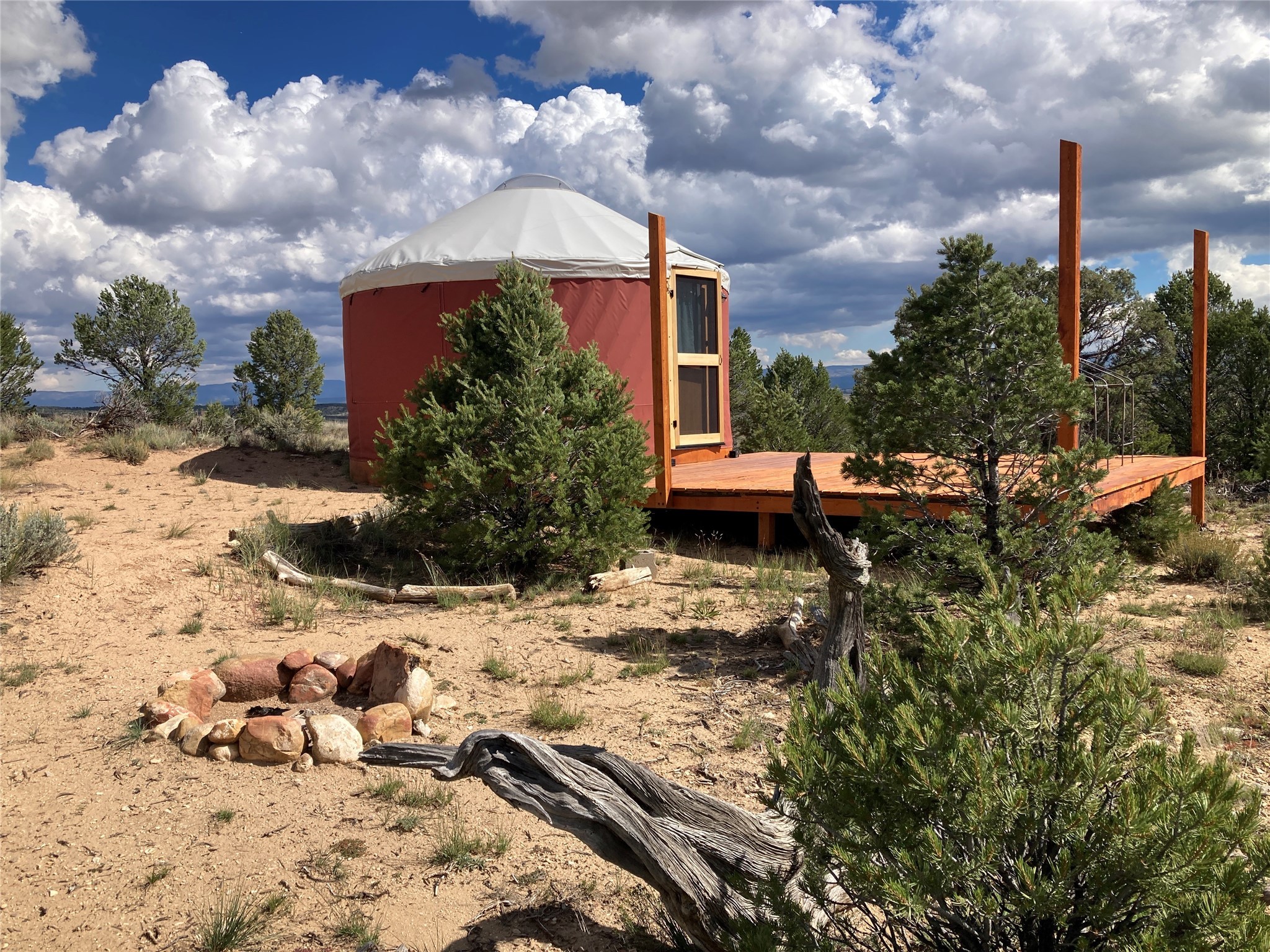 Discover approximately 31.12 acres in the gated subdivision of Ranchos Del Vado, offering privacy, beauty, and recreational access near El Vado Lake. Perched along the canyon rim, this property enjoys incredible views overlooking the Nutrias River and the surrounding northern New Mexico landscape.The land includes a one-year-old, 16-foot yurt with a large deck--an ideal space for relaxation, stargazing, or as a comfortable base camp while you enjoy the outdoors. A gravel driveway provides easy access from one of two cul-de-sacs that border the property, leading directly to the yurt site. At the east access point, a split rail Wyoming-style fence adds rustic charm, while the remaining boundaries feature barbed wire fencing for definition and utility.An existing well is located on the property, though the seller is uncertain of its current viability. With its size, layout, and unique location, this parcel offers excellent potential for building a mountain getaway, expanding the current setup, or simply enjoying as a private retreat.Close to lakes, rivers, and abundant outdoor recreation, this property provides a rare opportunity to own a sizeable piece of northern New Mexico in a quiet gated setting.Seller may consider splitting the lots. Please inquire with the listing agent.