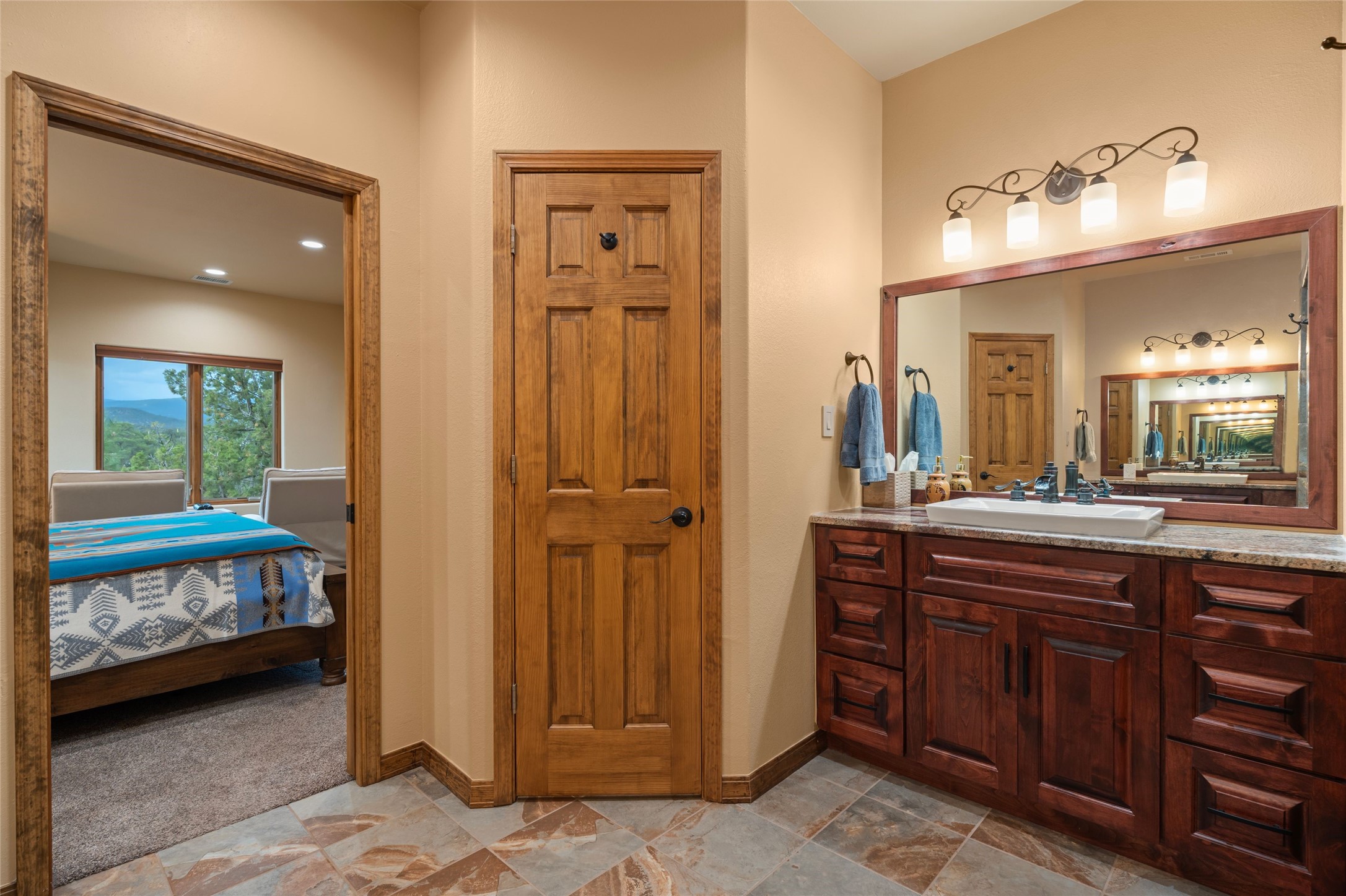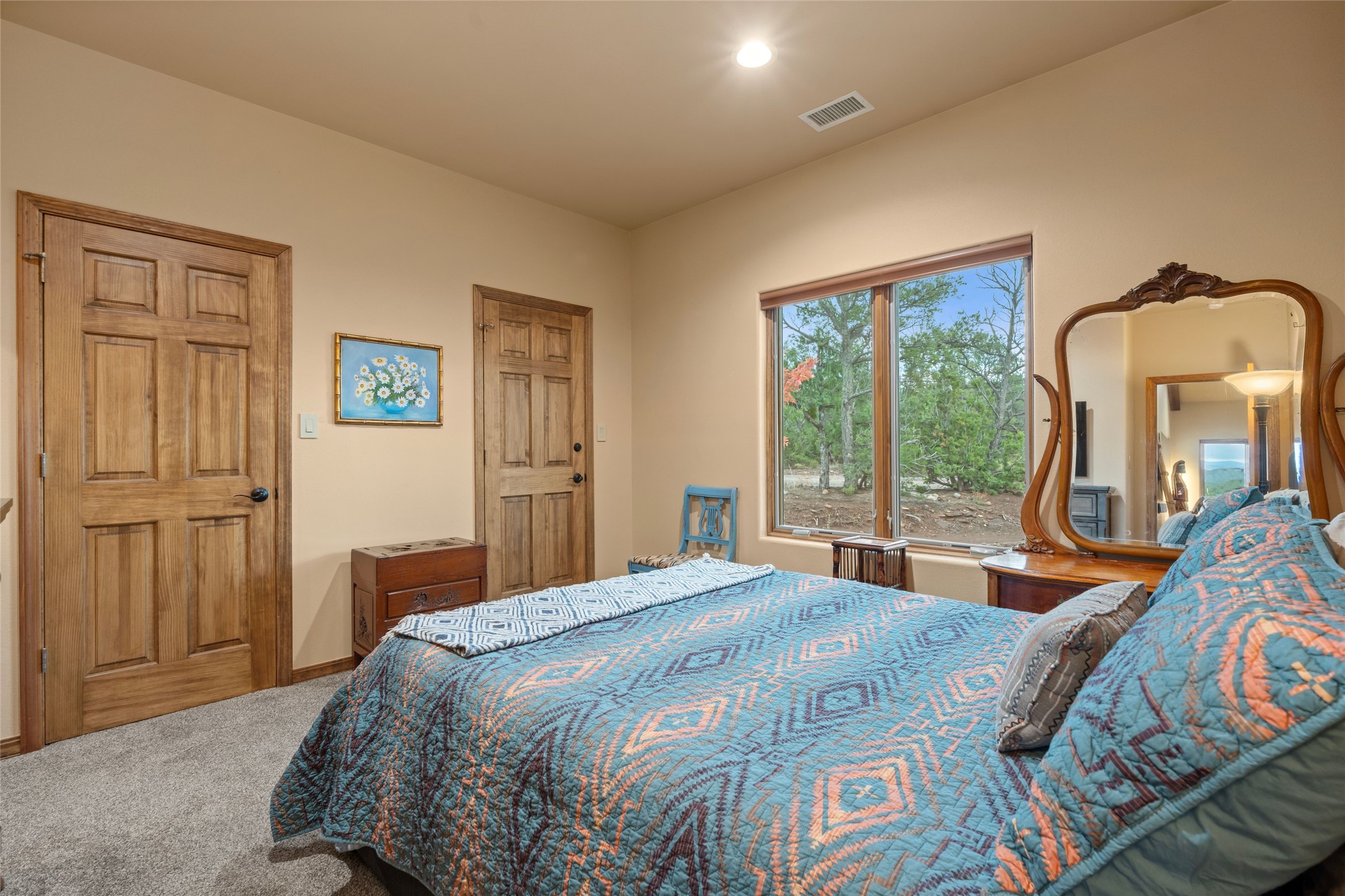 Peaceful Elegance, Effortless Access & Stunning Mountain Views. Built in 2021 and set on over an acre of tranquil land with sweeping mountain vistas, this gorgeous 3-bedroom, 2.5 bath home with a private office/study offers the perfect blend of peaceful country living and easy access to town. Located right off a county-maintained road, it's a dream for Santa Fe commuters--roads are plowed in winter, and you can simply drive straight out without worrying about maintenance or snow removal.Inside, Pella windows and doors frame breathtaking views and fill every room with natural light. Exceptional craftsmanship shines through the handsome custom front doors, pitched metal roof, and high-end finishes throughout. Designed for comfort and health, the home features scent-free, hypoallergenic interiors, dimmer lighting, and screened windows and doors for fresh mountain air year-round.The spacious primary suite offers two private toilet rooms, dual walk-in closets, a sitting area, and inspiring views. The kitchen is a culinary delight with a premium Elmira Stove Works gas + electric range, while the private office/study provides a quiet space for work or creativity.Outdoors, enjoy stargazing under Santa Fe's crystal-clear skies and the serenity of a great neighborhood. The garage includes upgraded overhead storage racks and a motorized lift platform, adding both convenience and efficiency.Gorgeous construction, modern comfort, and unbeatable accessibility--priced to sell, this is a rare find in today's market.