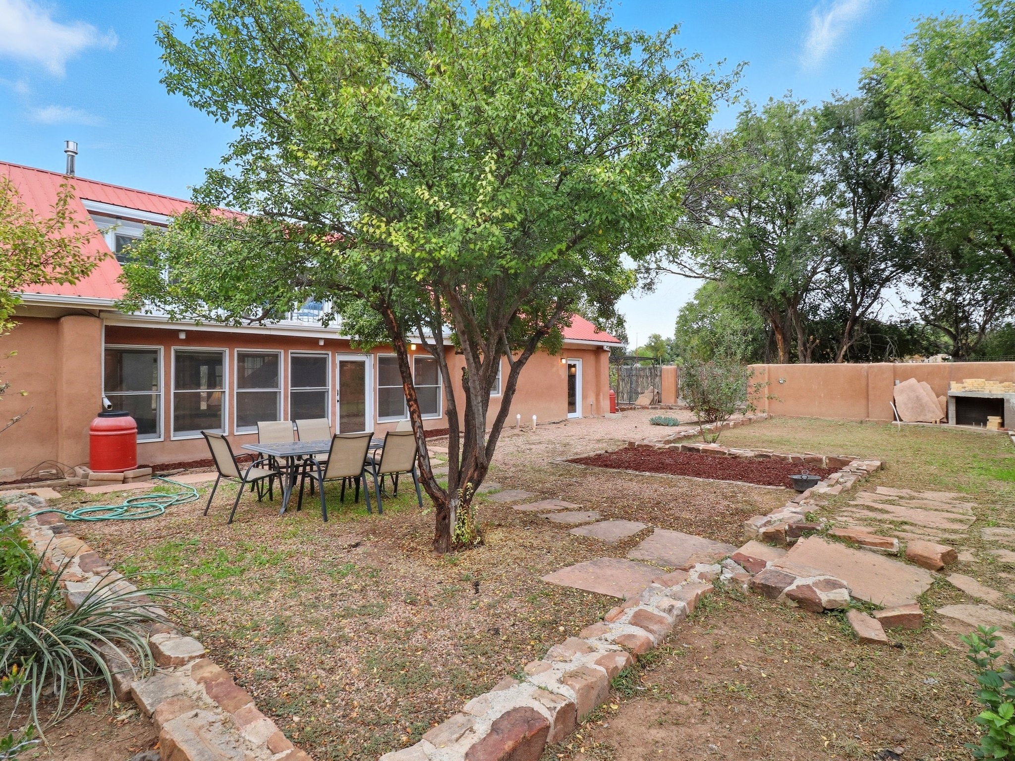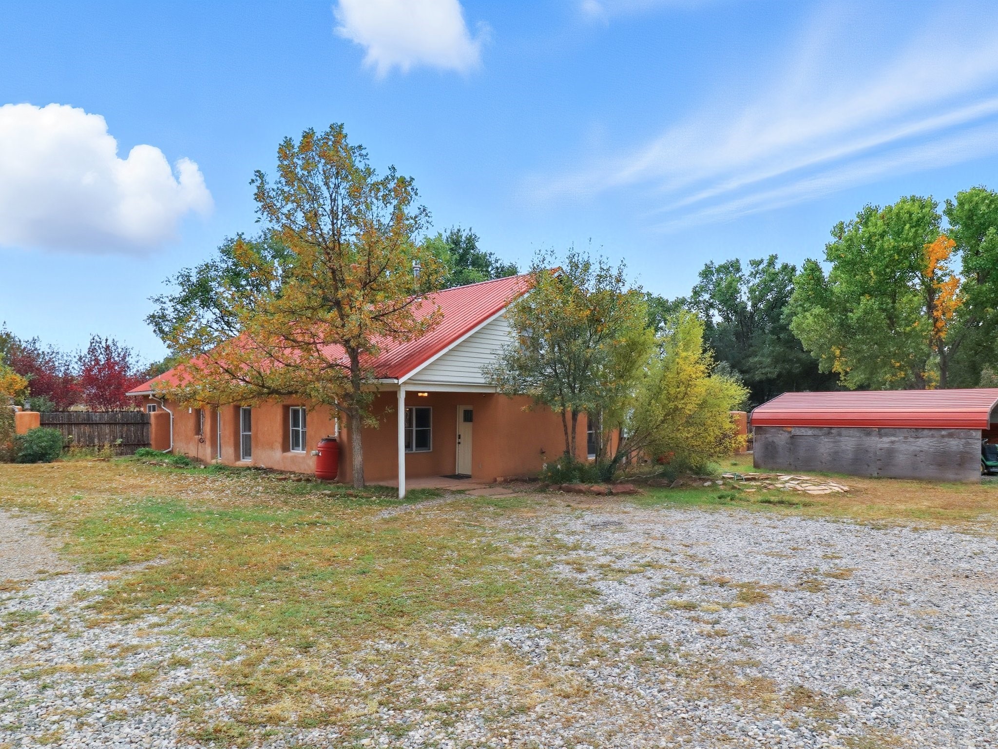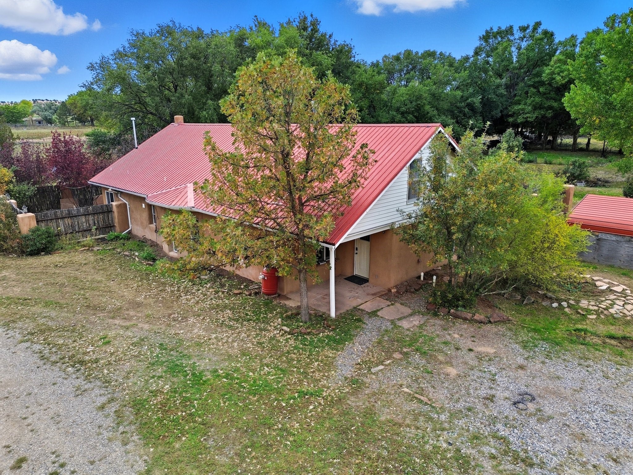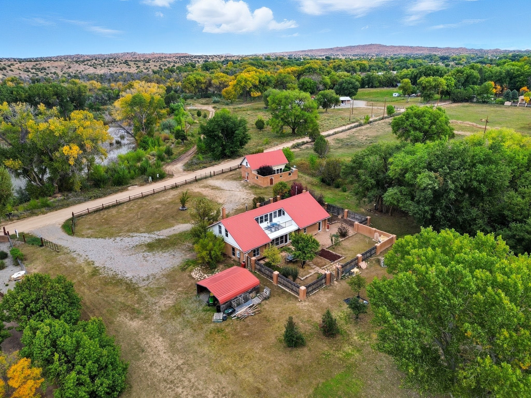 Your Private Northern New Mexico Retreat -- Two Residences, One Unforgettable PropertyNestled in the serene Pojoaque Valley and perfectly positioned between Santa Fe's historic charm and Los Alamos' thriving innovation hub, 40 County Road 84B is a rare find offering two distinct homes on a beautifully landscaped 1.46-acre parcel.The main residence is a warm and inviting 4-bedroom, 2.5-bath adobe-style home that exudes classic New Mexico character. Soaring with natural light, this 2,450 sq ft home boasts both a cozy family room and a separate living room, ideal for multi-generational living or work-from-home flexibility. Rich wood and brick accents, traditional touches, and thoughtful flow create an atmosphere of rustic elegance. Step onto the upstairs deck or into the walled backyard to soak in tranquil views of cottonwoods, distant mesas, and the Ortiz Well Ditch that mirrors the shimmer of a pond just across the way.Complementing the main house is a 927 sq ft two-bedroom casita, currently a successful short-term rental generating over $24,000 in annual income. With its own private yard and entrance, it offers versatility as a guesthouse, in-law suite, or income-producing asset from day one.Additional features include: Classic adobe construction with metal roofing, two fireplaces and baseboard heating, a private well with water rights, landscaped and natural grounds with mature trees, two storage units and ample off-street parking and no HOA restrictions.Located just 20 minutes to Los Alamos National Lab and 25 minutes to downtown Santa Fe, this property is ideal for LANL commuters, artists, remote workers, or anyone seeking the balance of rural tranquility and urban access. Only minutes to groceries, schools, and cultural attractions, this hidden gem is the perfect base for Northern New Mexico living.Whether you're envisioning a multi-generational compound, live-work space, or income-generating retreat, 40 County Road 84B delivers lifestyle and opportunity in one extraordinary package.