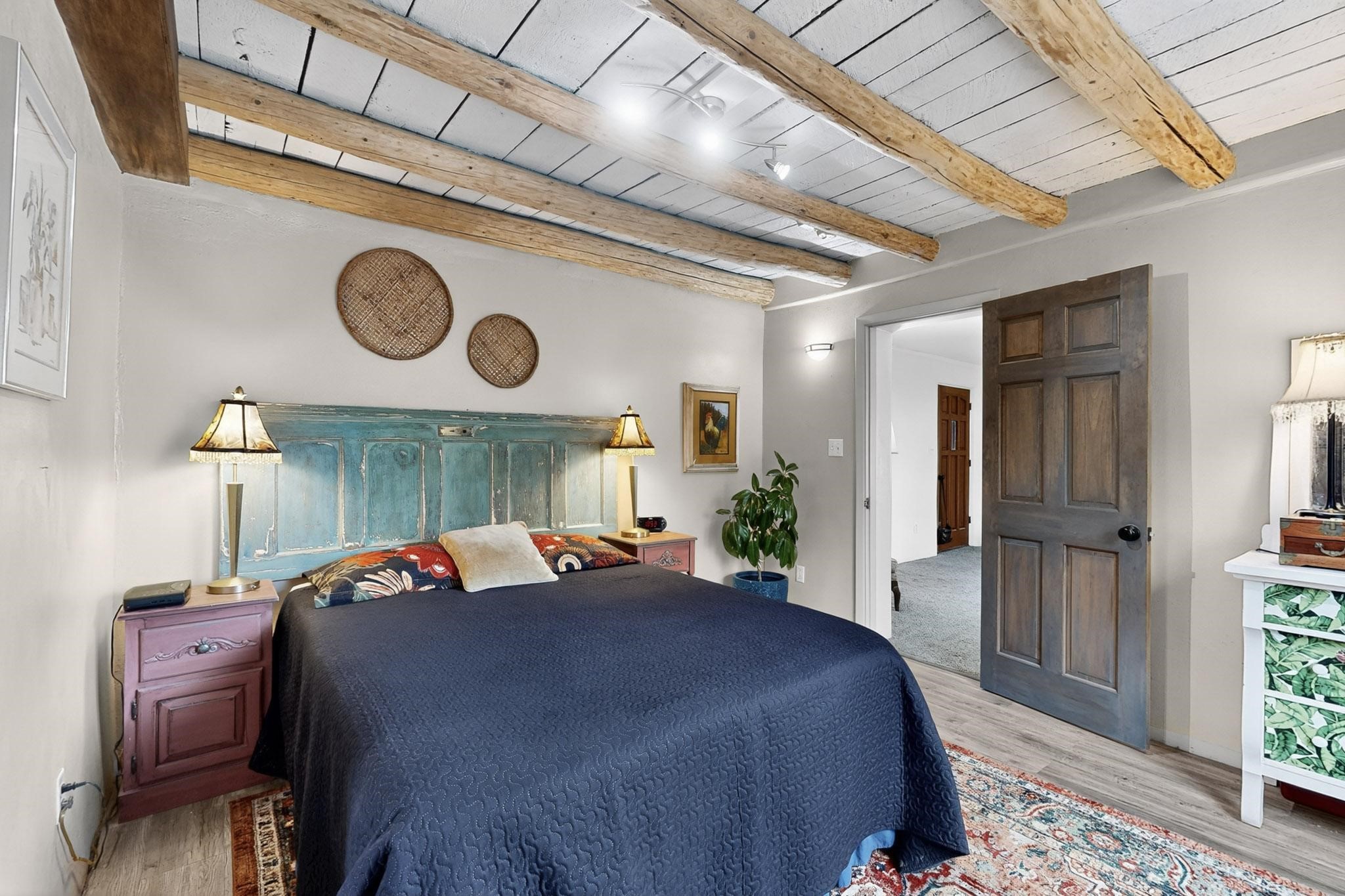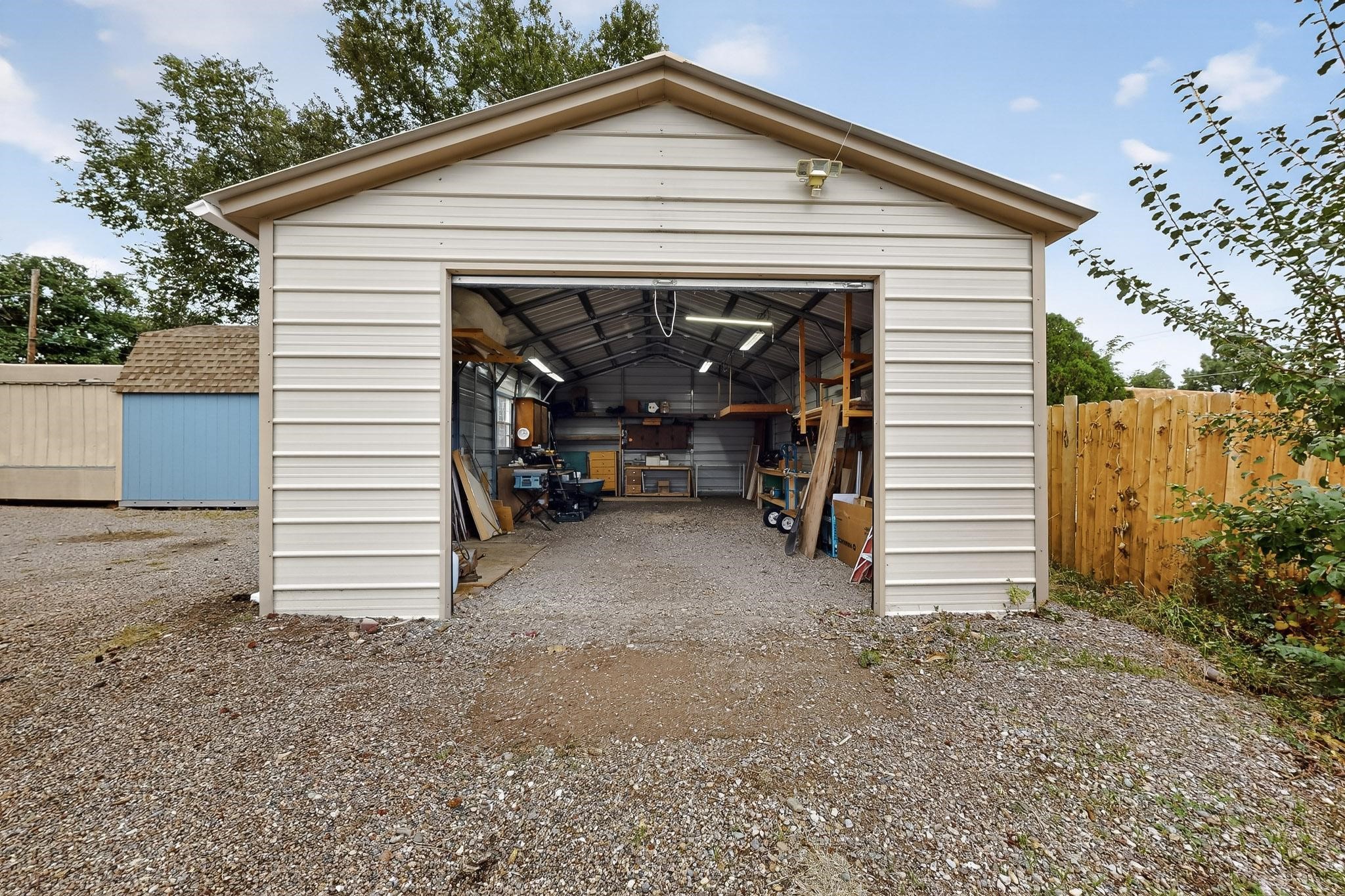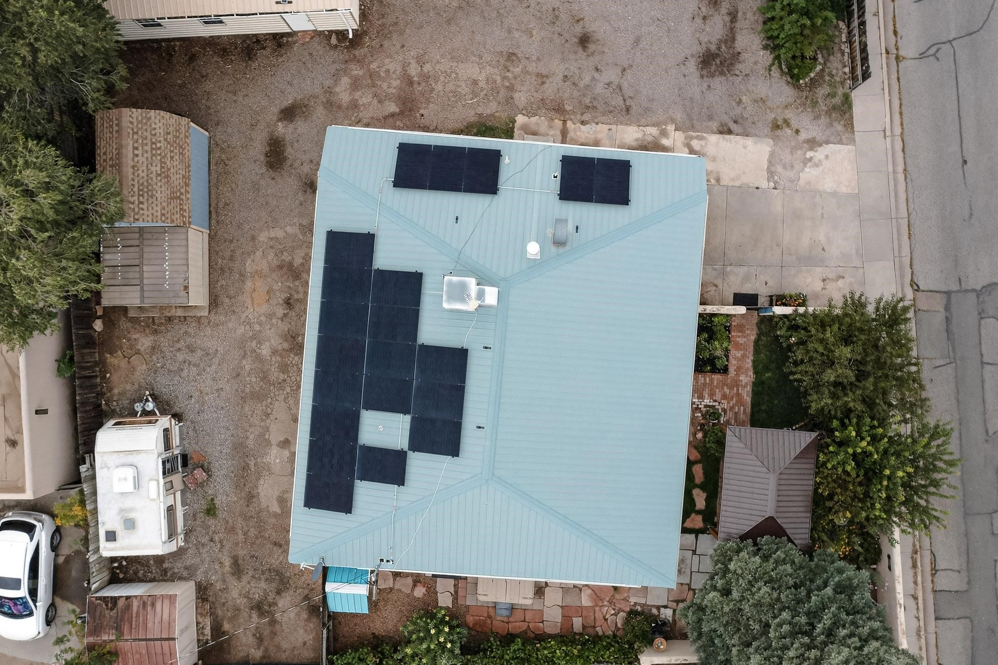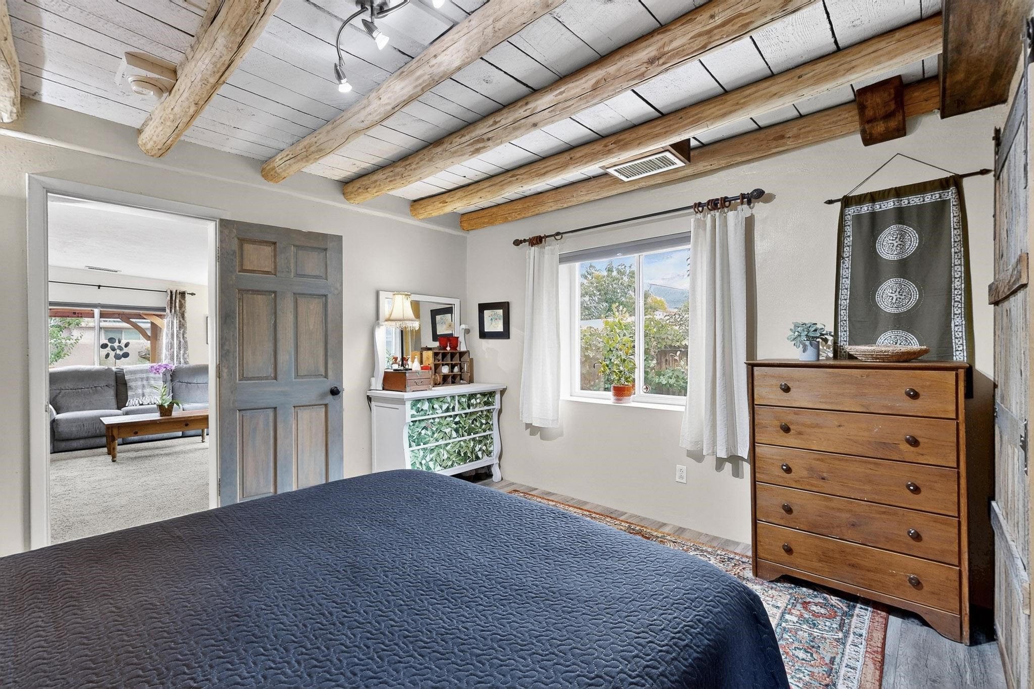 Enjoy country living in this well cared for .21 acre property in the heart of Santa Fe! The home's entry courtyard, with its new ramada, sets the tone for relaxed outdoor living. Inside, the adobe portion of the home, built in 1947, exudeswarmth and includes the spacious updated Kitchen, Living Room, Primary Bedroom; the newer stick-built wing features 2 substantial guest bedrooms, the primary bathroom and a remodeled bathroom. Interior improvements include newwindows, new paint, newer water heater, furnace and appliances. Owners have added a fabulous detached 18' X 30' garage, and will convey several sheds, a camping trailer, a green house and a hot tub, if wanted. Also included is fully paid for solar panels that were added in 2024. Lush and charming gardens with fruits, veggies and herbs plus mature trees on irrigation further enhance the property's appeal. A large basement is accessible from the side of the home for additional storage. Come see this sweet home at your first opportunity!