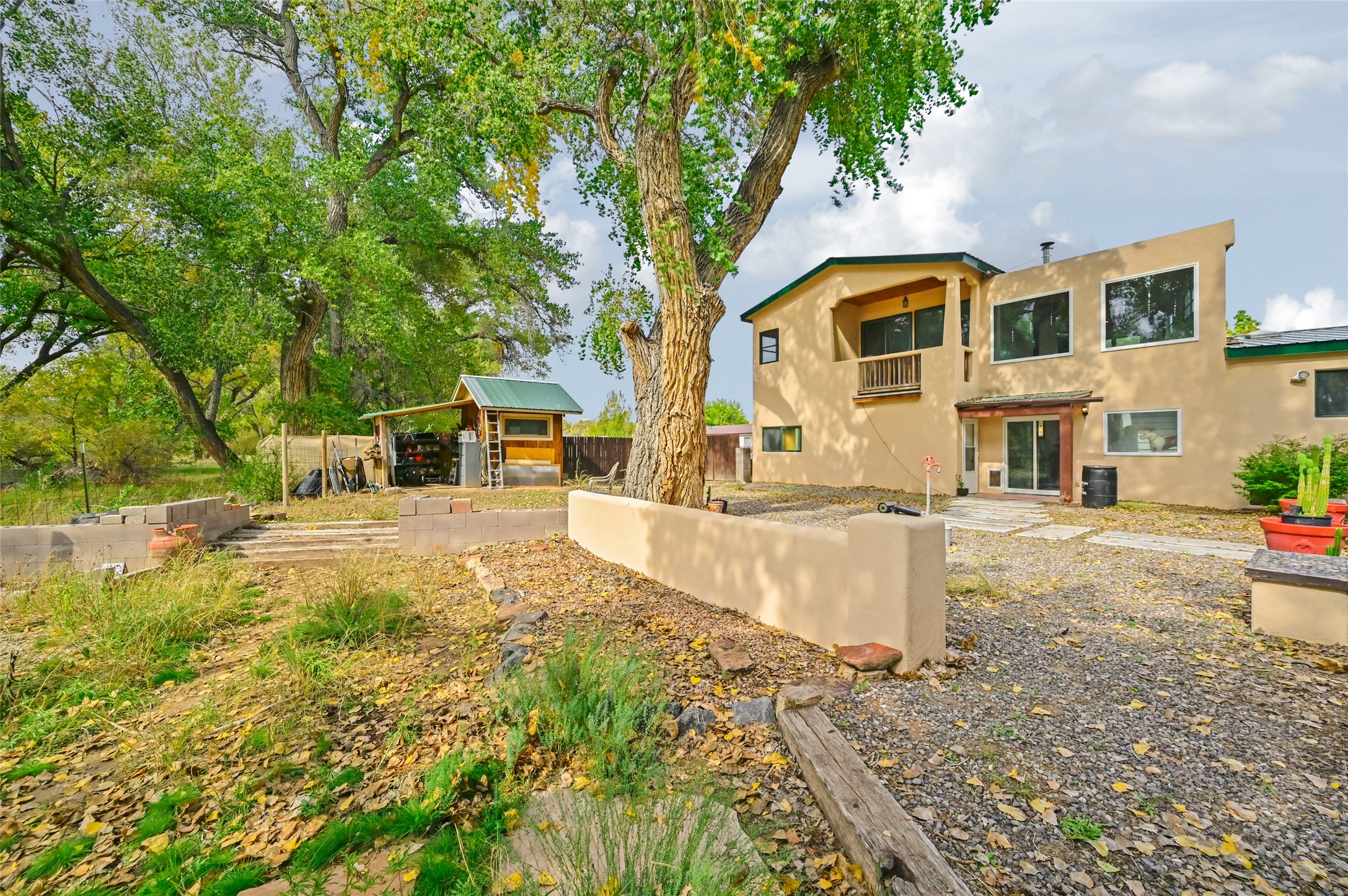 Welcome to this beautifully updated home nestled on just under an acre in serene La Mesilla. With 3,238 sq. ft. of inviting living space--including 3 bedrooms, 4 bathrooms, and 2 spacious living rooms--there's plenty of room for family and friends. The attached 800 sq. ft. studio offers a perfect private retreat for guests, work, or creativity.Originally a modular home on a permanent foundation, the lovely addition features a spacious upstairs master suite with a private balcony that overlooks the peaceful Bosque and stunning Black Mesa views.The thoughtfully converted garage studio, with warm hardwood floors and its own bathroom, adds even more comfort and flexibility.Enjoy the tranquility of a private well along with recent updates like all new stucco, a new septic system, roof, appliances, and water softener. This charming La Mesilla home is a perfect blend of comfort, style, and nature--ready to welcome you.