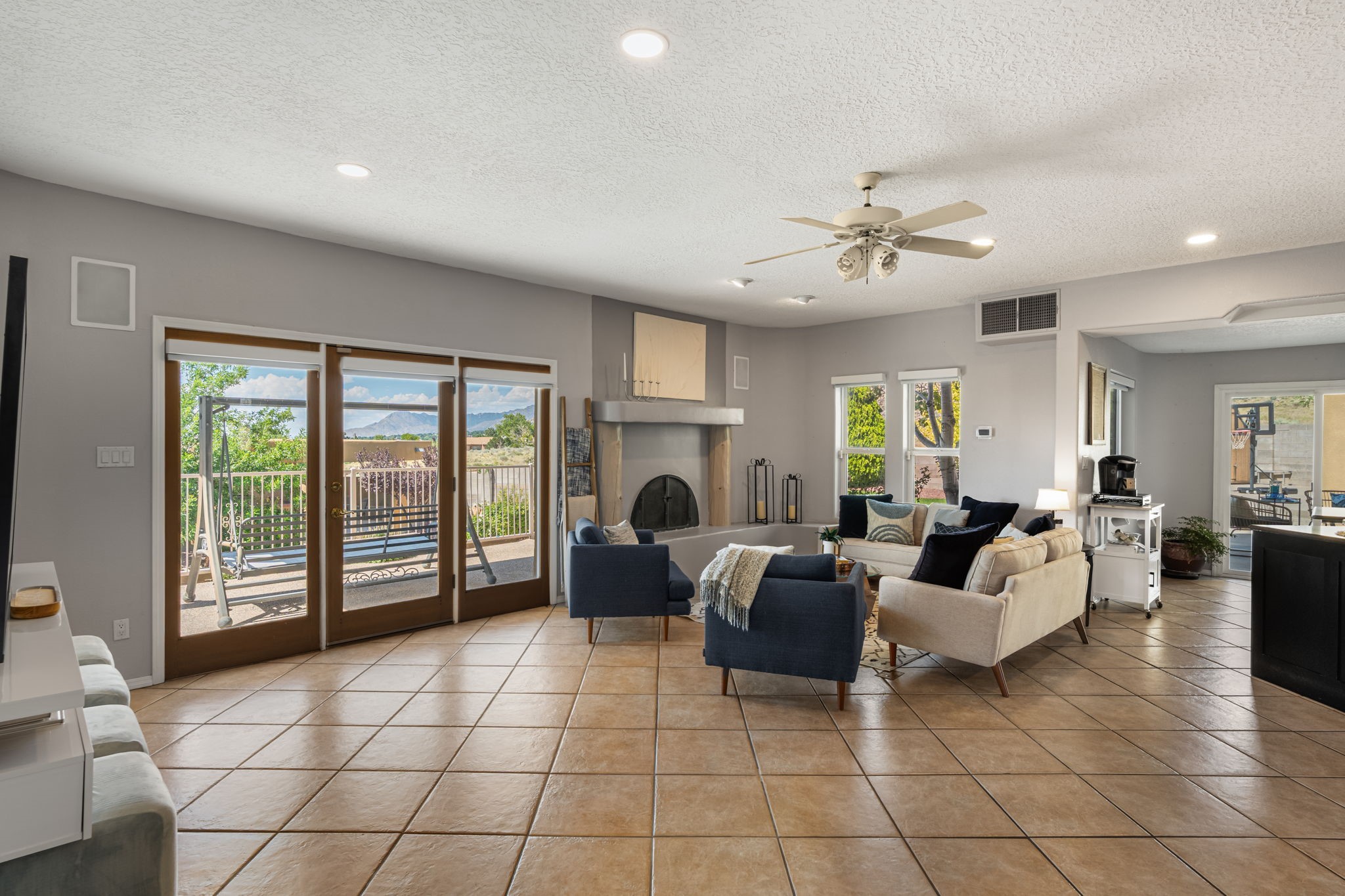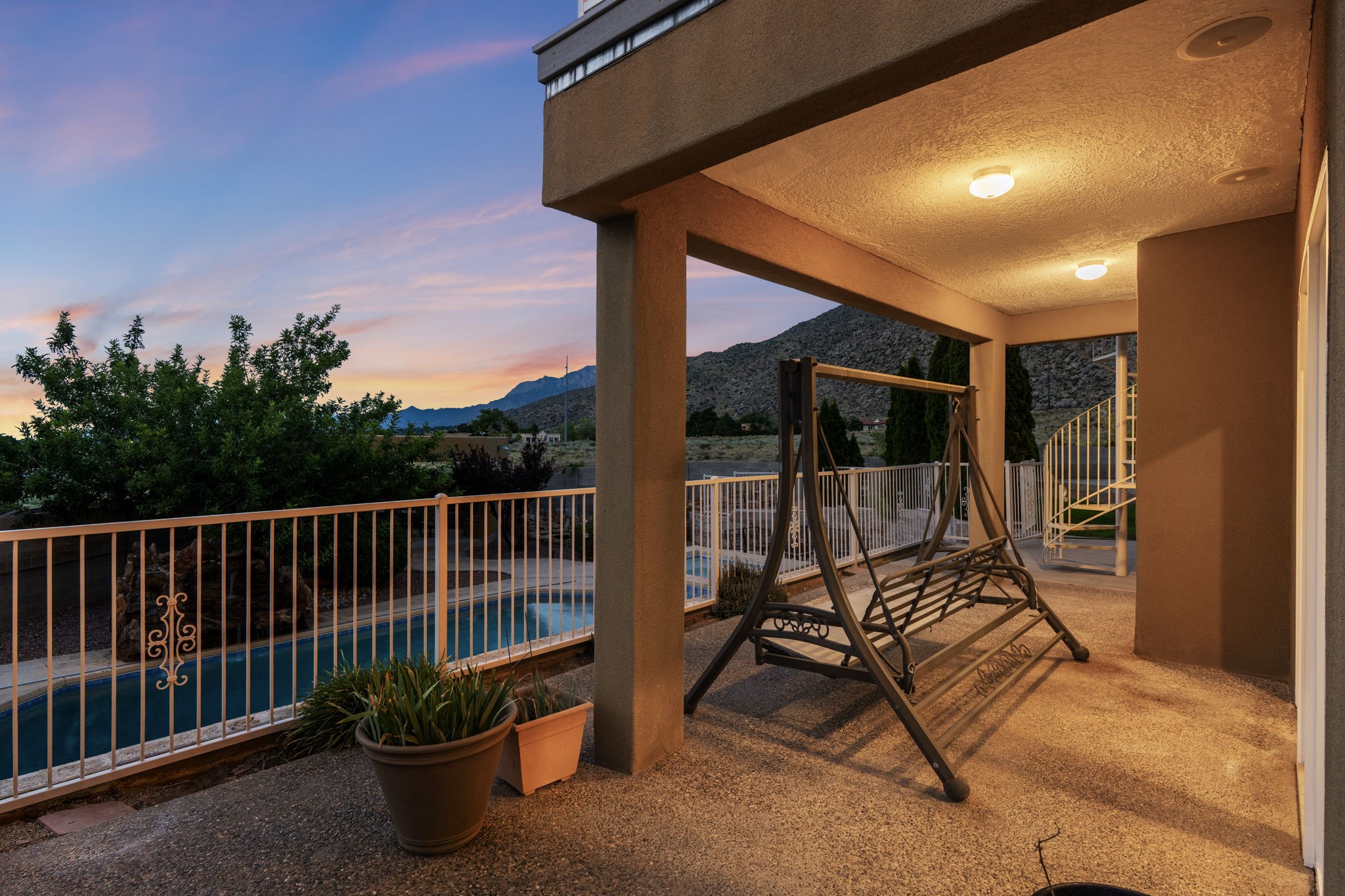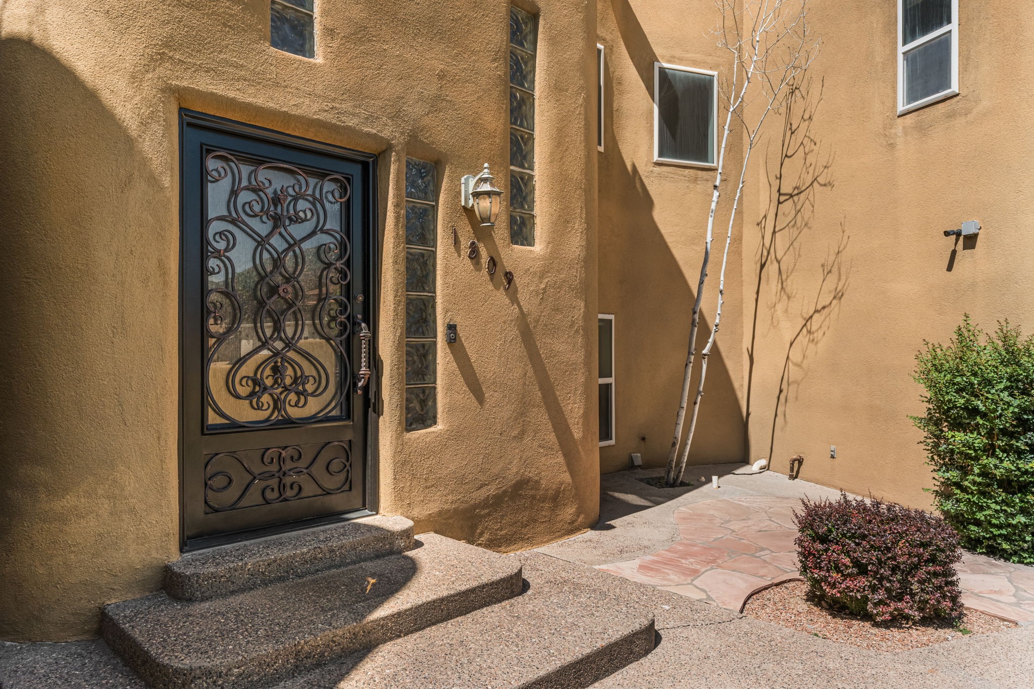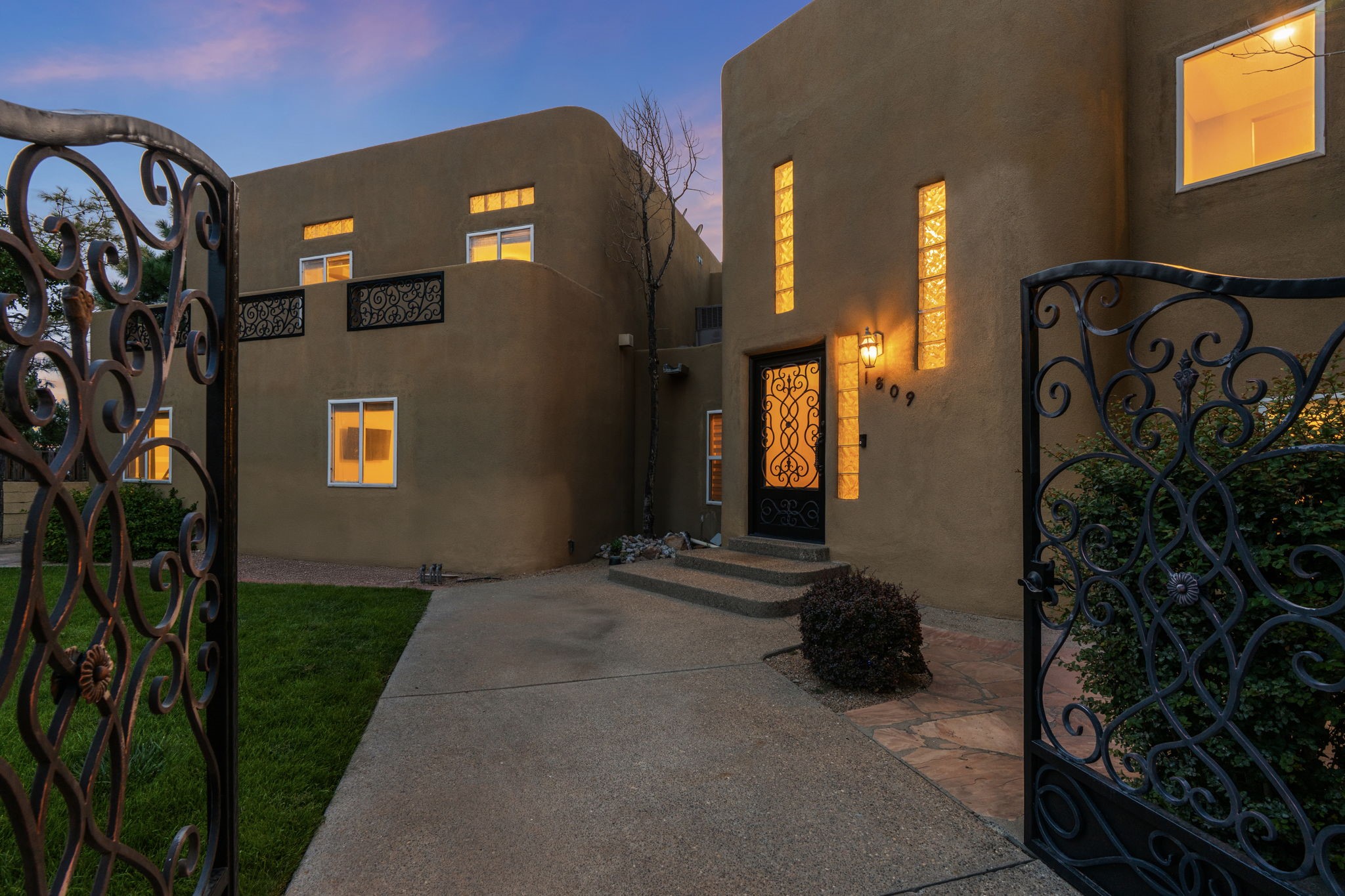 This elegant 1809 Archuleta Dr NE. This expansive 6-bedroom, 4-bath home offers an updated kitchen that blends style and functionality, two primary suites, a spacious upstairs living/game room with a bar, and an inviting atrium. Enjoy a cinematic experience in the private movie theater room, or take advantage of the tandem pull-through garage, which leads to a beautifully landscaped backyard. Nestled next to Embudo Canyon, the property ensures privacy and tranquility. The outdoor space includes an inground pool, outdoor kitchen, fruit trees (peach, cherry, apricot), and grapevines--perfect for both relaxation and entertainment.