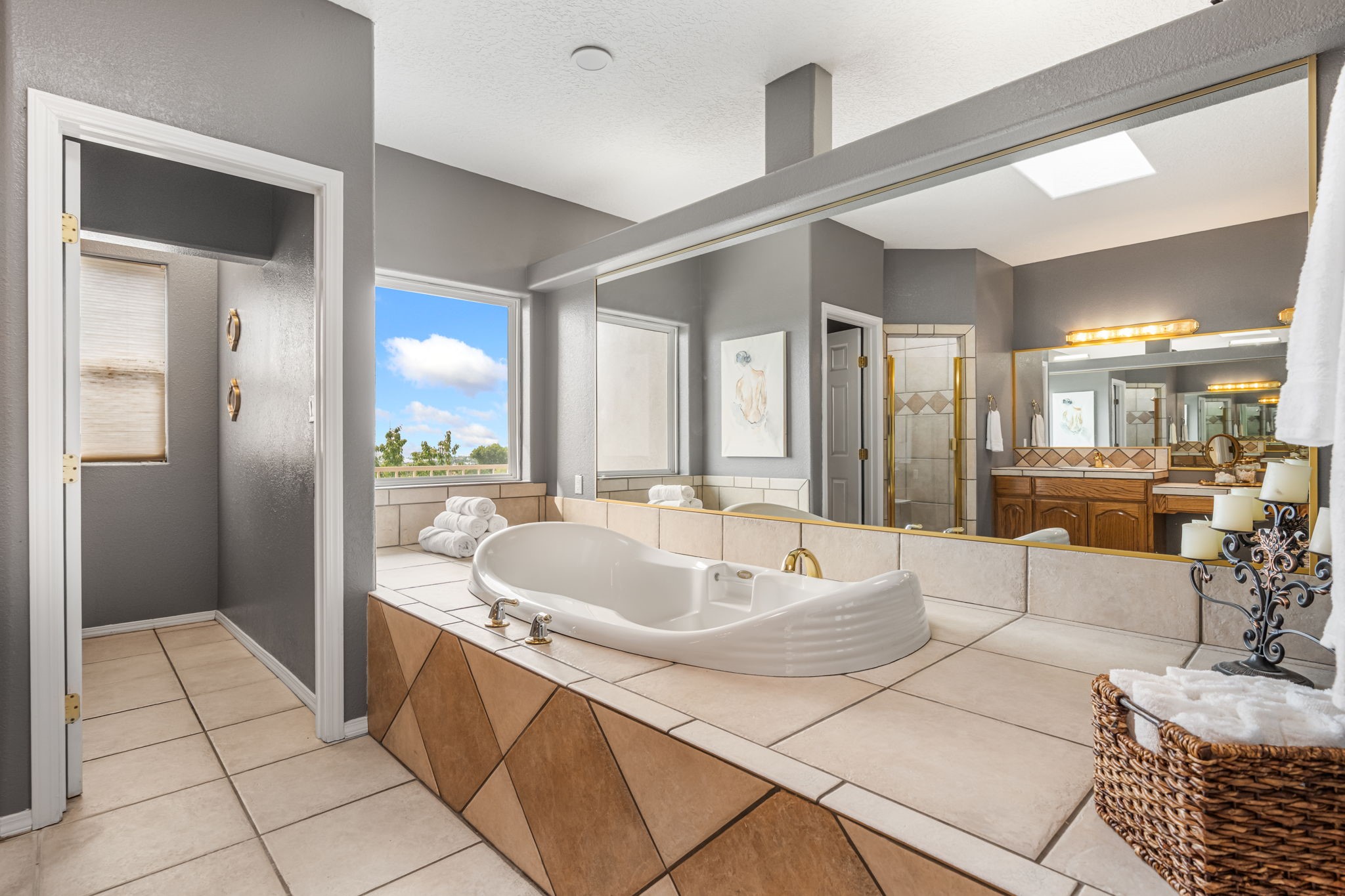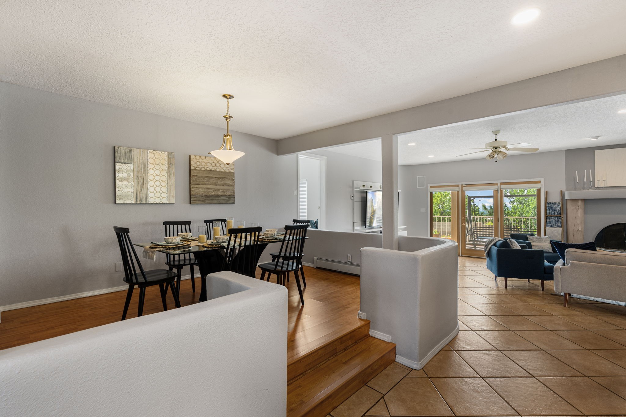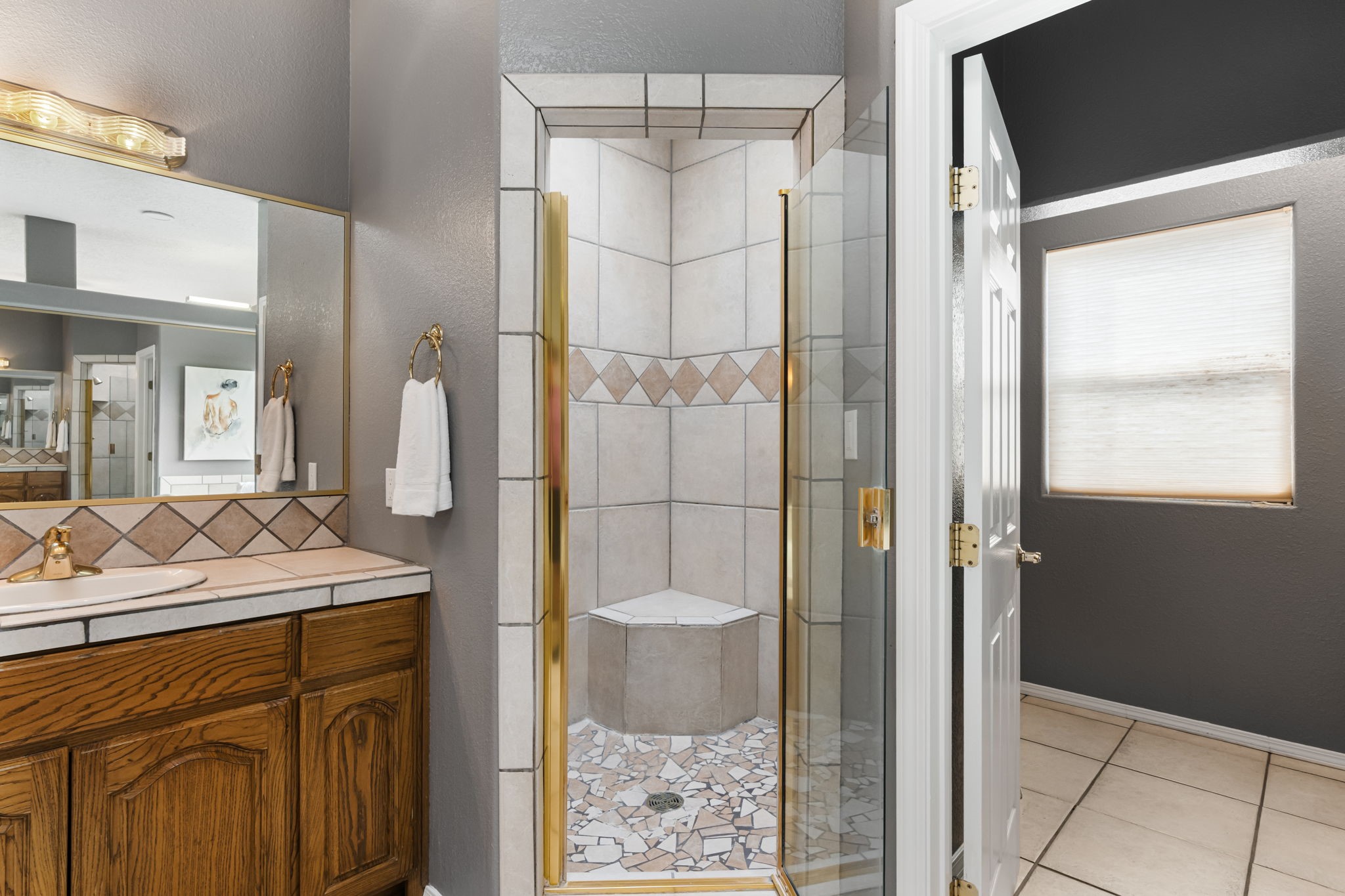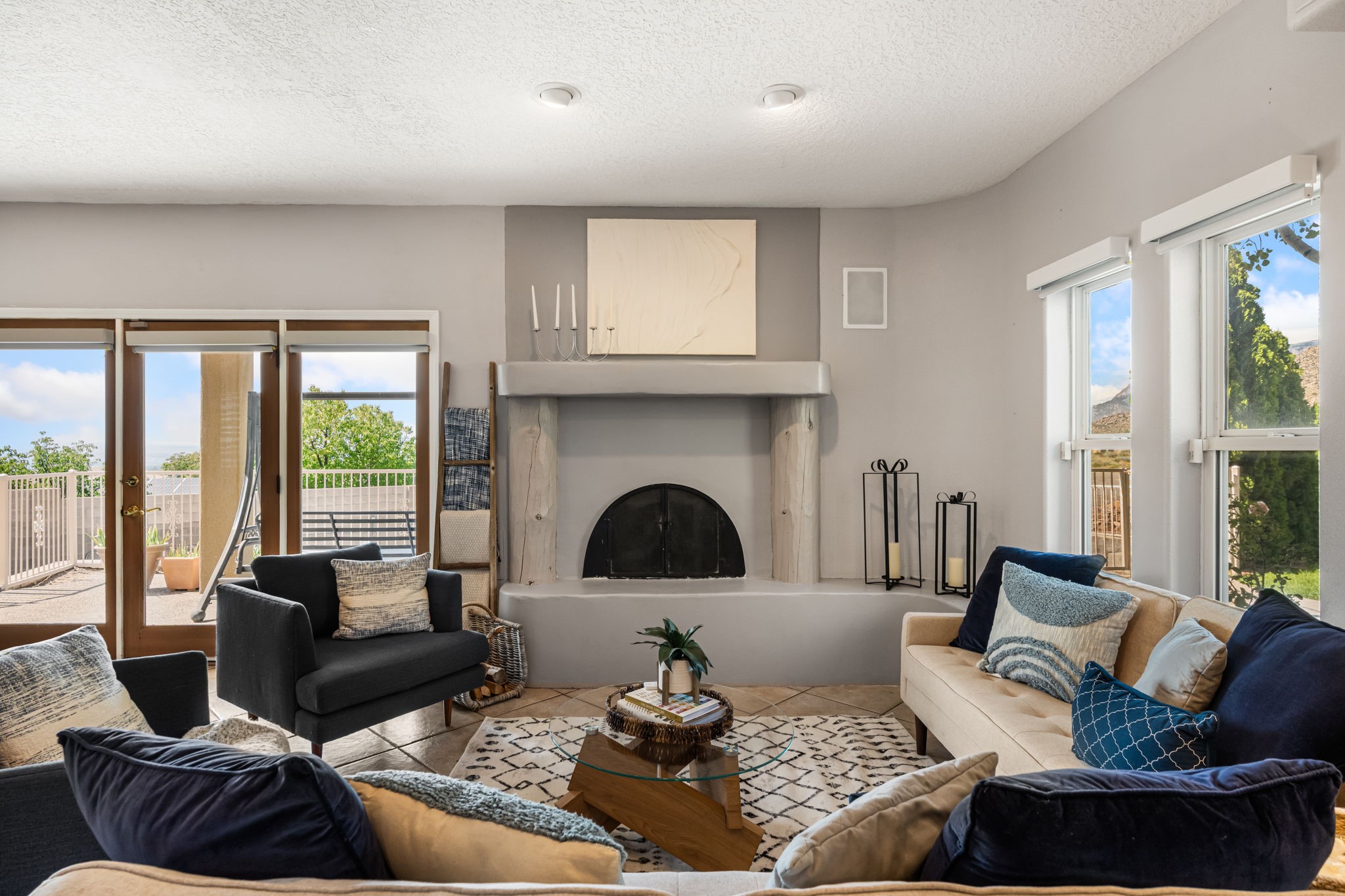 This elegant 1809 Archuleta Dr NE. This expansive 6-bedroom, 4-bath home offers an updated kitchen that blends style and functionality, two primary suites, a spacious upstairs living/game room with a bar, and an inviting atrium. Enjoy a cinematic experience in the private movie theater room, or take advantage of the tandem pull-through garage, which leads to a beautifully landscaped backyard. Nestled next to Embudo Canyon, the property ensures privacy and tranquility. The outdoor space includes an inground pool, outdoor kitchen, fruit trees (peach, cherry, apricot), and grapevines--perfect for both relaxation and entertainment.