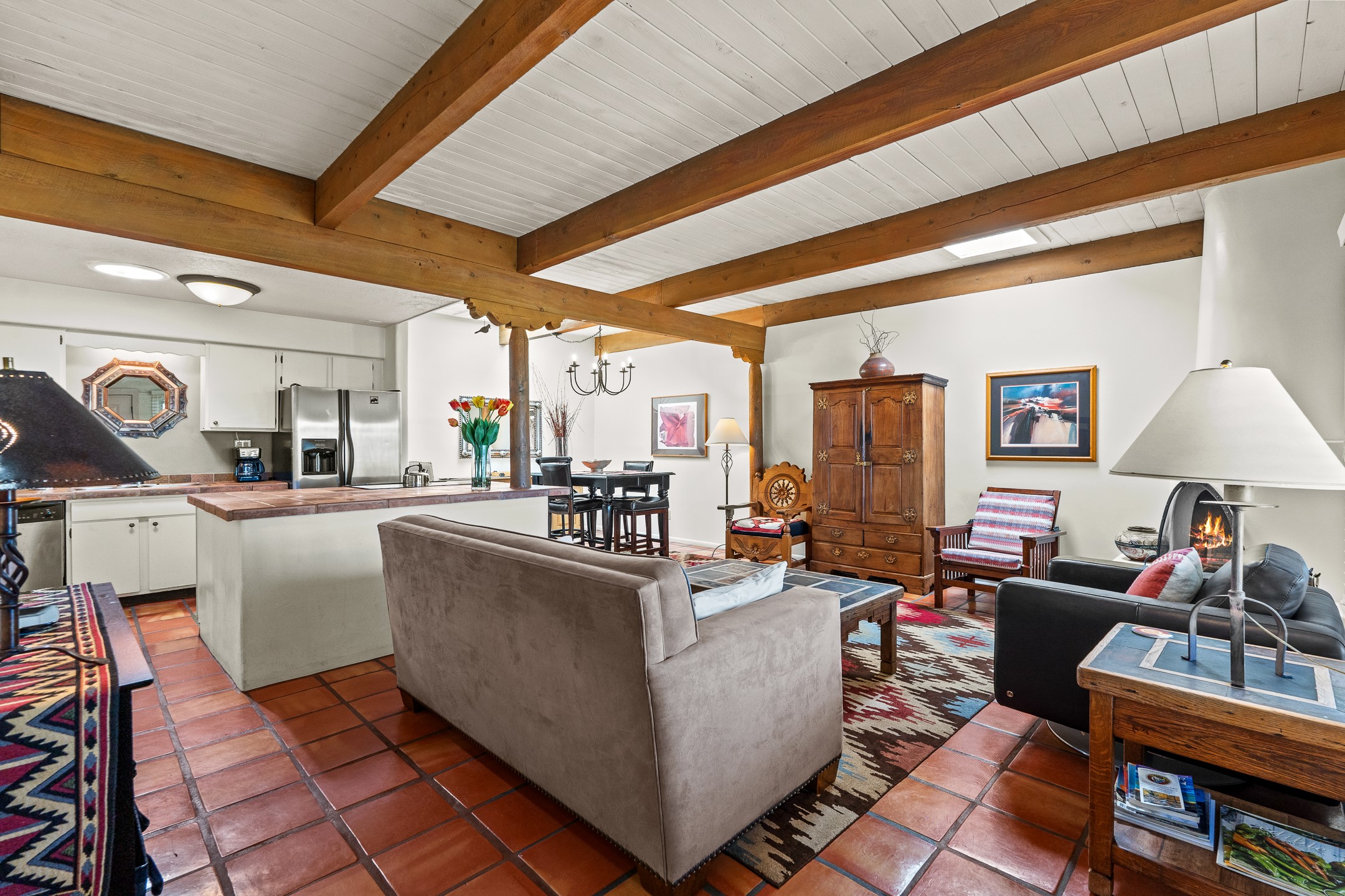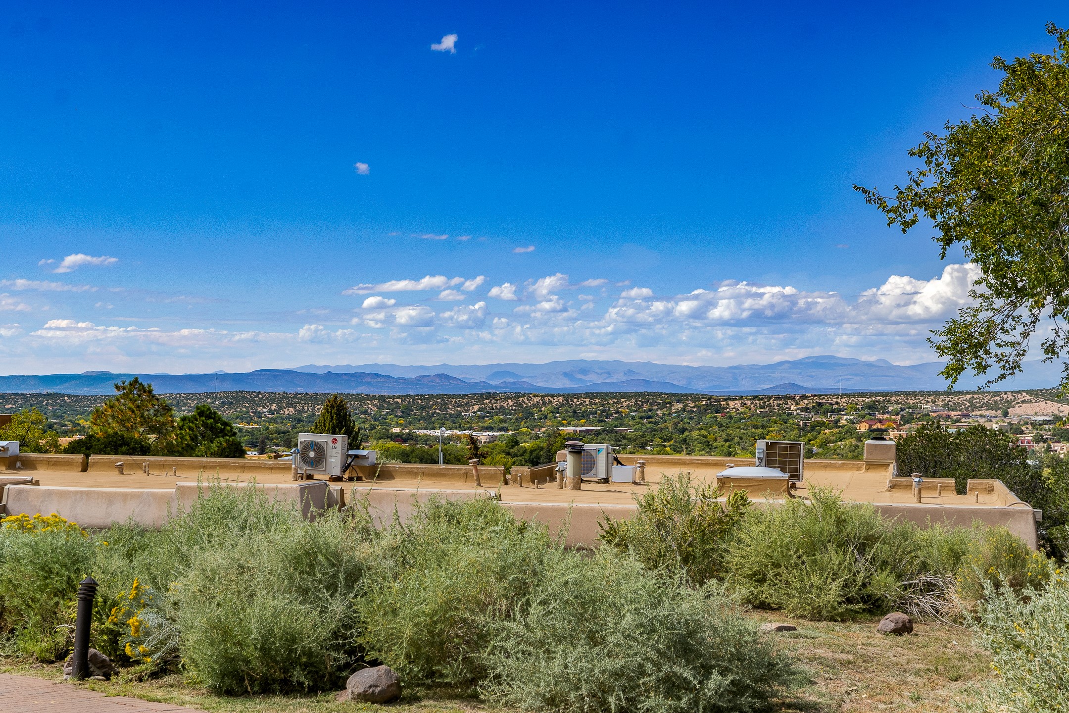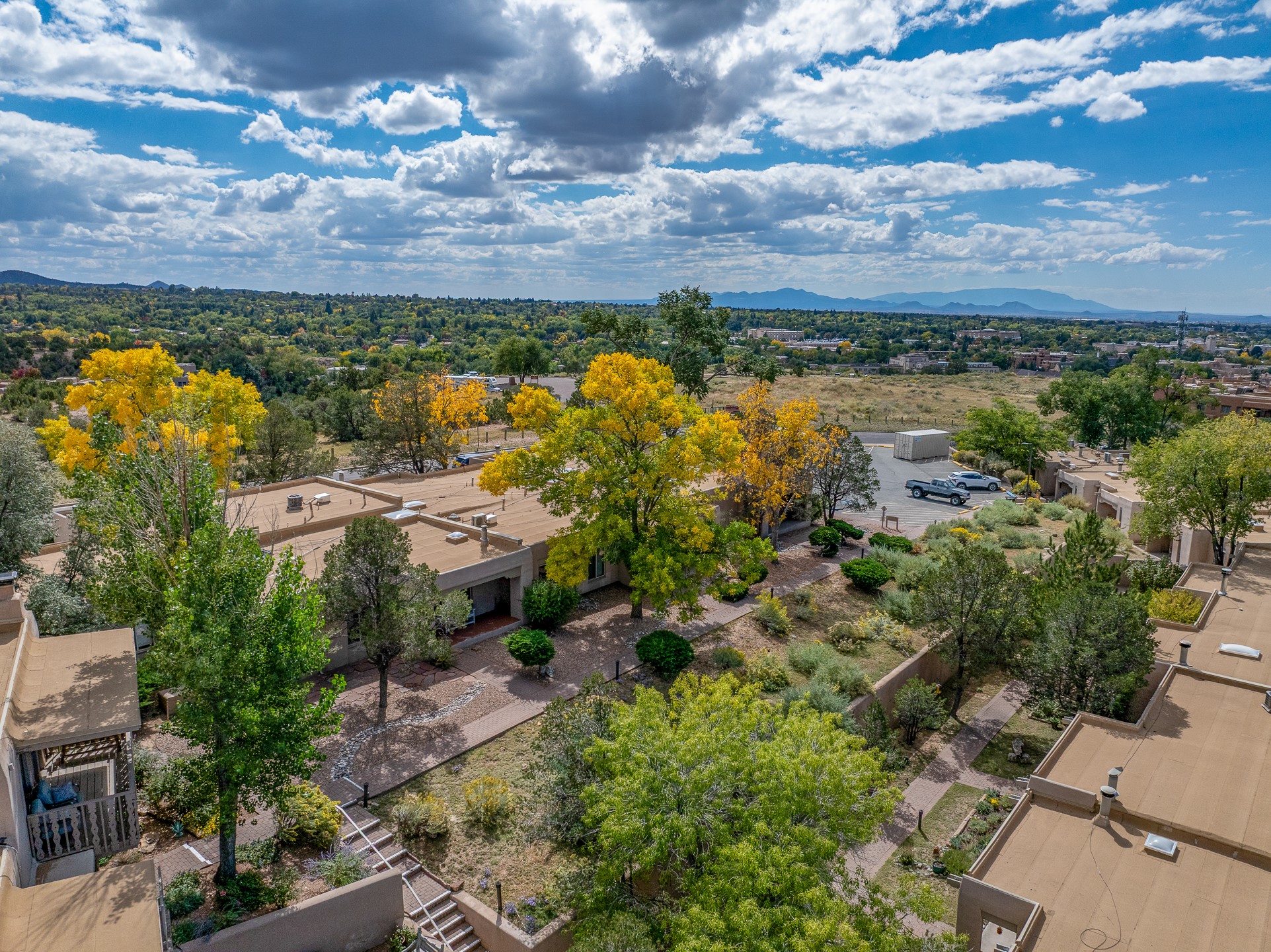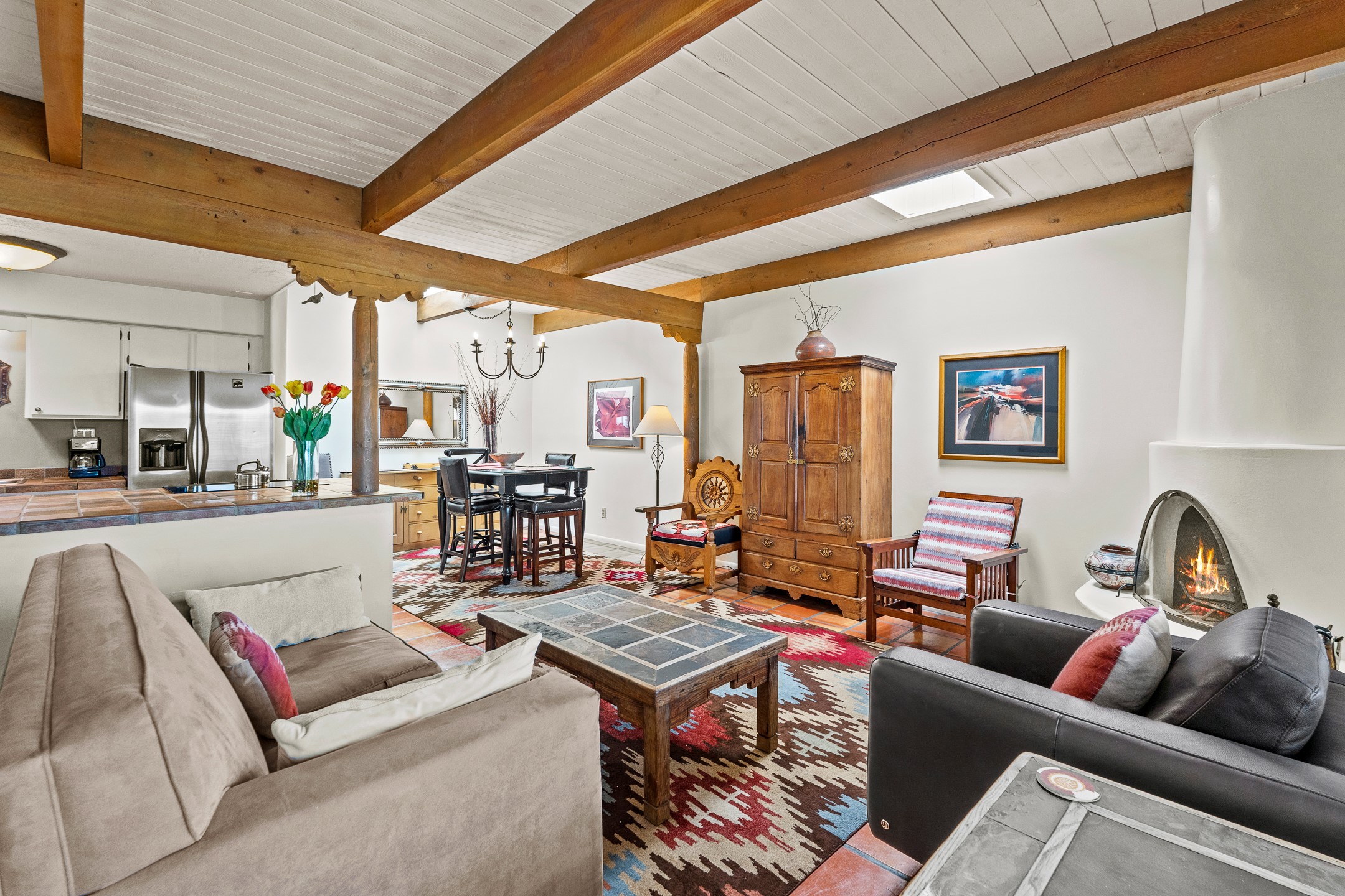 This delightful condo enjoys a premium location within the coveted Fort Marcy Compound. It's single level with no steps inside, no steps to access the condo from nearby parking, with views of the sunset and city lights. It features a wood-burning kiva fireplace, skylights, an open floorplan, washer/dryer in unit, new roof (2024) and new heating and air-conditioning. Offered fully furnished, this one will not last long! Book your showing today!