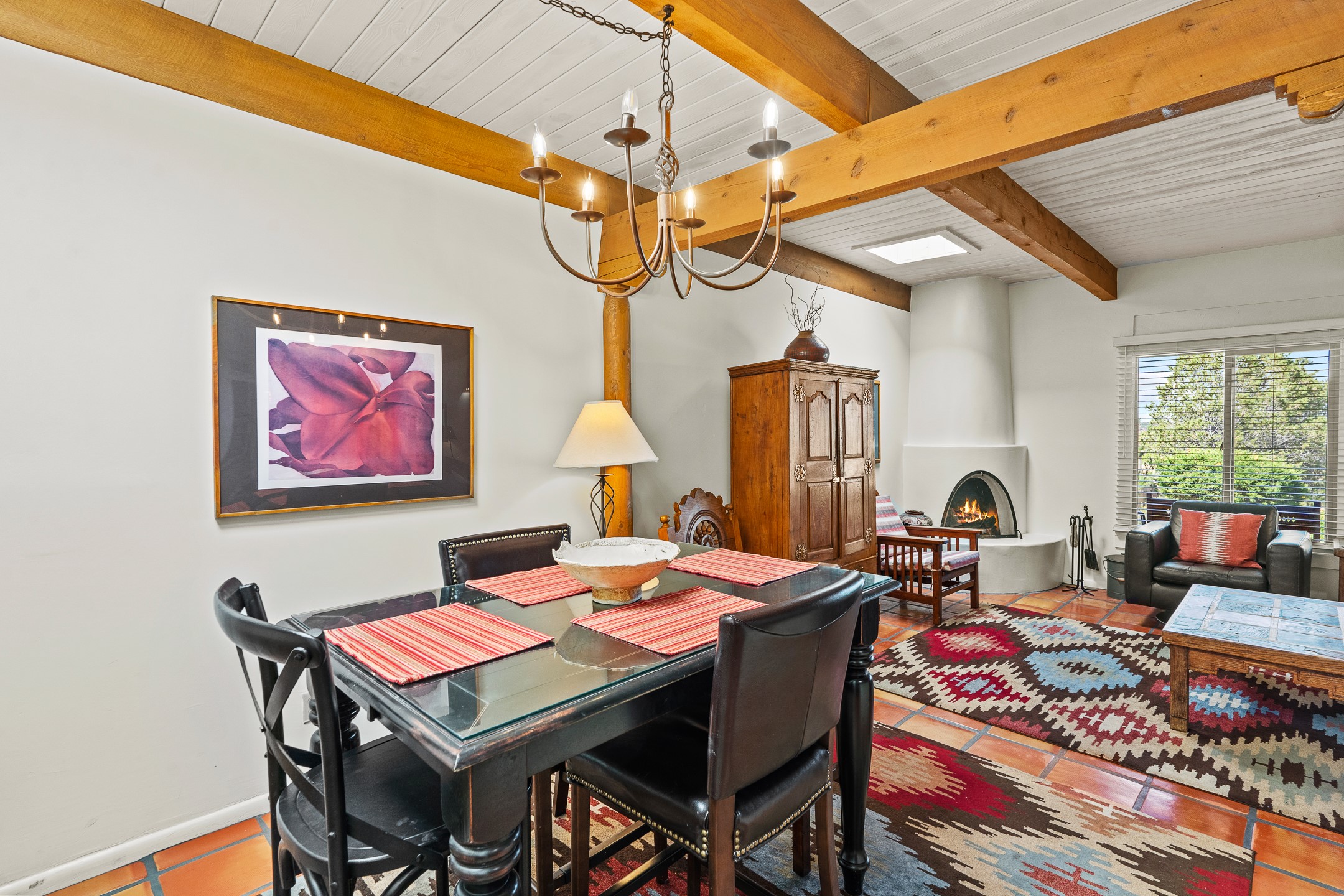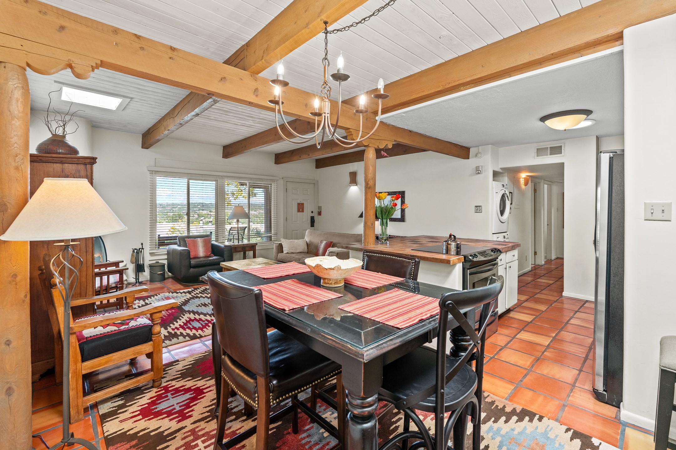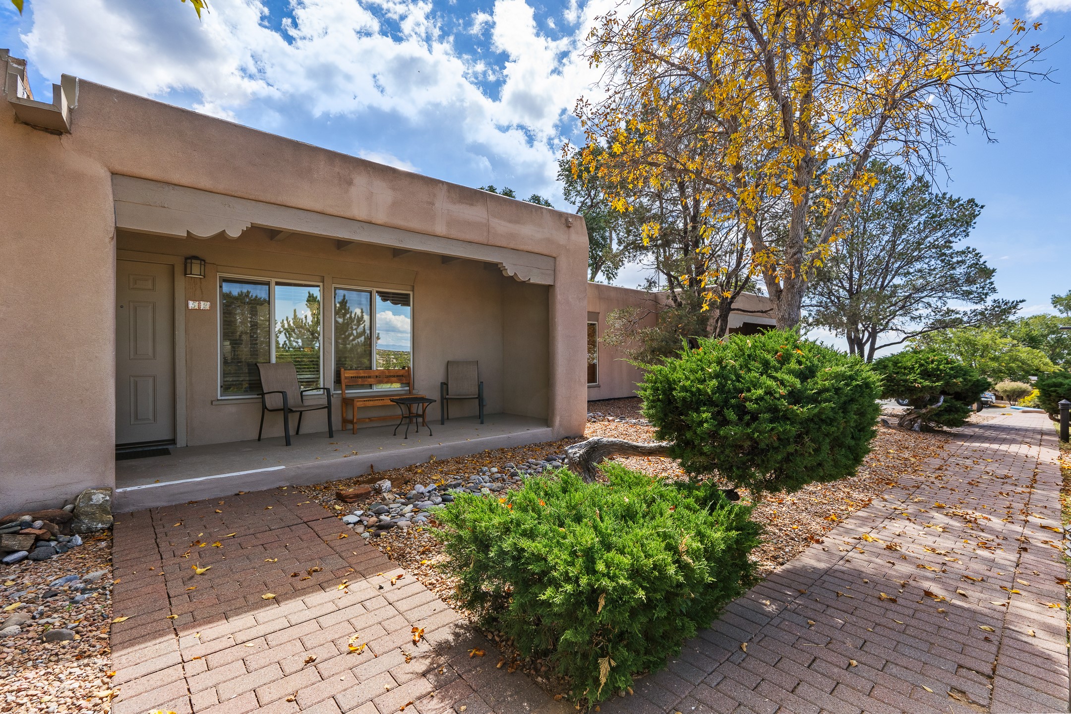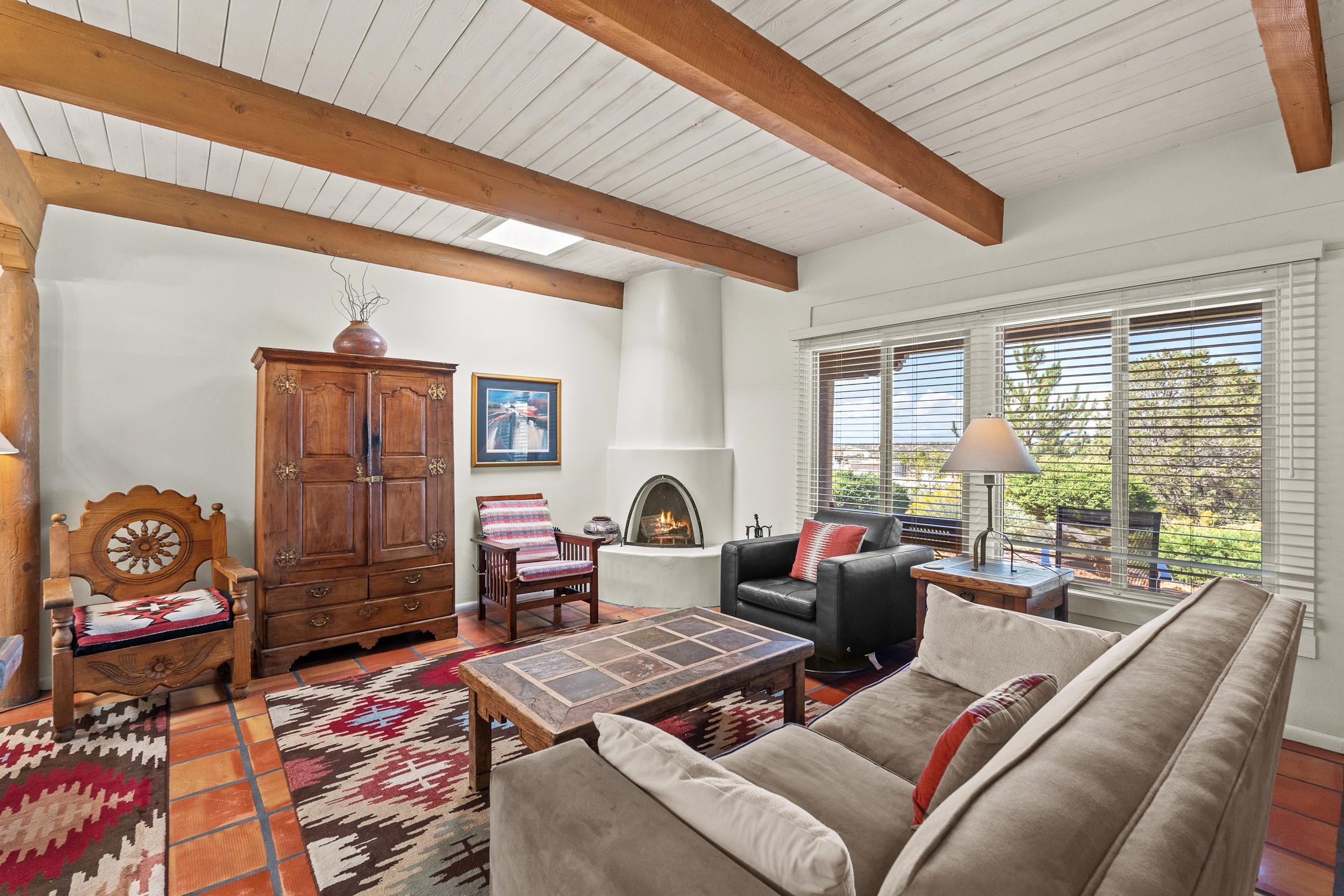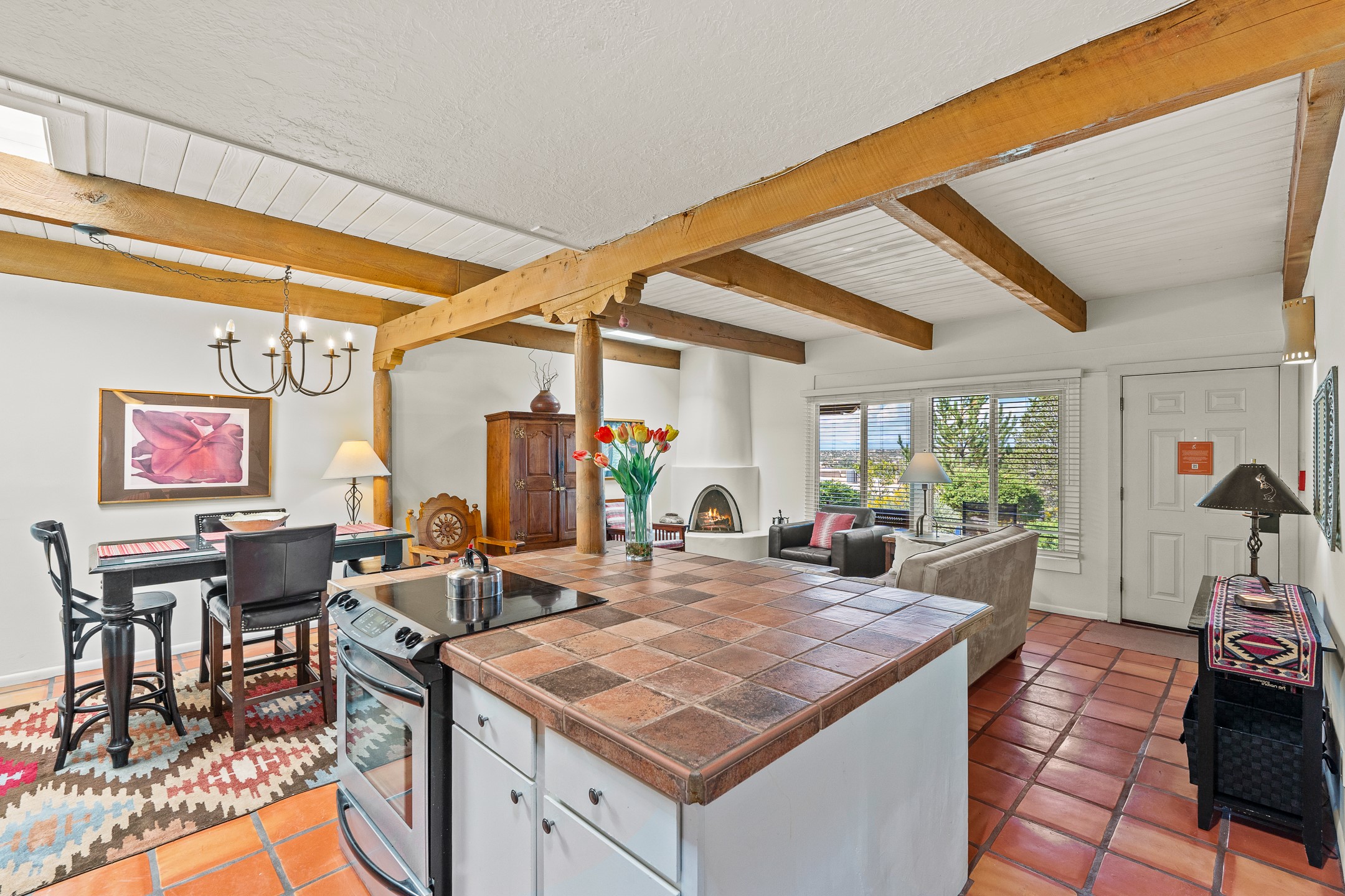 This delightful condo enjoys a premium location within the coveted Fort Marcy Compound. It's single level with no steps inside, no steps to access the condo from nearby parking, with views of the sunset and city lights. It features a wood-burning kiva fireplace, skylights, an open floorplan, washer/dryer in unit, new roof (2024) and new heating and air-conditioning. Offered fully furnished, this one will not last long! Book your showing today!