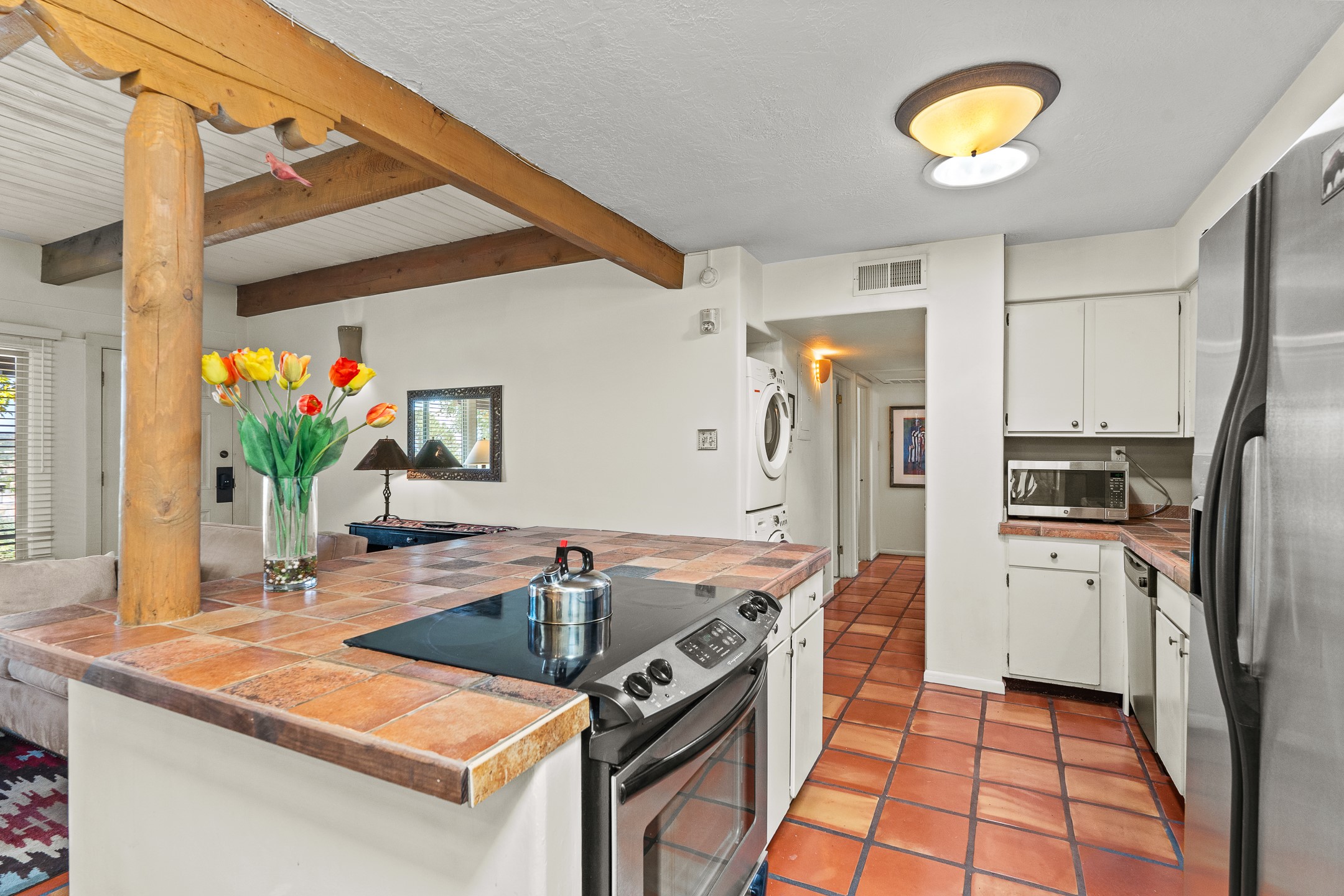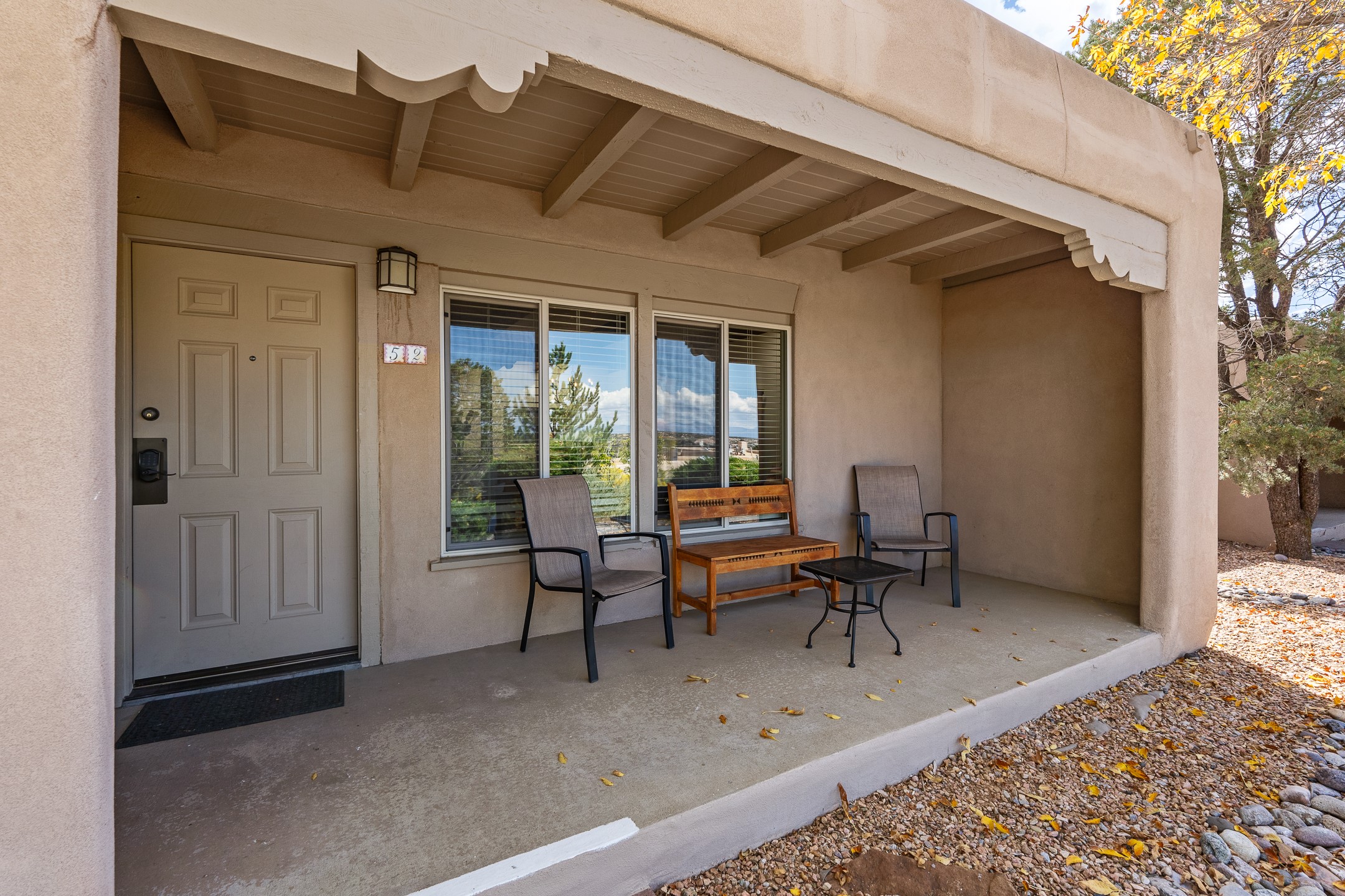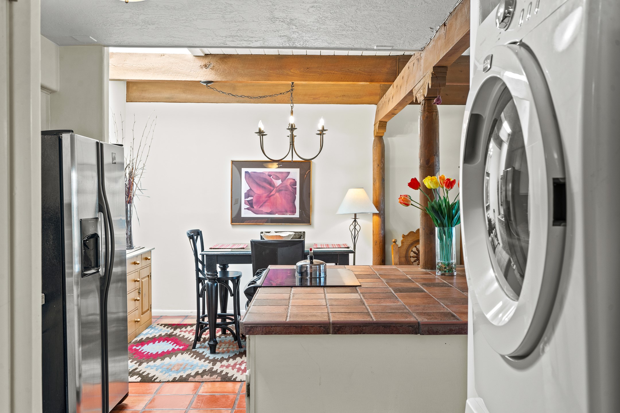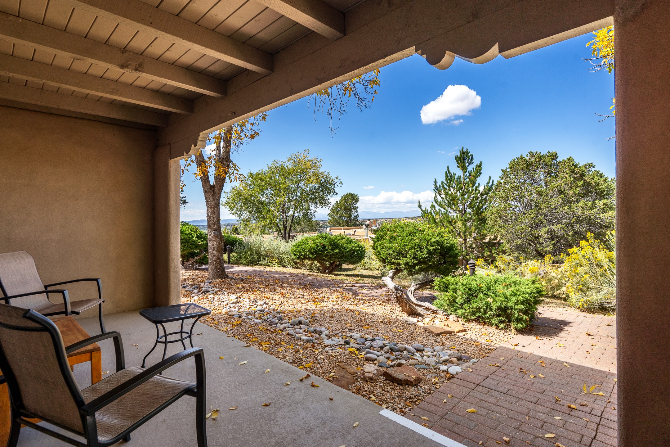 This delightful condo enjoys a premium location within the coveted Fort Marcy Compound. It's single level with no steps inside, no steps to access the condo from nearby parking, with views of the sunset and city lights. It features a wood-burning kiva fireplace, skylights, an open floorplan, washer/dryer in unit, new roof (2024) and new heating and air-conditioning. Offered fully furnished, this one will not last long! Book your showing today!