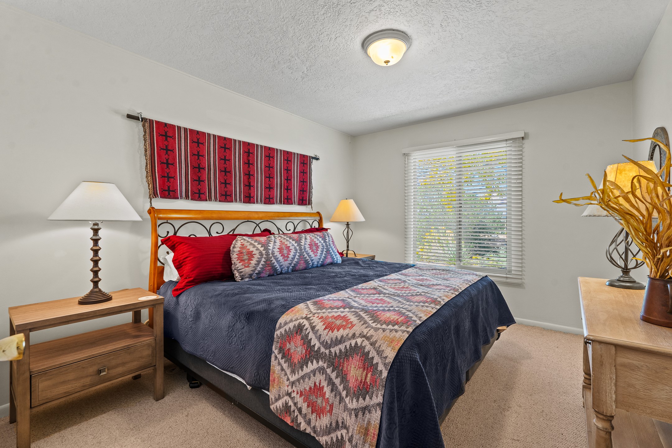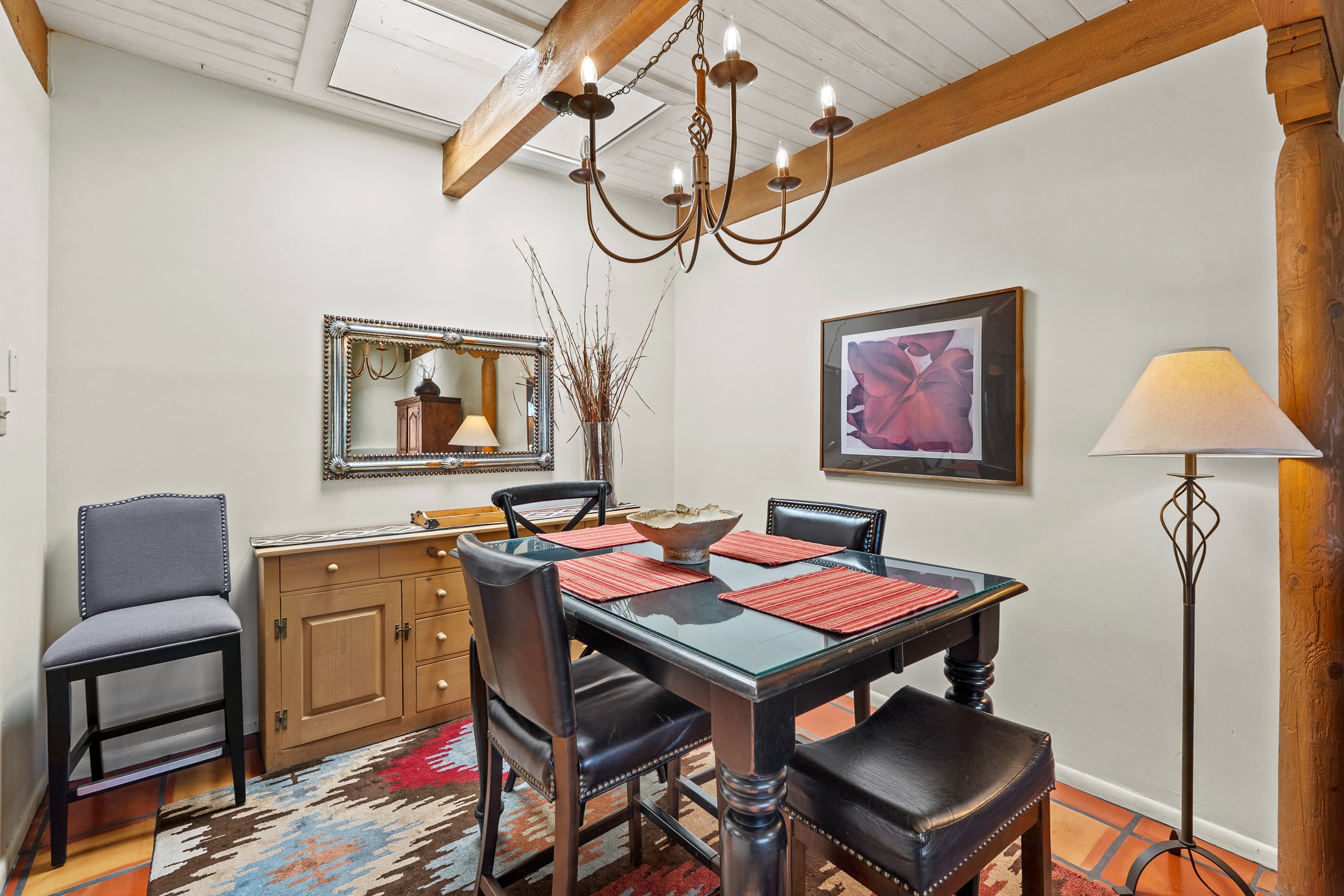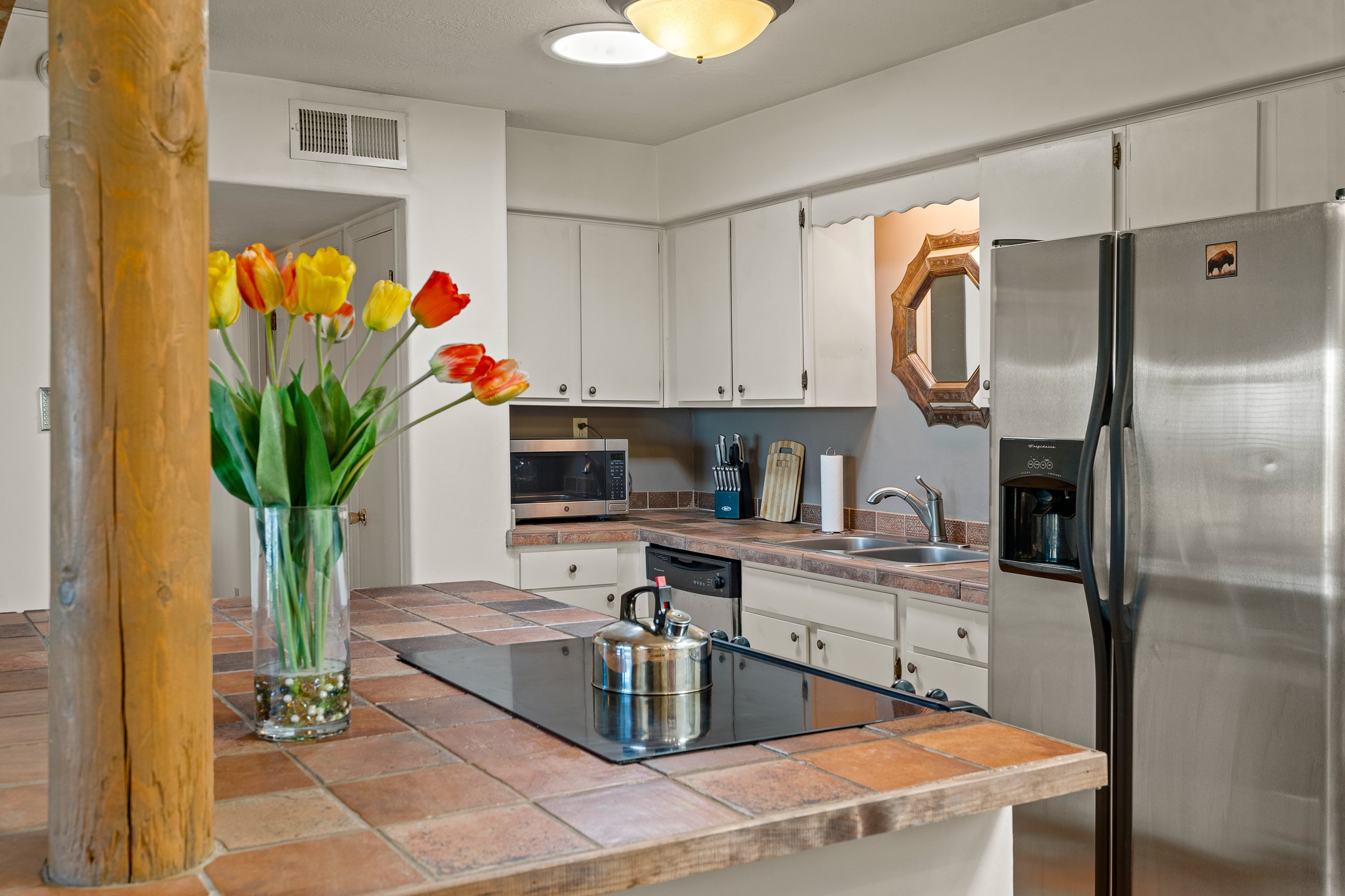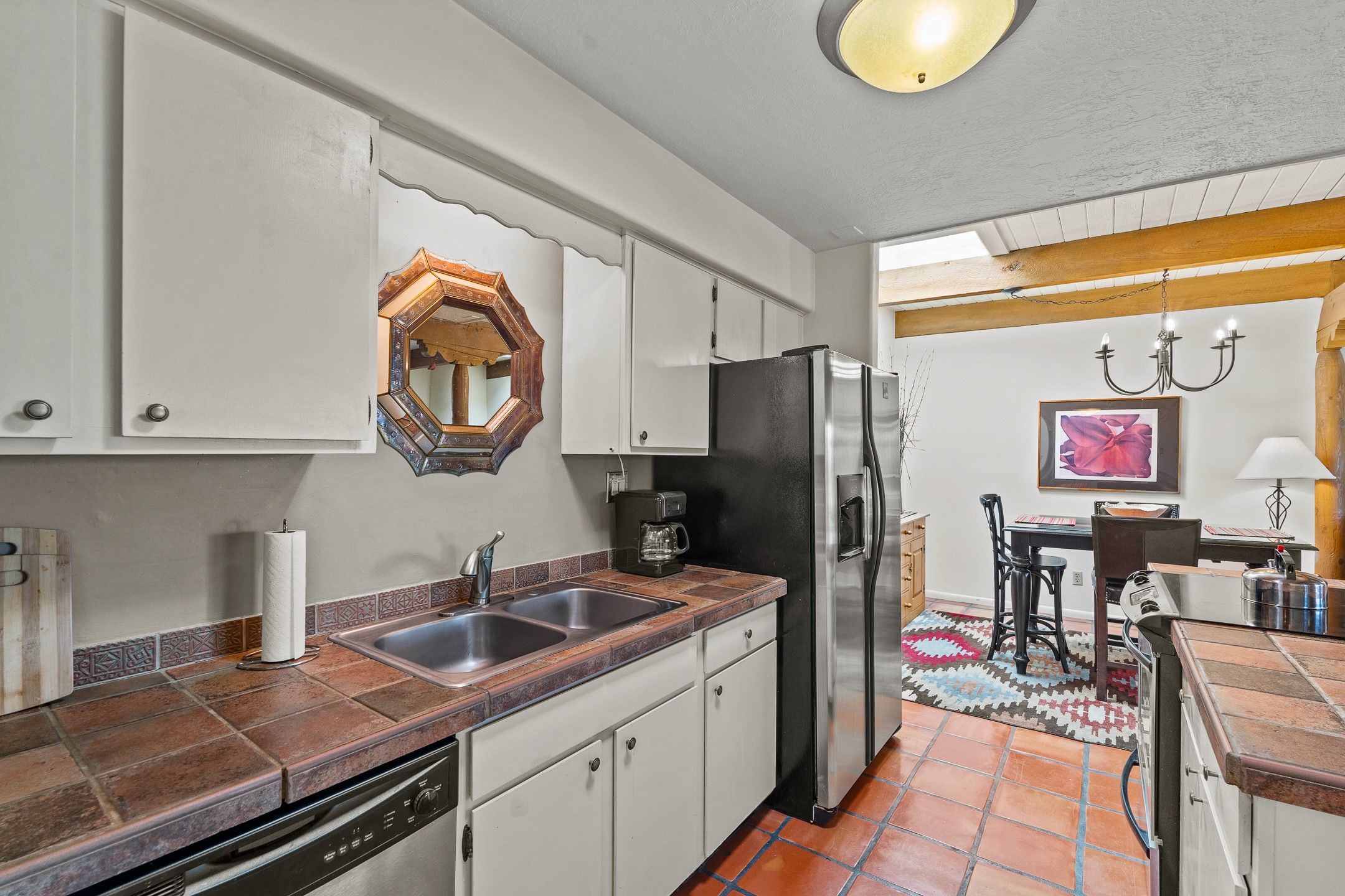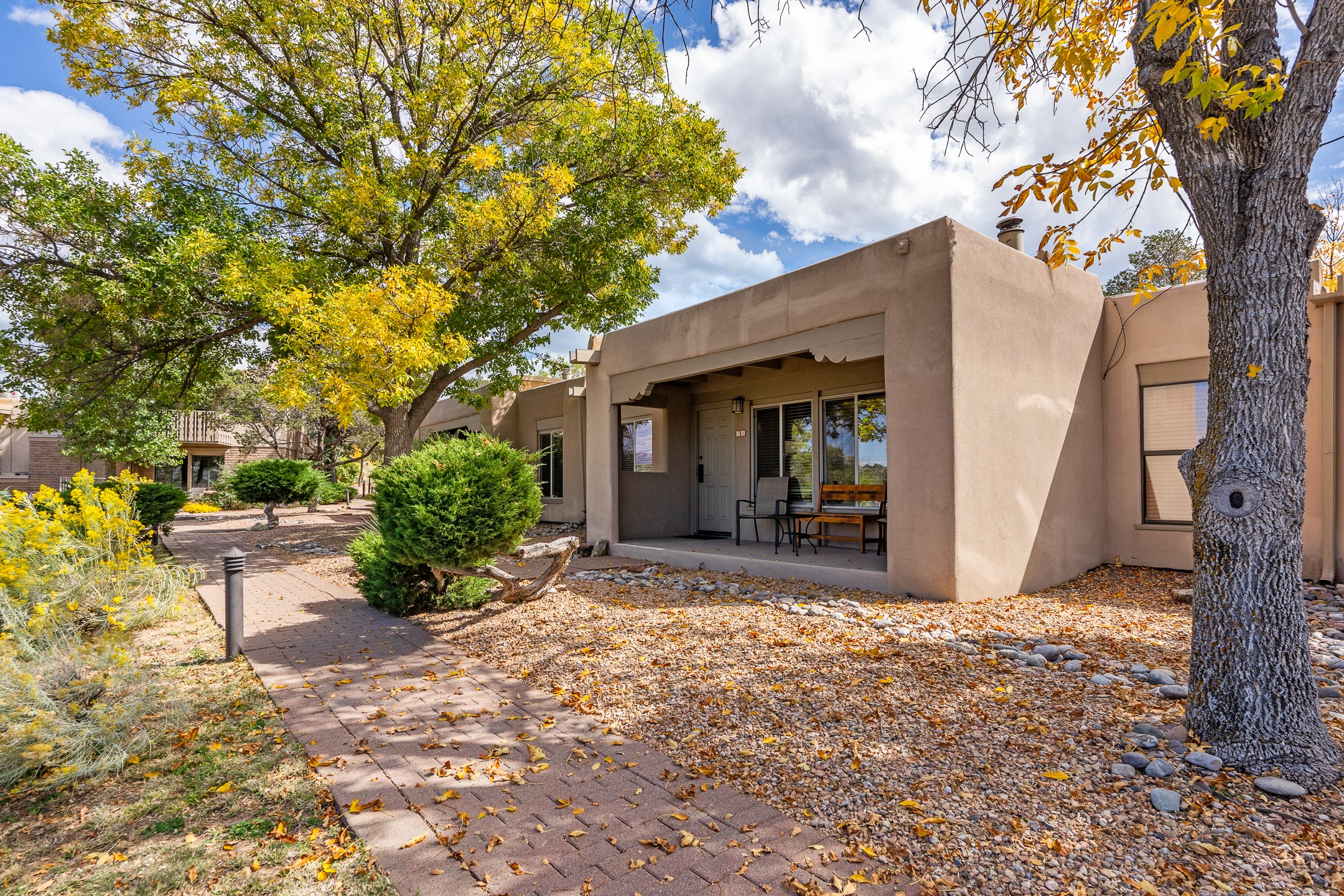 This delightful condo enjoys a premium location within the coveted Fort Marcy Compound. It's single level with no steps inside, no steps to access the condo from nearby parking, with views of the sunset and city lights. It features a wood-burning kiva fireplace, skylights, an open floorplan, washer/dryer in unit, new roof (2024) and new heating and air-conditioning. Offered fully furnished, this one will not last long! Book your showing today!