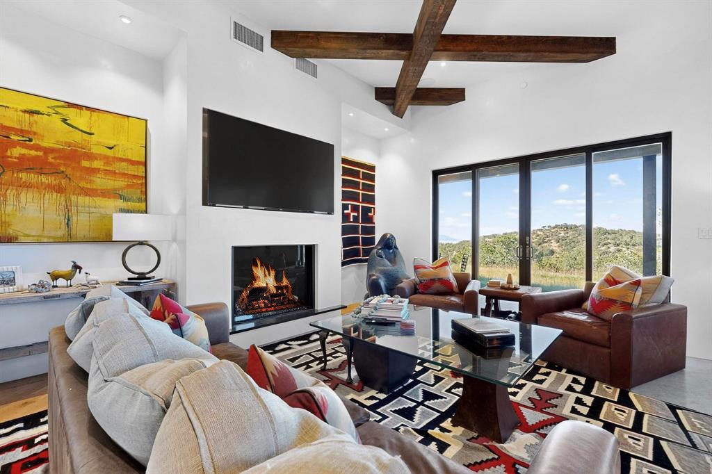 Stunning Santa Fe Contemporary Home in Prestigious High SummitExperience refined Santa Fe living in this recently completed custom home by acclaimed builder John Reeder Construction, located in the highly sought-after gated High Summit community off Hyde Park Road. This residence is approximately 3546 sq ft with 3 bedrooms and blends modern design with timeless southwest elements. The heart of this home is a true chef's kitchen, featuring exquisite custom cabinetry, a spacious center island with built-in service drawers, and seamless access to a climate-controlled wine room that accommodates hundreds of bottles- perfect for entertaining. The open-concept family room boasts a grand fireplace and opens onto a covered portal ideal for al fresco dining while taking in breathtaking sunsets over the Santa Fe skyline. In total, this home includes four fireplaces, creating warmth and ambiance throughout. A stunning gallery-style entry provides the perfect backdrop for art and sets the tone for the rest of the home. Enjoy sweeping views of the Sangre de Cristo and Jemez mountains, as well as sparkling city lights. The professionally landscaped grounds feature two tranquil fountains and is situated on two consolidated lots, ensuring exceptional privacy-- especially for the serene primary suite. Additional features include paved roads to the home which opens onto a gated driveway lined with stone pavers. The garage is oversized (approximately 1000 sq ft). The development has underground utilities and is situated in a prime location approximately 5 minutes from the historic Santa Fe Plaza, renowned galleries and top-tier dining.