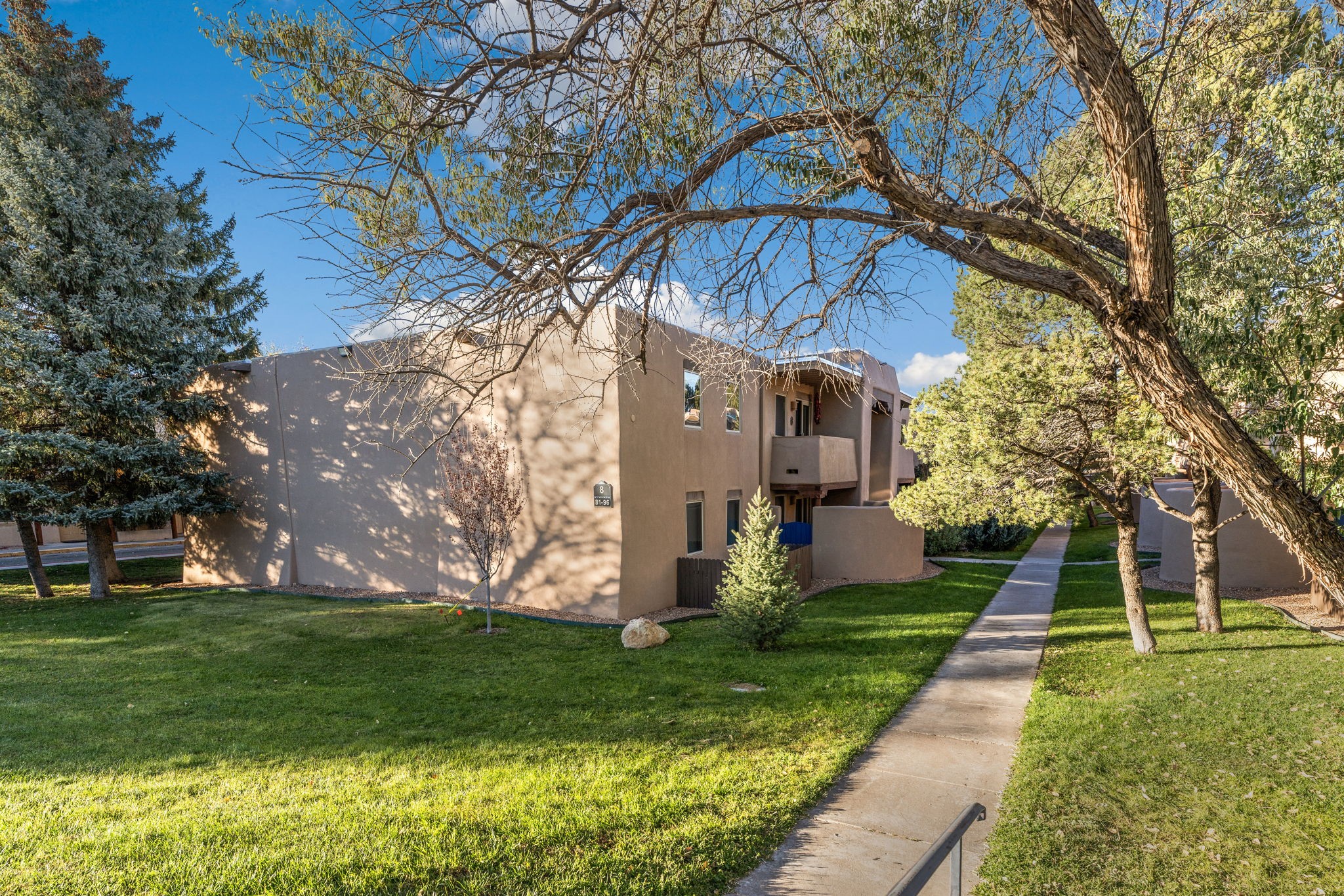 Live a Turnkey lifestyle in this super cute and well-priced 2 bedroom, 2 bathroom, second floor San Mateo condo! Enter the spacious, open concept living and dining area with gorgeous afternoon sunlight. There's laundry in the unit, and the primary suite is well equipped with a full bath and double closets. The unit is privately situated towards the back of the complex. A quick walk to the on-site gym and pool will have you healthy and relaxed year round! HOA dues cover the 24 hour gate, stucco, roof, and maintenance of common areas for additional peace of mind. Centrally located, you're a quick 5 minute drive to downtown or Southside shopping. Plus, walk or bike over to the new Zia Railrunner station for easy rides into downtown Santa Fe or Albuquerque. A new multi-use complex, the Zia Station, which will include restaurants and shopping, is currently under construction there as well. Close to the Rail Trail, you have access to miles of walking and biking trails as well. Live an easy lifestyle in this cute condo that has it all! Schedule a showing today!