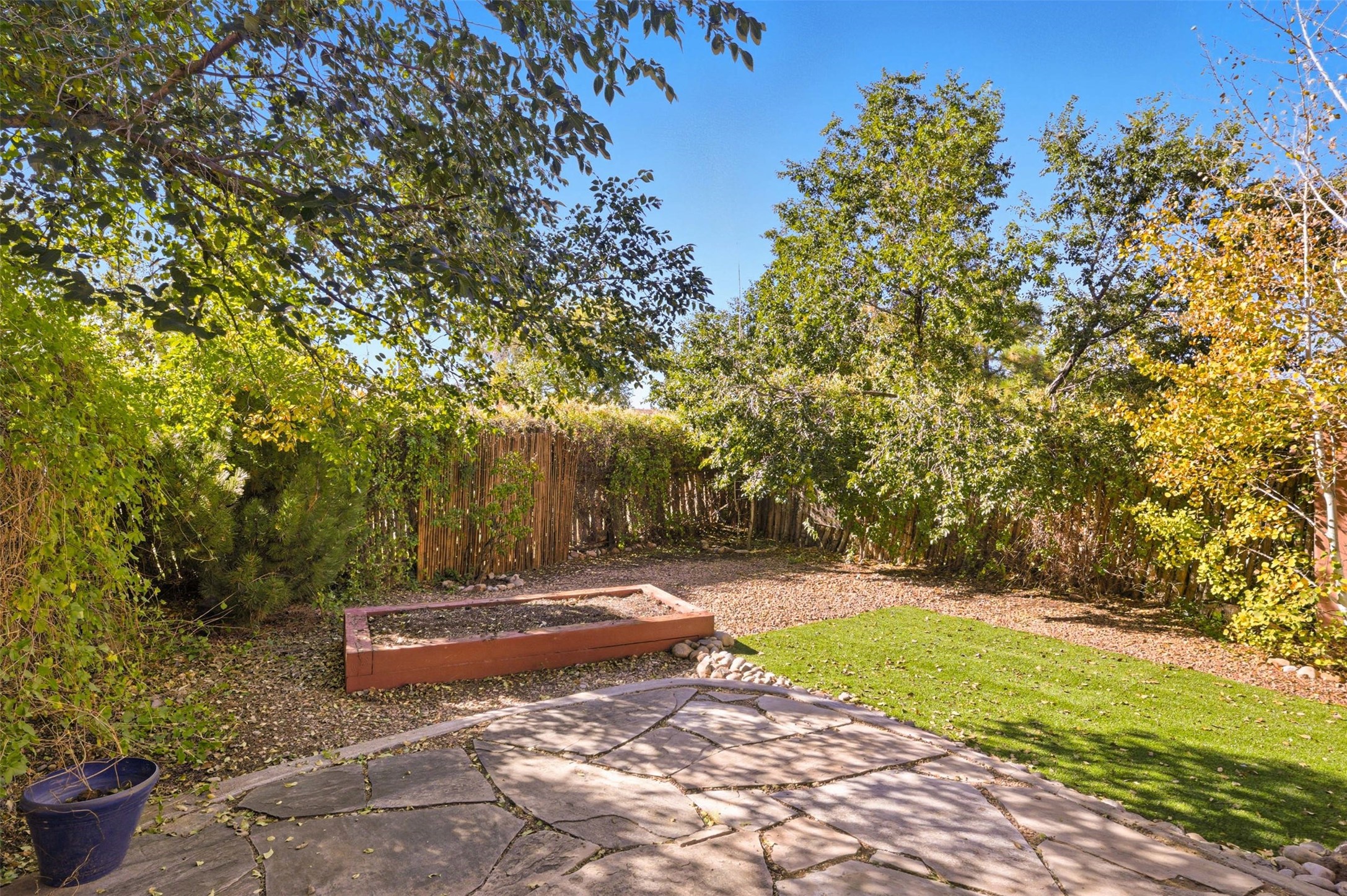 Cozy Santa Fe Charm with Modern Comforts built by Jim Hays. As the days grow cooler, imagine yourself relaxing by the warmth of a Kiva fireplace in this charming and well-maintained townhome in the heart of Santa Fe. This sweet 2-bedroom, 2-bath home offers timeless Spanish-style finishes, including classic Saltillo tile floors and hand stamped-painted wall tiles that add a touch of authentic Santa Fe character.The home features a one-car garage, nearly new appliances, and updated mini-splits for efficient heating and cooling -- with optional radiant heat available for added comfort. Step outside into your spacious, private yard -- perfect for quiet mornings, entertaining guests, or enjoying Santa Fe's beautiful skies.Located within walking distance to the Geneva Chavez Community Center and just minutes from summer rodeos, local parks, shopping, and dining -- you'll be right where the action is while still enjoying a peaceful neighborhood setting. The community also offers a small dog park with a friendly gathering area where neighbors meet and connect. Whether you're looking for a primary residence, a Santa Fe getaway, or an investment opportunity, this delightful property is sure to inspire.All information on this page is considered reliable, but not guaranteed. Please verify these property details with your agent.