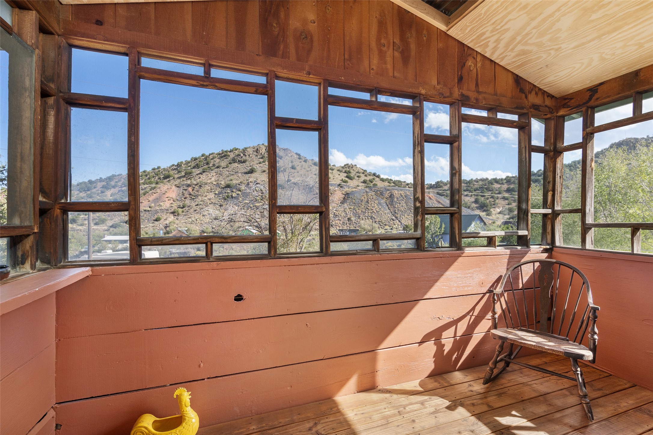 Step into the heart of Madrid's storied past with this rare 1895 miner's cabin--originally part of the town's first subdivision--now beautifully refreshed for modern living. Lovingly preserved and thoughtfully updated, this unique property blends historic character with contemporary comfort, offering endless possibilities for full-time living, an artist's retreat, or a live/work opportunity thanks to its commercial zoning. Anchored on a full foundation, the home retains its original oak flooring, balanced with new waterproof vinyl flooring in the kitchen and bath for everyday ease. Modern enhancements include a fresh stucco exterior with coded wall insulation, cement siding with new paint, and a new forced-air furnace with A/C coil already in place--making the home ready for future central air. A brand-new septic tank, updated bathroom with engineered marble vanity and new fixtures, and insulated Pella wood/clad windows further enhance both function and charm. The 240 square foot basement offers excellent expansion potential, with plumbing already roughed in for a future bath--perfect for a guest suite, studio, or workspace. Outdoors, a private yard with irrigation and a 250-gallon propane tank supports easy living, while pretty views of the Ortiz Mountains and surrounding hills frame the home with New Mexico's signature beauty. Connected to Madrid's water system and just a short stroll from galleries, cafs, and live music, this property is a rare gem: historic, beautifully updated, and ready for its next chapter.