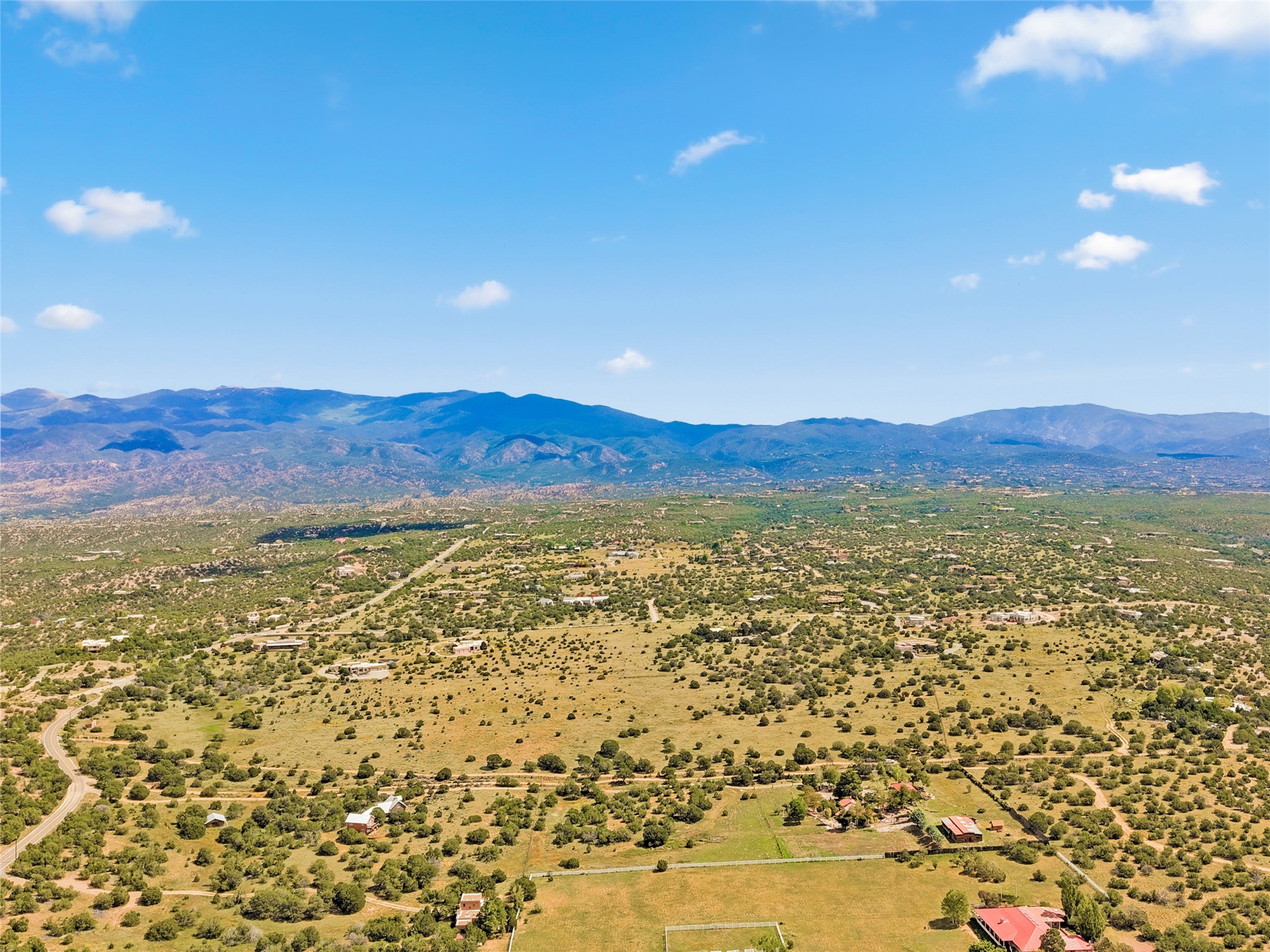 This wonderful, gated property has big views of Sangres de Cristo Mountains and sunset views over the Jemez Mountains. This is a no hassle site, with flat terrain for easy building, a shared well not subject to Aamodt and simple covenants only 15 minutes from the plaza. This gorgeous property is ready for your beautiful new home.
