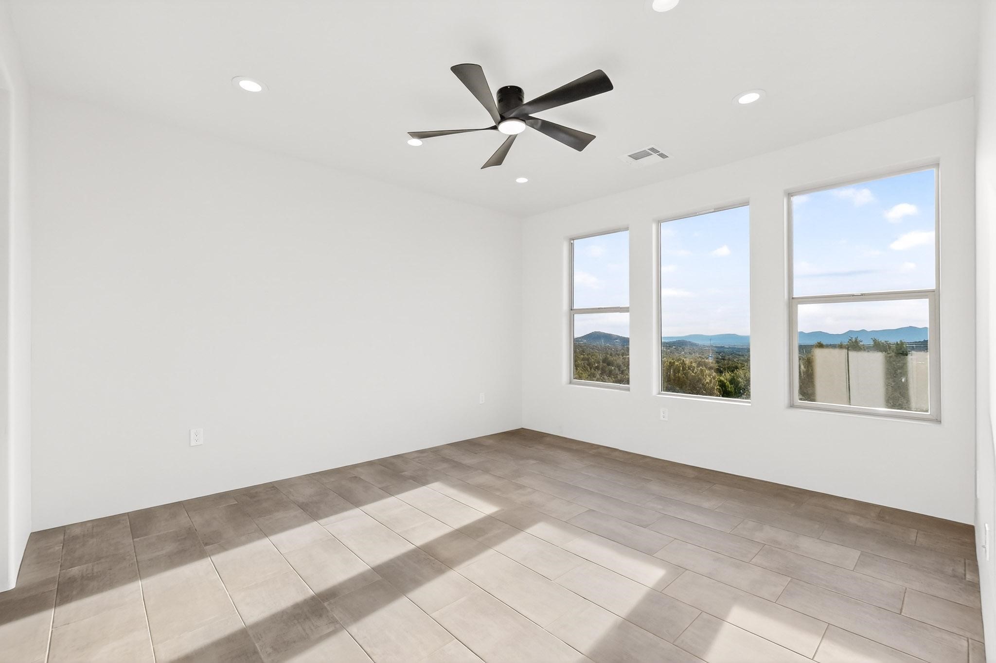 New Construction. Located in the exclusive Longview gated community, this 3-bedroom, 3-bath home with a 3-car garage offers breathtaking views of the Sandia and Galisteo Basin. Thoughtfully designed with two primary suites plus an office, the home features custom cabinetry, a walk-in pantry, and light-filled open living spaces. Enjoy seamless indoor-outdoor living, a spacious three-car garage, and the tranquility of one of Santa Fe's most sought-after settings. Owner/Broker.