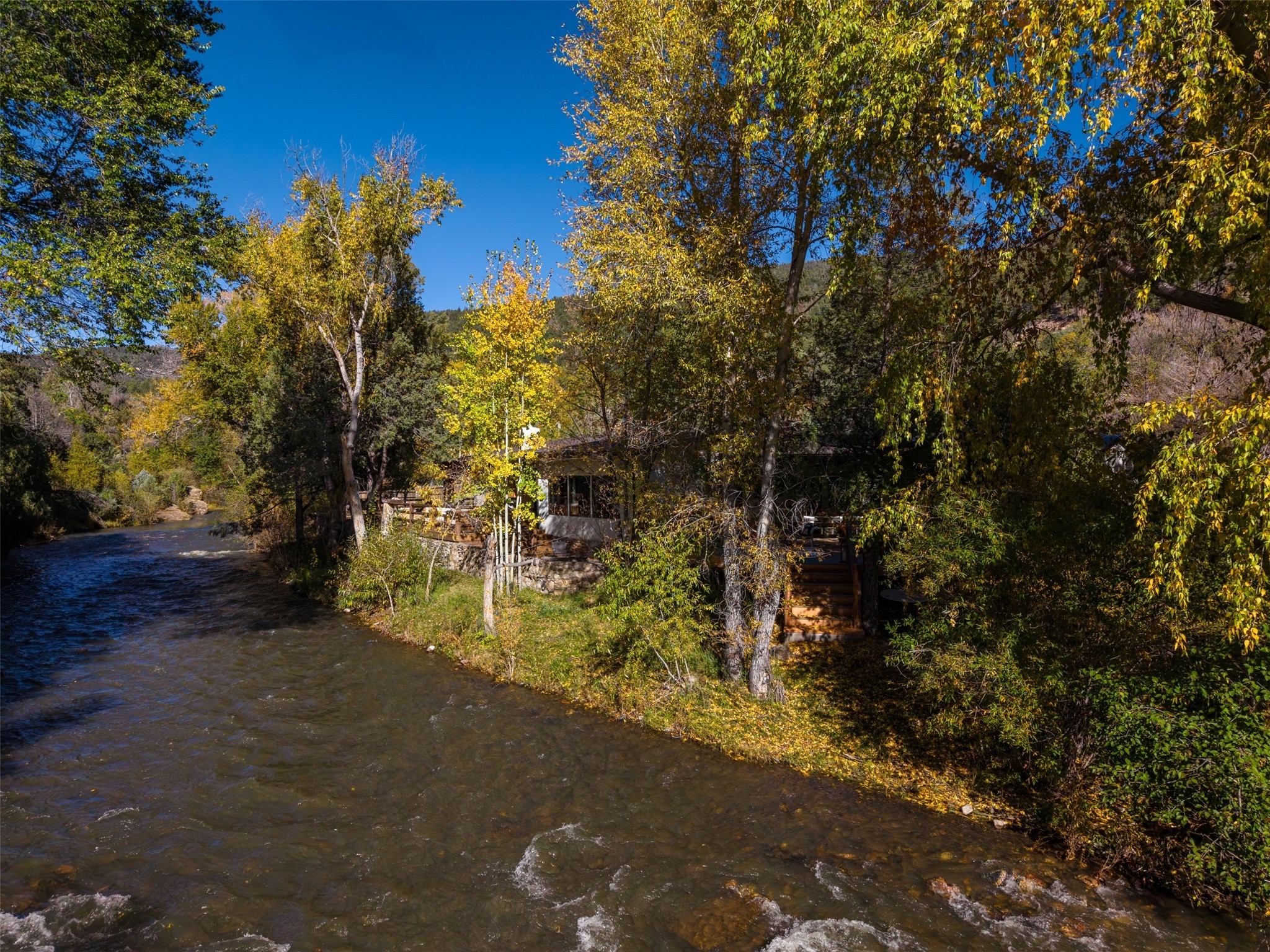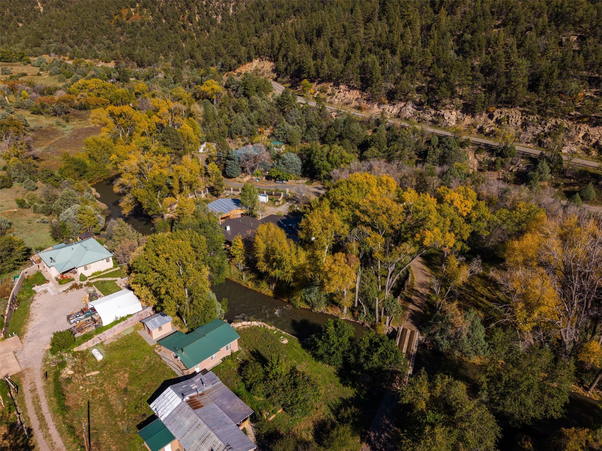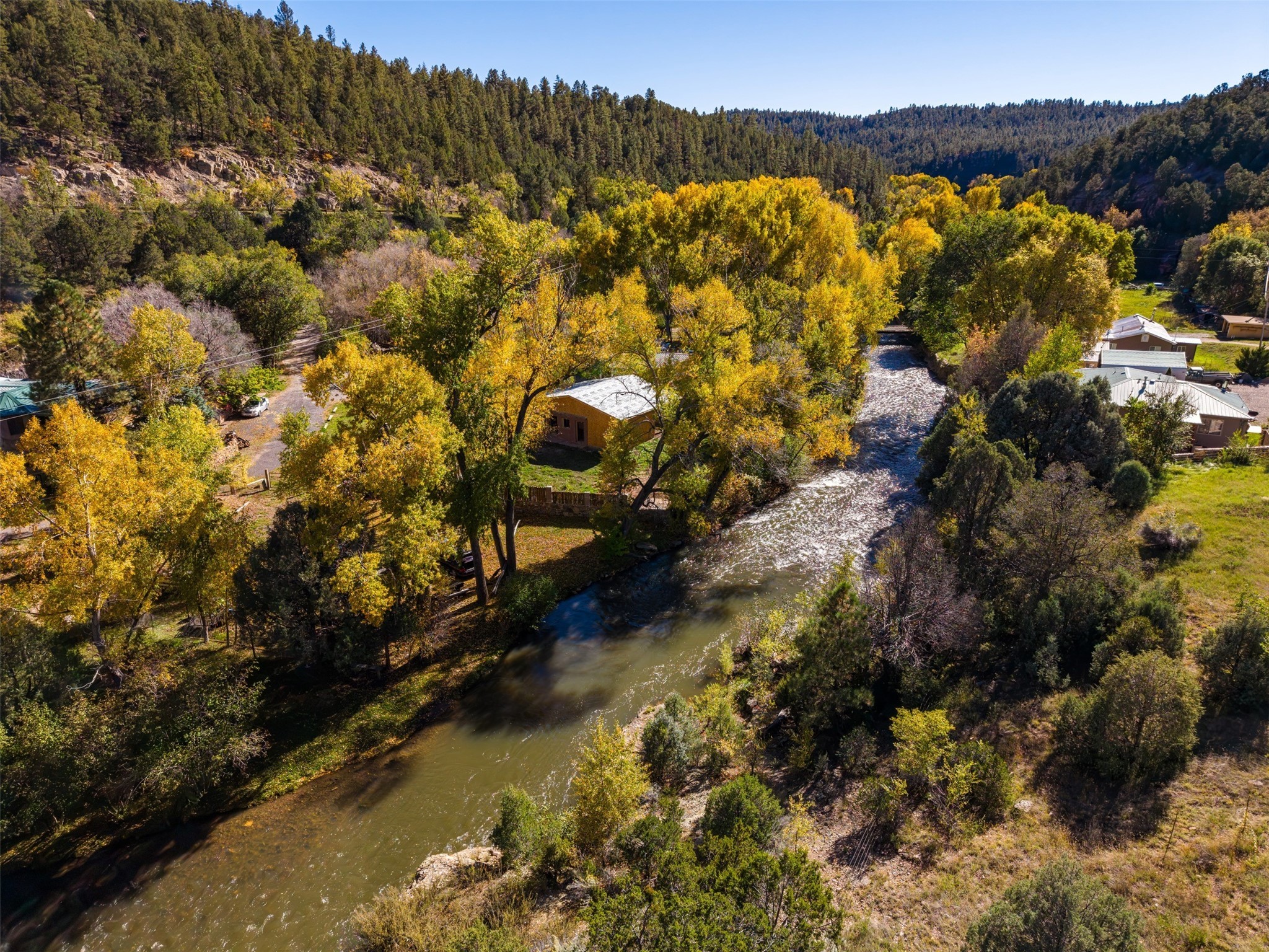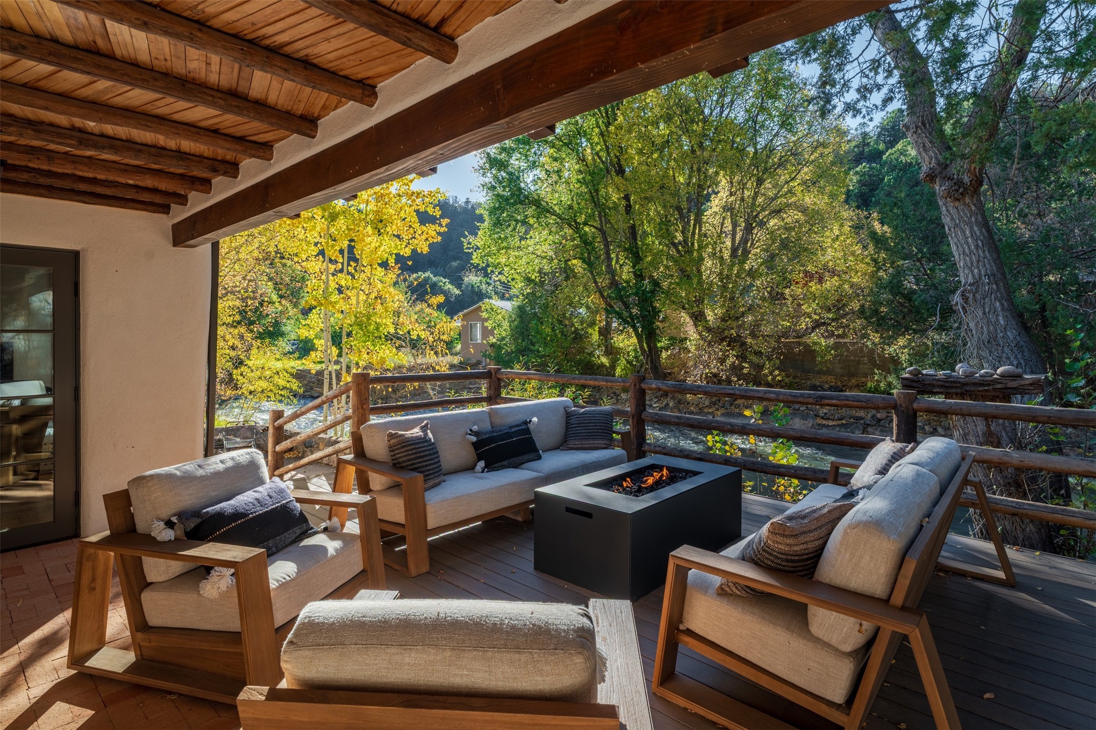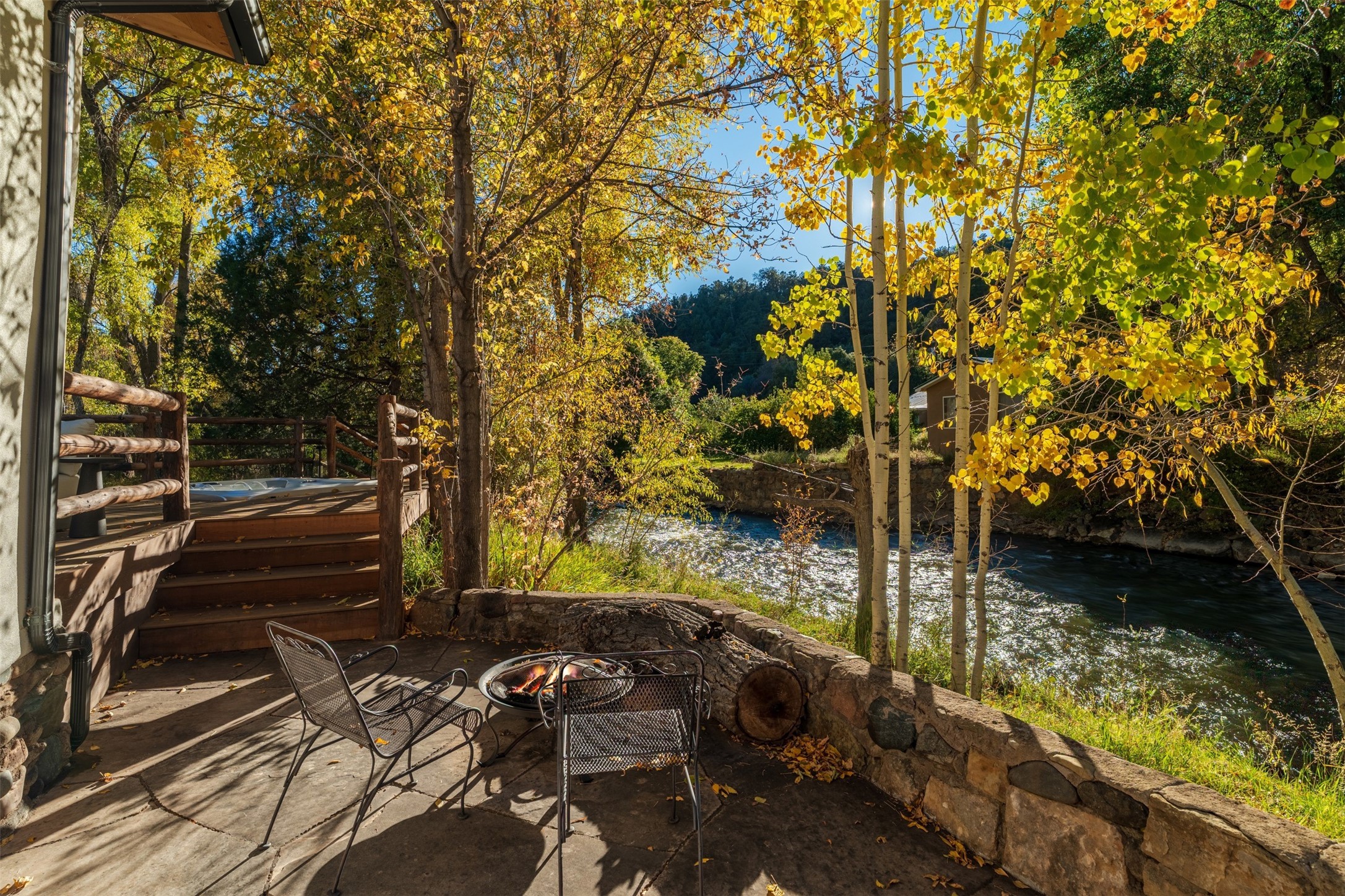 Welcome to 14 The Ledge, a rare offering in the heart of Pecos, NM, where tranquility meets luxury. This exquisite 2,439-square-foot estate is nestled on 5.35 acres of prime Pecos Riverfront, boasting 362 feet of private river access. Perfectly remodeled, this home features three ensuite bedrooms, each offering a private sanctuary for relaxation. The chef's kitchen features a large island, Sub-Zero fridge, under-counter ice maker, and Viking Tuscany range, dishwasher, and hood beautifully accented by smooth plaster walls and artisan tile throughout.Step outside to discover covered outdoor living spaces, complete with a hot tub, ideal for entertaining or unwinding amidst nature. The property is adorned with charming features such as an antique wood stove, gas kiva fireplaces, and a potbelly stove, enhancing its rustic elegance. Recent upgrades include new stucco, a new roof, and new windows, ensuring modern comfort and efficiency.The oversized finished garage provides ample space for vehicles and storage, while the additional outbuildings, make this property horse-friendly. The guest house offers studio potential, making it an artist retreat or writer's haven. A private well and new septic system further enhance the self-sufficiency of this secluded oasis.Located near the Santa Fe National Forest and Lisboa Springs, this property offers unparalleled opportunities for fly-fishing and outdoor adventures. With no HOA restrictions, this estate is perfect for seasonal or full-time living. The option to purchase furnished makes this a turnkey opportunity for discerning buyers.14 The Ledge is more than a home; it is a lifestyle. Whether you seek a peaceful retreat or an active outdoor haven, this property offers the best of Northern New Mexico living. Experience the serenity and beauty of this exceptional estate, where every detail has been thoughtfully curated for the ultimate in comfort and style.
