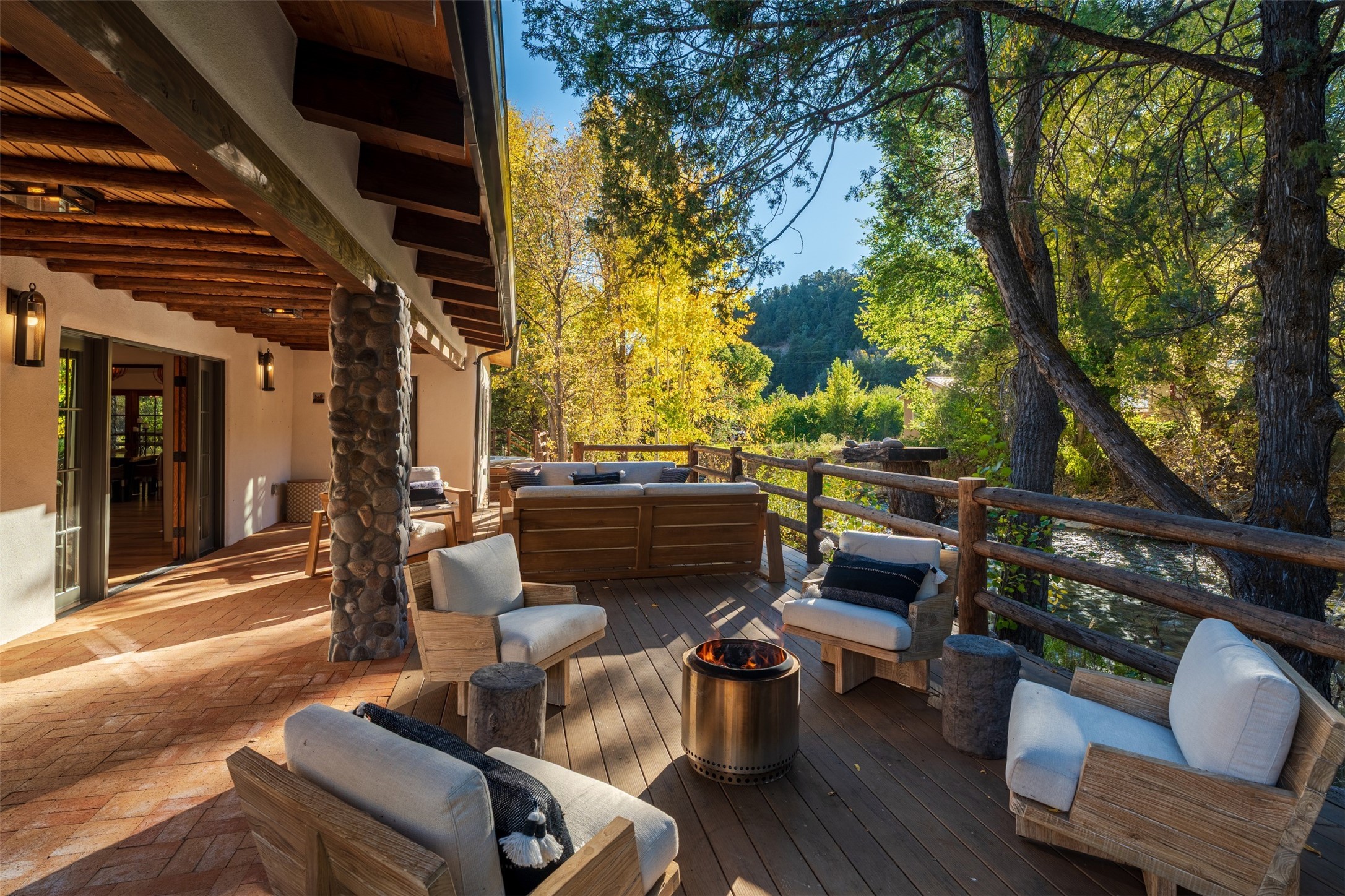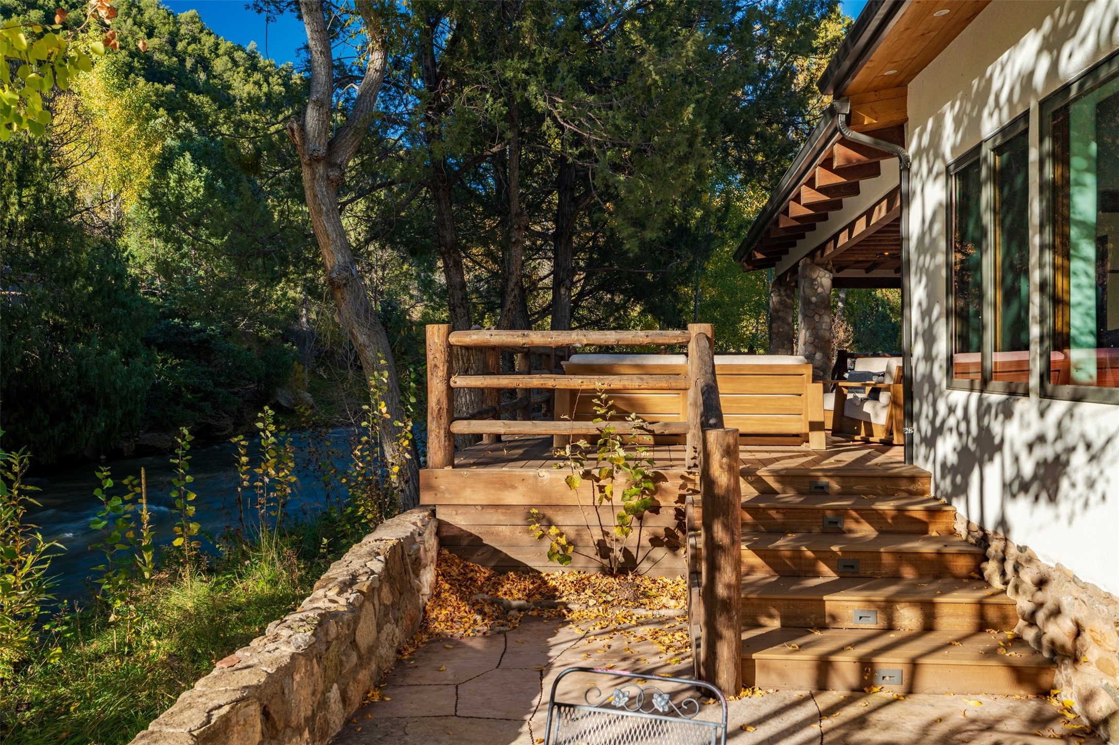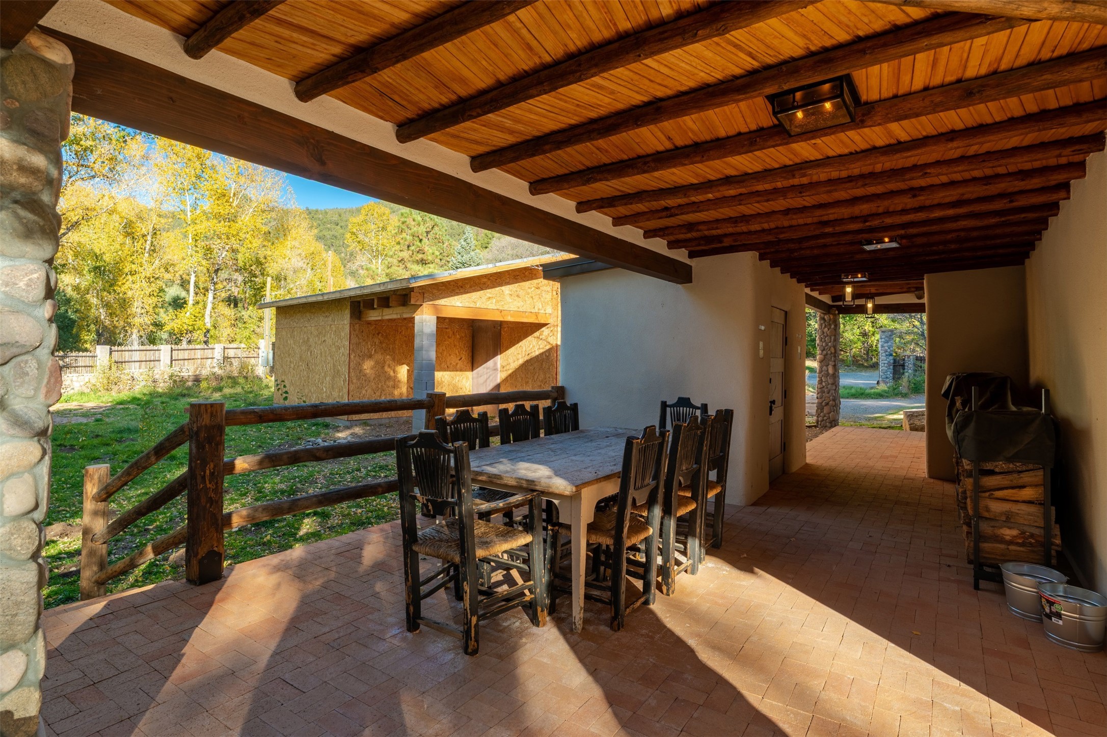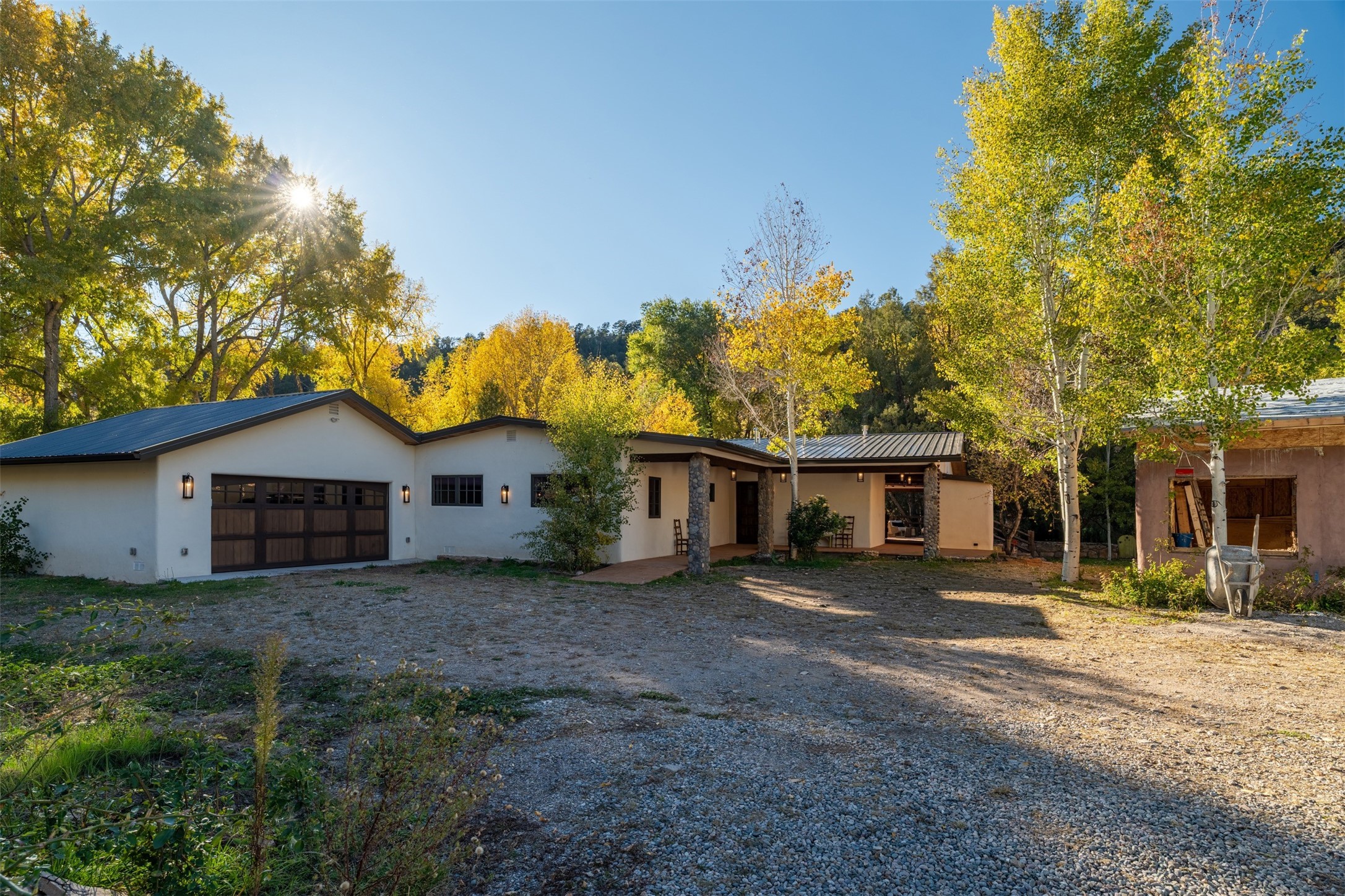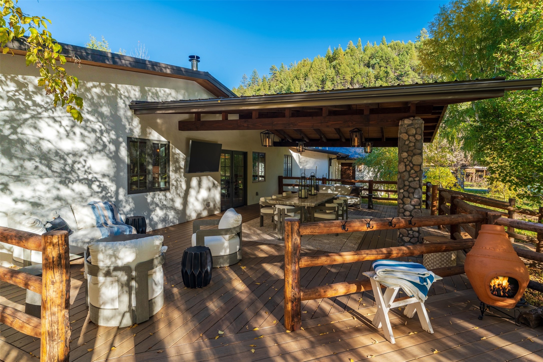 Welcome to 14 The Ledge, a rare offering in the heart of Pecos, NM, where tranquility meets luxury. This exquisite 2,439-square-foot estate is nestled on 5.35 acres of prime Pecos Riverfront, boasting 362 feet of private river access. Perfectly remodeled, this home features three ensuite bedrooms, each offering a private sanctuary for relaxation. The chef's kitchen features a large island, Sub-Zero fridge, under-counter ice maker, and Viking Tuscany range, dishwasher, and hood beautifully accented by smooth plaster walls and artisan tile throughout.Step outside to discover covered outdoor living spaces, complete with a hot tub, ideal for entertaining or unwinding amidst nature. The property is adorned with charming features such as an antique wood stove, gas kiva fireplaces, and a potbelly stove, enhancing its rustic elegance. Recent upgrades include new stucco, a new roof, and new windows, ensuring modern comfort and efficiency.The oversized finished garage provides ample space for vehicles and storage, while the additional outbuildings, make this property horse-friendly. The guest house offers studio potential, making it an artist retreat or writer's haven. A private well and new septic system further enhance the self-sufficiency of this secluded oasis.Located near the Santa Fe National Forest and Lisboa Springs, this property offers unparalleled opportunities for fly-fishing and outdoor adventures. With no HOA restrictions, this estate is perfect for seasonal or full-time living. The option to purchase furnished makes this a turnkey opportunity for discerning buyers.14 The Ledge is more than a home; it is a lifestyle. Whether you seek a peaceful retreat or an active outdoor haven, this property offers the best of Northern New Mexico living. Experience the serenity and beauty of this exceptional estate, where every detail has been thoughtfully curated for the ultimate in comfort and style.