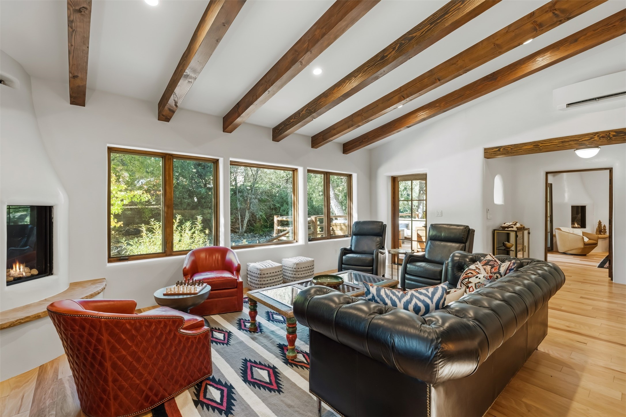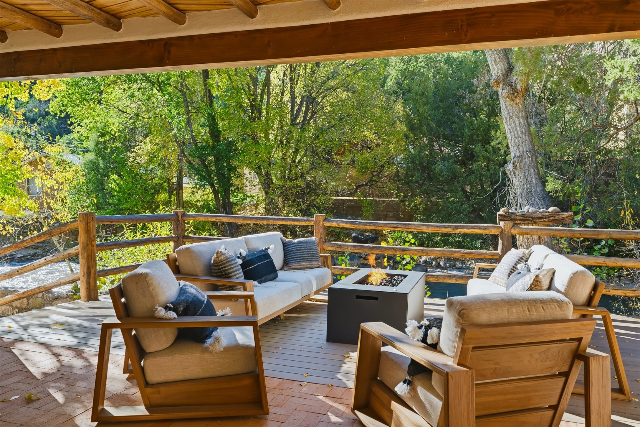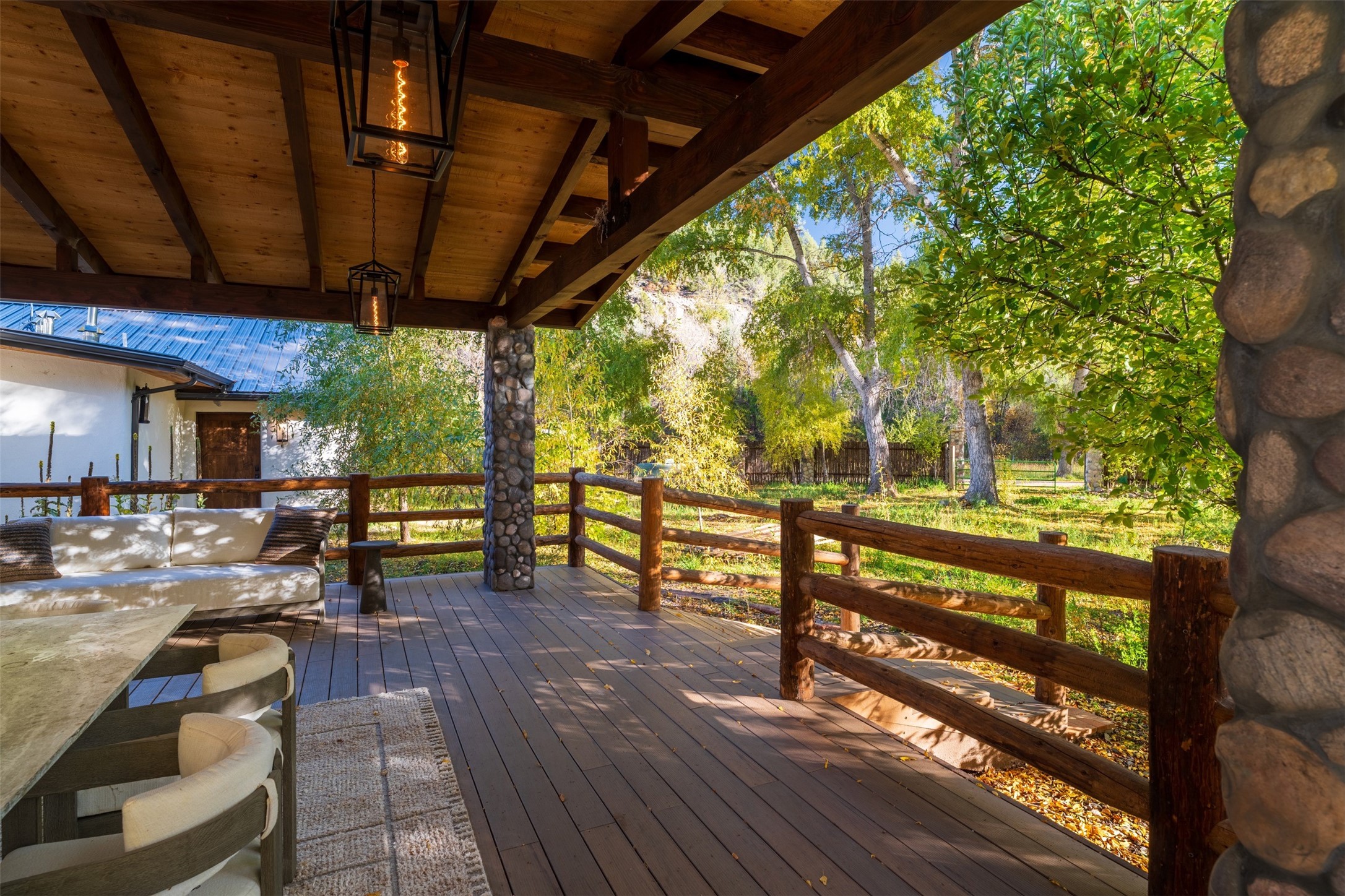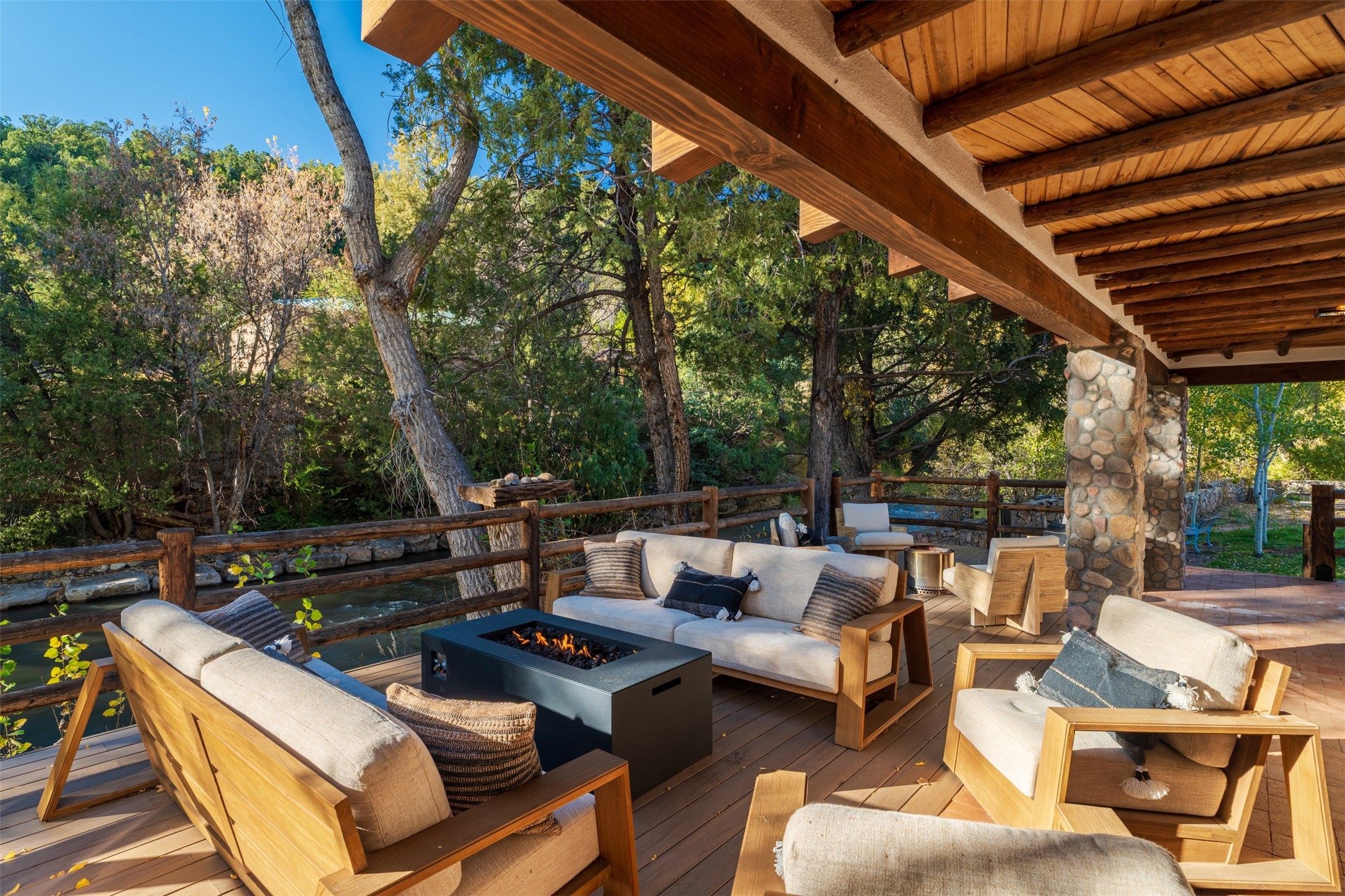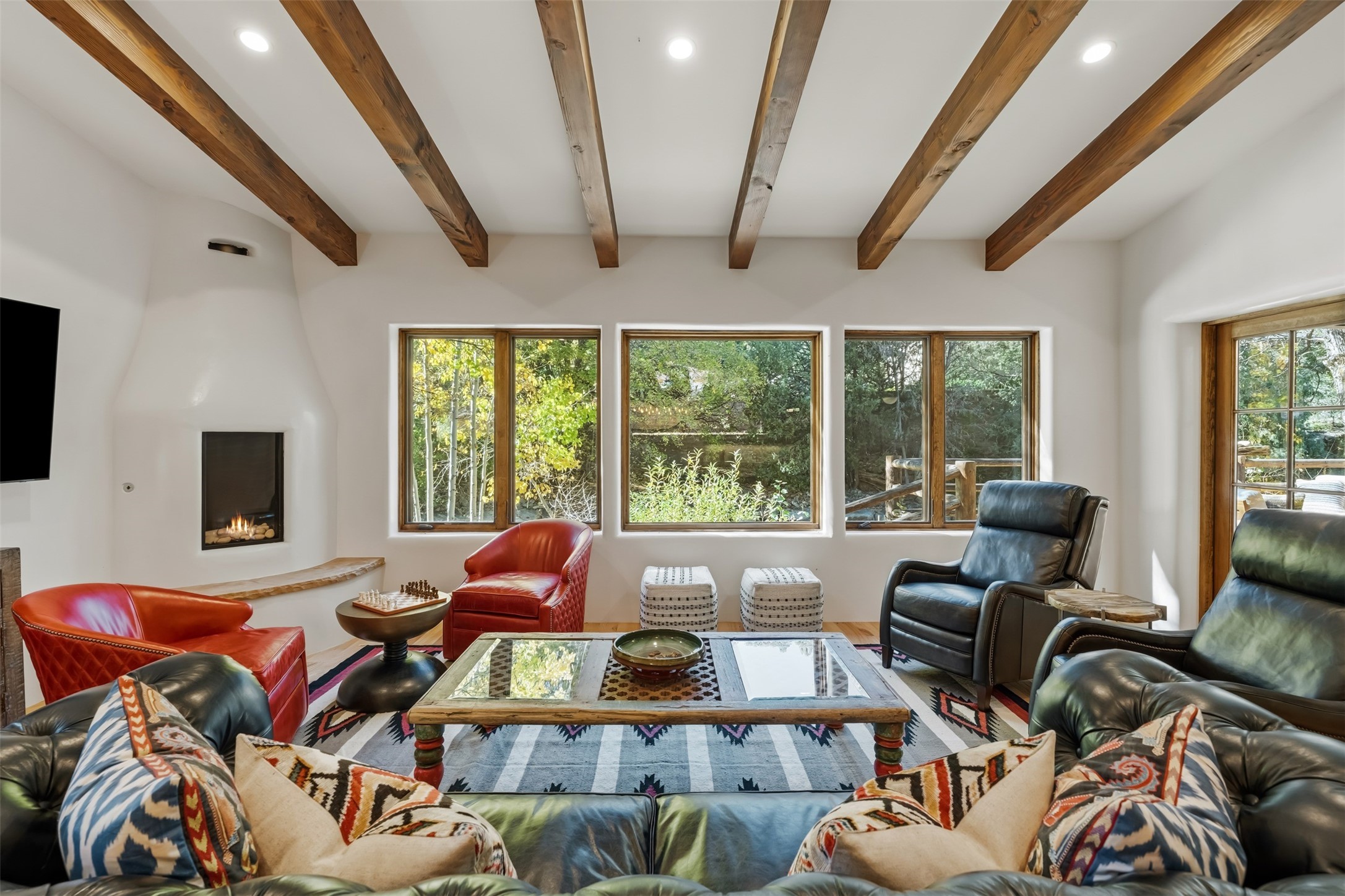 Welcome to 14 The Ledge, a rare offering in the heart of Pecos, NM, where tranquility meets luxury. This exquisite 2,439-square-foot estate is nestled on 5.35 acres of prime Pecos Riverfront, boasting 362 feet of private river access. Perfectly remodeled, this home features three ensuite bedrooms, each offering a private sanctuary for relaxation. The chef's kitchen features a large island, Sub-Zero fridge, under-counter ice maker, and Viking Tuscany range, dishwasher, and hood beautifully accented by smooth plaster walls and artisan tile throughout.Step outside to discover covered outdoor living spaces, complete with a hot tub, ideal for entertaining or unwinding amidst nature. The property is adorned with charming features such as an antique wood stove, gas kiva fireplaces, and a potbelly stove, enhancing its rustic elegance. Recent upgrades include new stucco, a new roof, and new windows, ensuring modern comfort and efficiency.The oversized finished garage provides ample space for vehicles and storage, while the additional outbuildings, make this property horse-friendly. The guest house offers studio potential, making it an artist retreat or writer's haven. A private well and new septic system further enhance the self-sufficiency of this secluded oasis.Located near the Santa Fe National Forest and Lisboa Springs, this property offers unparalleled opportunities for fly-fishing and outdoor adventures. With no HOA restrictions, this estate is perfect for seasonal or full-time living. The option to purchase furnished makes this a turnkey opportunity for discerning buyers.14 The Ledge is more than a home; it is a lifestyle. Whether you seek a peaceful retreat or an active outdoor haven, this property offers the best of Northern New Mexico living. Experience the serenity and beauty of this exceptional estate, where every detail has been thoughtfully curated for the ultimate in comfort and style.