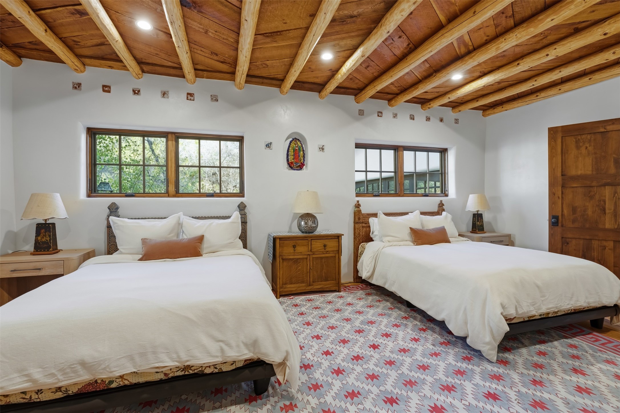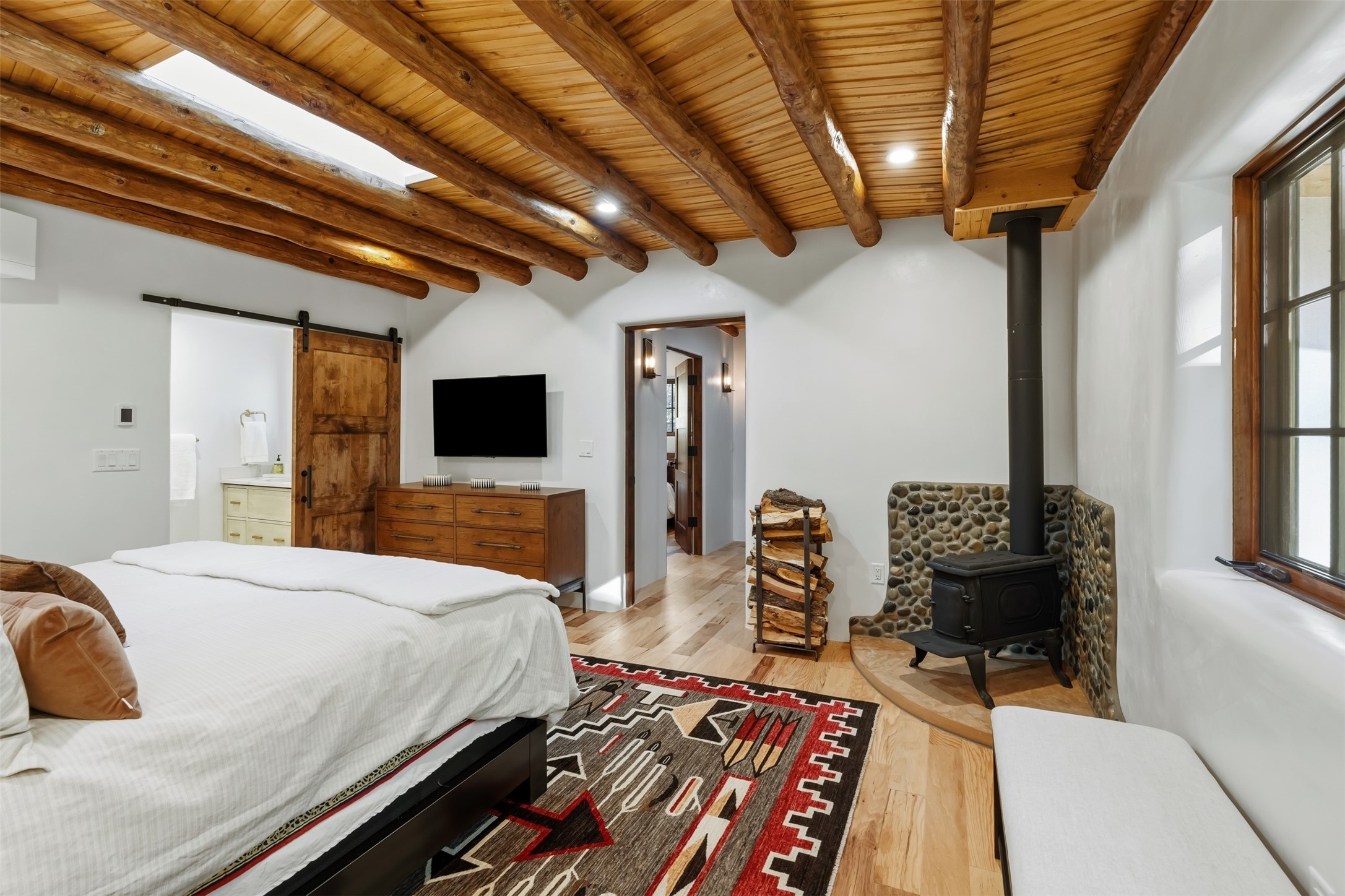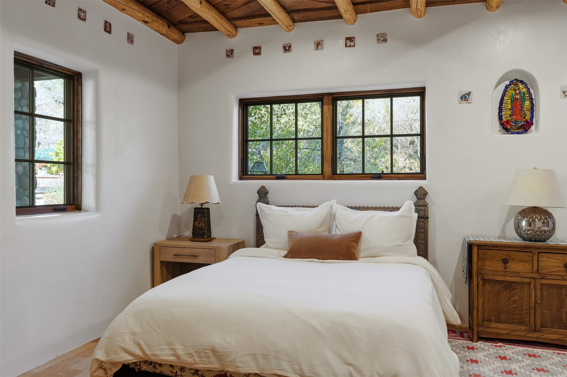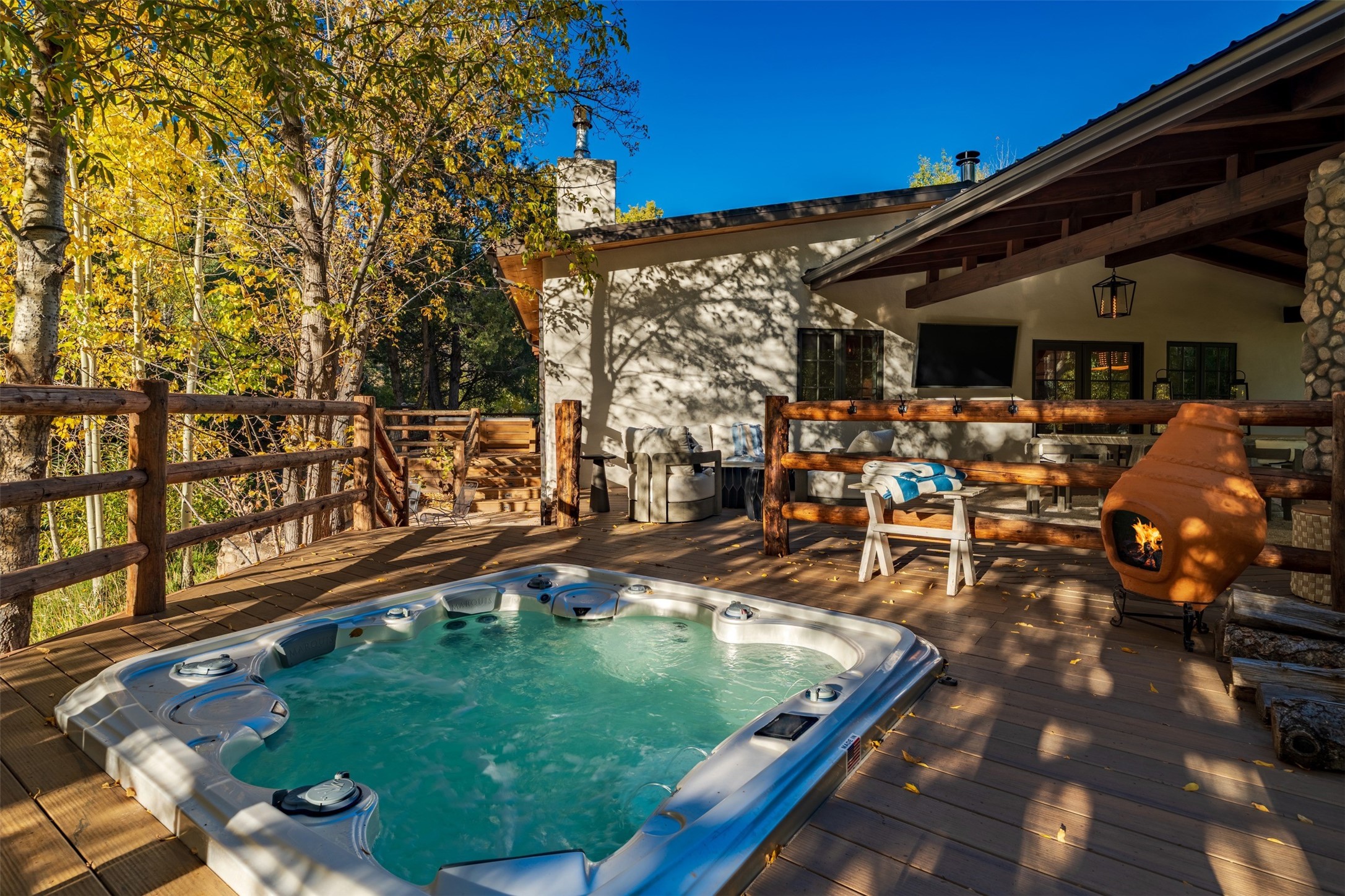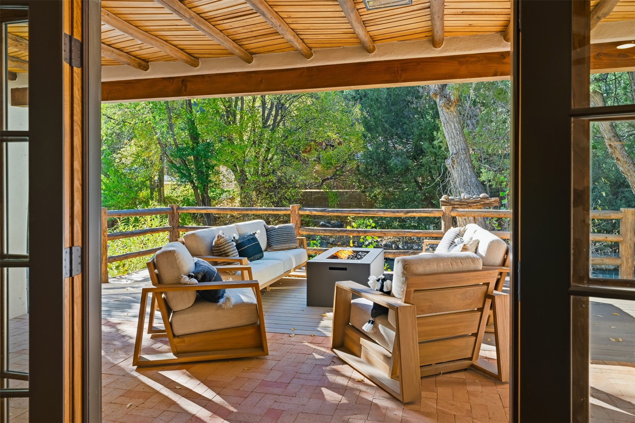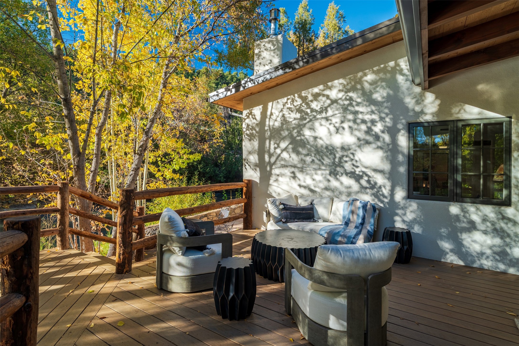 Welcome to 14 The Ledge, a rare offering in the heart of Pecos, NM, where tranquility meets luxury. This exquisite 2,439-square-foot estate is nestled on 5.35 acres of prime Pecos Riverfront, boasting 362 feet of private river access. Perfectly remodeled, this home features three ensuite bedrooms, each offering a private sanctuary for relaxation. The chef's kitchen features a large island, Sub-Zero fridge, under-counter ice maker, and Viking Tuscany range, dishwasher, and hood beautifully accented by smooth plaster walls and artisan tile throughout.Step outside to discover covered outdoor living spaces, complete with a hot tub, ideal for entertaining or unwinding amidst nature. The property is adorned with charming features such as an antique wood stove, gas kiva fireplaces, and a potbelly stove, enhancing its rustic elegance. Recent upgrades include new stucco, a new roof, and new windows, ensuring modern comfort and efficiency.The oversized finished garage provides ample space for vehicles and storage, while the additional outbuildings, make this property horse-friendly. The guest house offers studio potential, making it an artist retreat or writer's haven. A private well and new septic system further enhance the self-sufficiency of this secluded oasis.Located near the Santa Fe National Forest and Lisboa Springs, this property offers unparalleled opportunities for fly-fishing and outdoor adventures. With no HOA restrictions, this estate is perfect for seasonal or full-time living. The option to purchase furnished makes this a turnkey opportunity for discerning buyers.14 The Ledge is more than a home; it is a lifestyle. Whether you seek a peaceful retreat or an active outdoor haven, this property offers the best of Northern New Mexico living. Experience the serenity and beauty of this exceptional estate, where every detail has been thoughtfully curated for the ultimate in comfort and style.