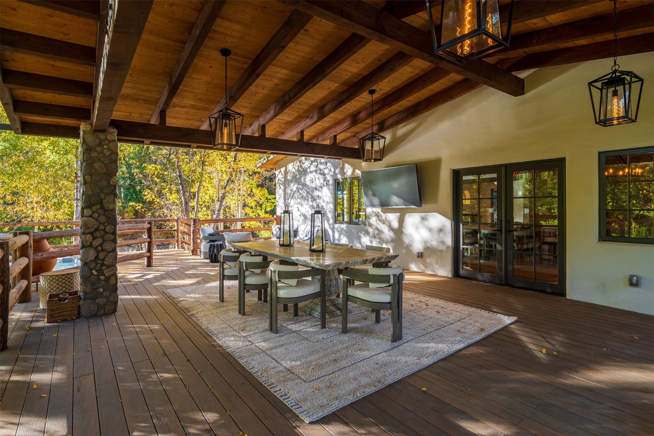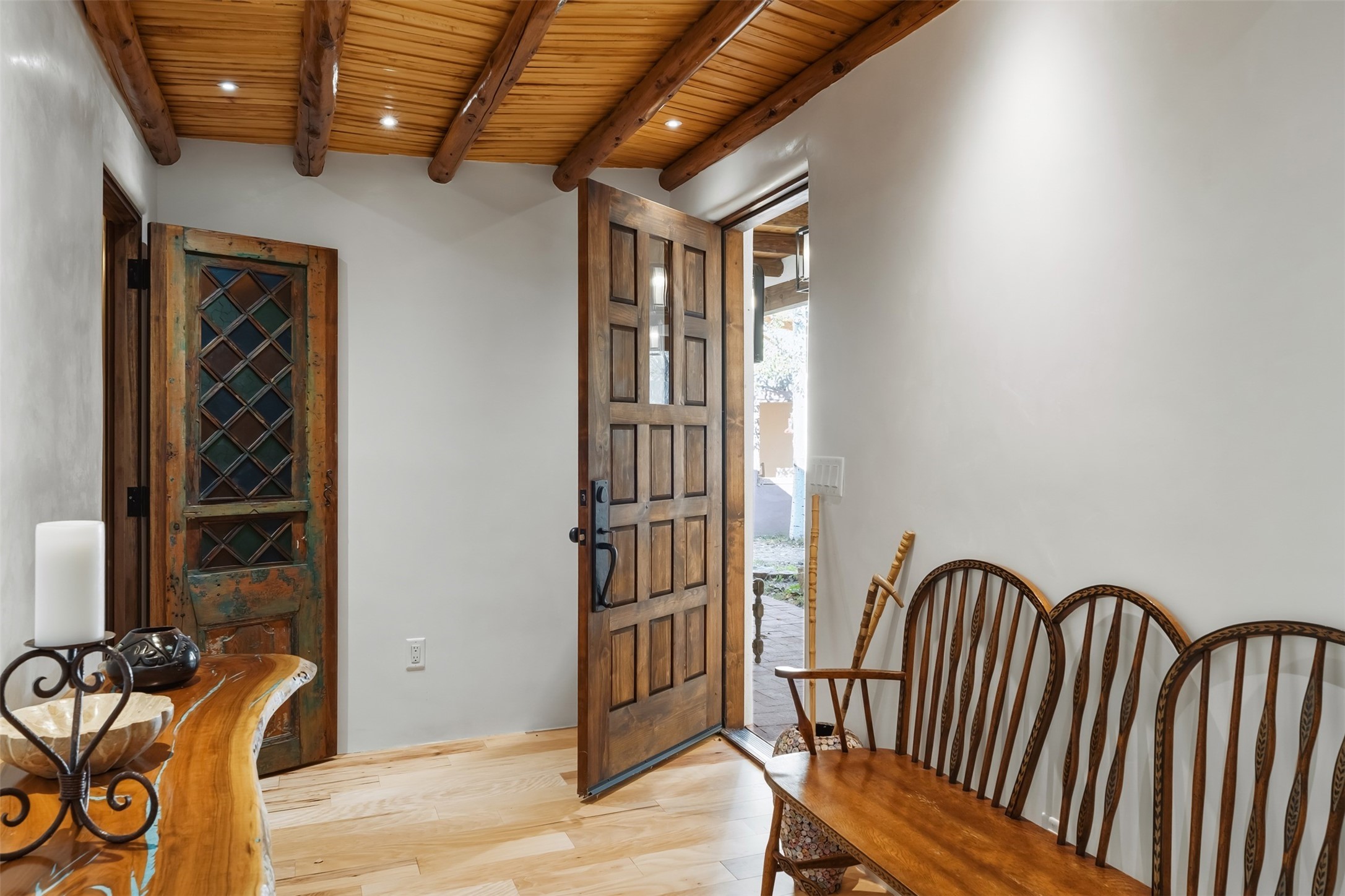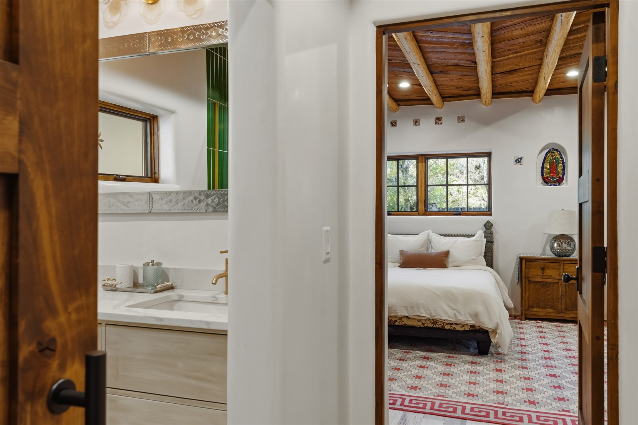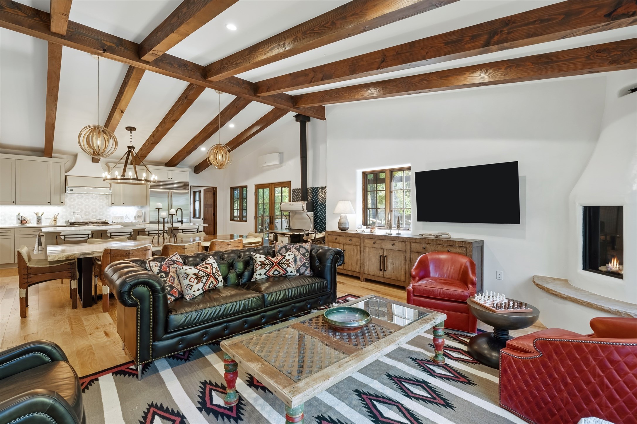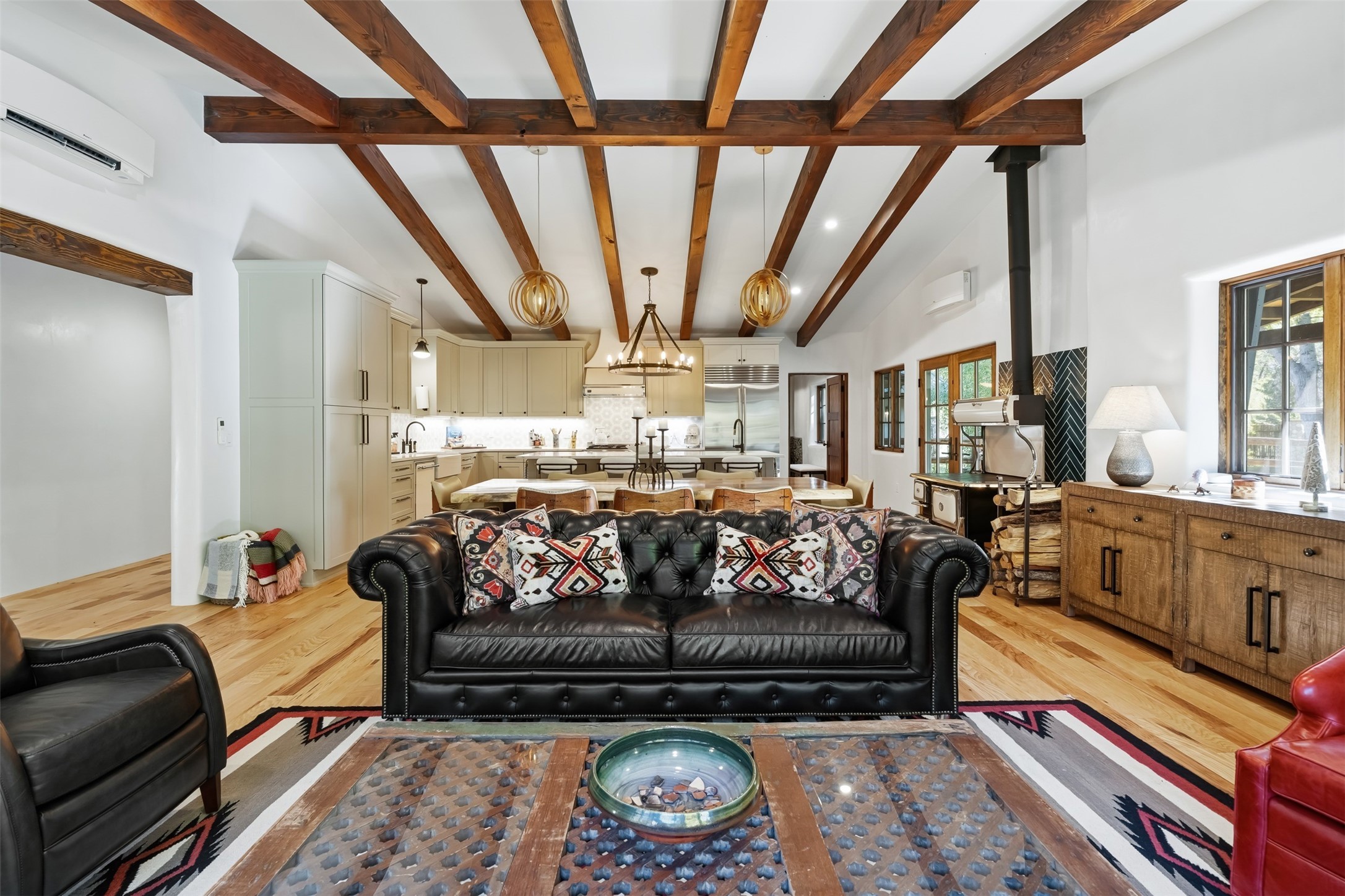 Welcome to 14 The Ledge, a rare offering in the heart of Pecos, NM, where tranquility meets luxury. This exquisite 2,439-square-foot estate is nestled on 5.35 acres of prime Pecos Riverfront, boasting 362 feet of private river access. Perfectly remodeled, this home features three ensuite bedrooms, each offering a private sanctuary for relaxation. The chef's kitchen features a large island, Sub-Zero fridge, under-counter ice maker, and Viking Tuscany range, dishwasher, and hood beautifully accented by smooth plaster walls and artisan tile throughout.Step outside to discover covered outdoor living spaces, complete with a hot tub, ideal for entertaining or unwinding amidst nature. The property is adorned with charming features such as an antique wood stove, gas kiva fireplaces, and a potbelly stove, enhancing its rustic elegance. Recent upgrades include new stucco, a new roof, and new windows, ensuring modern comfort and efficiency.The oversized finished garage provides ample space for vehicles and storage, while the additional outbuildings, make this property horse-friendly. The guest house offers studio potential, making it an artist retreat or writer's haven. A private well and new septic system further enhance the self-sufficiency of this secluded oasis.Located near the Santa Fe National Forest and Lisboa Springs, this property offers unparalleled opportunities for fly-fishing and outdoor adventures. With no HOA restrictions, this estate is perfect for seasonal or full-time living. The option to purchase furnished makes this a turnkey opportunity for discerning buyers.14 The Ledge is more than a home; it is a lifestyle. Whether you seek a peaceful retreat or an active outdoor haven, this property offers the best of Northern New Mexico living. Experience the serenity and beauty of this exceptional estate, where every detail has been thoughtfully curated for the ultimate in comfort and style.