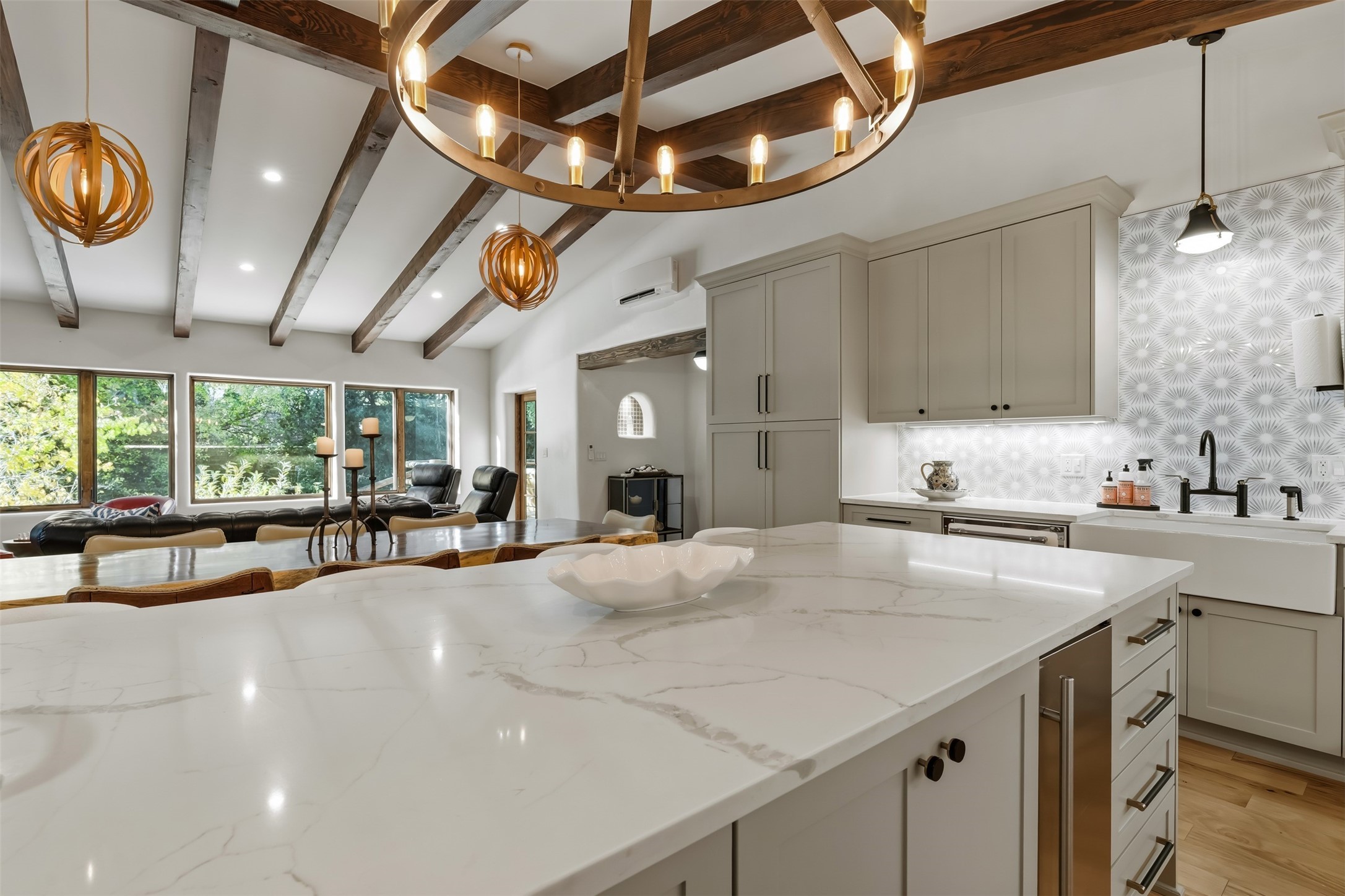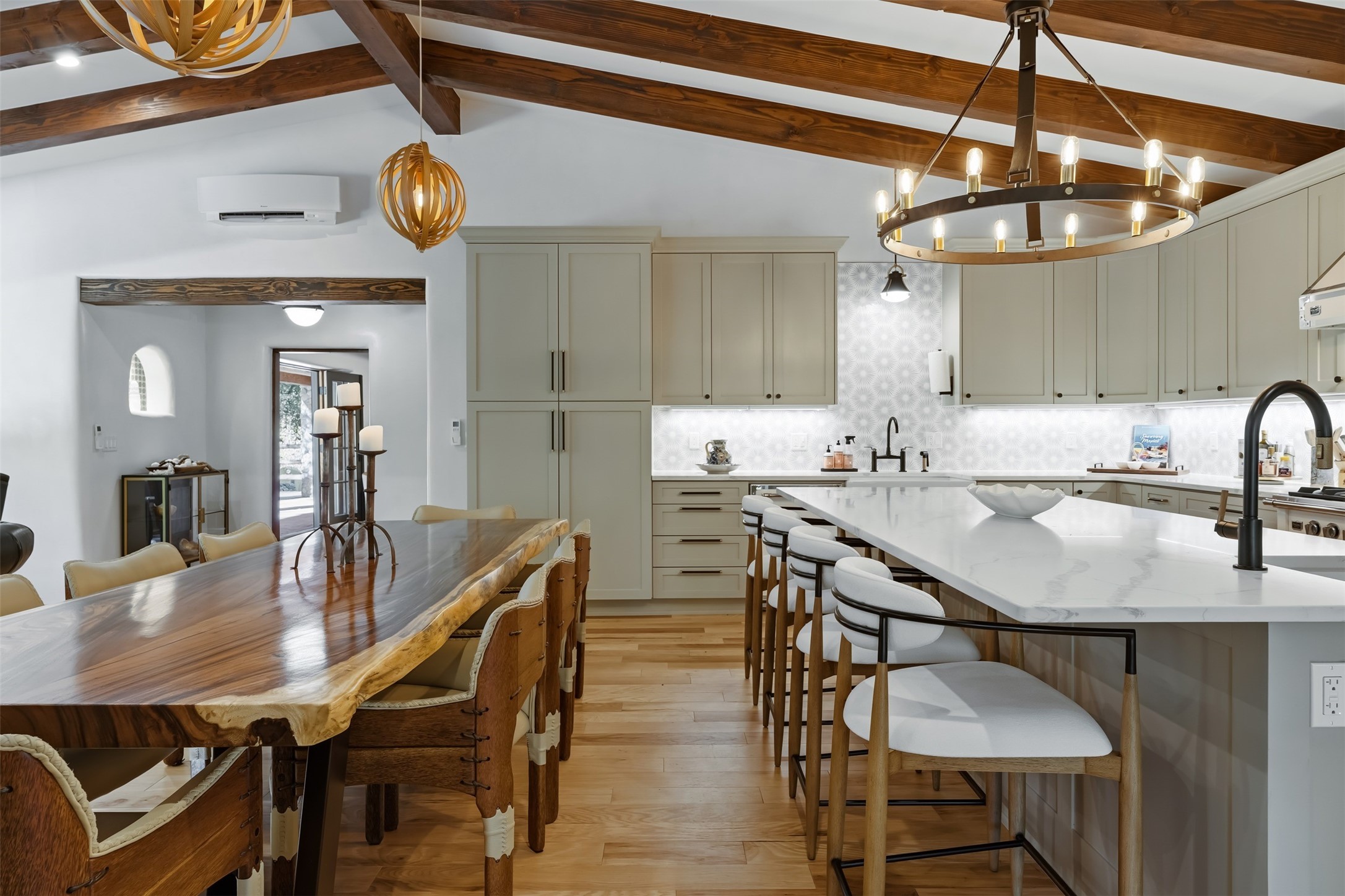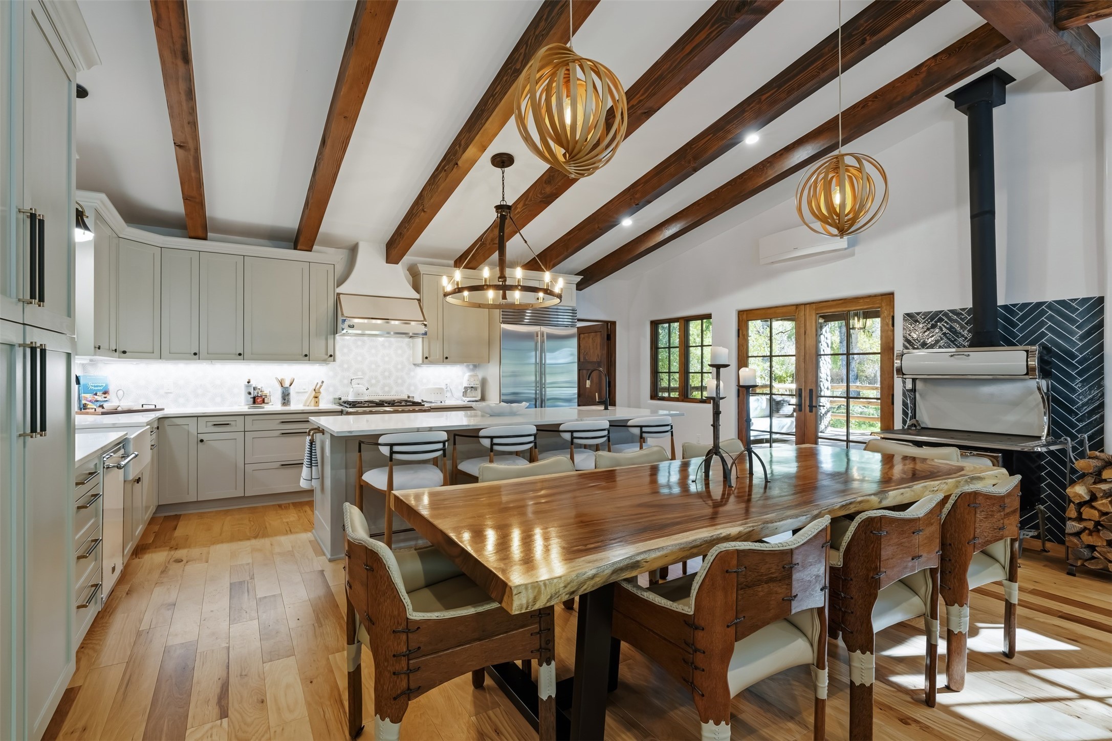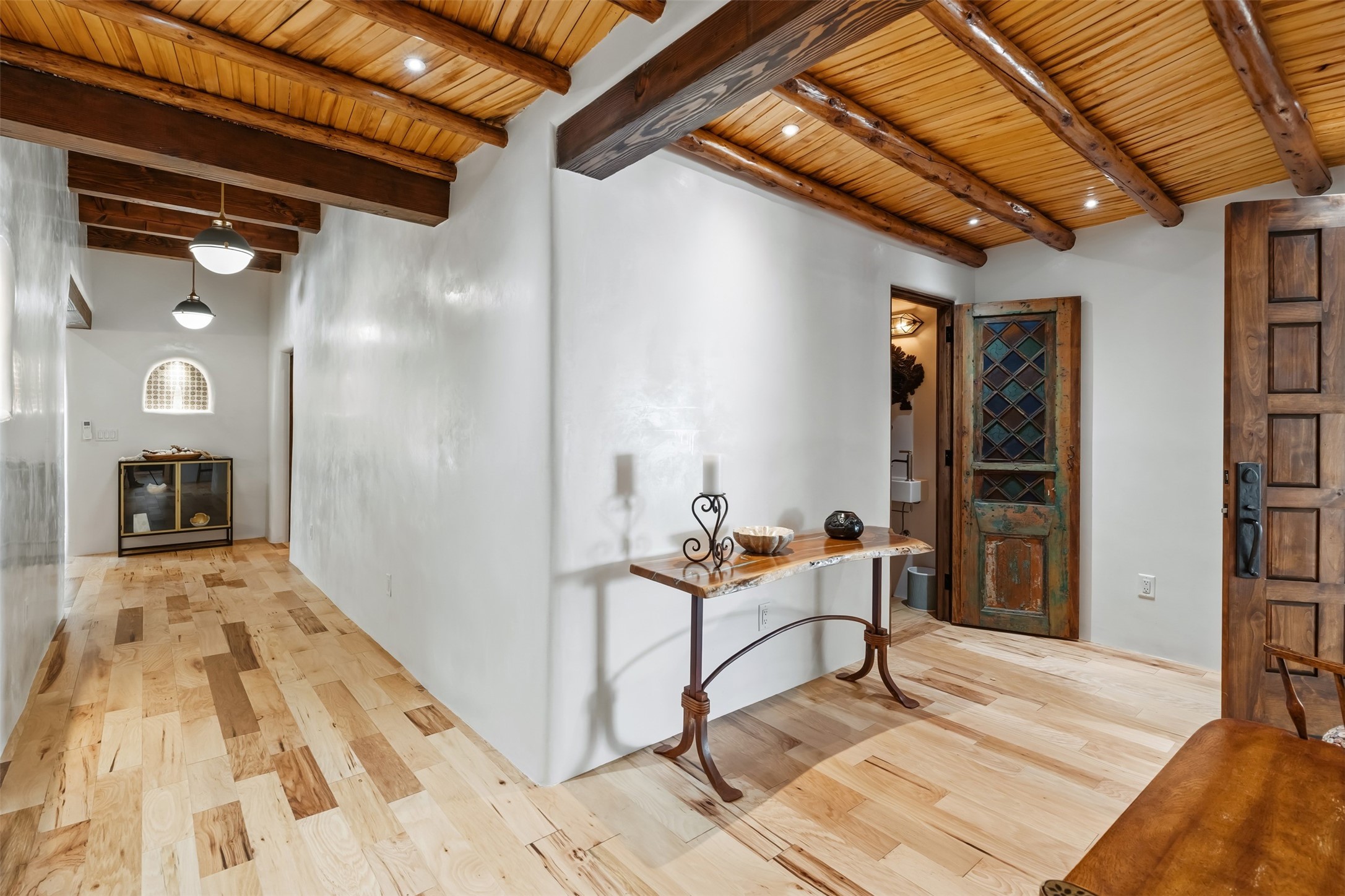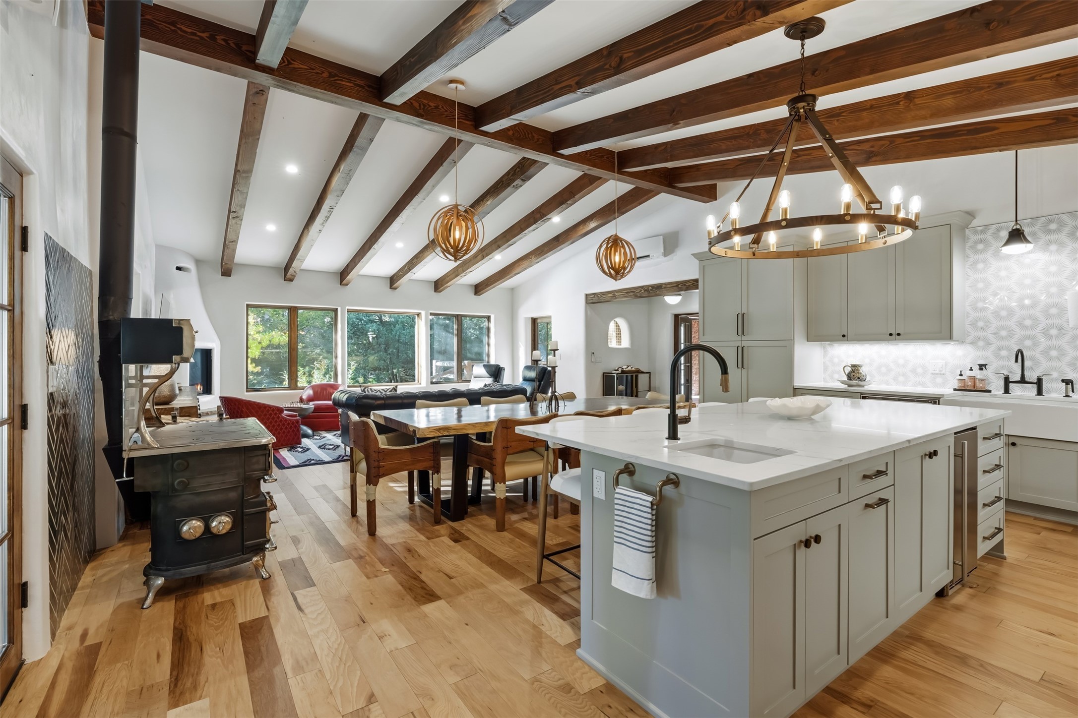 Welcome to 14 The Ledge, a rare offering in the heart of Pecos, NM, where tranquility meets luxury. This exquisite 2,439-square-foot estate is nestled on 5.35 acres of prime Pecos Riverfront, boasting 362 feet of private river access. Perfectly remodeled, this home features three ensuite bedrooms, each offering a private sanctuary for relaxation. The chef's kitchen features a large island, Sub-Zero fridge, under-counter ice maker, and Viking Tuscany range, dishwasher, and hood beautifully accented by smooth plaster walls and artisan tile throughout.Step outside to discover covered outdoor living spaces, complete with a hot tub, ideal for entertaining or unwinding amidst nature. The property is adorned with charming features such as an antique wood stove, gas kiva fireplaces, and a potbelly stove, enhancing its rustic elegance. Recent upgrades include new stucco, a new roof, and new windows, ensuring modern comfort and efficiency.The oversized finished garage provides ample space for vehicles and storage, while the additional outbuildings, make this property horse-friendly. The guest house offers studio potential, making it an artist retreat or writer's haven. A private well and new septic system further enhance the self-sufficiency of this secluded oasis.Located near the Santa Fe National Forest and Lisboa Springs, this property offers unparalleled opportunities for fly-fishing and outdoor adventures. With no HOA restrictions, this estate is perfect for seasonal or full-time living. The option to purchase furnished makes this a turnkey opportunity for discerning buyers.14 The Ledge is more than a home; it is a lifestyle. Whether you seek a peaceful retreat or an active outdoor haven, this property offers the best of Northern New Mexico living. Experience the serenity and beauty of this exceptional estate, where every detail has been thoughtfully curated for the ultimate in comfort and style.