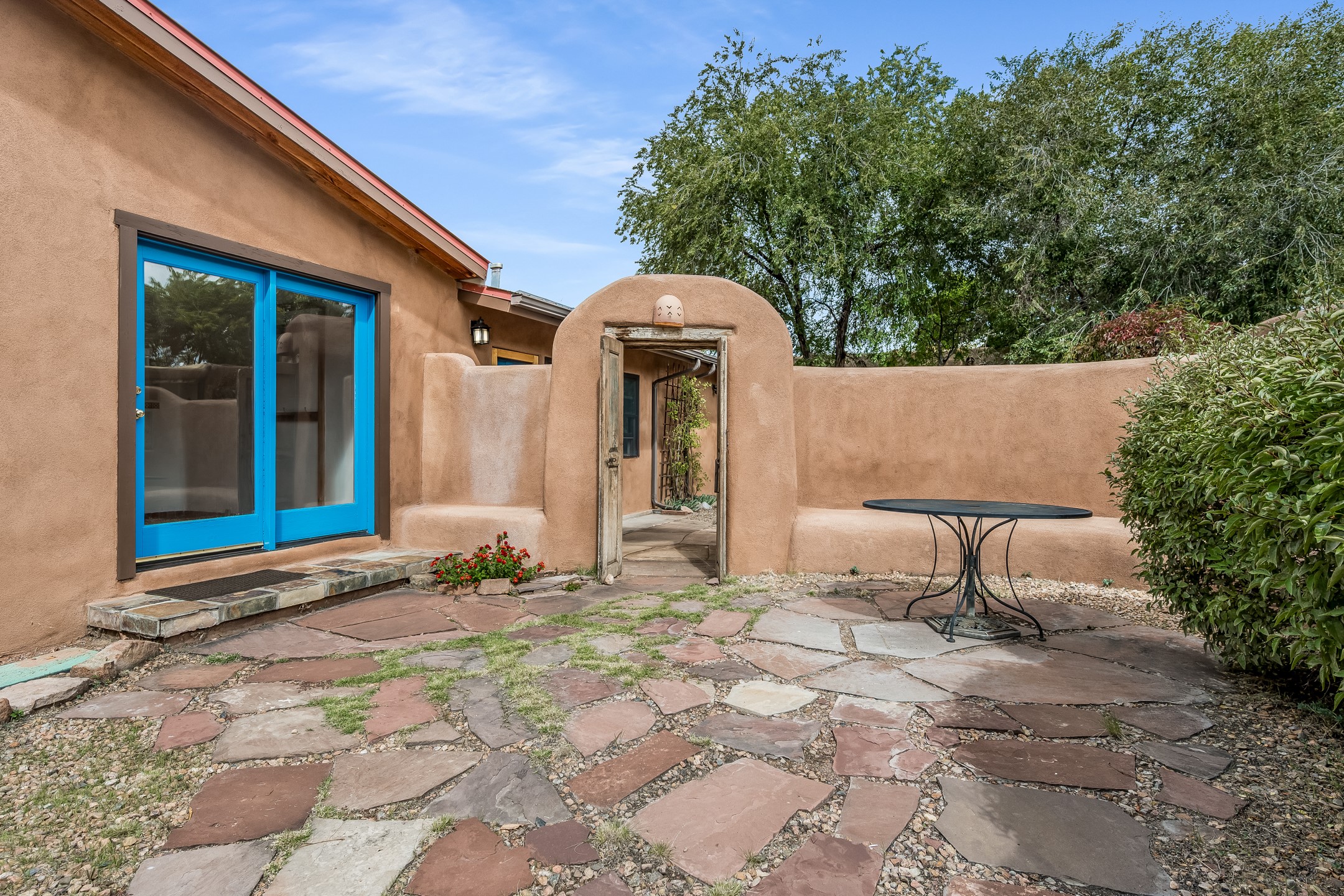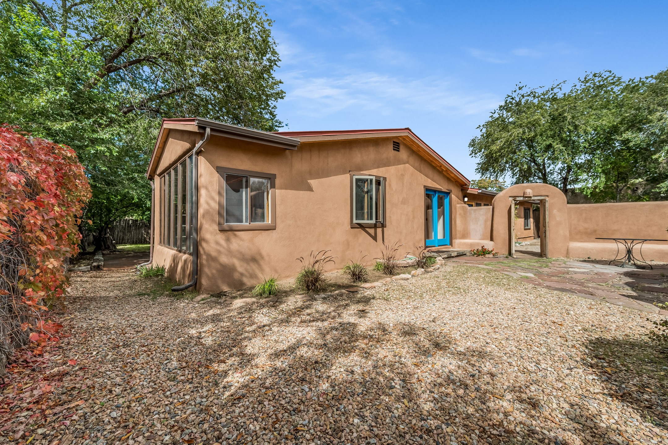 This quintessential Santa Fe style property offering Kiva fireplace, willow doors, Talavera and Saltillo tile, nichos, a walled courtyard, and off-street parking is tucked away in the much sought after Railyard Arts District. The setting is peaceful and quiet yet only a quick 5 minute jaunt to The Violet Crown, Farmer's Market, park, outdoor concerts, coffee shop, pubs, restaurants, and the vibrant vibe offered along Guadalupe Street! About a 15 minute walk to The Santa Fe Plaza where you will find work shopping, class dining, and galleries along with stellar museums. Walking and cycling trails are minutes away making this the perfect urban home. One can even hop on the train for a ride to Albuquerque! Opportunities Abound for this property which features a home with attached guest house. You can live in one unit and rent the other or rent them both! There is even room to add a casita! Easy access to St. Francis Drive is a plus for those who commute to Los Alamos! Both units offer office space for those who work from home. A Must See!