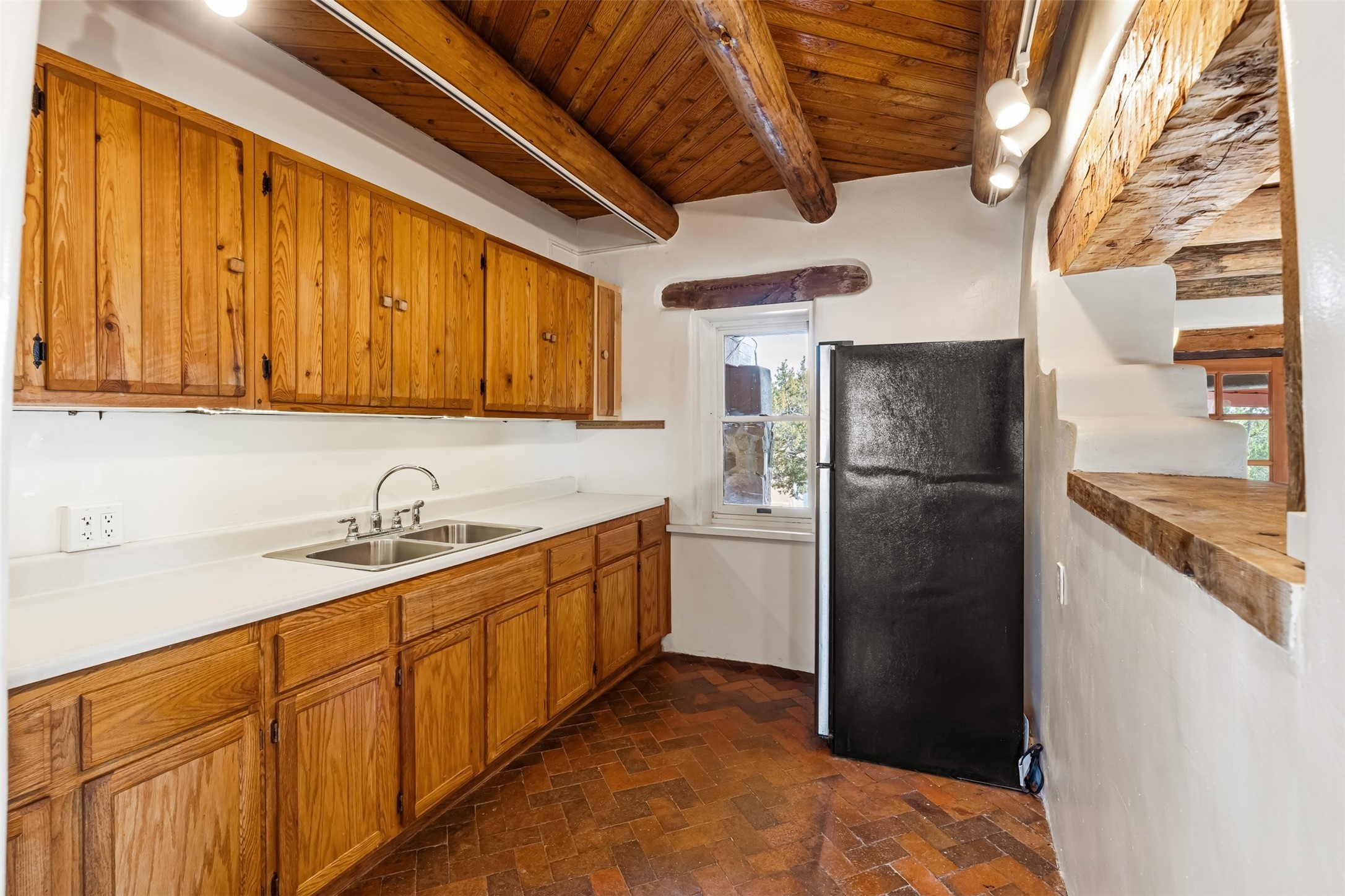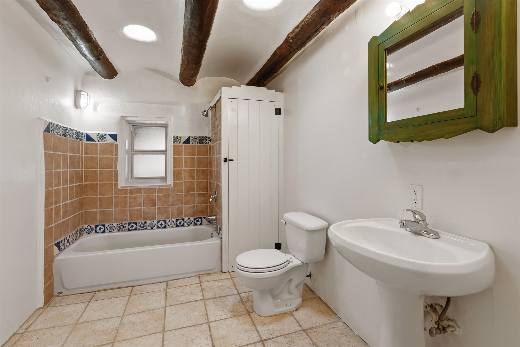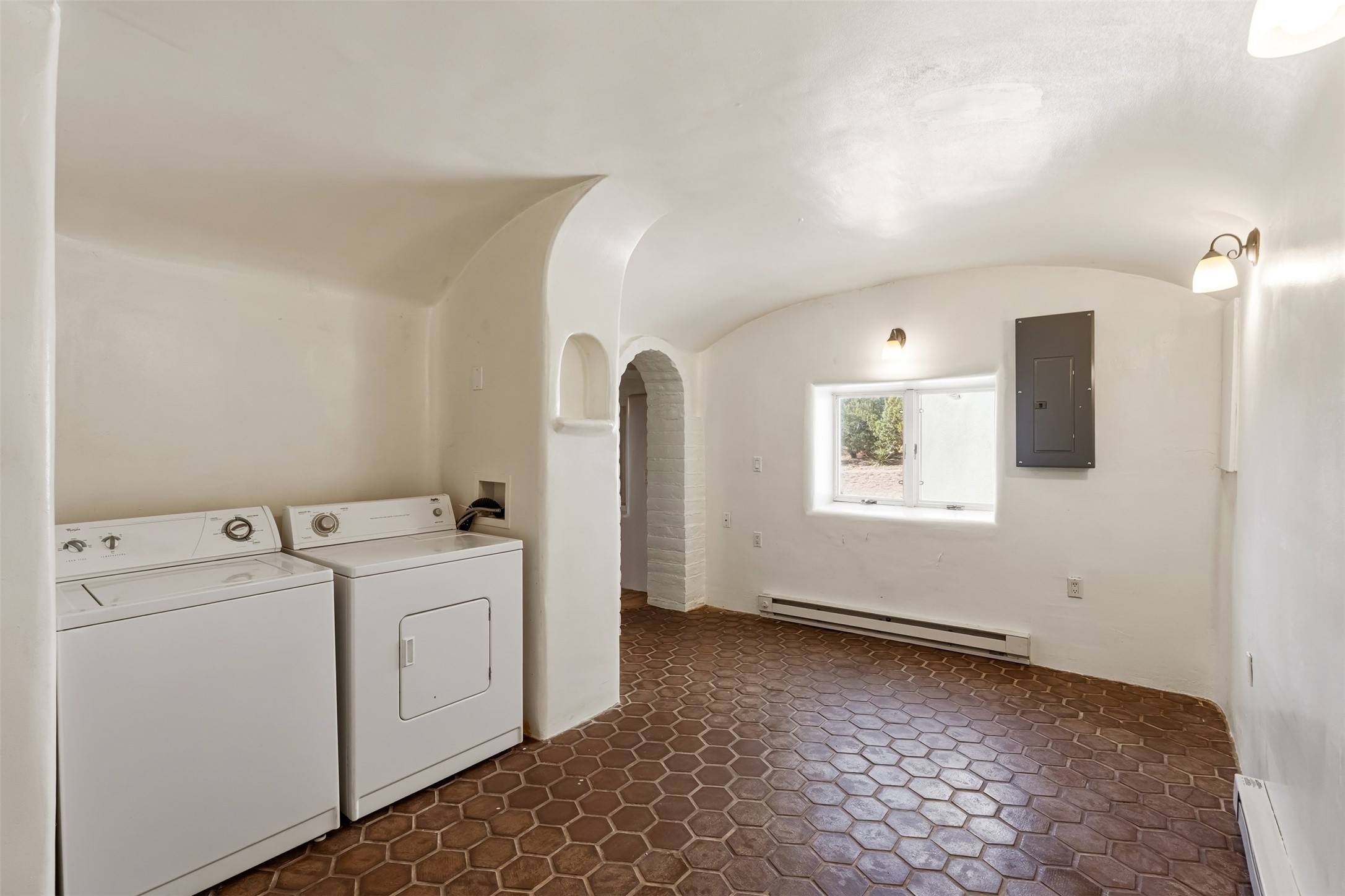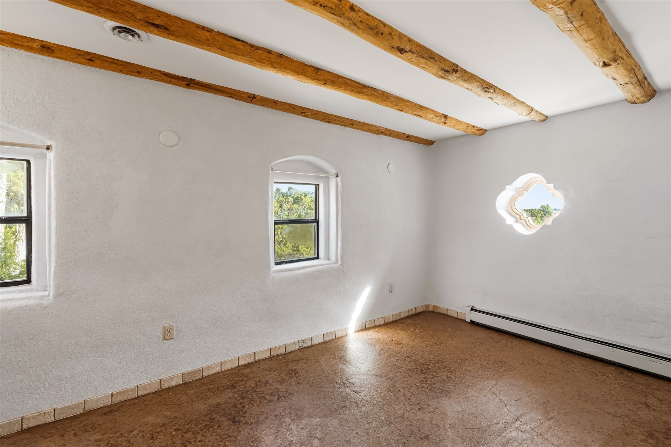 Spread across 3.8 acres, this Seton Village compound is a secluded retreat with one of a kind architectural details. Its unique character is accentuated by its beautiful location in a well-established neighborhood. This property can generously accommodate large families or groups of friends. Alternatively, it could serve as an investment asset with excellent potential for targeted updates and long-term development. The sprawling estate offers multiple structures for every possible activity. Each building is self-contained and thoughtfully located for privacy and ease of access. On the northern end of the property, the main home and adjacent guest house contain 6 bedrooms/5 baths and numerous living/gathering spaces. The second story of the main house provides panoramic views of the surrounding valley. Features include a kiva fireplace, wood stove, refinished flagstone and brick floors, handcarved vigas, coved ceilings, several mini-splits and multiple washers and dryers. Additionally, a finished basement provides ample space for storage. On the southern side of the property, three dome-roofed structures provide a distinct contrast. These Spanish/Moorish styled buildings can easily accommodate multiple guests or provide plentiful space for hobbies or projects. These buildings are currently configured with 1 bedroom and 3 baths. Finally, a small but picturesque converted well house is a blank slate, allowing for further opportunities. The property's infrastructure is well-maintained with updated roofing and stucco, along with a private well, two septic systems, and abundant parking. The landscaping is a lovely balance of open spaces interspersed between native plants and grassy areas. This 6400 square foot compound offers an unparalleled opportunity to easily invest or put down roots in a sought-after area.