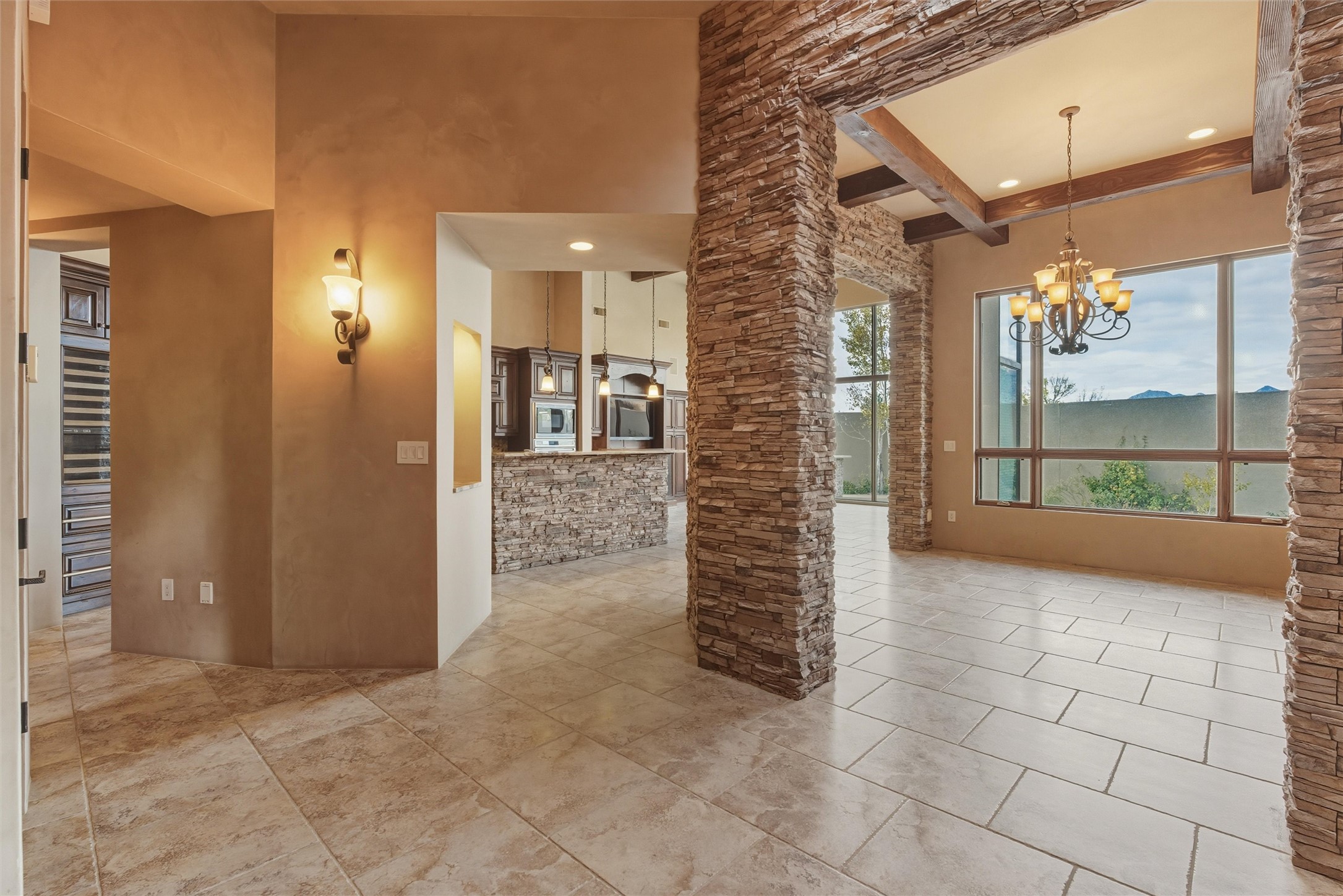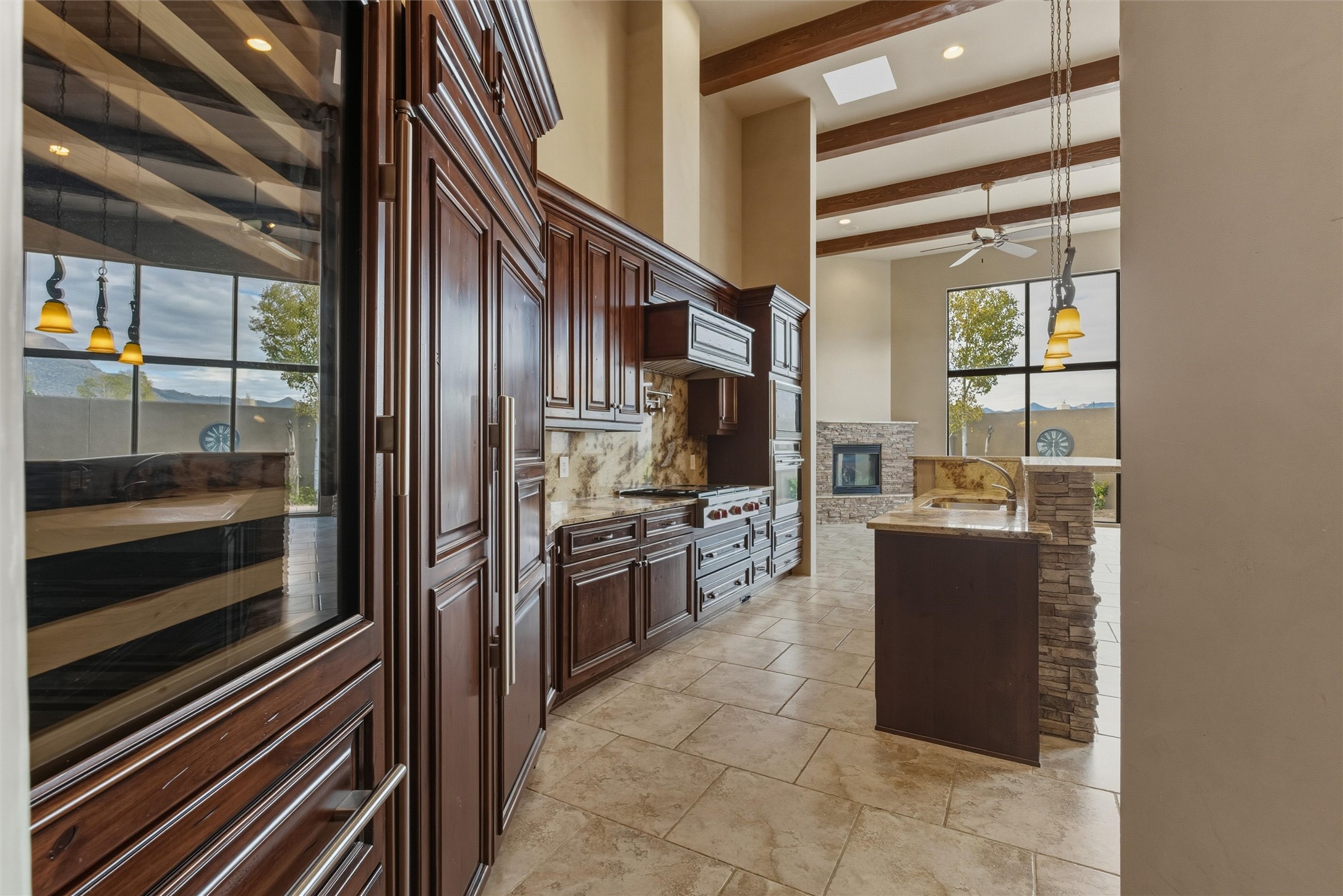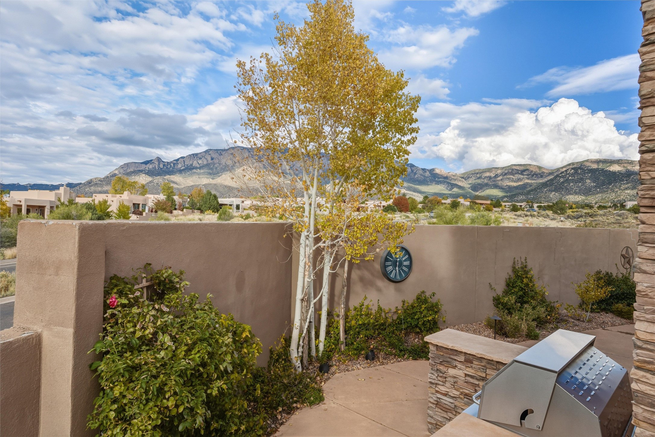 Discover a rare custom masterpiece at The Legends, where luxury and tranquility meet. This artfully designed home offers seamless indoor-outdoor living, highlighted by a chef's kitchen w/ all SS applainces & Sub-Zero wine storage, elegant great room for entertaining, and a spa-inspired primary suite with fireplace, steam shower & private patio. Enjoy alfresco evenings by the waterfall and outdoor fireplace. Private 2nd primary bedroom, potential basement wine cellar & gated privacy on a serene cul-de-sac make this residence an ultimate retreat for refined living near the Sandia Mountains. The owned solar system, full finished basement and privacy in this quiet High Desert community welcomes you home to serenity and peace. One owner has maintained this custom built and updated property.