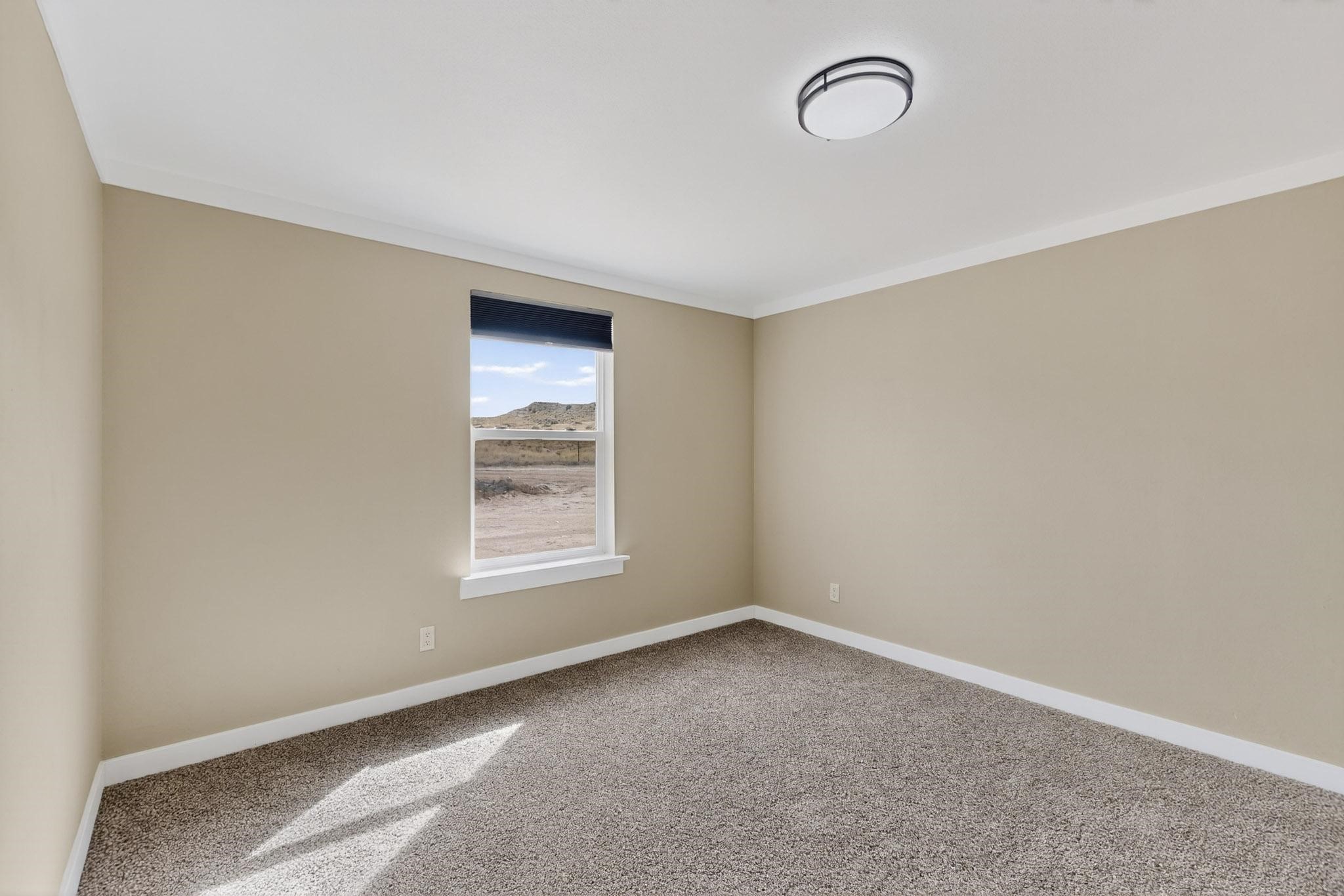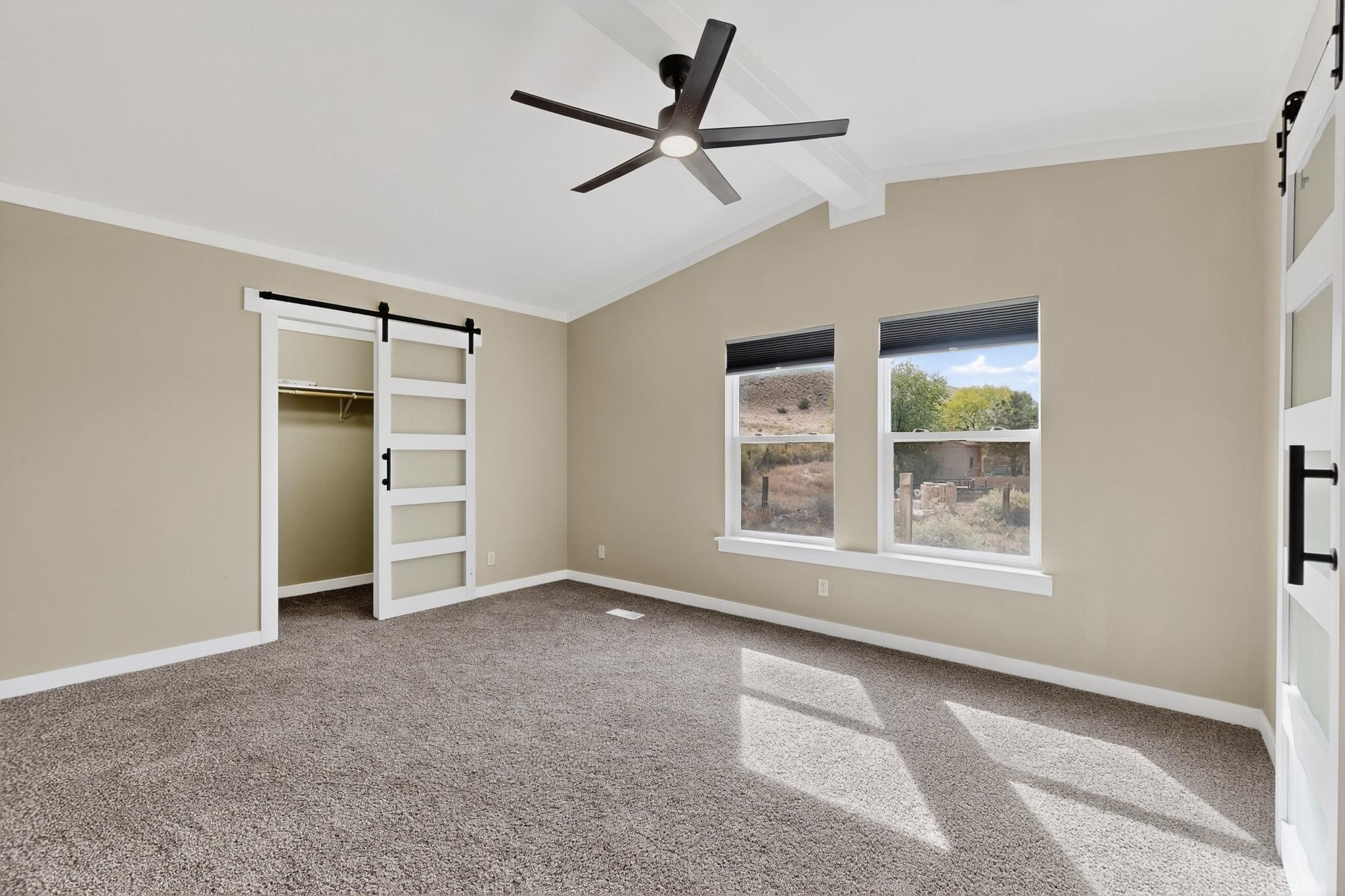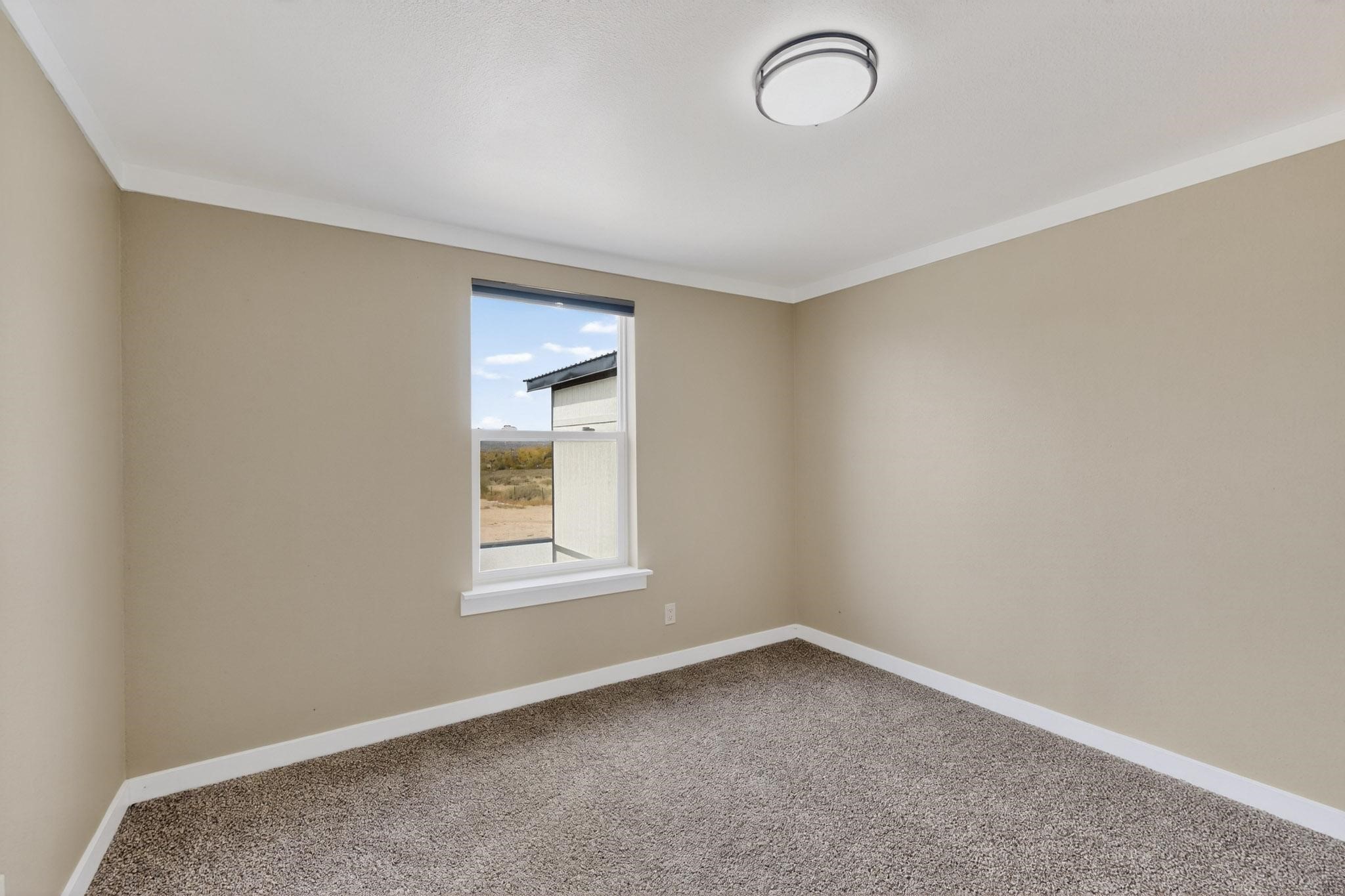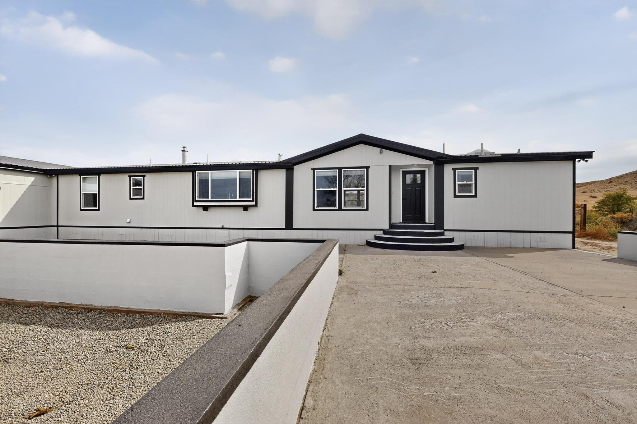 This beautifully remodeled 3-bedroom, 2 bath home offers modern comfort in a peaceful rural setting with spectacular views of the Jemez Mnts. Revel in the natural light that comes in through the 3 skylights. Enjoy a bonus room perfect for a home office or hobby space. Recent upgrades include new windows, new blinds, new roof, new tile flooring with plush carpet in the bedrooms, new lighting, and a new furnace and refrigerated air unit and new hot water heater. The kitchen has been thoughtfully redesigned with custom cabinetry, granite countertops and a new stainless appliance package.Home sits on a permanent foundation, with a new septic system and well improvements completed for peace of mind. Home also has an over sized 2-car garage. Property borders BLM land, providing privacy, open space and unmatched beauty right outside your door. Move-in ready and beautifully finished!!