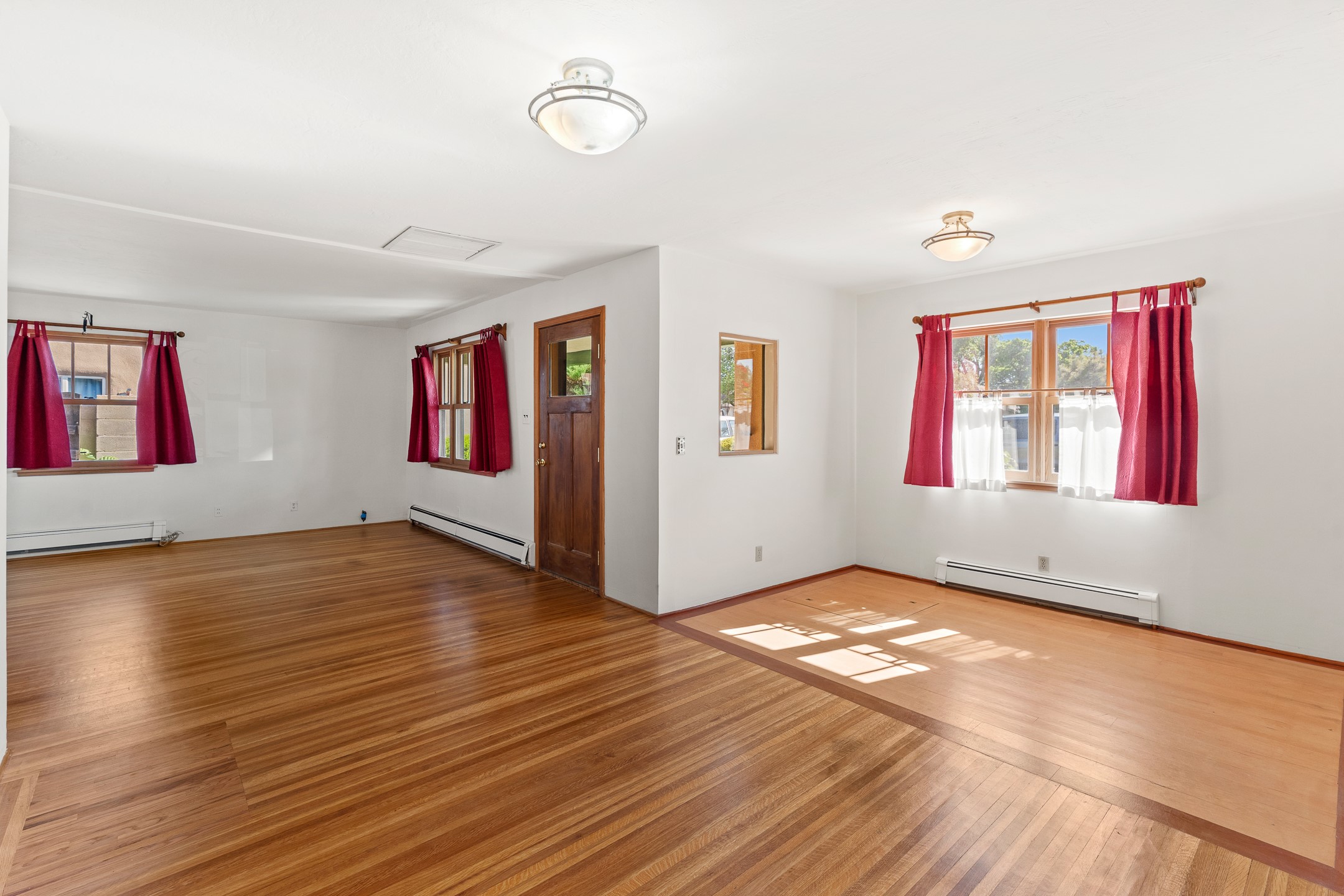 Charming and versatile single-level home nestled in the highly sought-after Casa Alegre neighborhood. Back on the market with significantly improved price. This property stands out as a unique opportunity, featuring multiple living areas and exceptional flexibility for the modern homeowner. This generous residence offers three bedrooms and two bathrooms, complemented by a large heated and finish open area. The oversized bonus space features direct access, presenting enormous possibilities. It's perfectly suited for a private art studio, home occupancy business, large gym, or a dedicated multi-generational living suite. The interior includes dedicated family, living, and dining rooms, all boasting beautiful hardwood flooring throughout the main living areas. Santa Fe Lifestyle at Your Doorstep. Enjoy true convenience with easy access to local shopping and dining. Best of all, the home is ideally situated near the Santa Fe River Trail and the Acequia Trail, providing direct, car-free routes straight to the vibrant Railyard District and historic downtown. The property features a spacious, fenced backyard and a covered portal, creating an ideal setting for outdoor entertaining and relaxation. Enjoy year-round comfort with reliable hot water baseboard heating and evaporative cooling.This motivated seller opportunity won't last long--schedule your showing today!