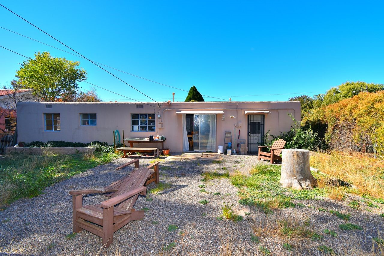 Charming Mid-Century home with attached studio in historic Casa Solana. Welcome to this classic 1952 Santa Fe gem, ideally located in the sought after Historic Casa Solana neighborhood in North Santa Fe. Offering 1208 square feet of inviting living space plus a 220 SF studio. This property blends timeless character with thoughtful updates. Built with solid block construction, the home retains many of its mid-century details -including warm work floors , cabinetry and classic Santa Fe style while offering modern improvements for today's lifestyle. The main home features a comfortable layout with light-filled living areas, efficient natural gas wall heaters, and authentic architectural touches that speak to its historic roots. The attached studio provides excellent versatility perfect for a guest suite, art studio, home office, or rental opportunity. Complete with 1/2 bath and private entry. Situated on a peaceful tree lines street. The easy proximity to downtown Santa Fe, the Railyard District, parks, shopping and beloved neighborhood amenities. Offering a rare opportunity to own a piece of Santa Fe history!