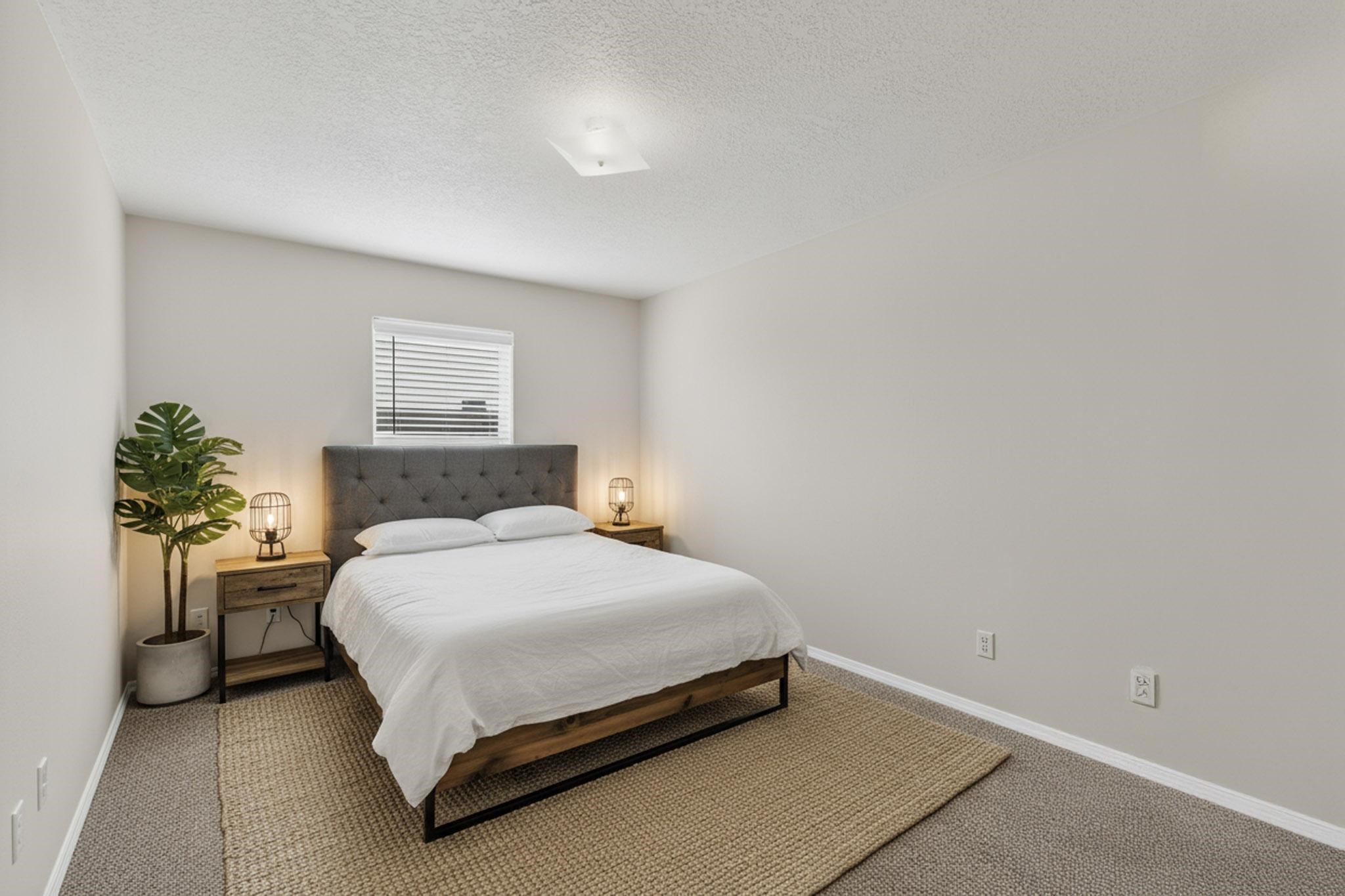 Move-in ready with No HOA in convenient close-in SE Rio Rancho location near Intel. Terrific investment with short-term (STR) or long-term rental potential. Open layout with large living room, dining area and spacious kitchen w/ generous cabinets, tile floor and built-in double ovens. Private primary suite is on the main level and features dual sinks, separate shower & soaking tub and a walk-in closet. Upstairs offers 2 additional sunny bedrooms, a full bath and a versatile loft--perfect for office, gaming or homework zone. Easy-care generous xeriscaped yard, 2-car garage and plentiful driveway parking. Neutral interior palette, great natural light, and easy access to Rio Rancho schools, shopping & dining. Great floorplan for multi-gen, roommates, work-from-home or lock-and-leave living!