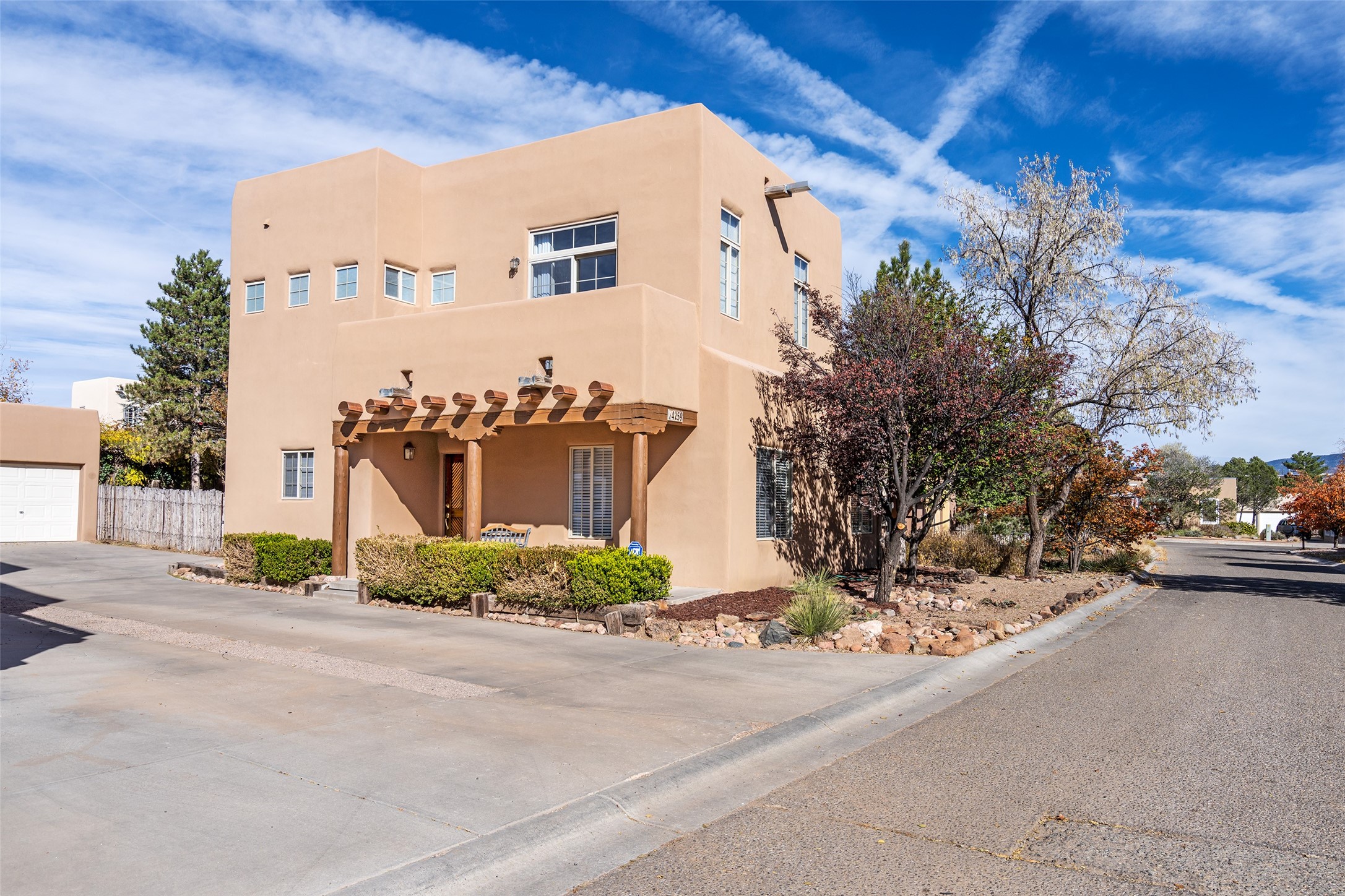 Prepare to be impressed! Tons of huge improvements by the owner make this home a show stopper, including new HVAC (heating and a/c) plus SOLAR which is designed so your monthly electric bill is insignificant! Other notable improvements include a brand new hot water heater (2022); complete kitchen and flooring updates (2023); and fresh paint, balcony, and bathroom upgrades (2025). This home is truly move-in ready and shines with pride of ownership in the highly sought-after Nava Ade community! A custom front door welcomes you inside, where soaring ceilings and plentiful windows fill the great room with natural light and warmth. Wood-look tile floors provide a grounding complement to the freshly painted modern palette, while the rock-tiled fireplace adds texture and character. The kitchen is a delight with new cabinetry, granite countertops and backsplash, and newer stainless steel appliances. Throughout the home, wood accents create a sense of harmony and style, and the thoughtful floor plan offers excellent bedroom separation. Upstairs, the spacious primary suite features a large walk-in closet and an elegantly updated bath with a new walk-in shower, soaking tub, and dual vanities. Step onto the private deck to take in views of the distant mountain ranges--a perfect spot for morning coffee or evening sunsets. Downstairs, two comfortable guest bedrooms share a full bath, and the laundry room adds everyday convenience. The detached two-car garage offers extra storage, and the fully fenced backyard is beautifully landscaped for easy outdoor living. Nava Ade residents enjoy access to a community clubhouse with fitness facilities and a pool, and the neighborhood's walking trails and nearby parks make it easy to enjoy Santa Fe's outdoor lifestyle. Shopping, dining, and services are all just minutes away.