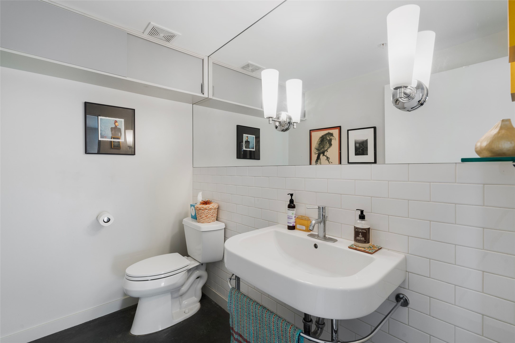 Set within the tranquil, landscaped interior of the Marquez Lofts complex, this bright, stylish condo--with no unit above it--has a desirable ground-floor entrance and rare, private back courtyard. The kitchen is creatively divided into two areas. Sink and storage are tucked tidily into a Butler's Pantry wing while a refrigerator and induction stove run along the wall behind the gorgeous, live edge, cherry and sapele wood dining counter by Boxcar Woody. A gentle flight of steps, with under-stair storage, leads to the sleeping loft. Downstairs, the spacious main bedroom has an ensuite, bath. Two double doors access the walled courtyard, perfect for pets or as an intimate retreat. Alternatively, with its back gate entry, this space could serve clients, leaving the main section for personal use. Graced with character, convenience and contemporary charm, this live-work dwelling favors the needs of creatives, entrepreneurs, and anyone seeking a residential refuge in a prime location by the Railyard, restaurants and shopping.