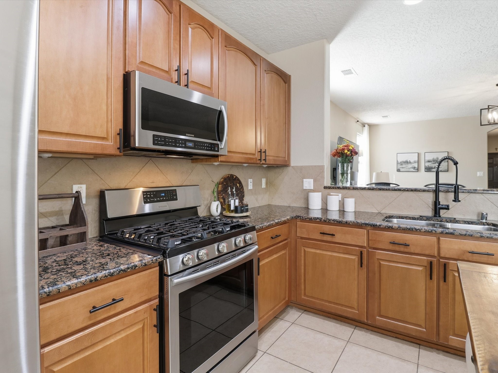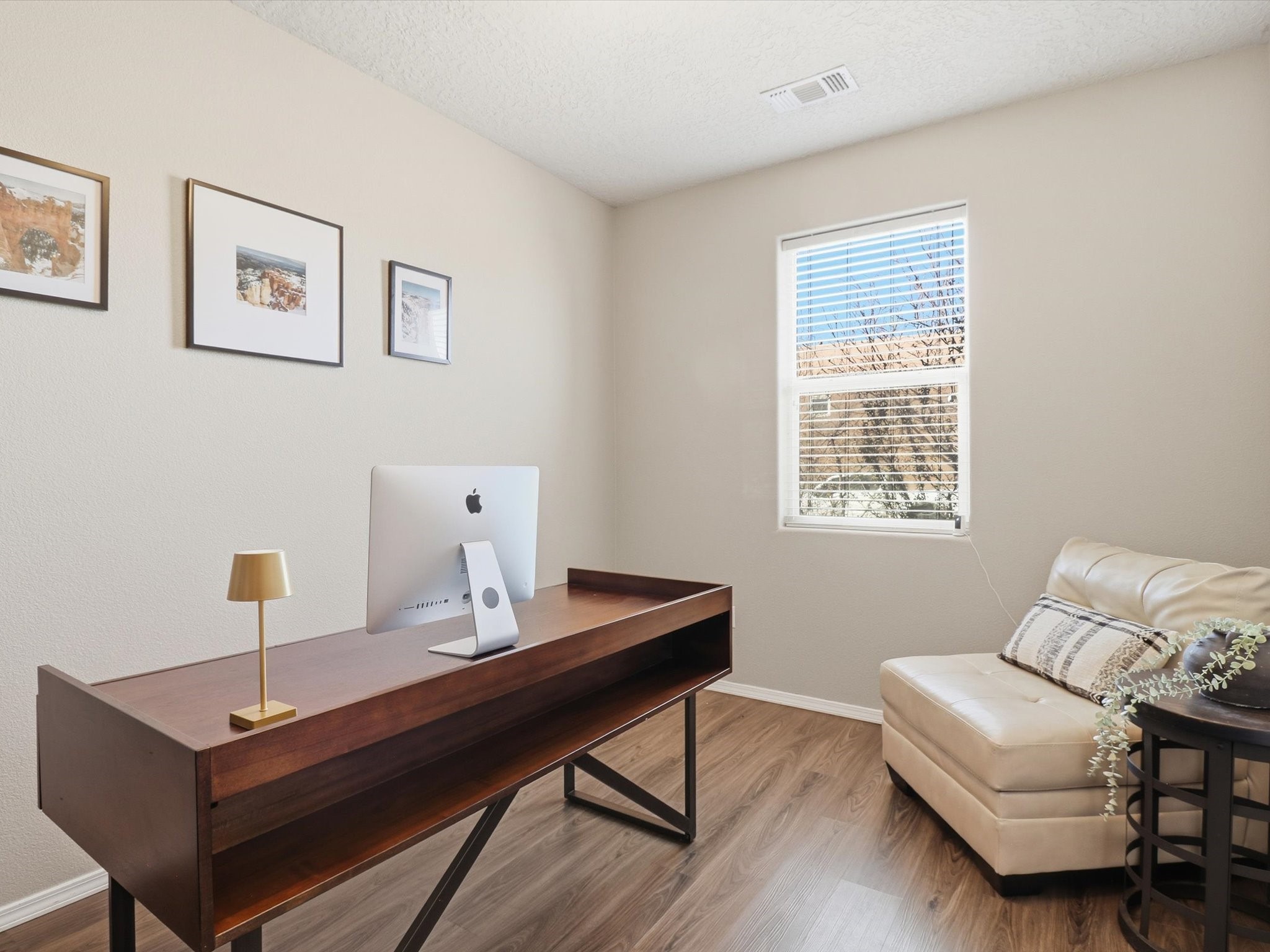 Experience true Santa Fe living in the sought-after Villa Sonata community--ideally located minutes from I-25 and the vibrant Plaza! This former model home shines with thoughtful upgrades and modern style. Enjoy added privacy with open space on one side, plus major updates: new spray foam roof (2019), stucco (2020), furnace, refrigerated air, water heater (all 2024), carpet and engineered wood floors (2022). The open-concept kitchen boasts a center island, stainless steel appliances, walk-in pantry, and bar seating. Spacious bedrooms include a primary suite with dual sinks, soaking tub, separate shower, and private water closet. With updated hardware, lighting, a finished garage, gutters w/ rain barrel, and a large synthetic wood patio--this home is move-in ready and made for easy living!